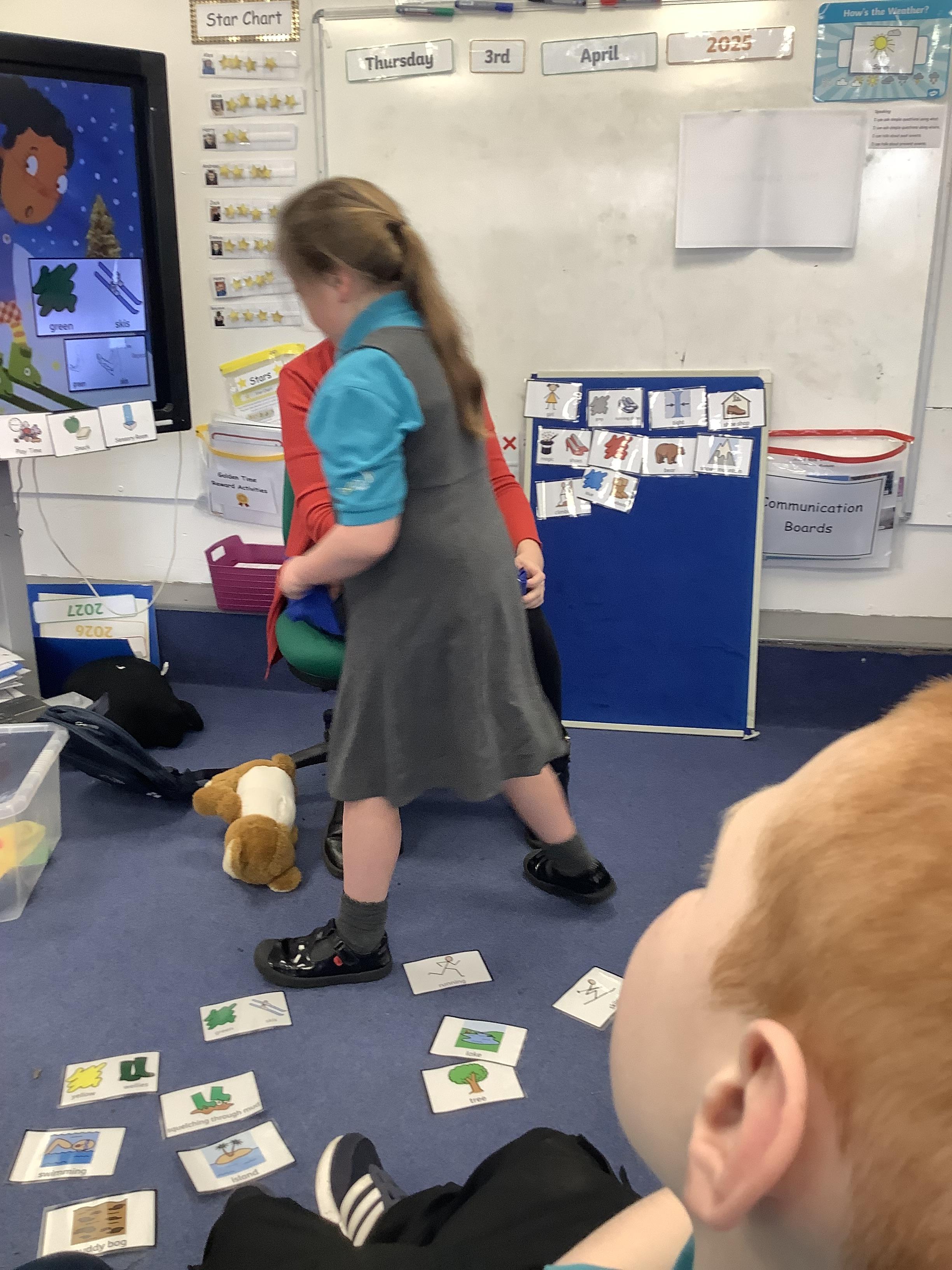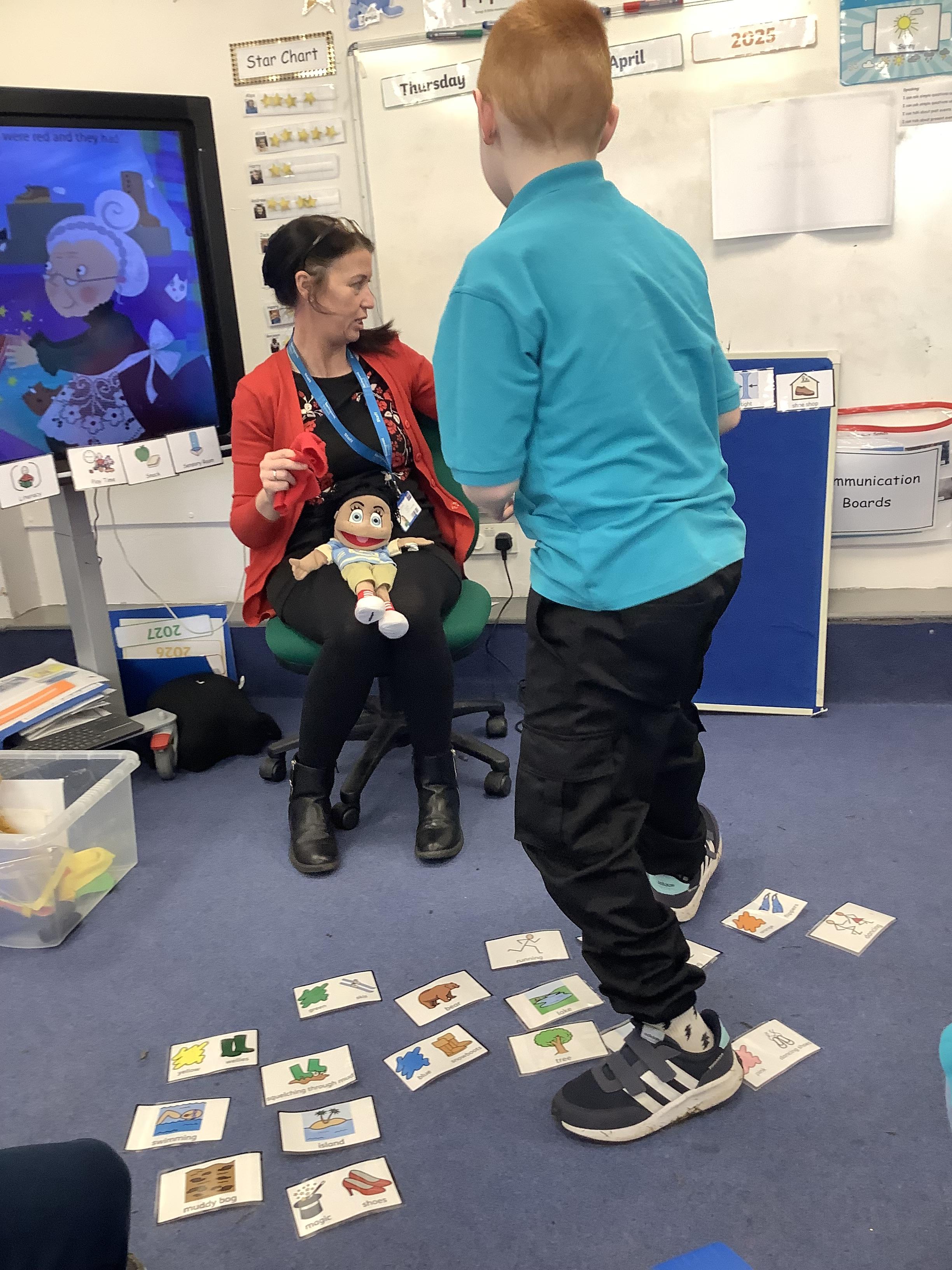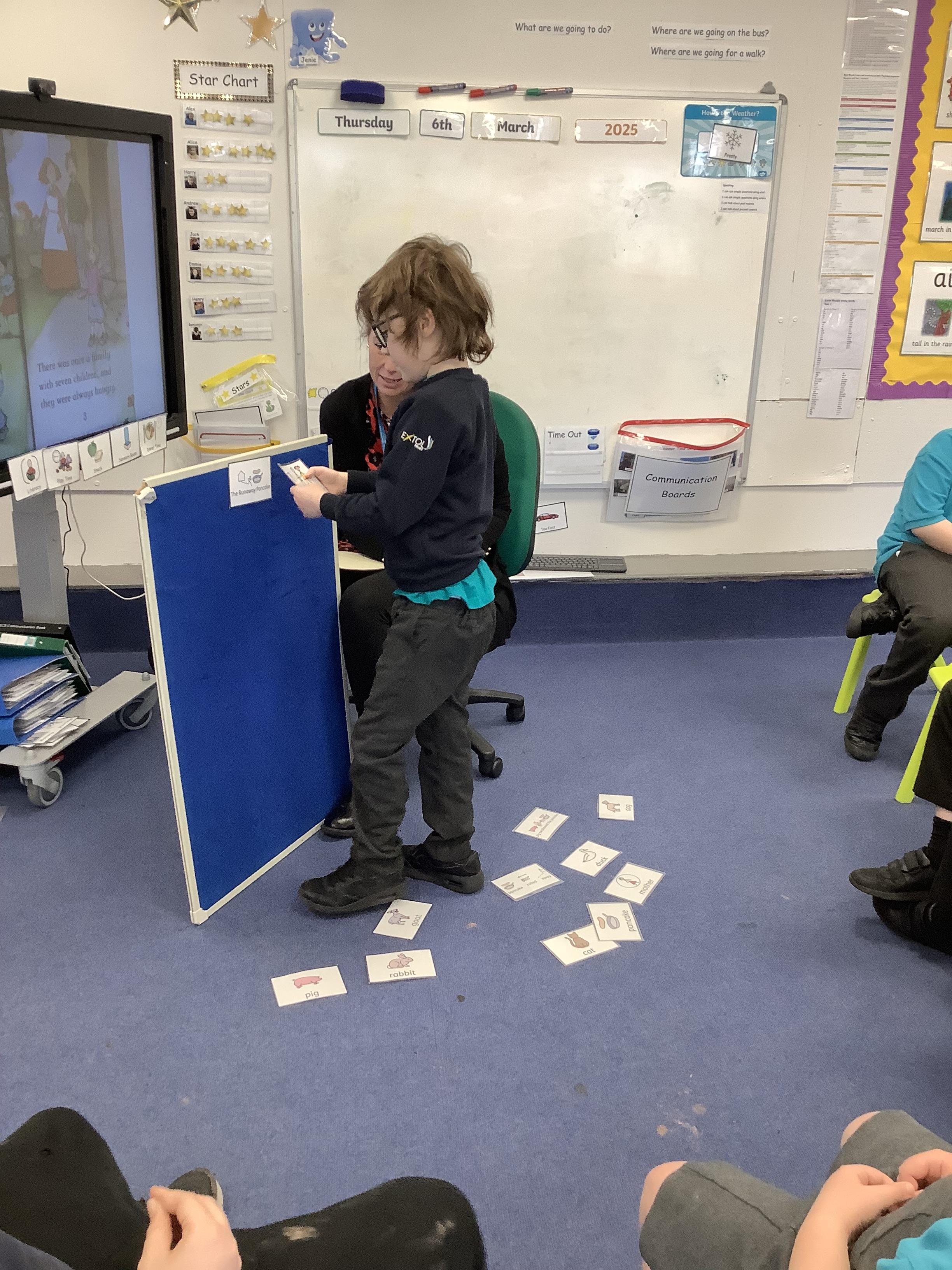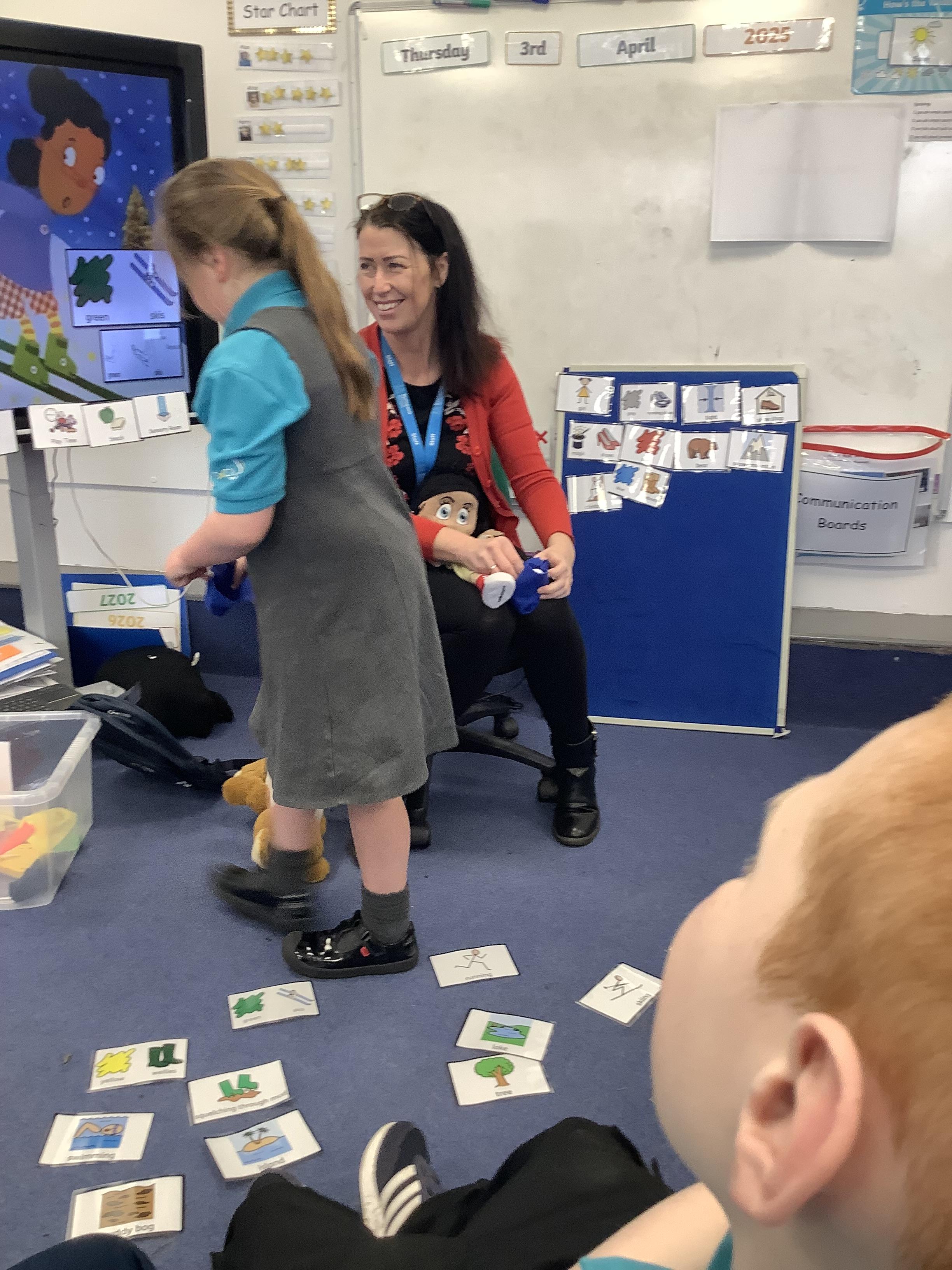 20.03.25 EARLY TALK BOOST: Our children have been reading the book: "Jake is Busy". The children love taking an active part in the story, answering comprehension questions verbally and using PECS. We have been looking closely at different verbs (actions words). We have been singing: 'This is the way...' and acting out a a variety of doing words e.g. brushing, washing, sleeping, running, kicking, walking, eating, drinking etc.