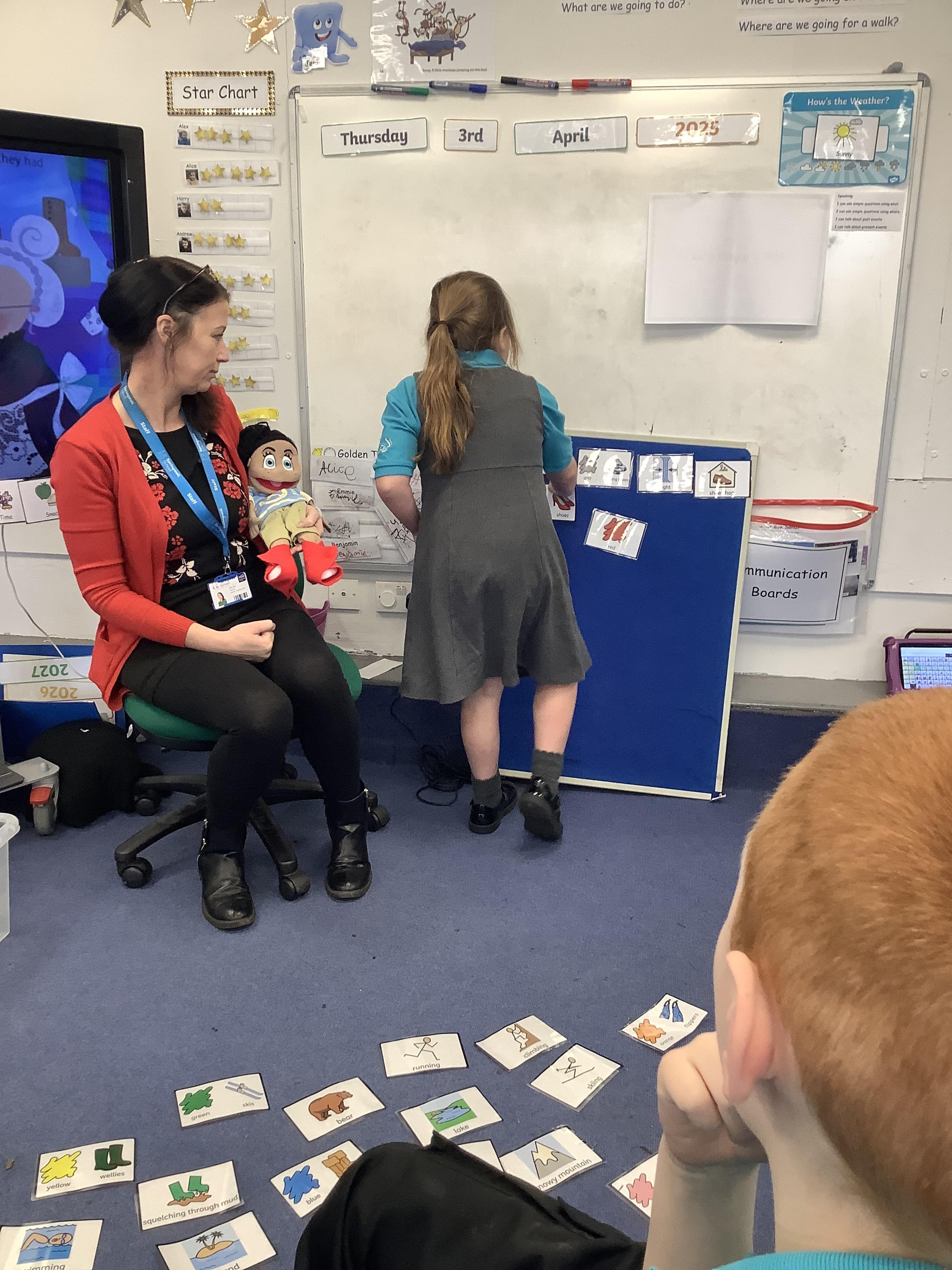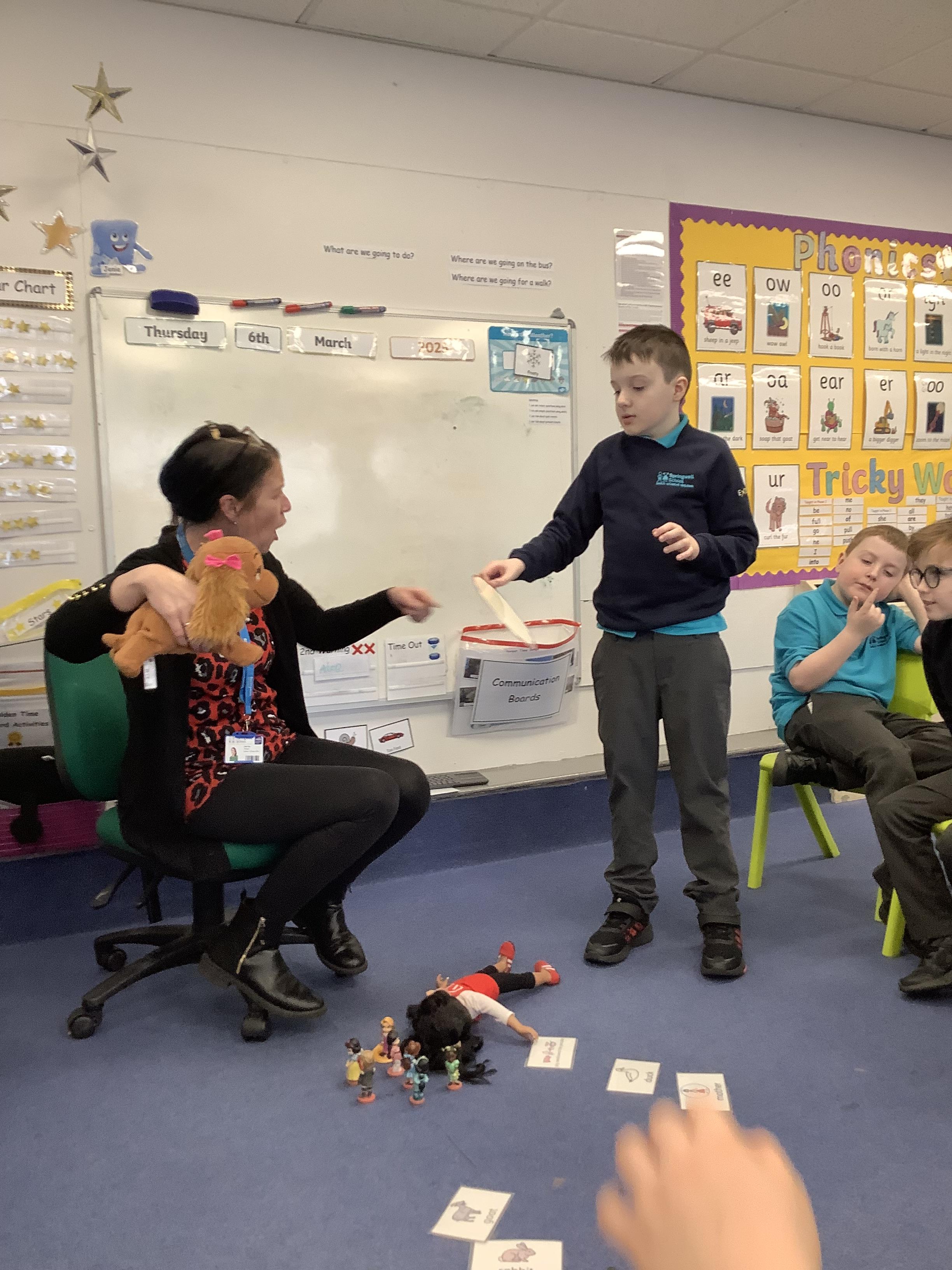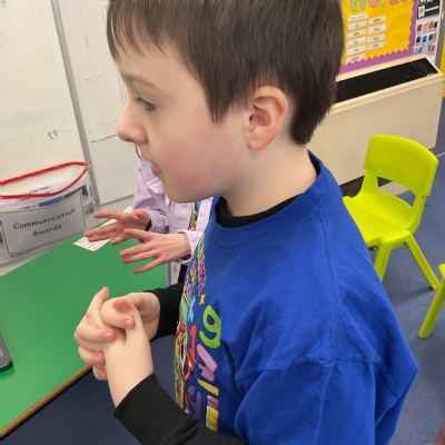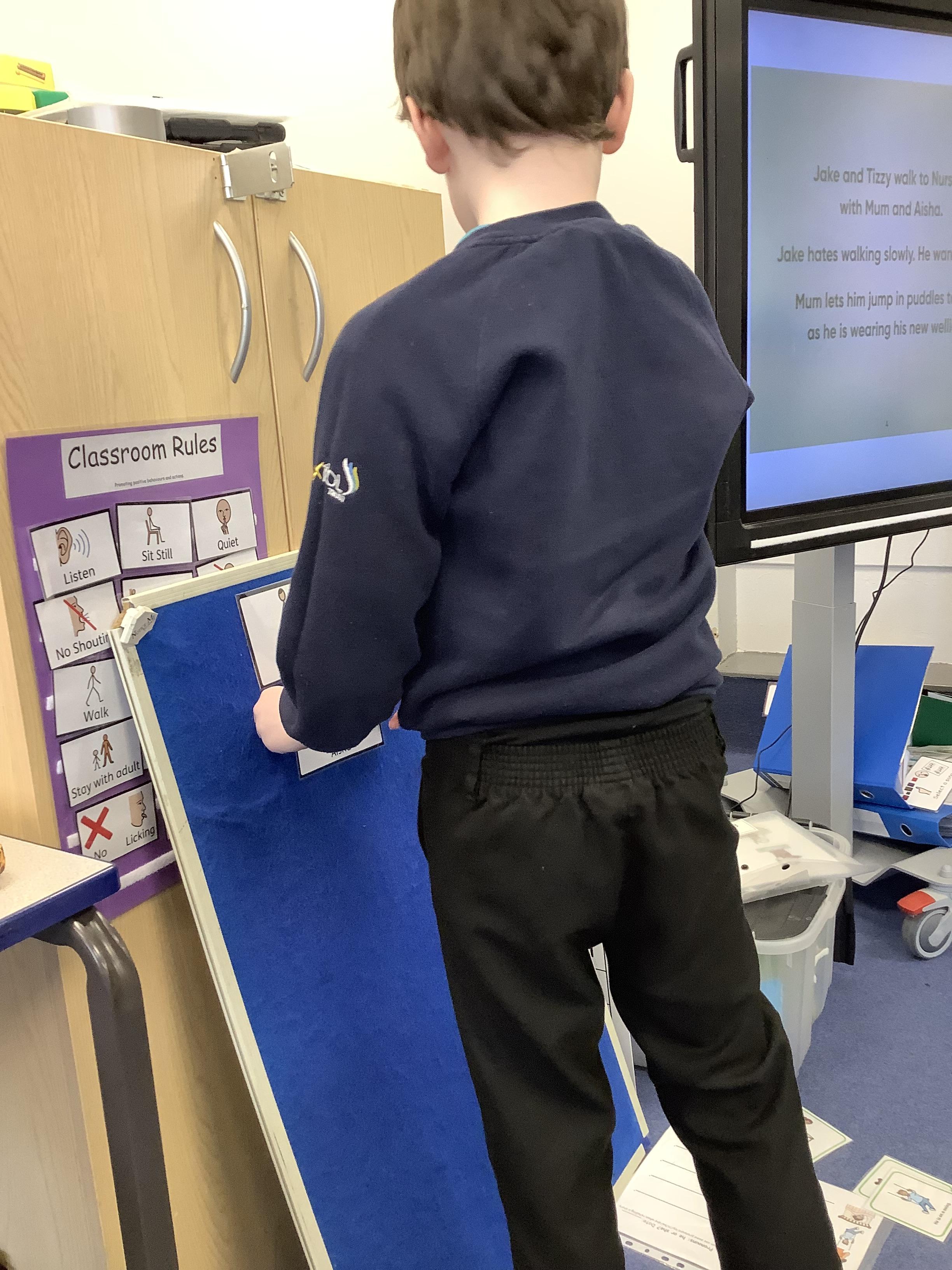 20.03.25 EARLY TALK BOOST: Our children have been reading the book: "Jake is Busy". The children love taking an active part in the story, answering comprehension questions verbally and using PECS. We have been looking closely at different verbs (actions words). We have been singing: 'This is the way...' and acting out a a variety of doing words e.g. brushing, washing, sleeping, running, kicking, walking, eating, drinking etc.