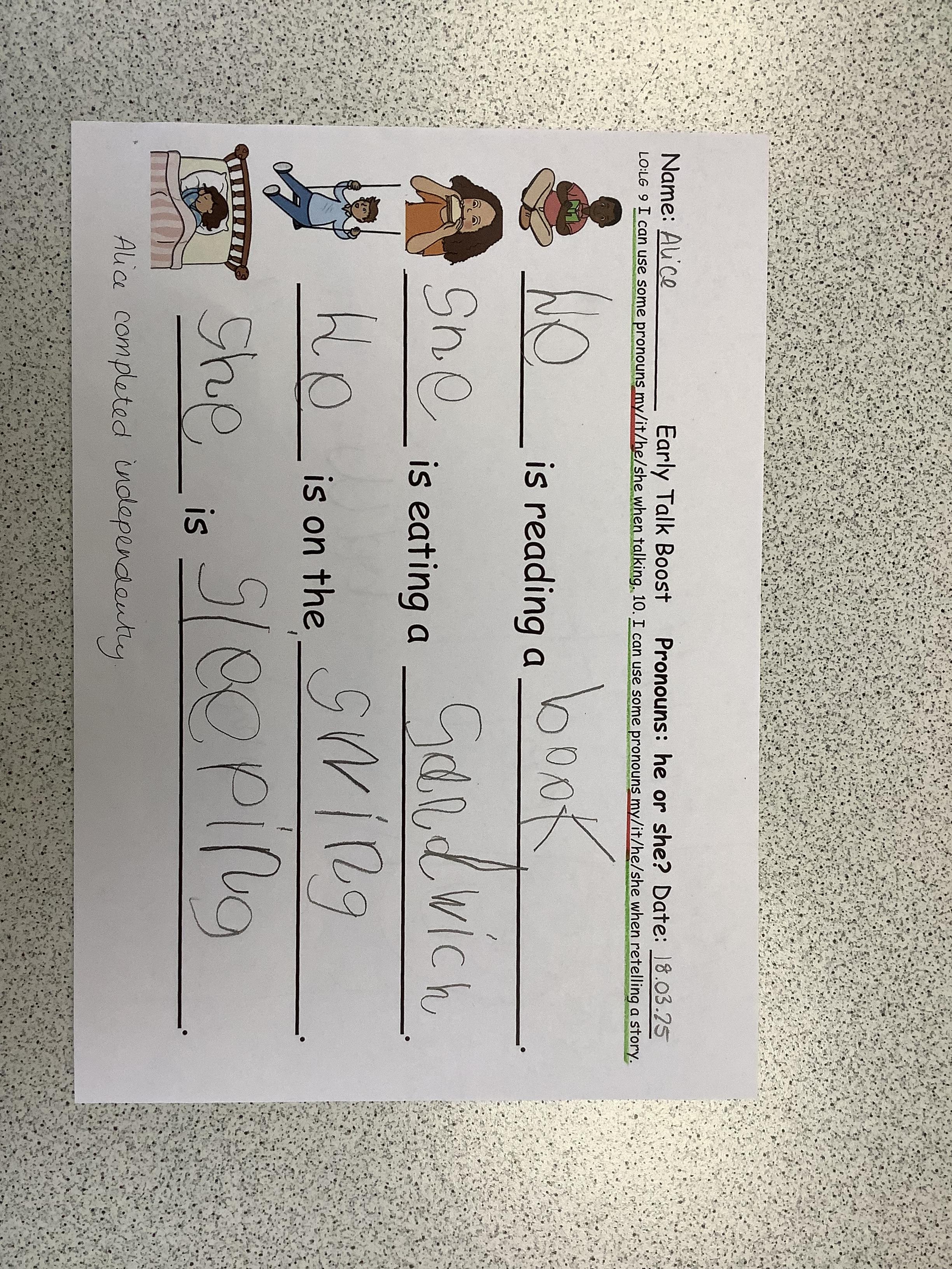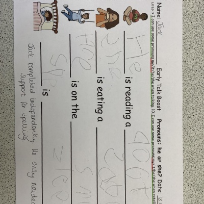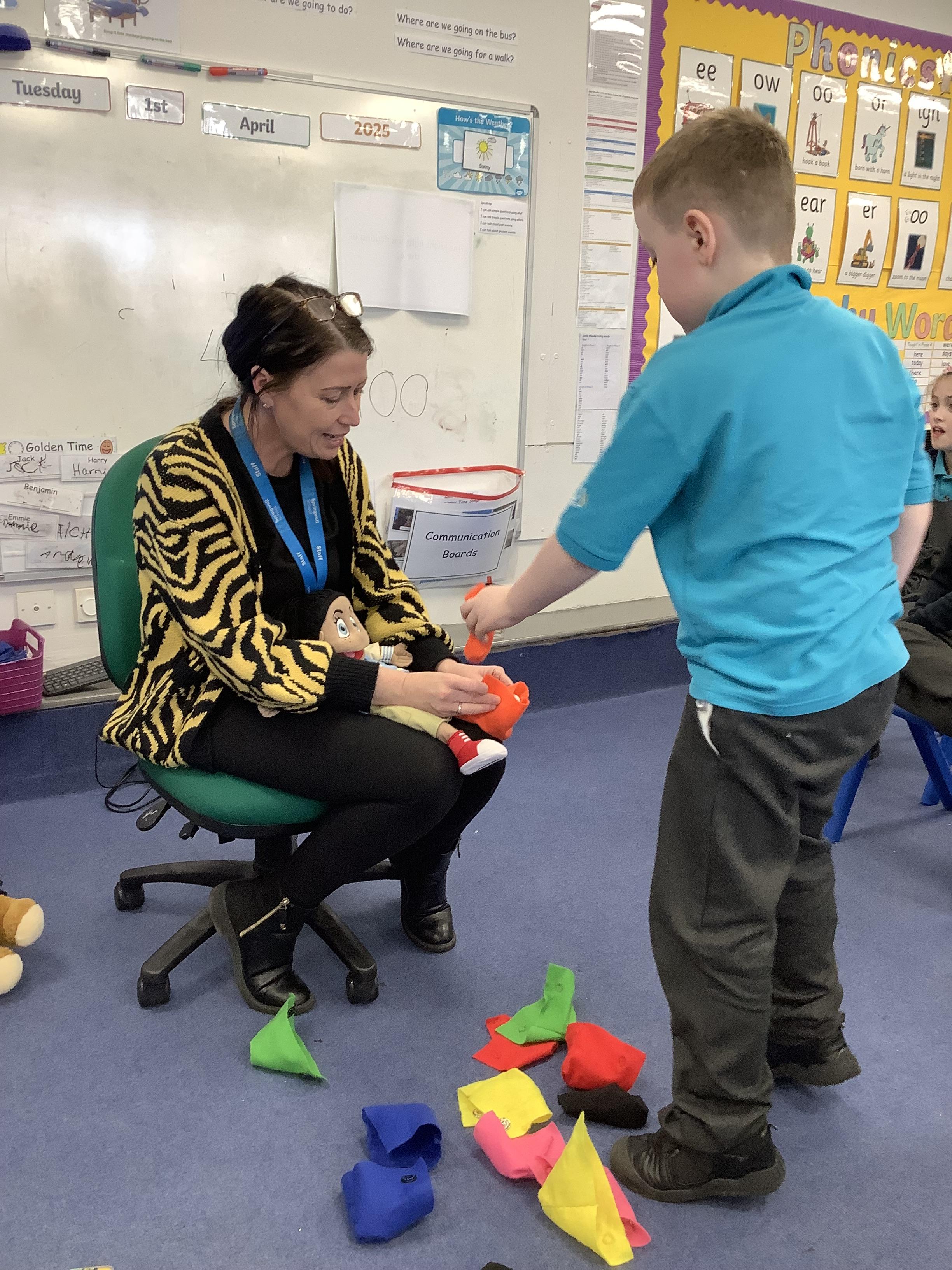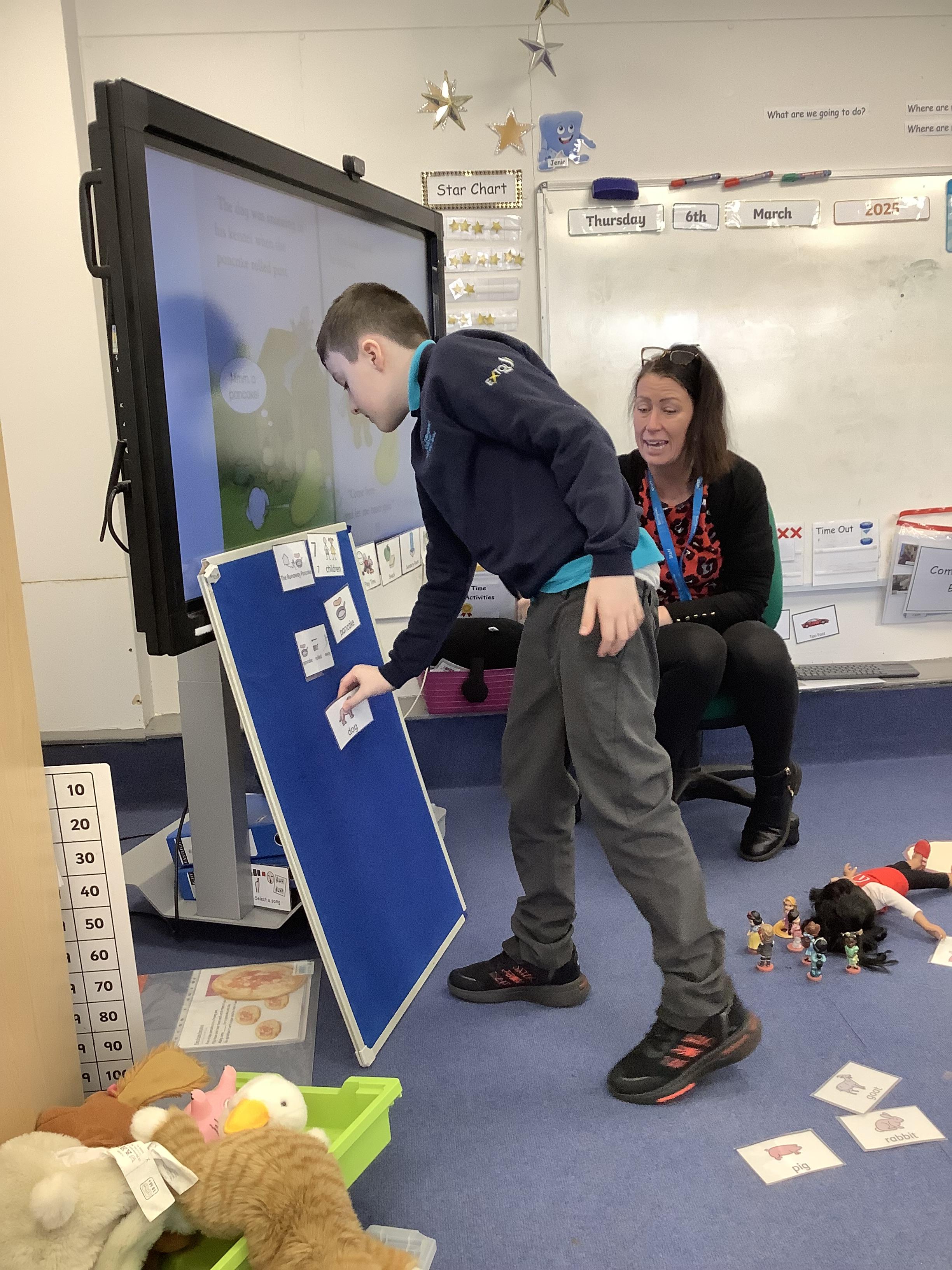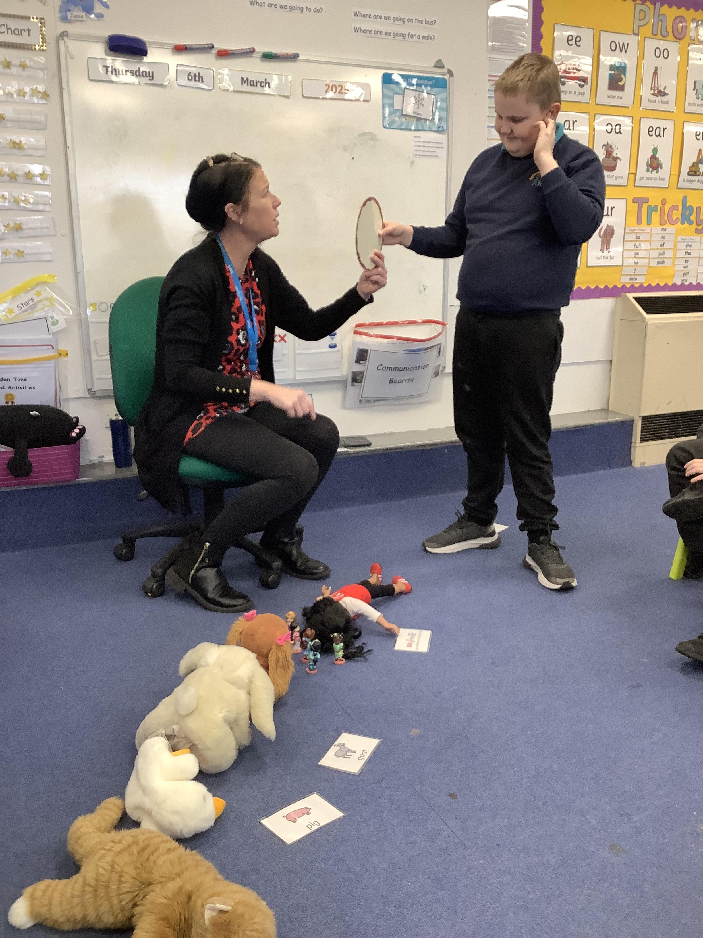 20.03.25 EARLY TALK BOOST: Our children have been reading the book: "Jake is Busy". The children love taking an active part in the story, answering comprehension questions verbally and using PECS. We have been looking closely at different verbs (actions words). We have been singing: 'This is the way...' and acting out a a variety of doing words e.g. brushing, washing, sleeping, running, kicking, walking, eating, drinking etc.