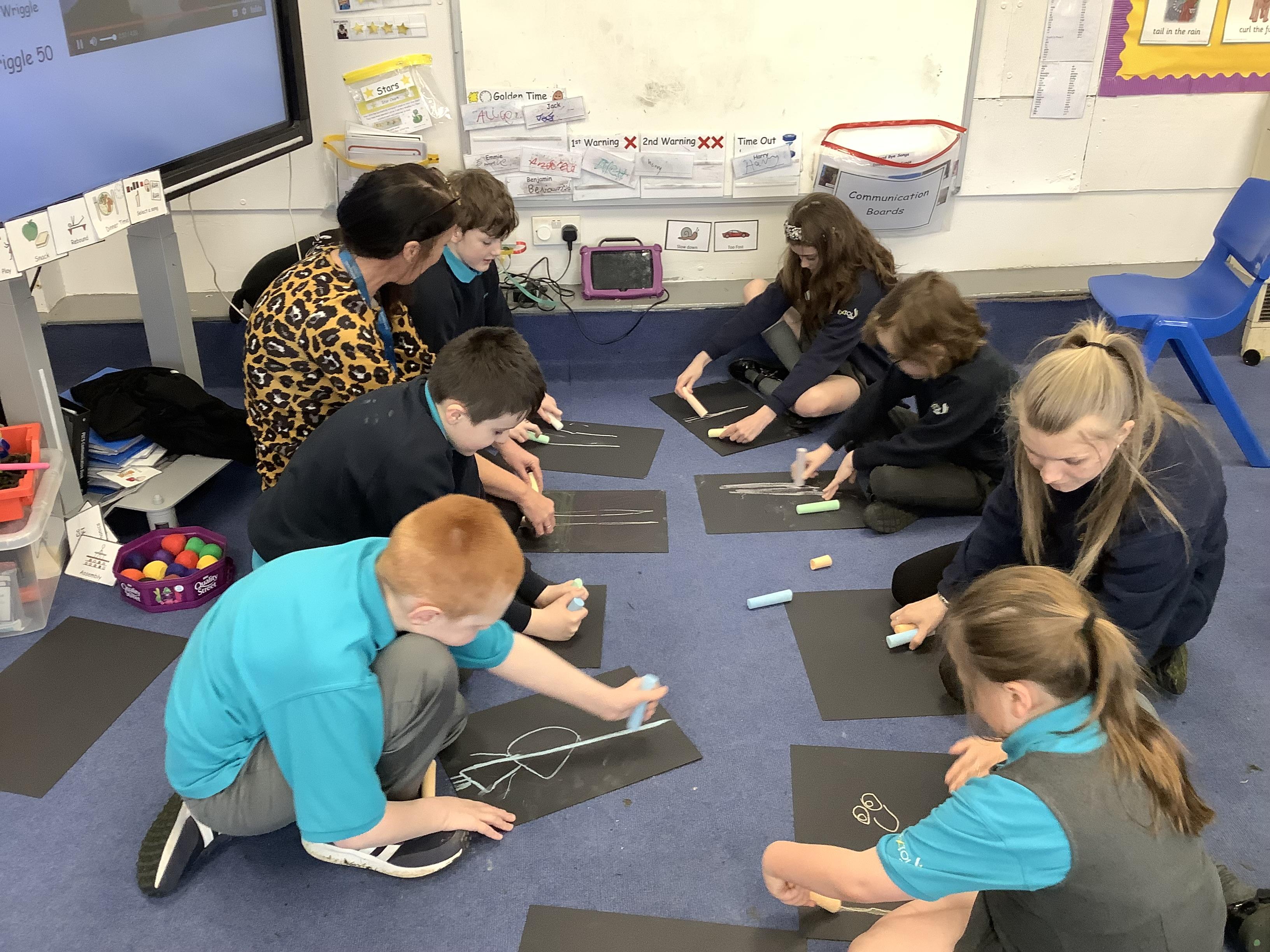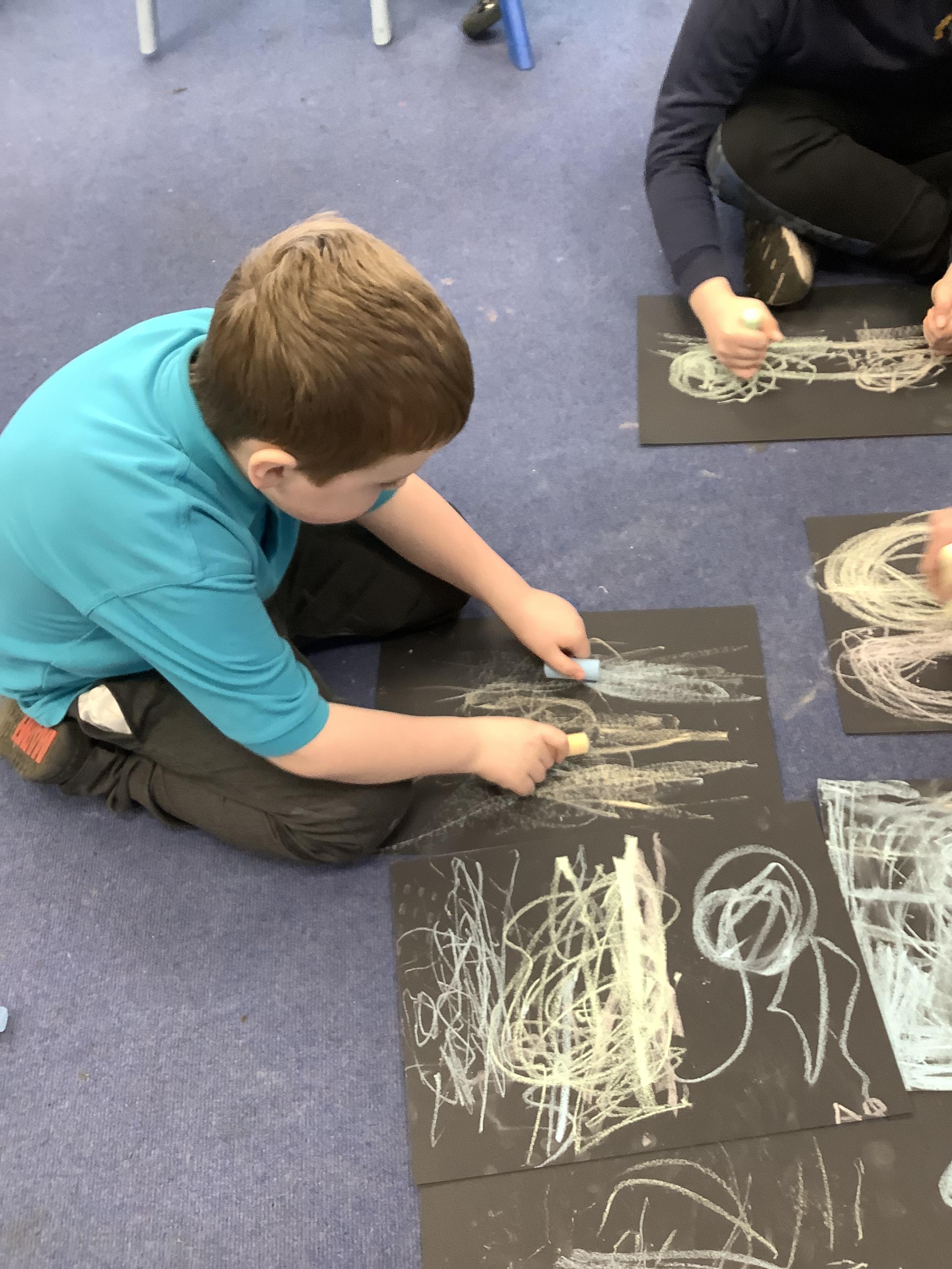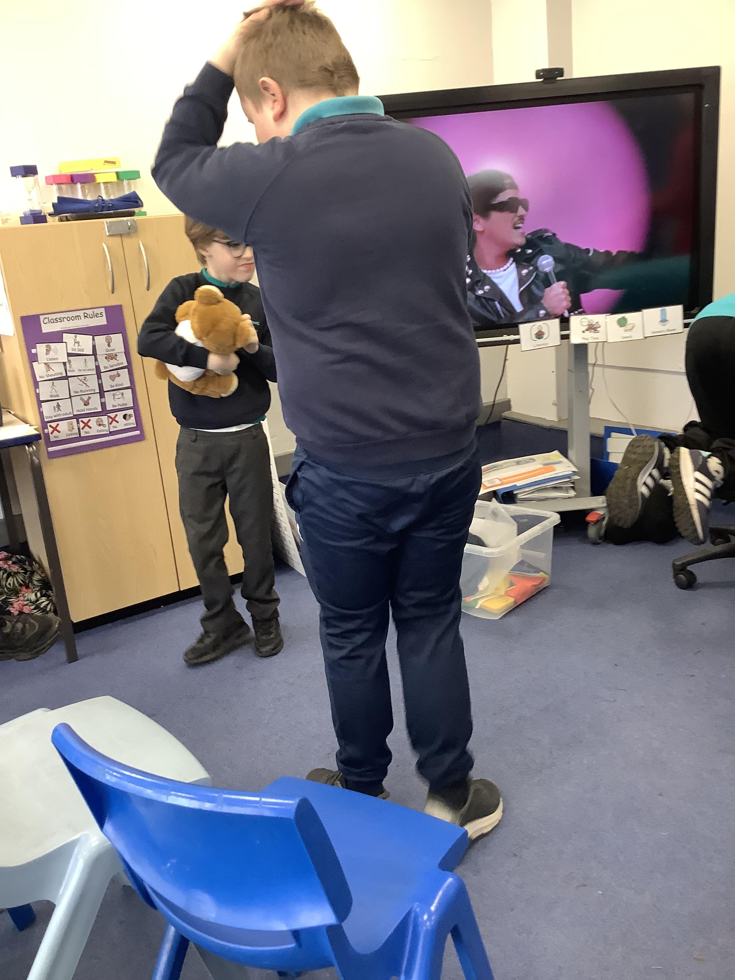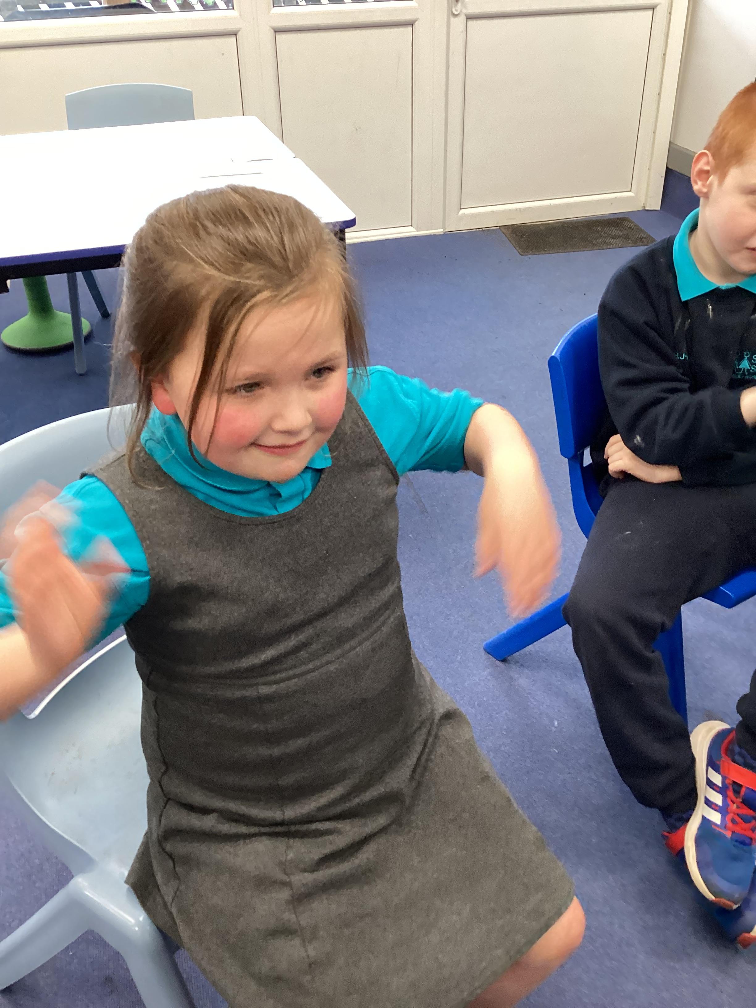 28.03.25 WRITING: SQUIGGLE WHILST YOU WIGGLE! We love this activity because it incorporates dance, music and large movements which help us develop our fine muscle control that we need for writing.
