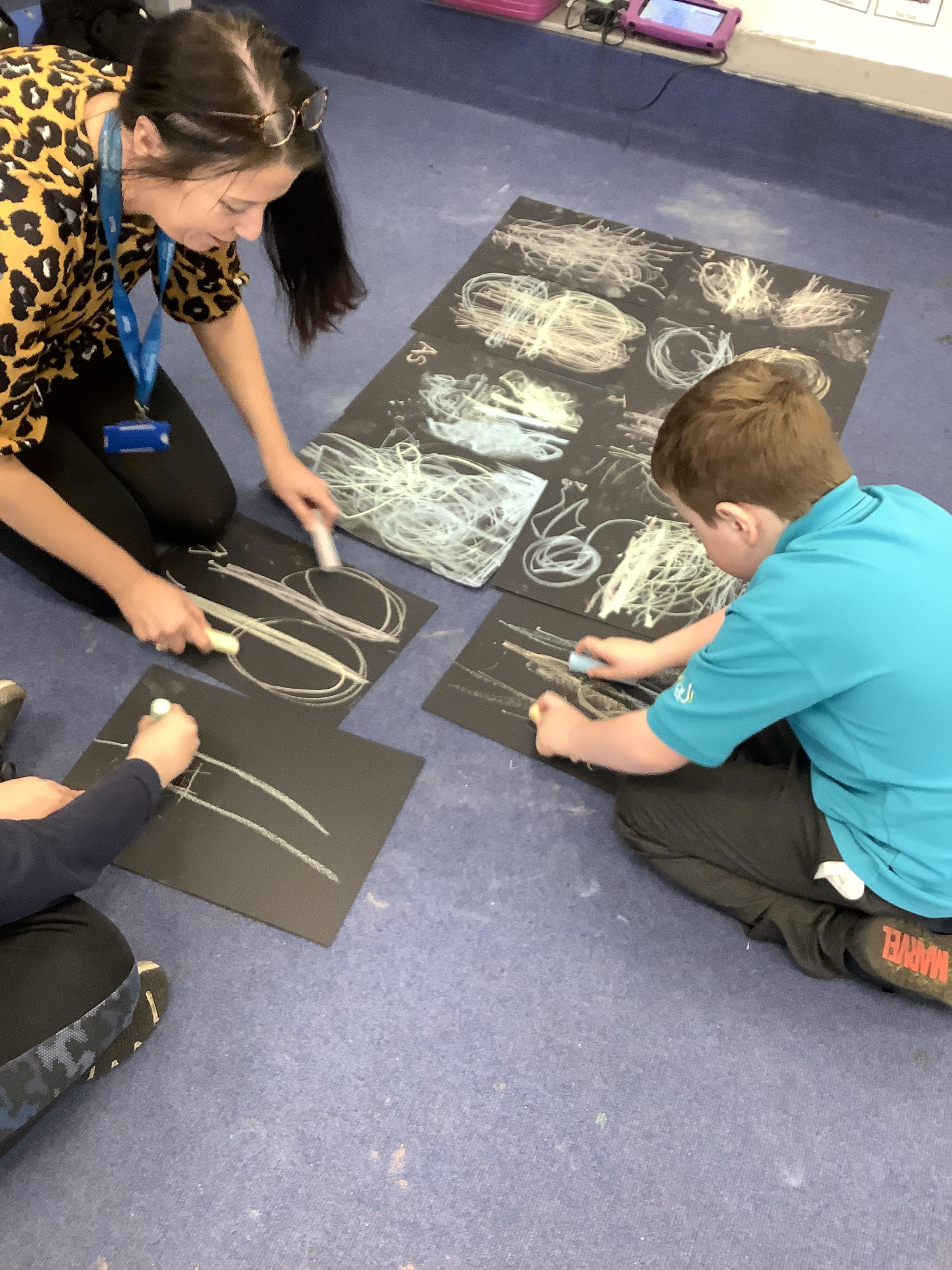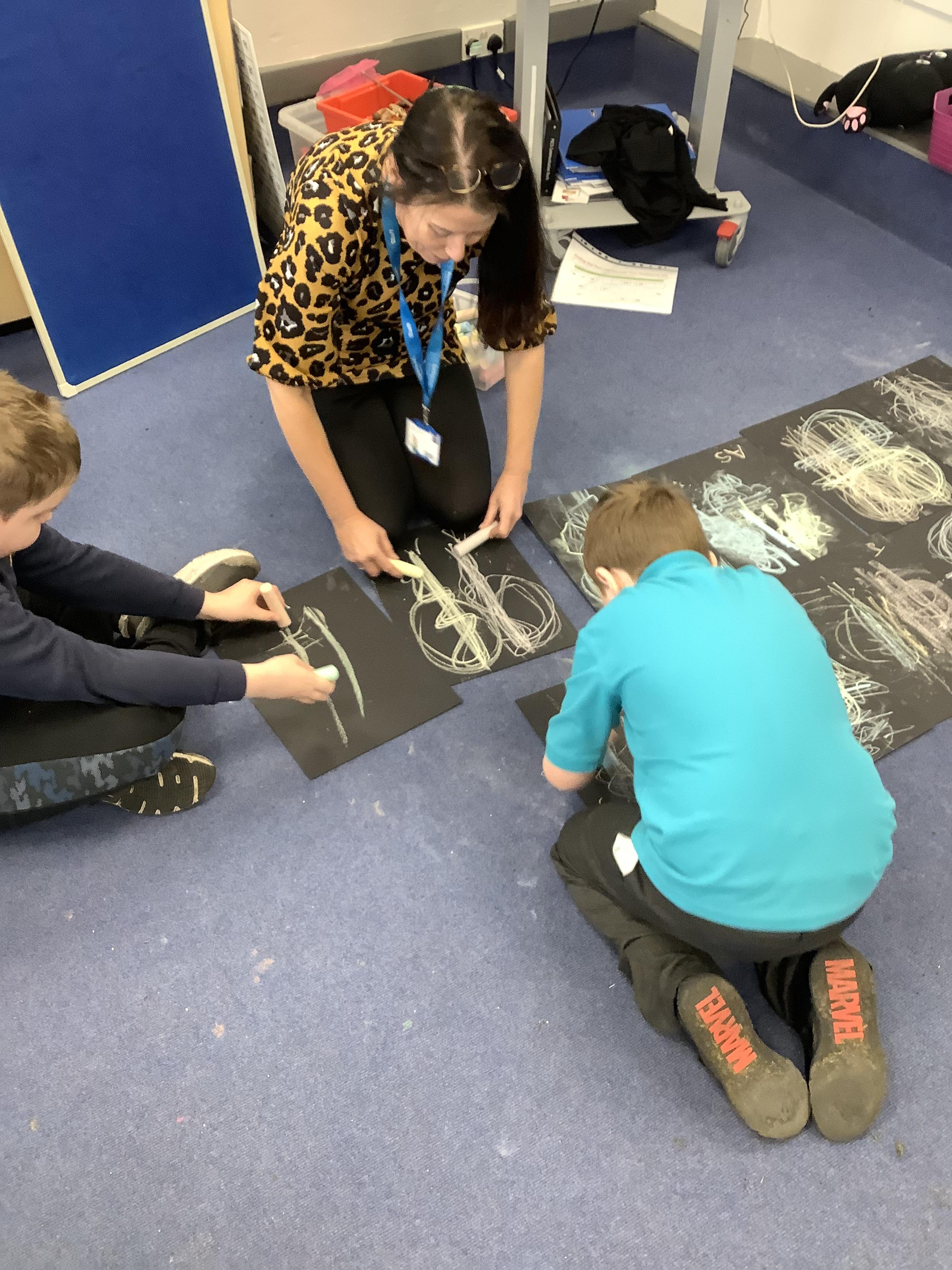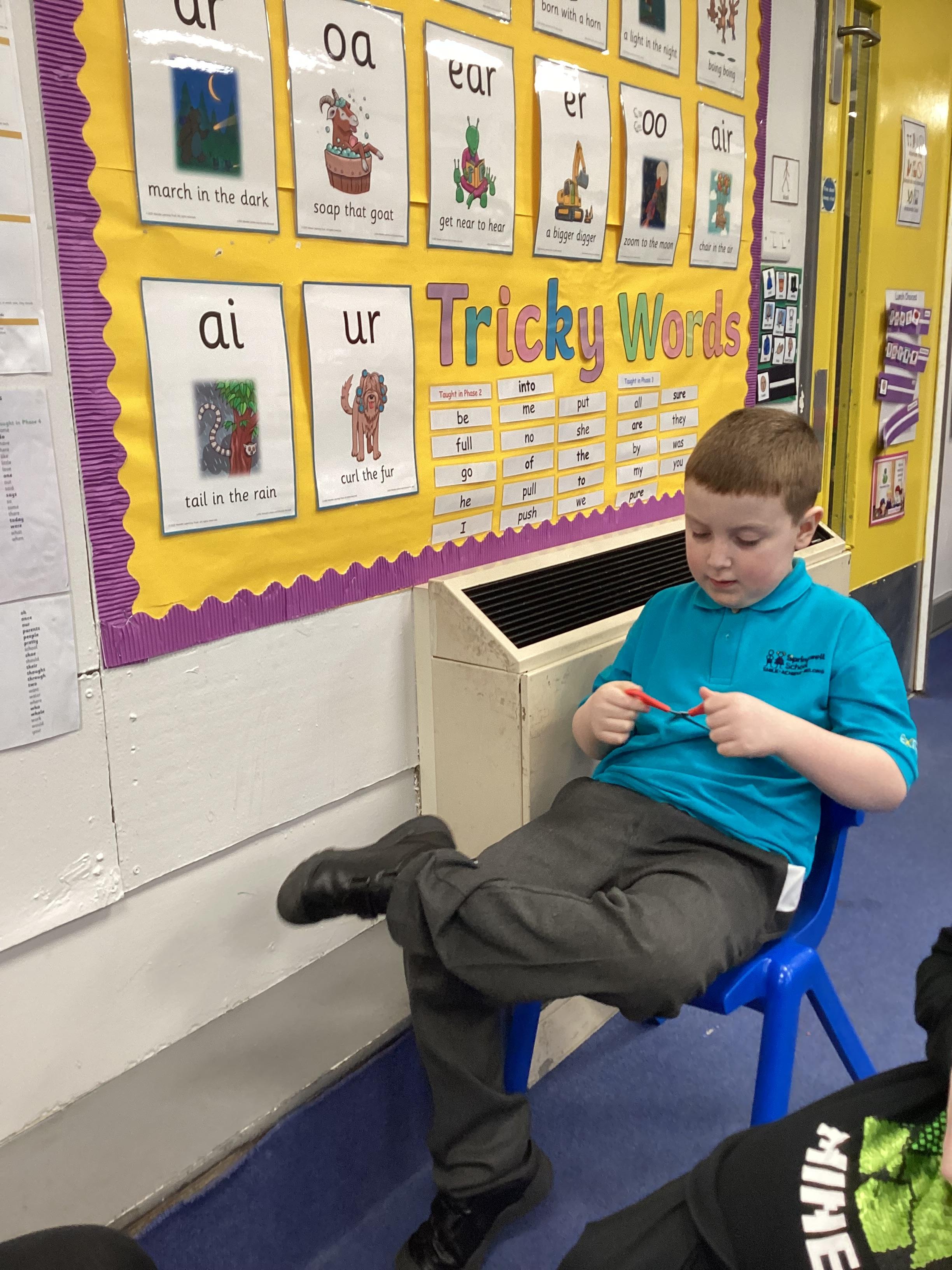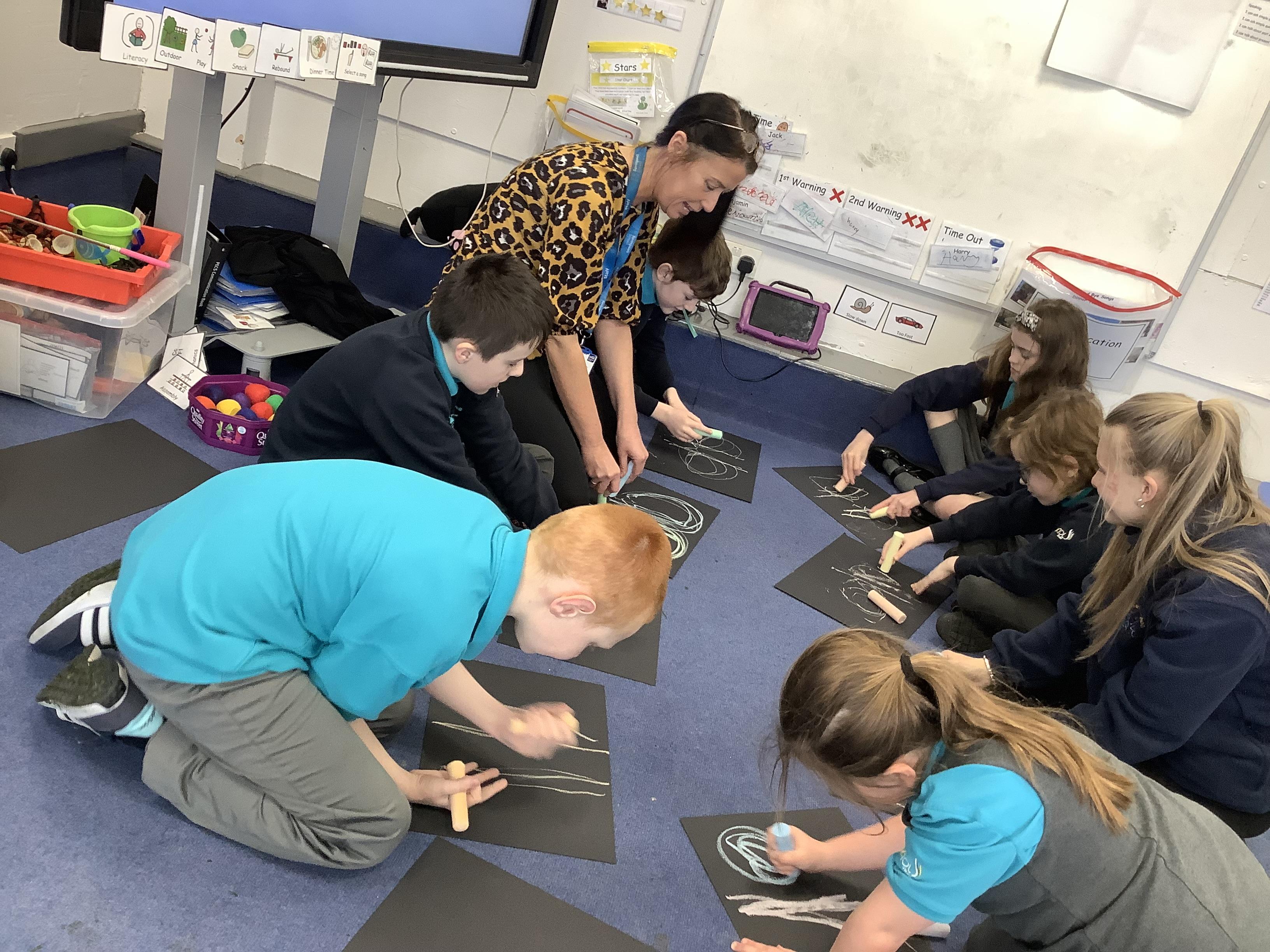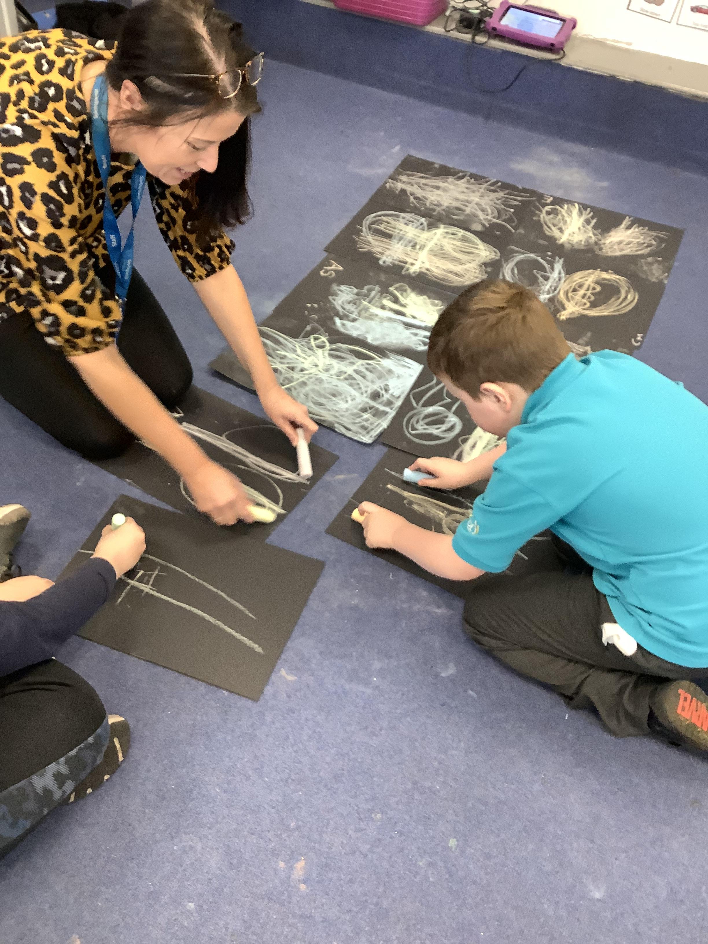 28.03.25 WRITING: SQUIGGLE WHILST YOU WIGGLE! We love this activity because it incorporates dance, music and large movements which help us develop our fine muscle control that we need for writing.
