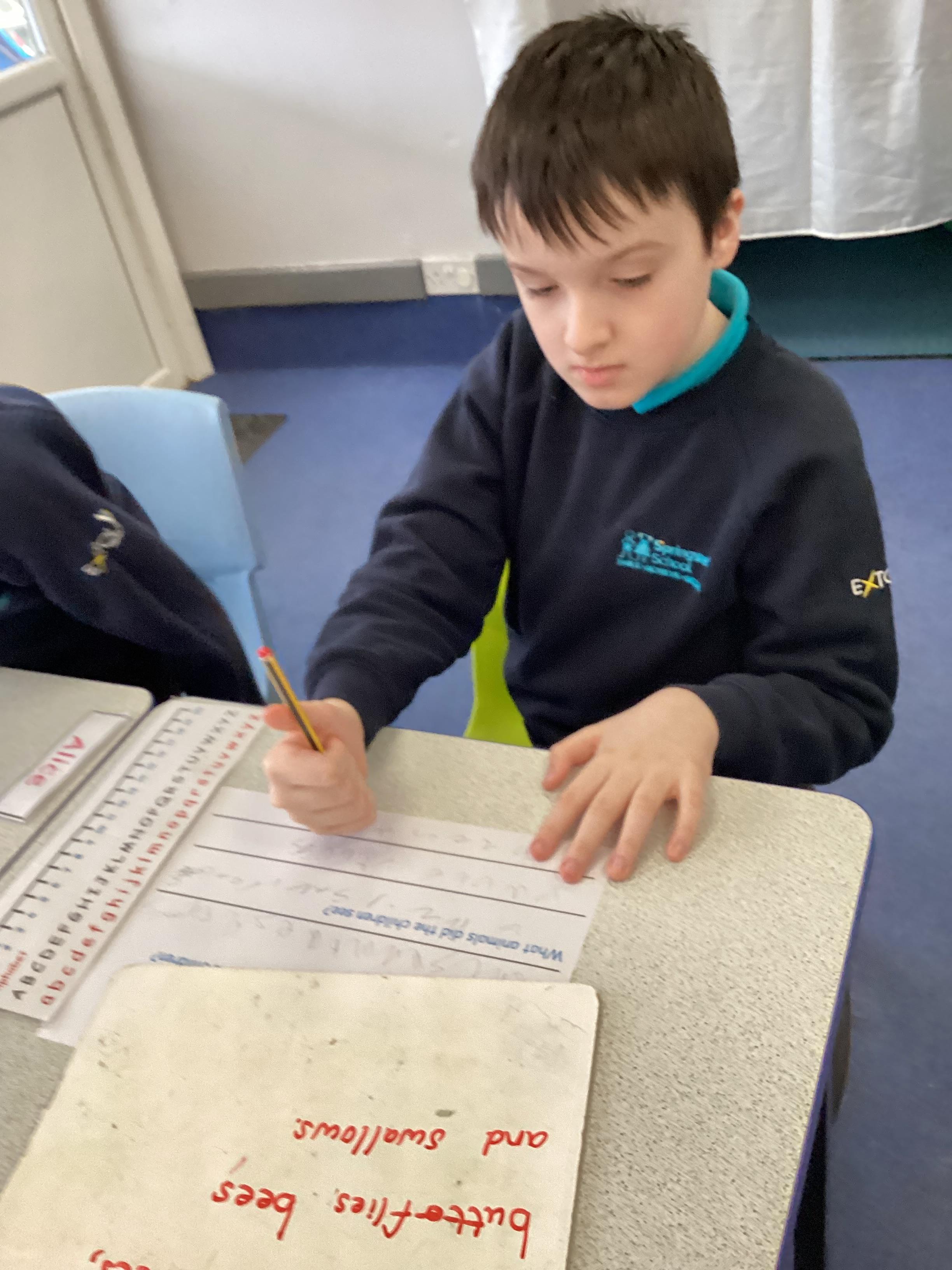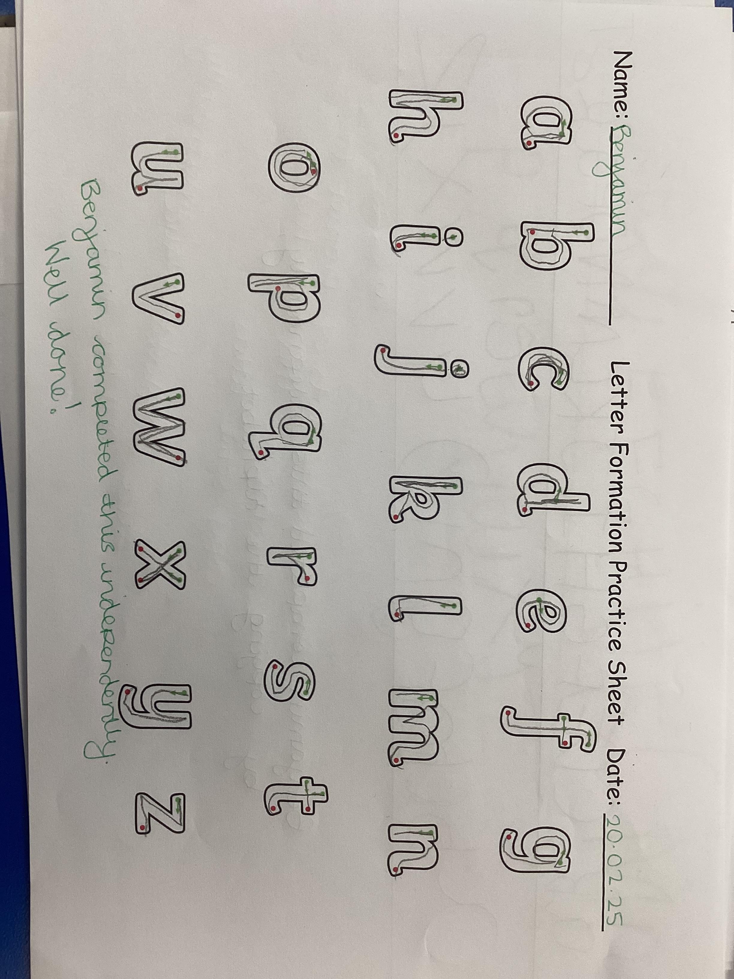 02.04.25 WRITING: Together, we identified and put the letters of the alphabet in correct order. The children then wrote out the letters of the alphabet themselves. The children tried hard to use a tripod grip with increasing control.