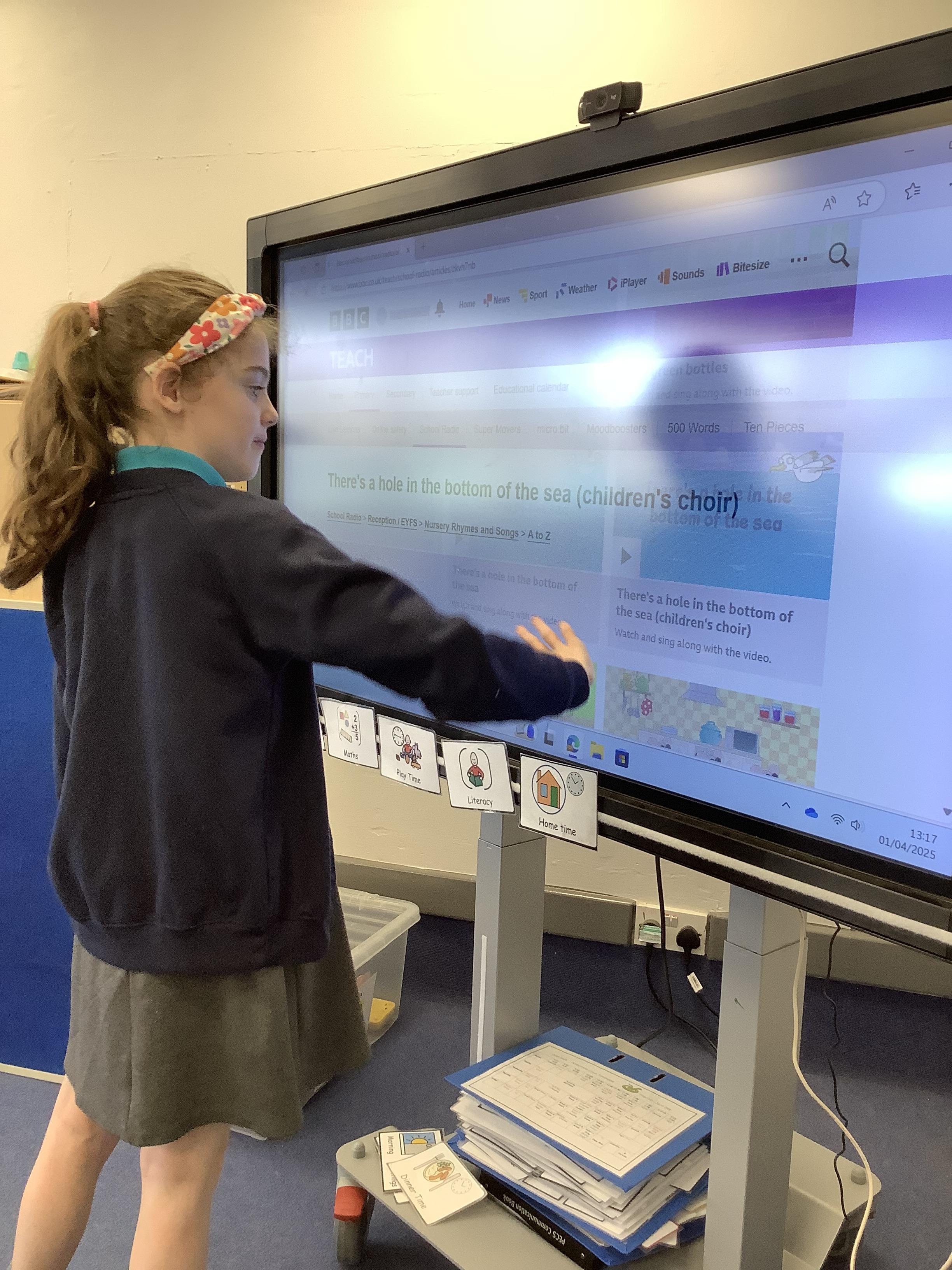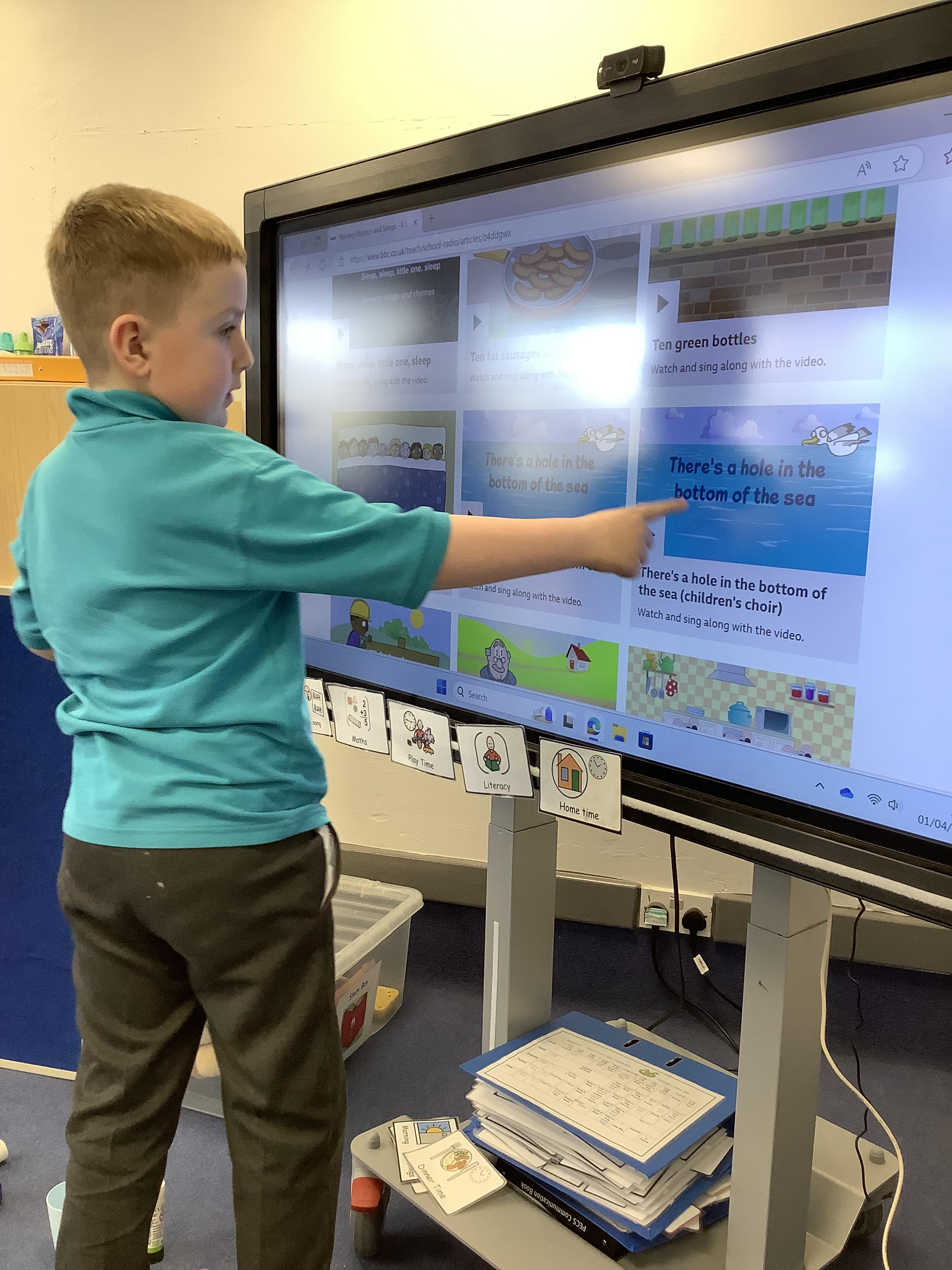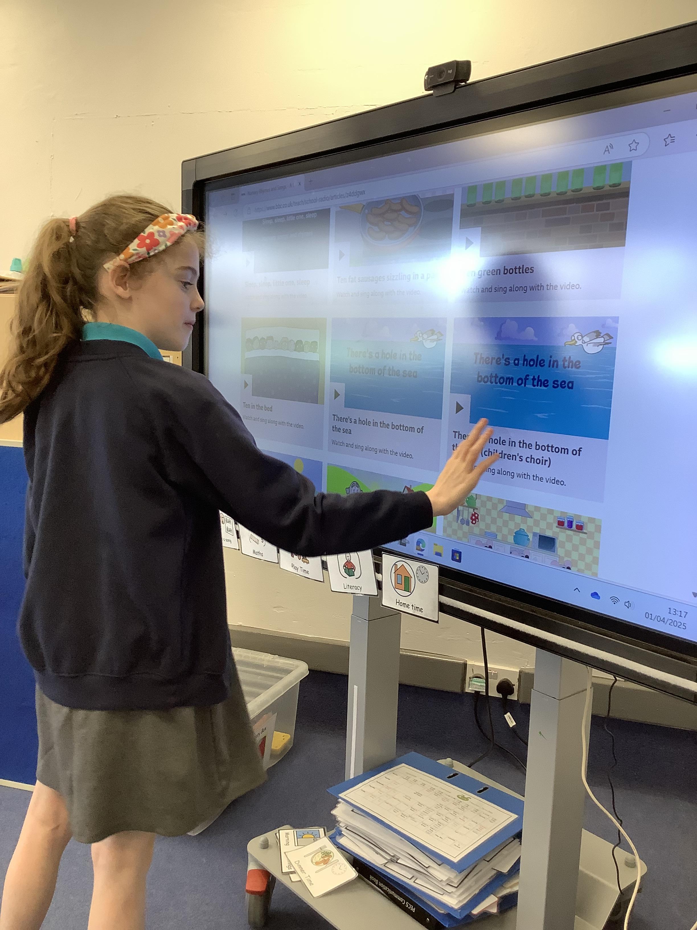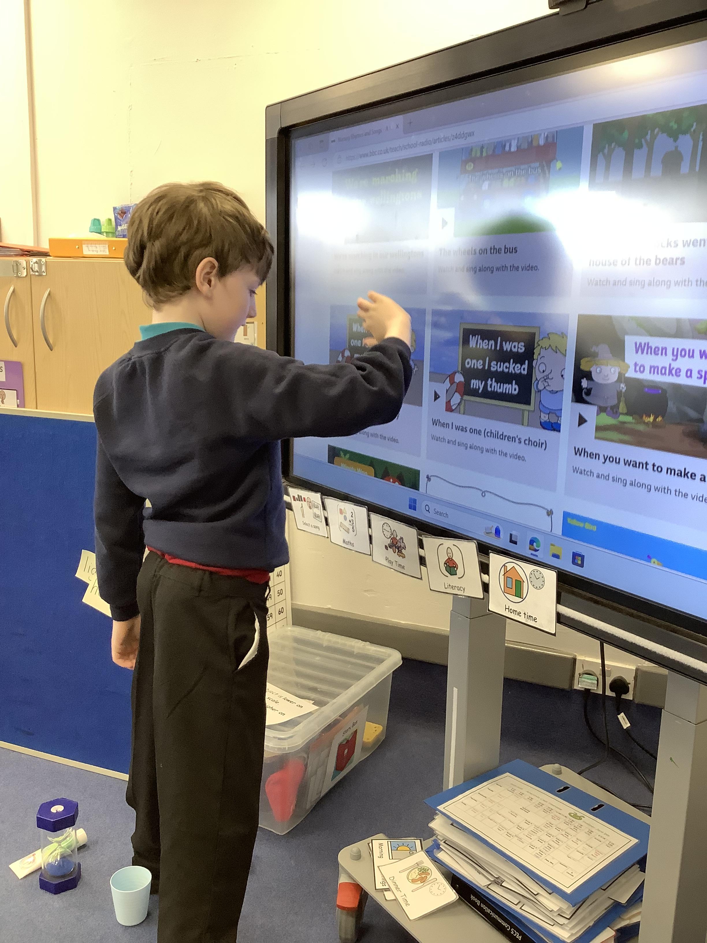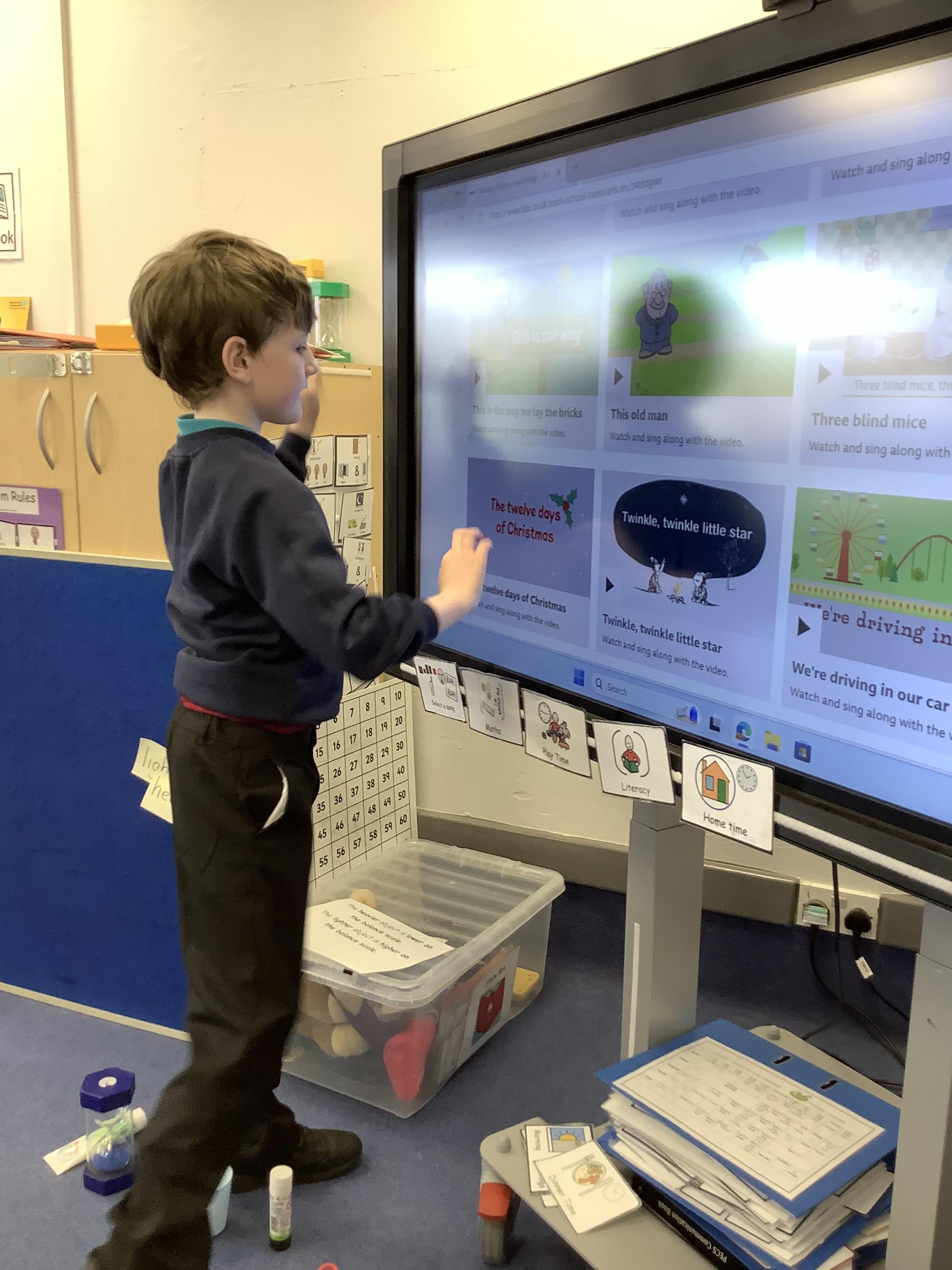 01.04.25 COMPUTING: OPENING AND EXPLORING PROGRAMS After lunch, our children have 'select a song' time. They have the opportunity to explore a pictorial menu and choose a desired song. Once they click on the desired picture they can access and explore the content.