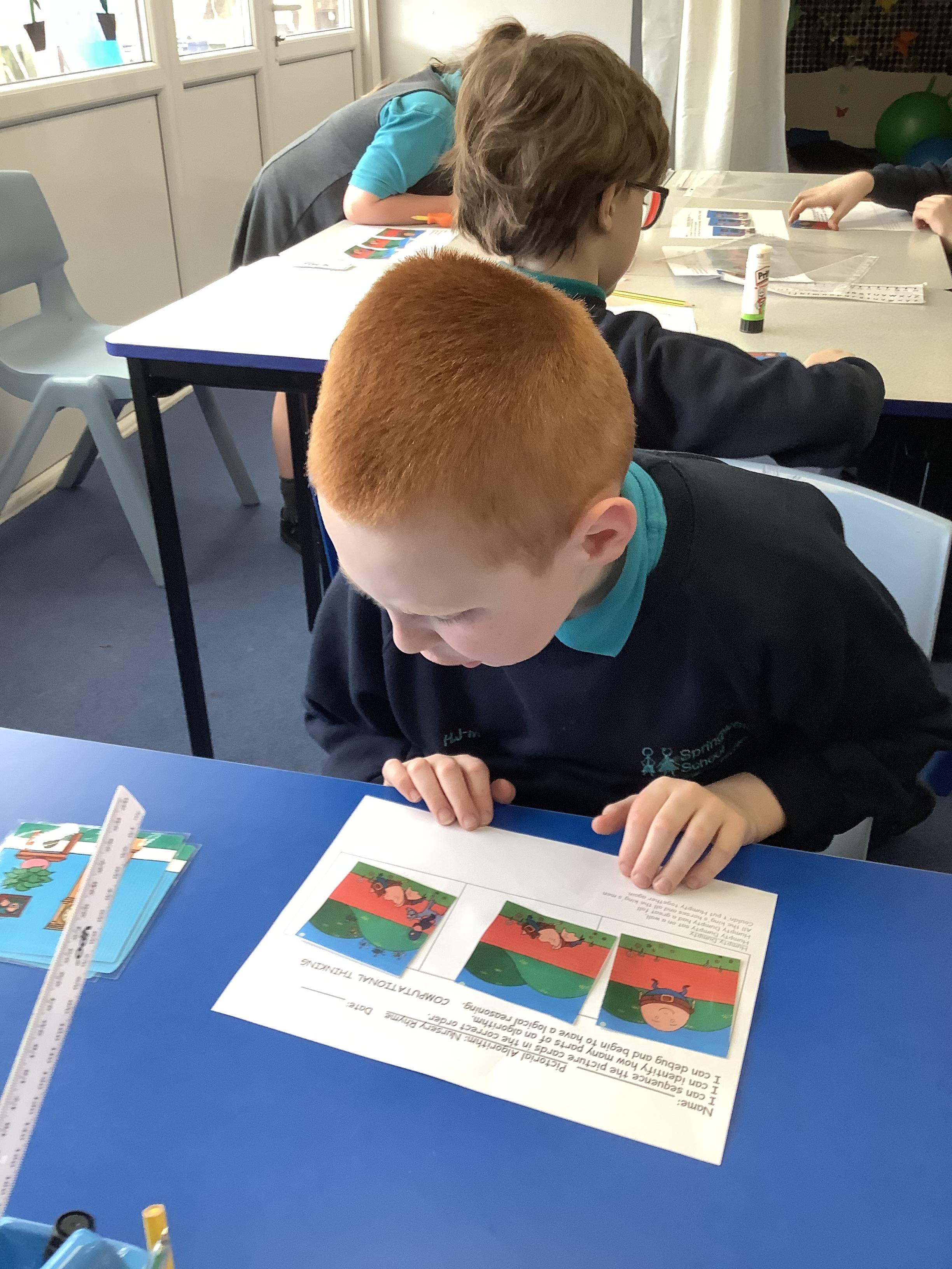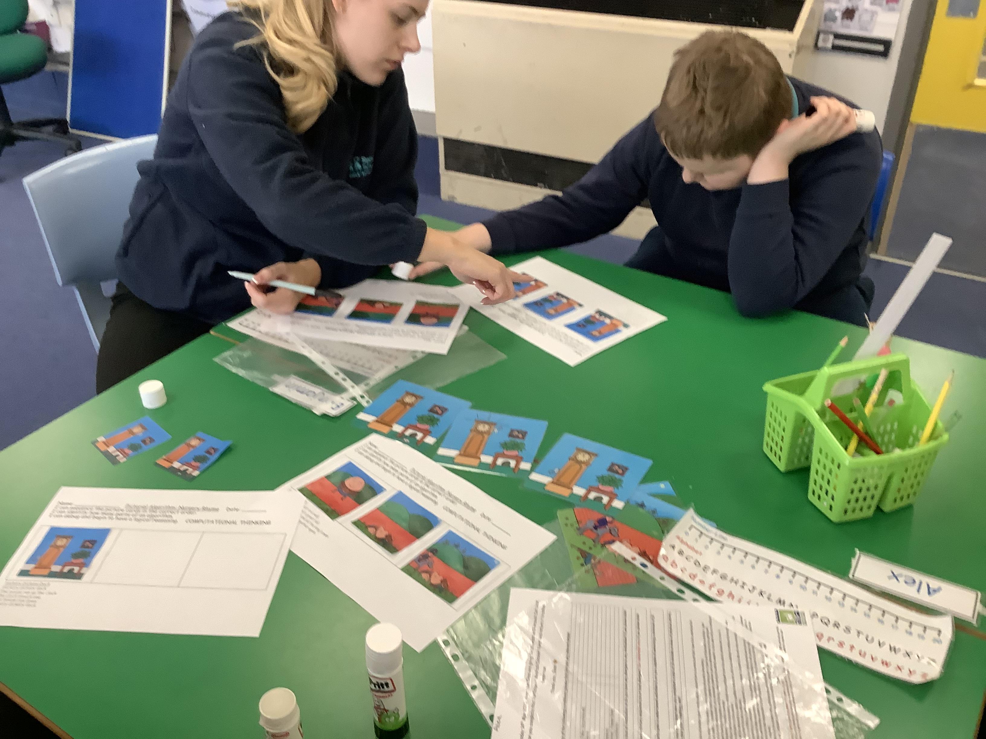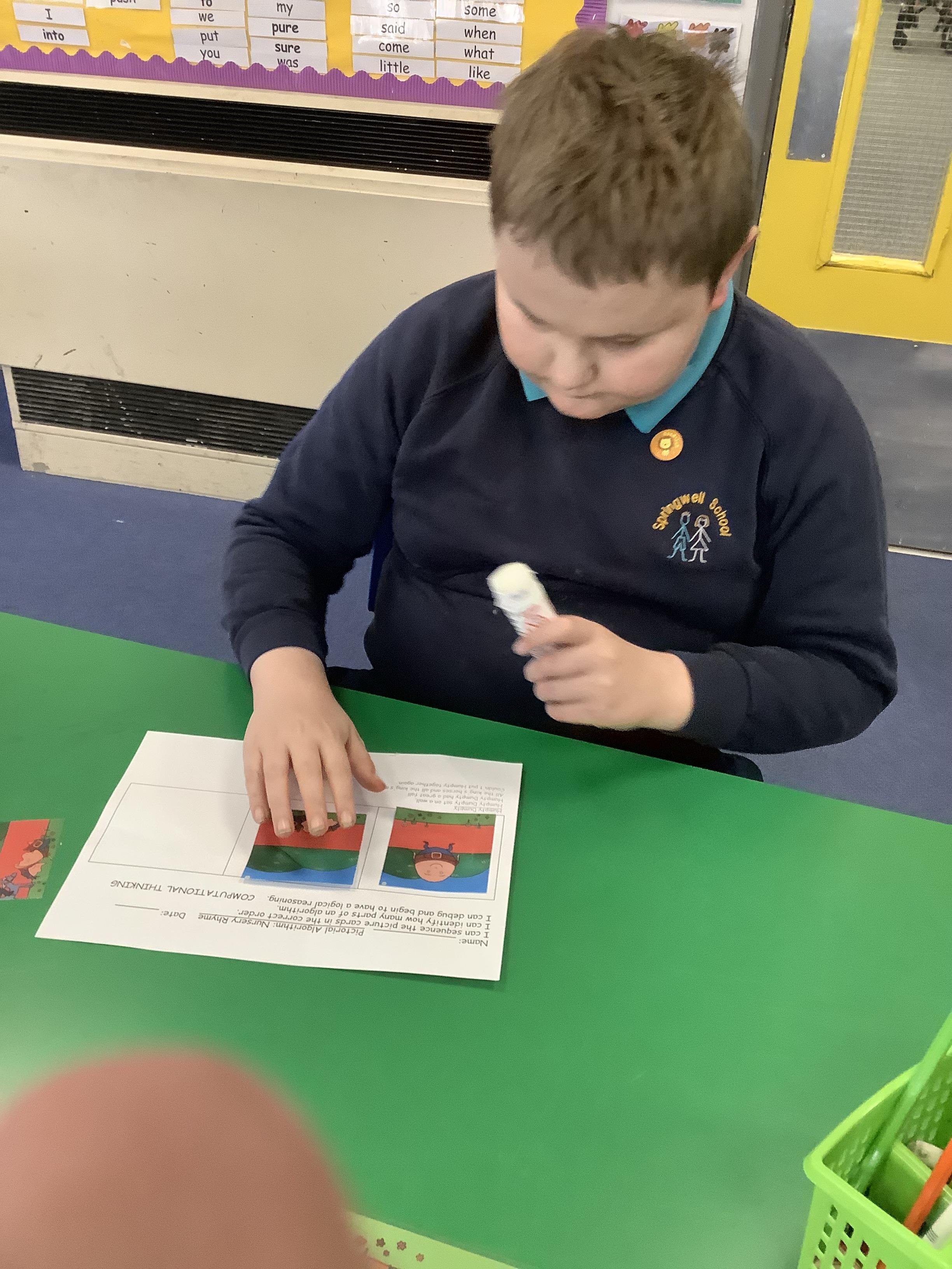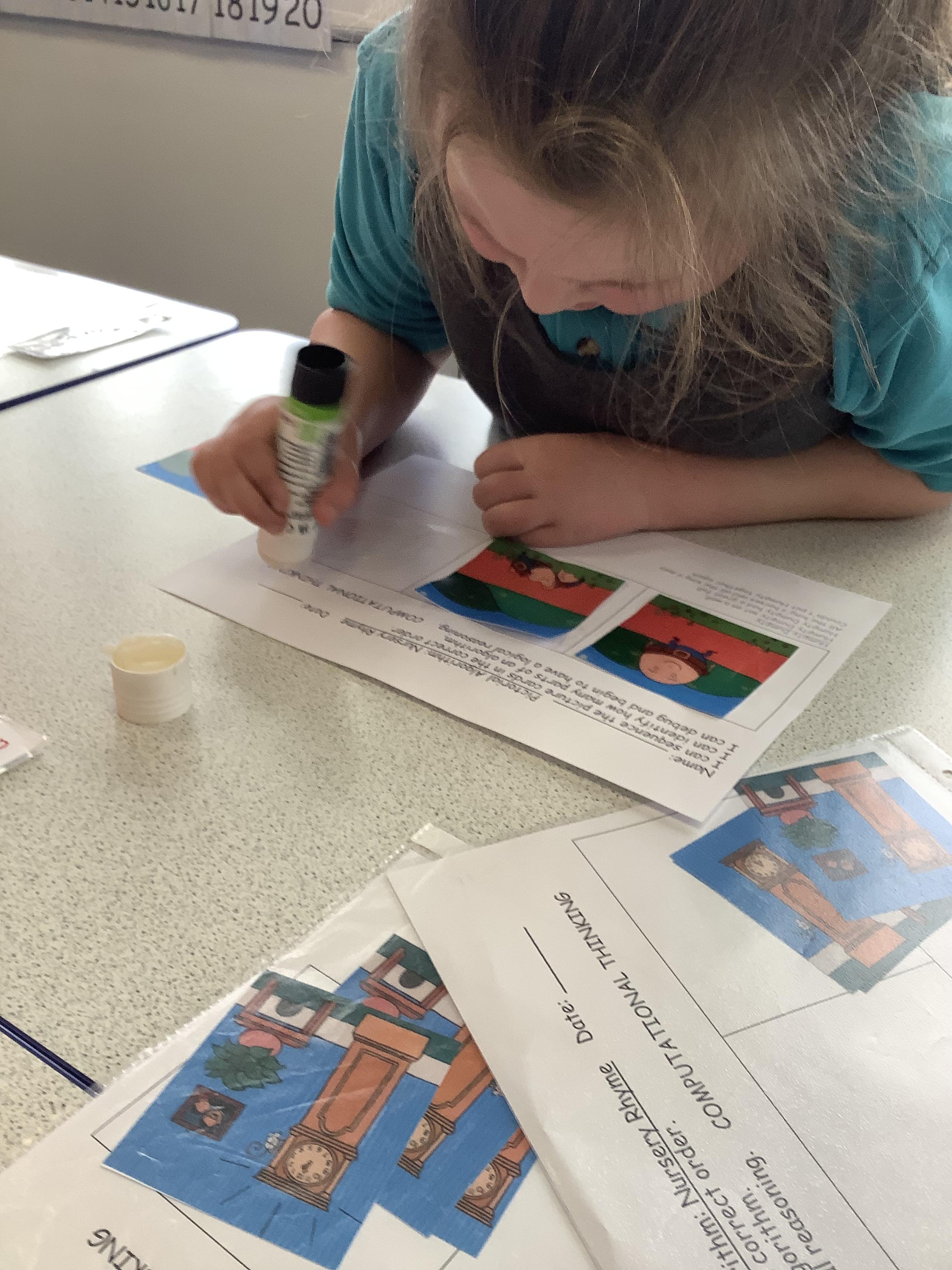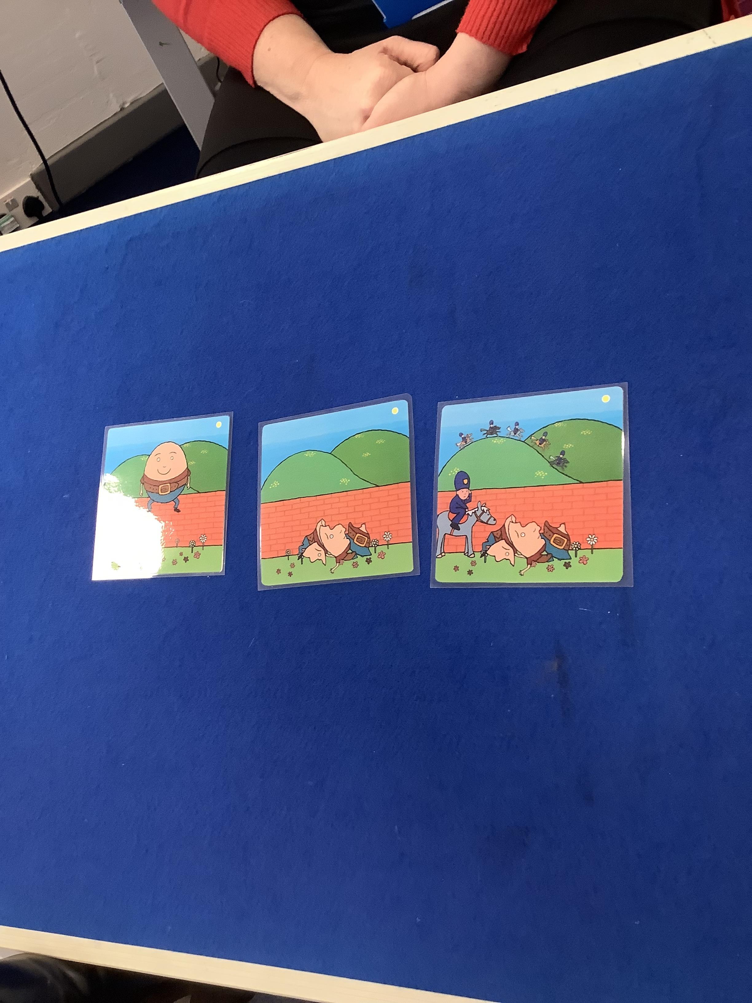 31.03.25 COMPUTING: PICTORIAL ALGORITHMS The children sequenced the nursery rhyme picture cards in the correct order. They could identify many parts of an algorithm there was. We had to debug and develop our logical reasoning when the picture cards were not in the correct order.