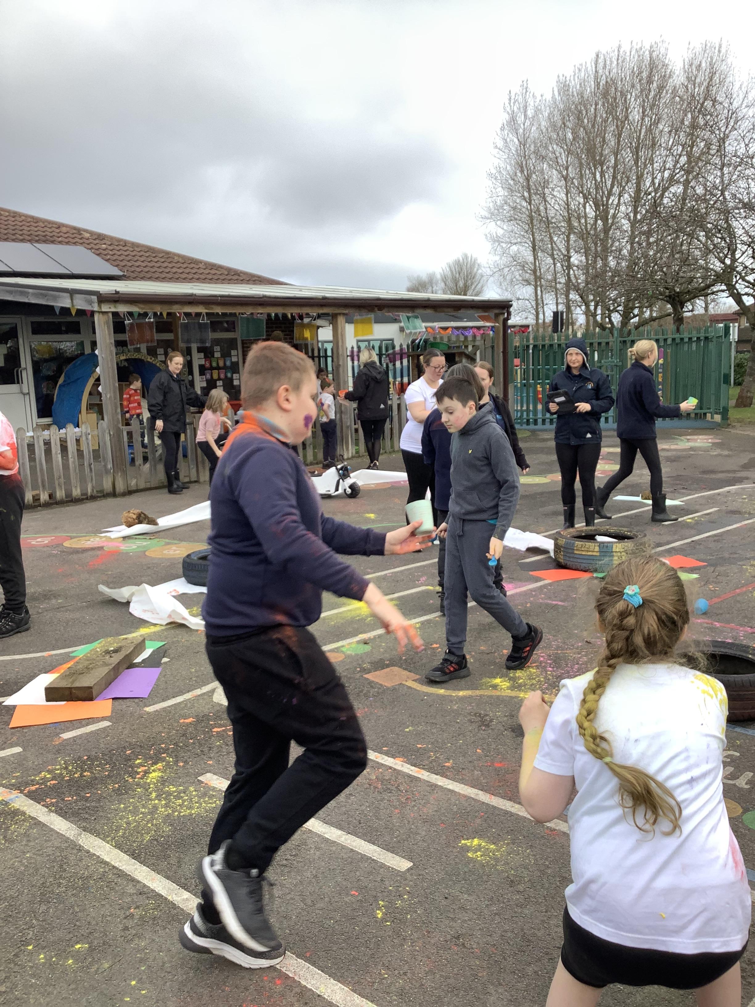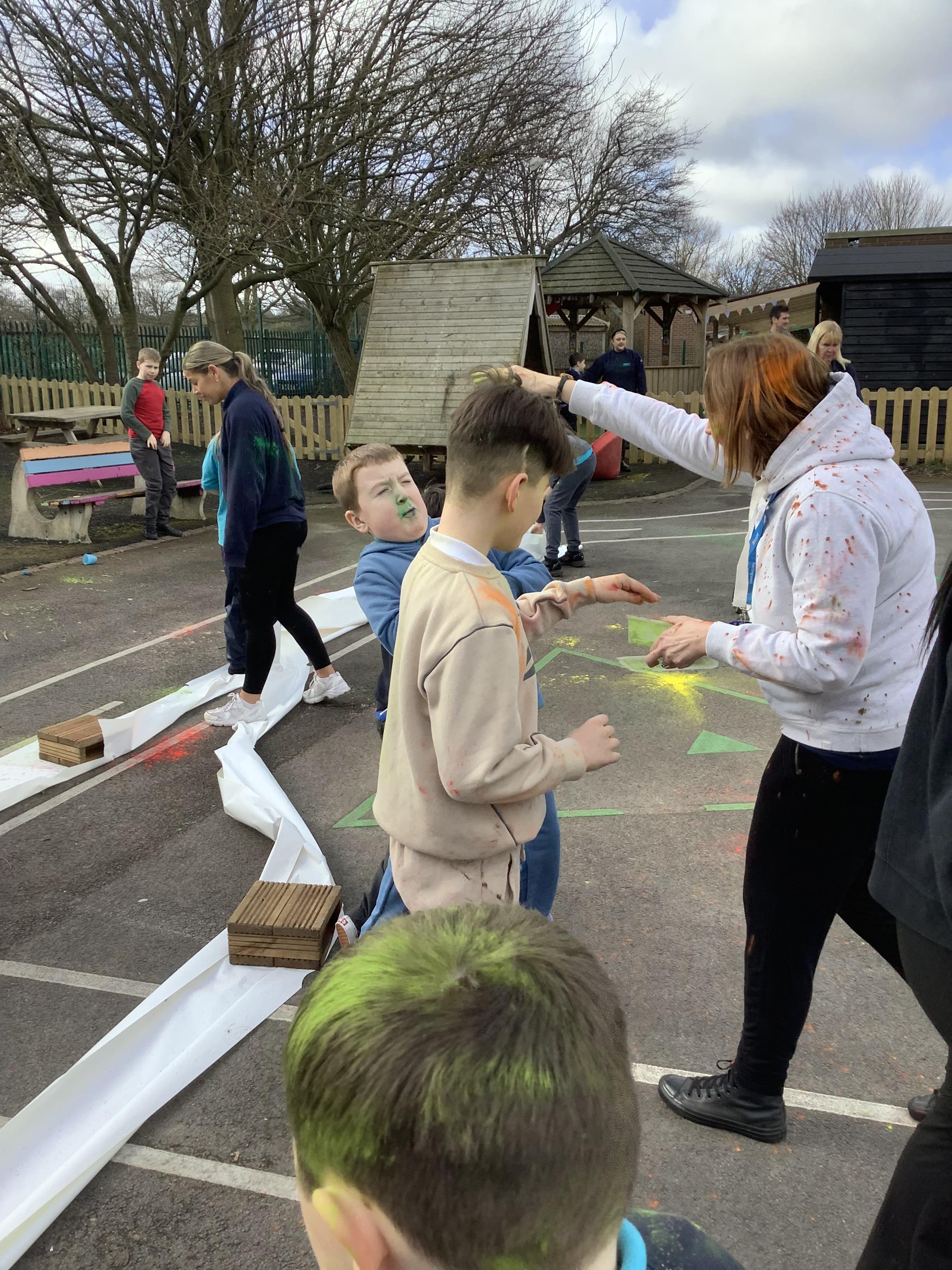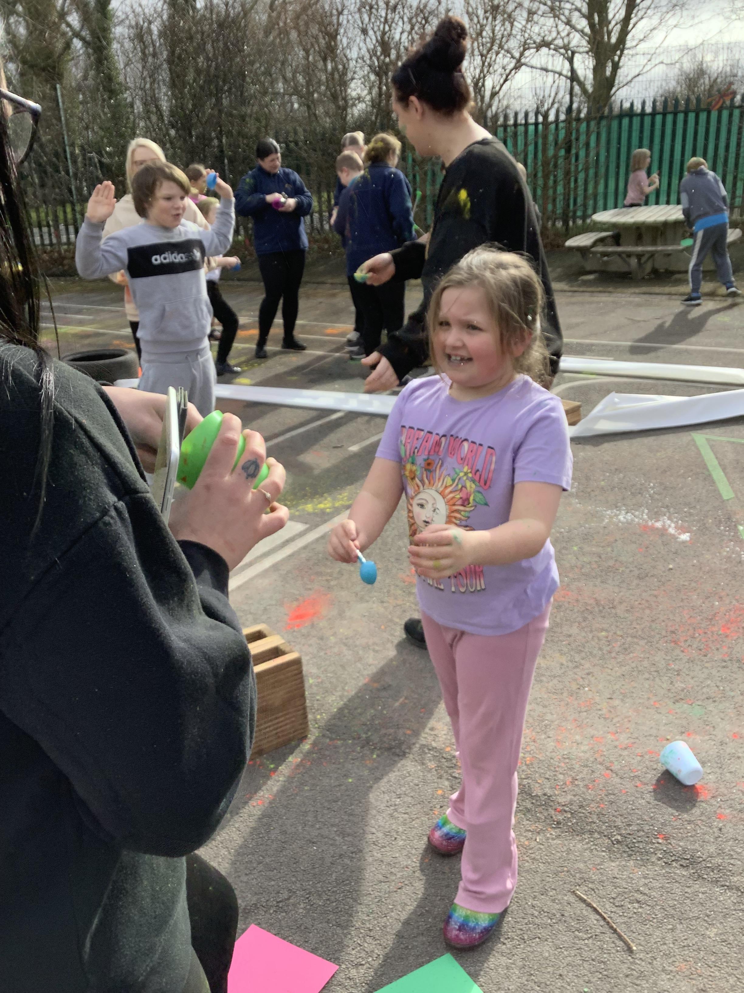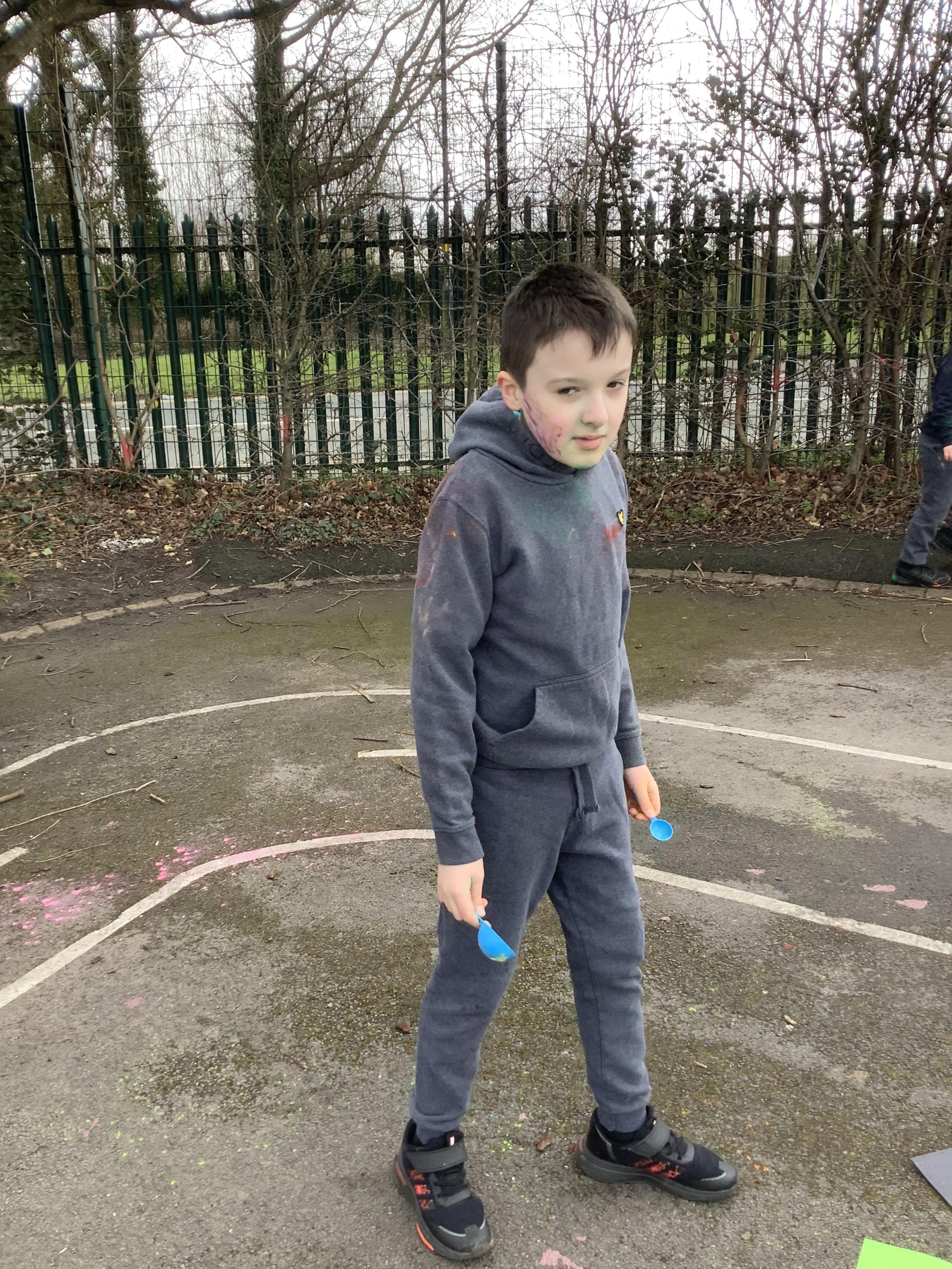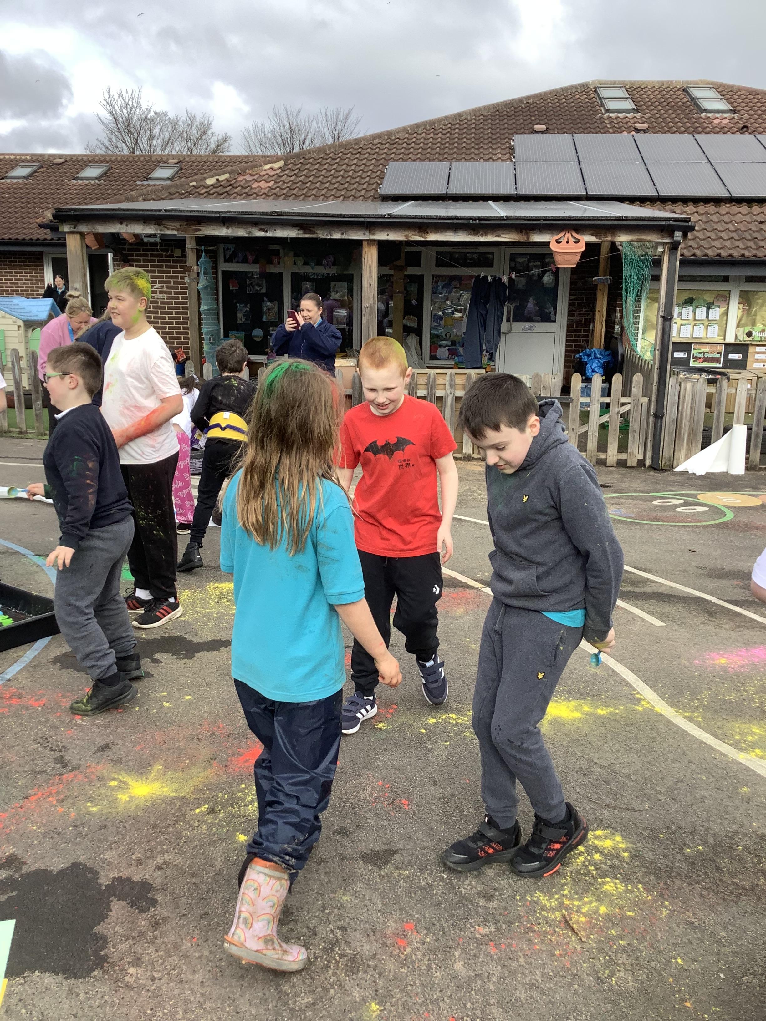 14.03.25 RE: Holi Festival! Some of the children from Anaconda Class had a brilliant time at Springwell Schools Holi Festival, the festival of colour! They had great fun throwing paint at each other and getting messy out on the yard.