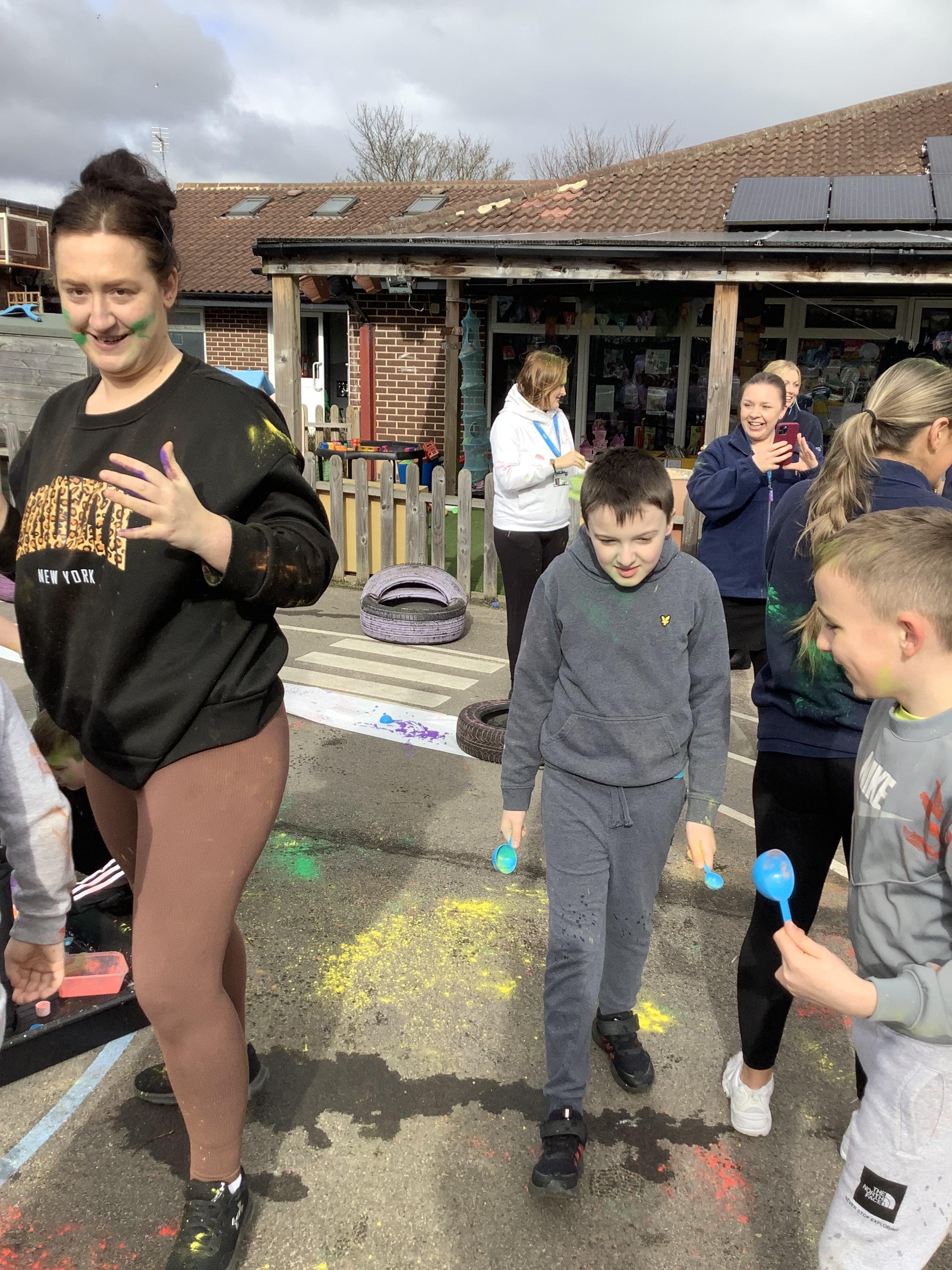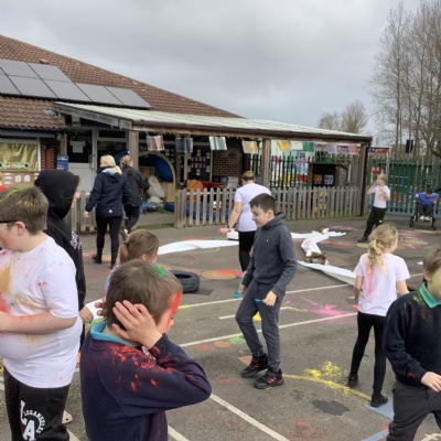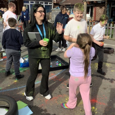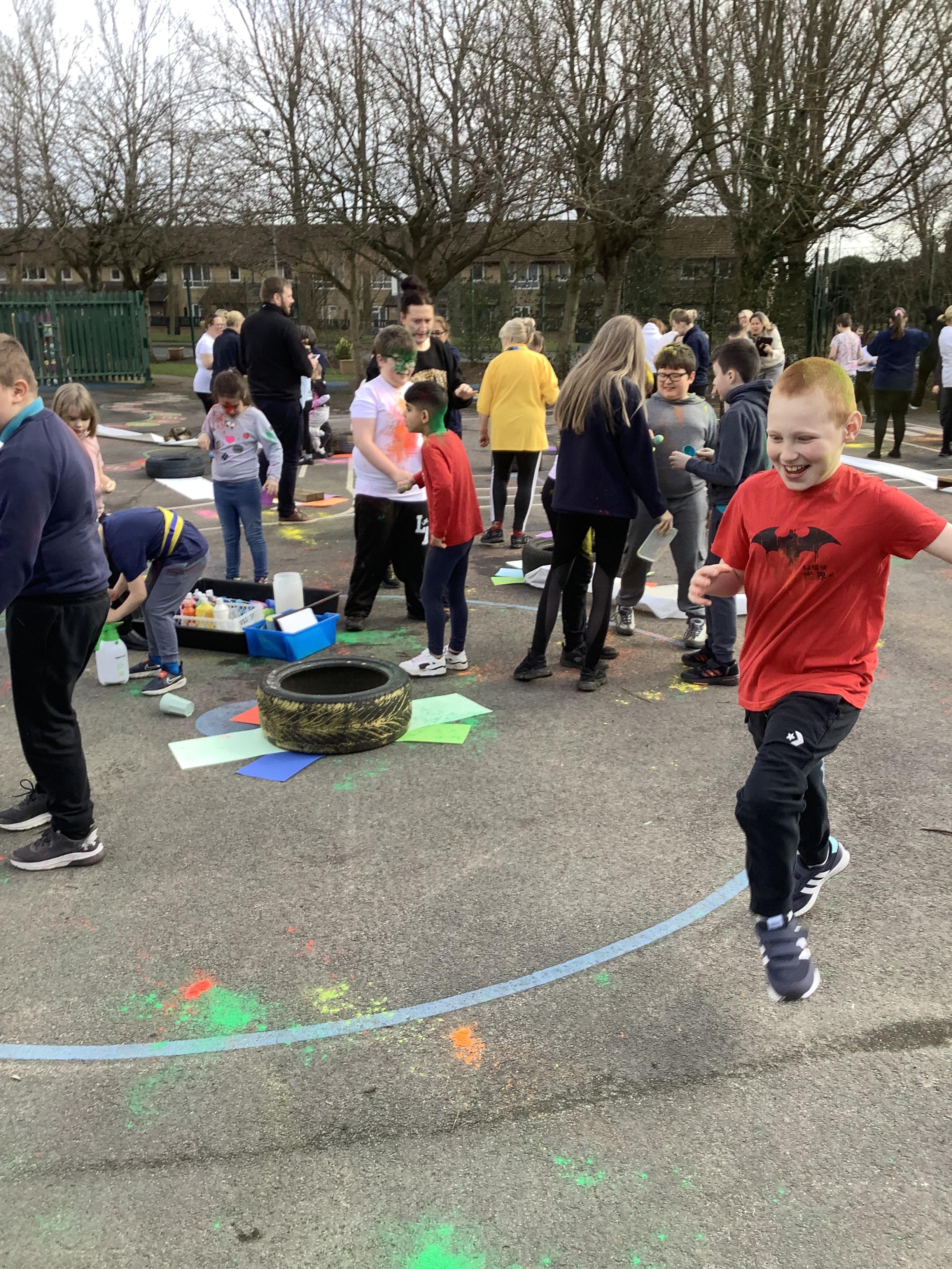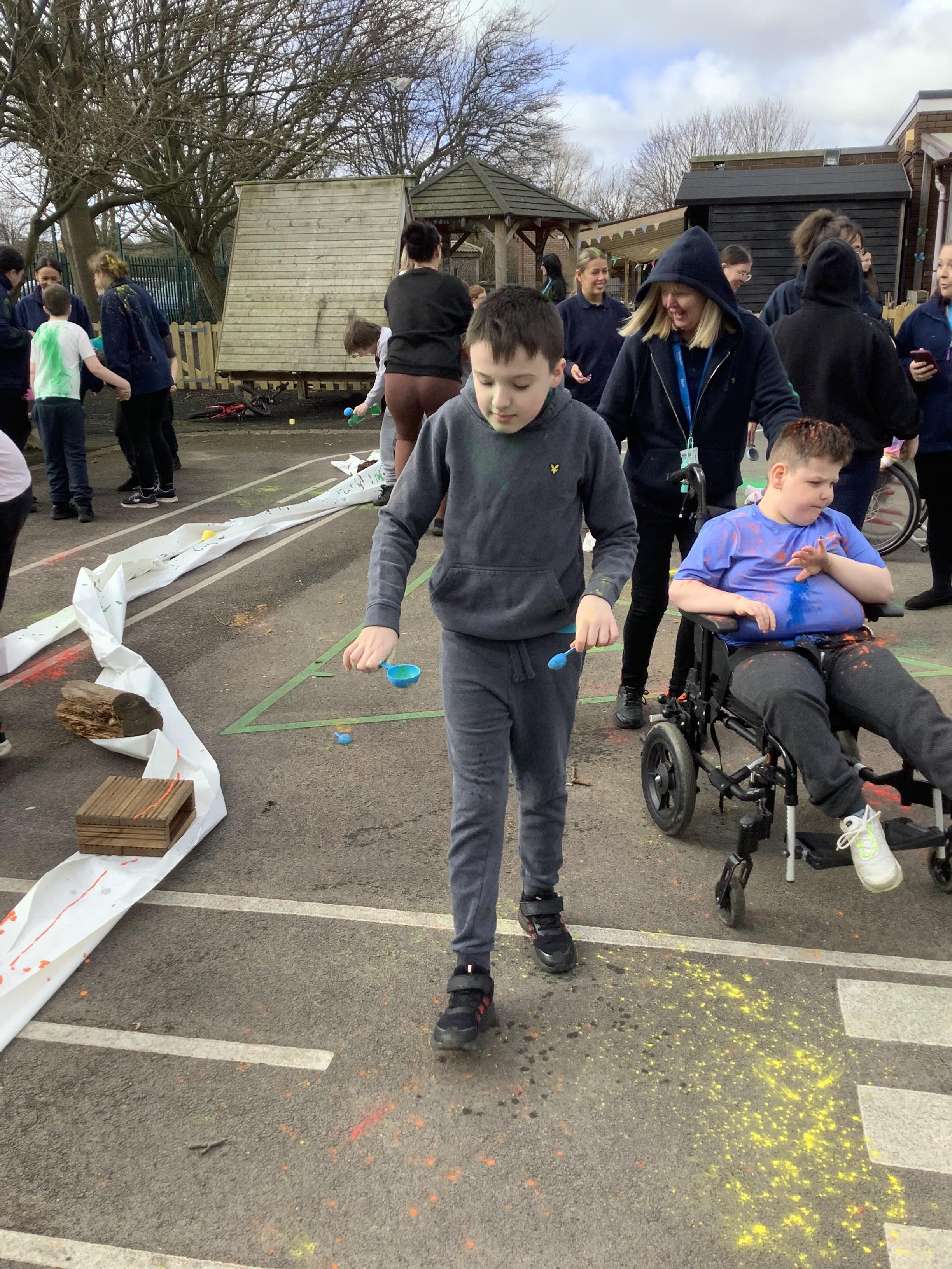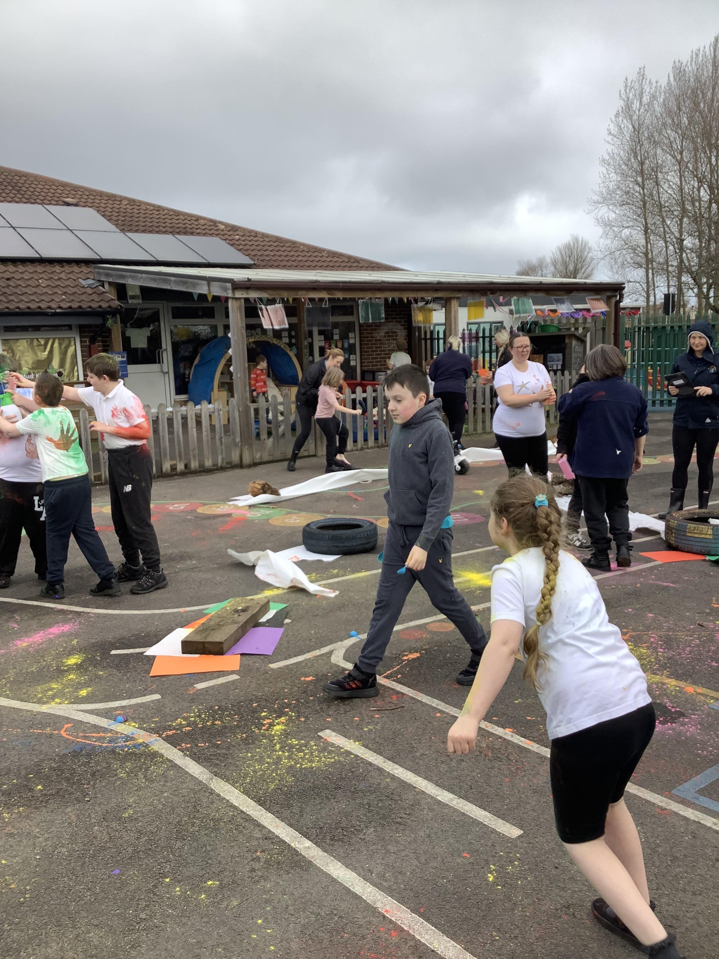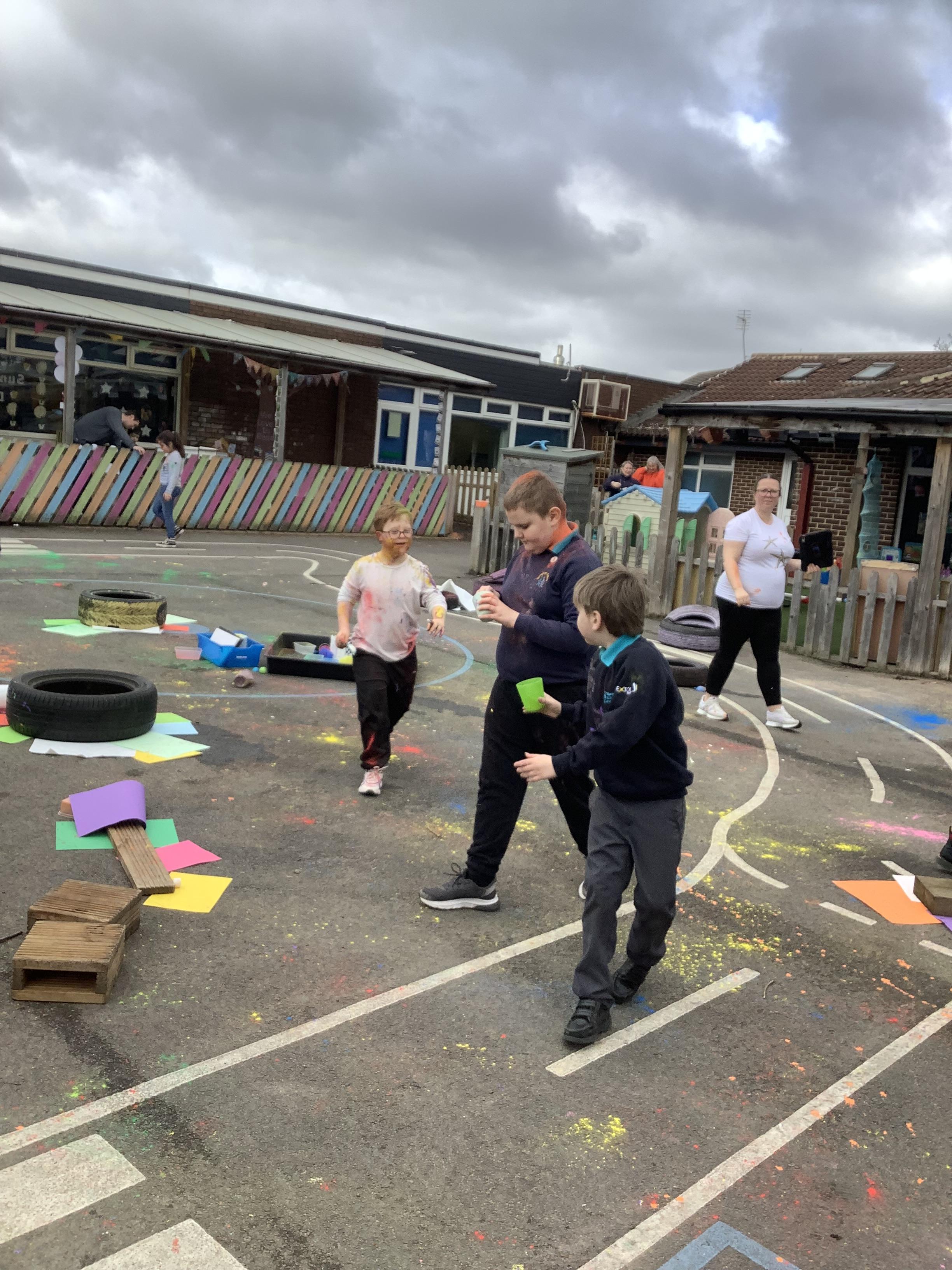 14.03.25 RE: Holi Festival! Some of the children from Anaconda Class had a brilliant time at Springwell Schools Holi Festival, the festival of colour! They had great fun throwing paint at each other and getting messy out on the yard.