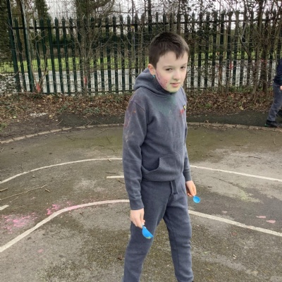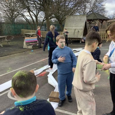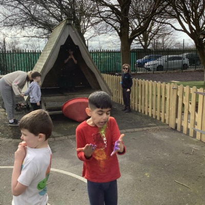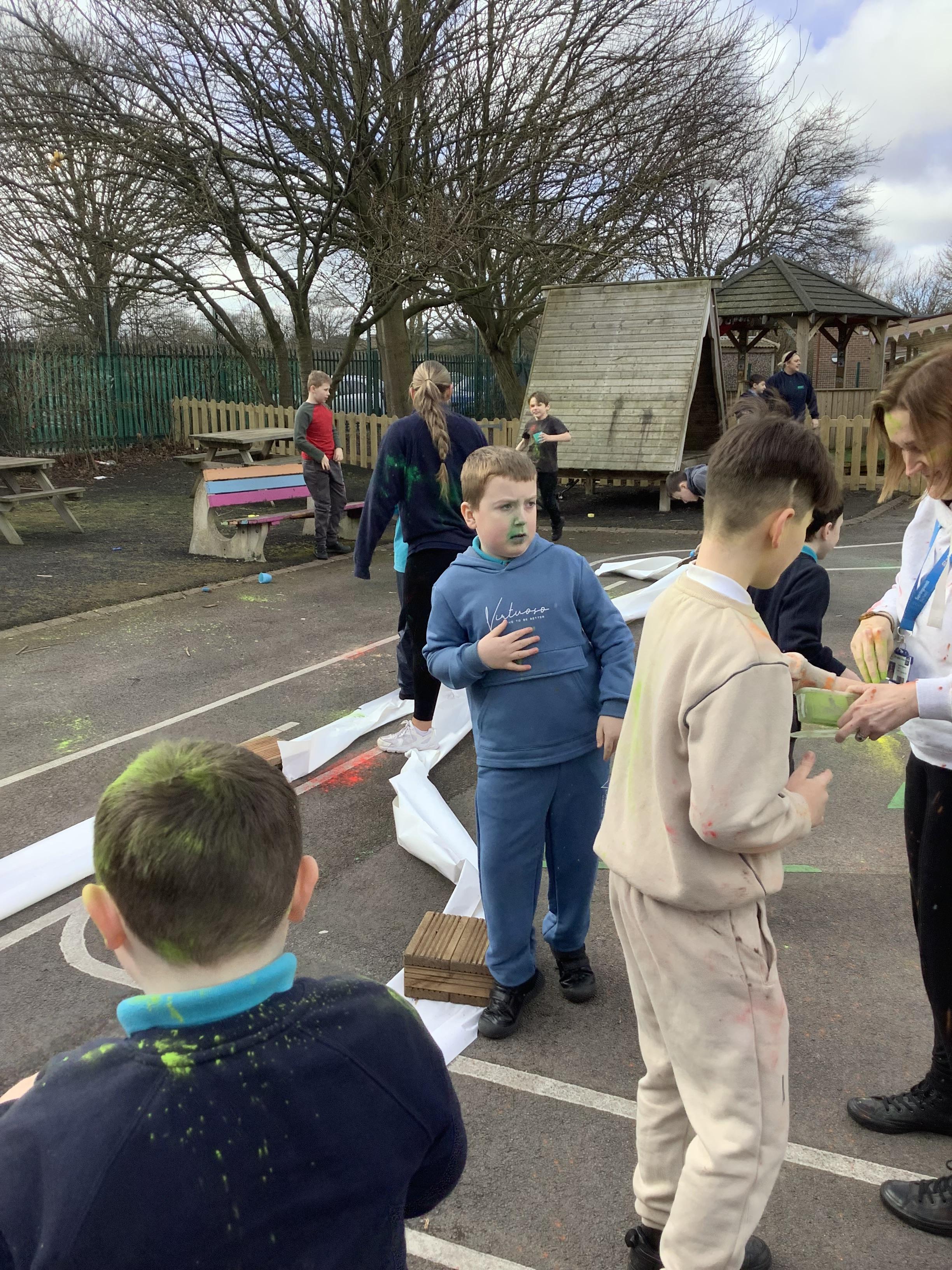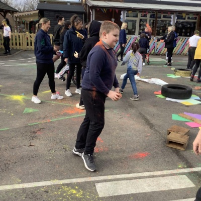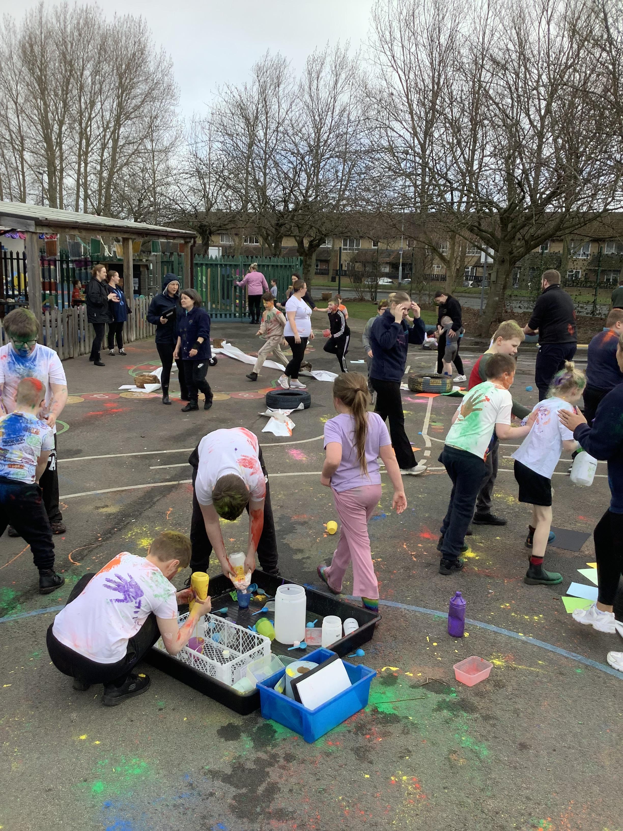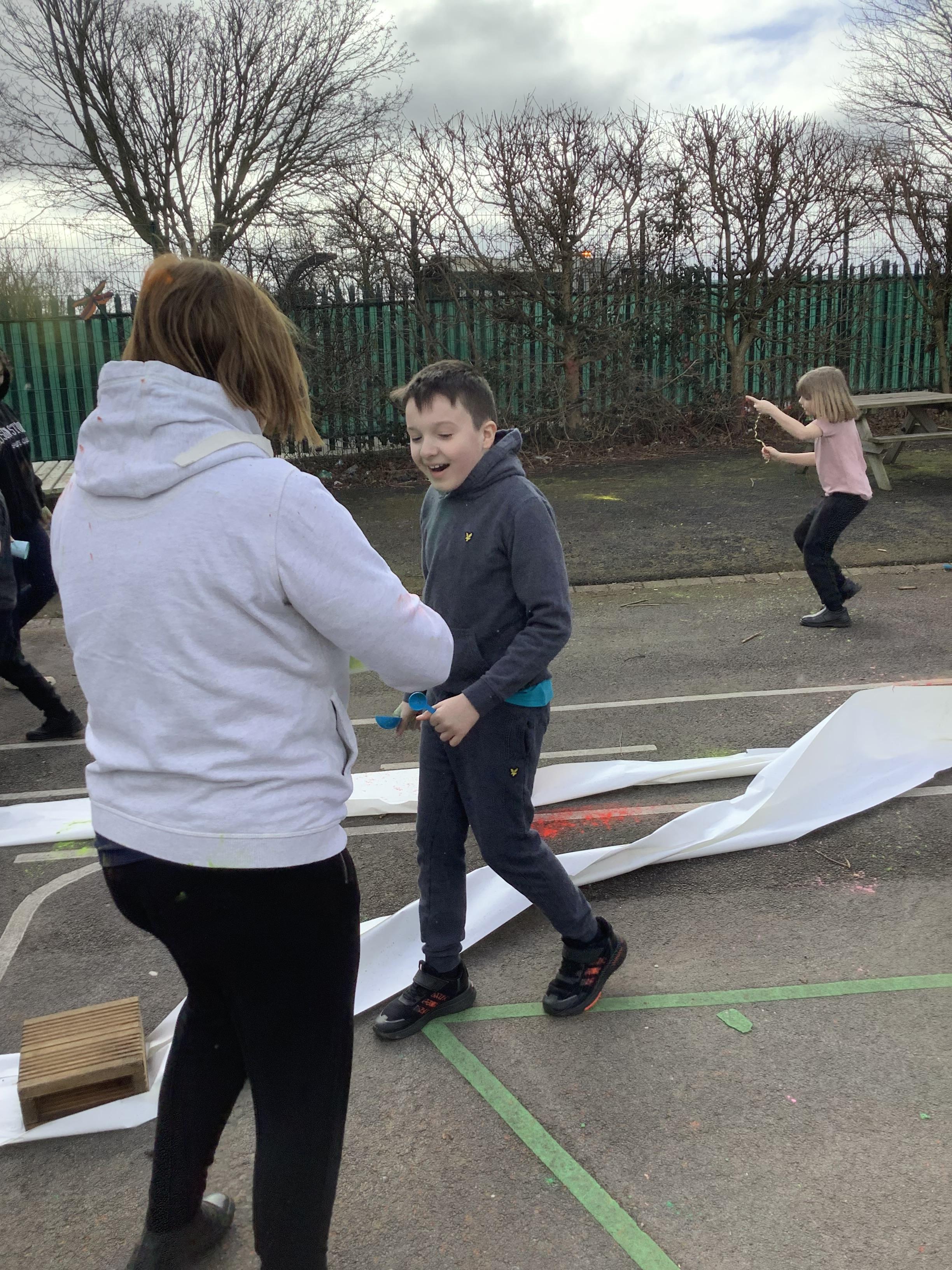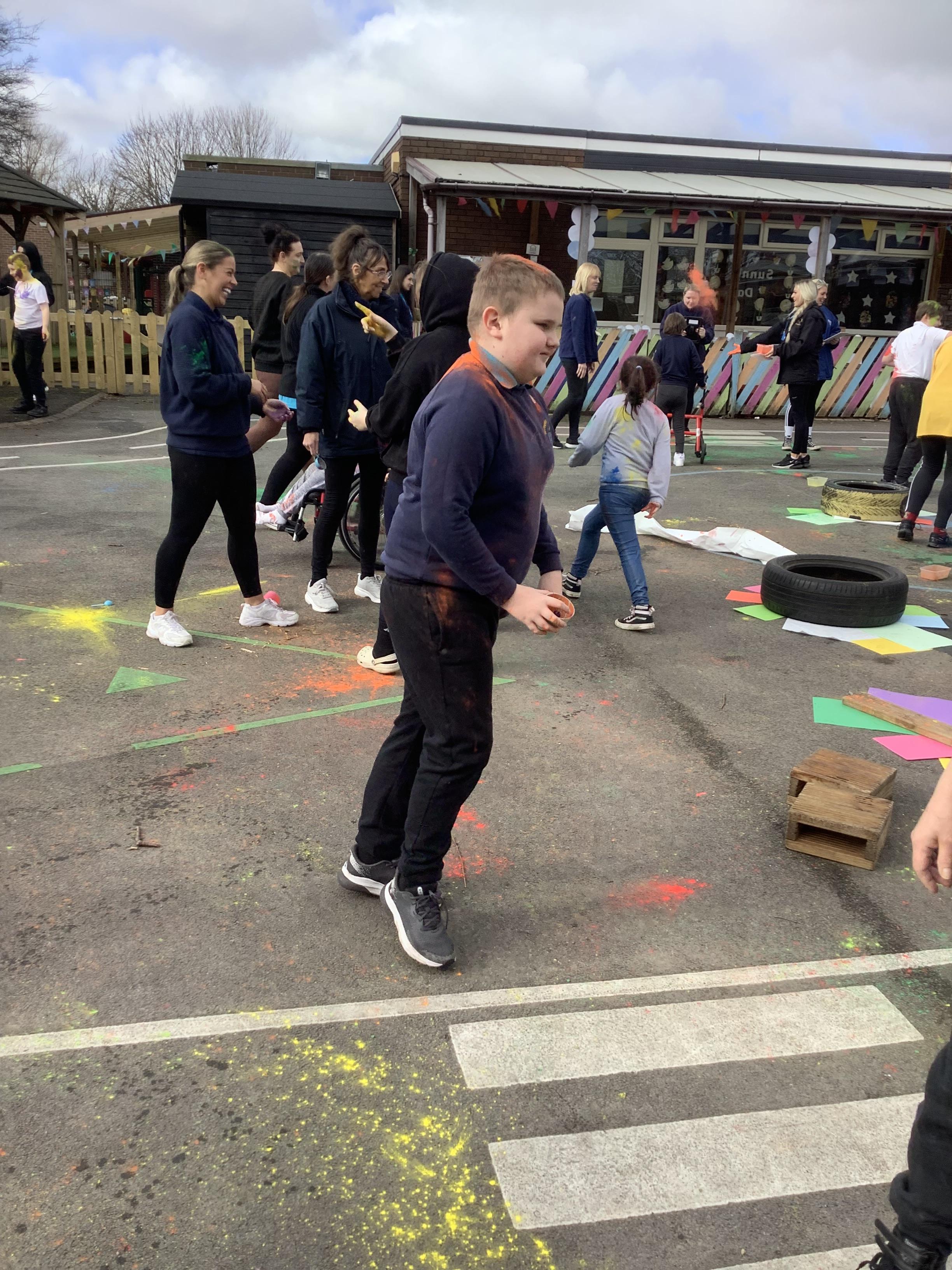 14.03.25 RE: Holi Festival! Some of the children from Anaconda Class had a brilliant time at Springwell Schools Holi Festival, the festival of colour! They had great fun throwing paint at each other and getting messy out on the yard.
