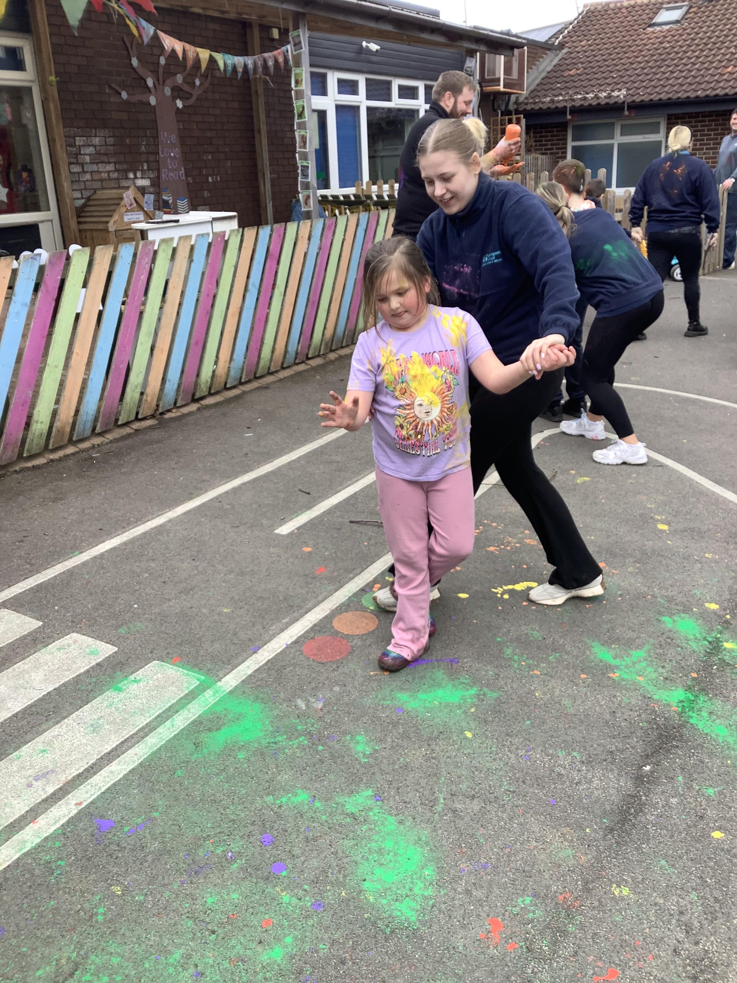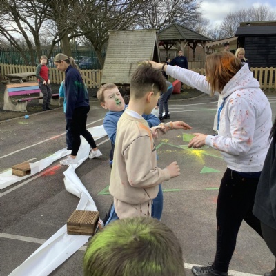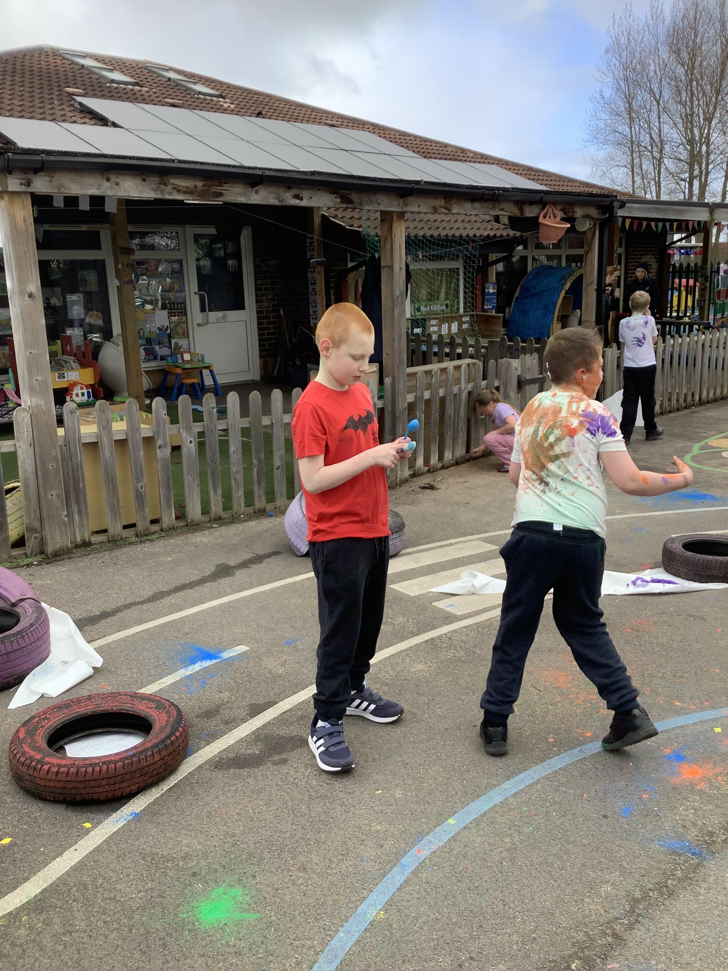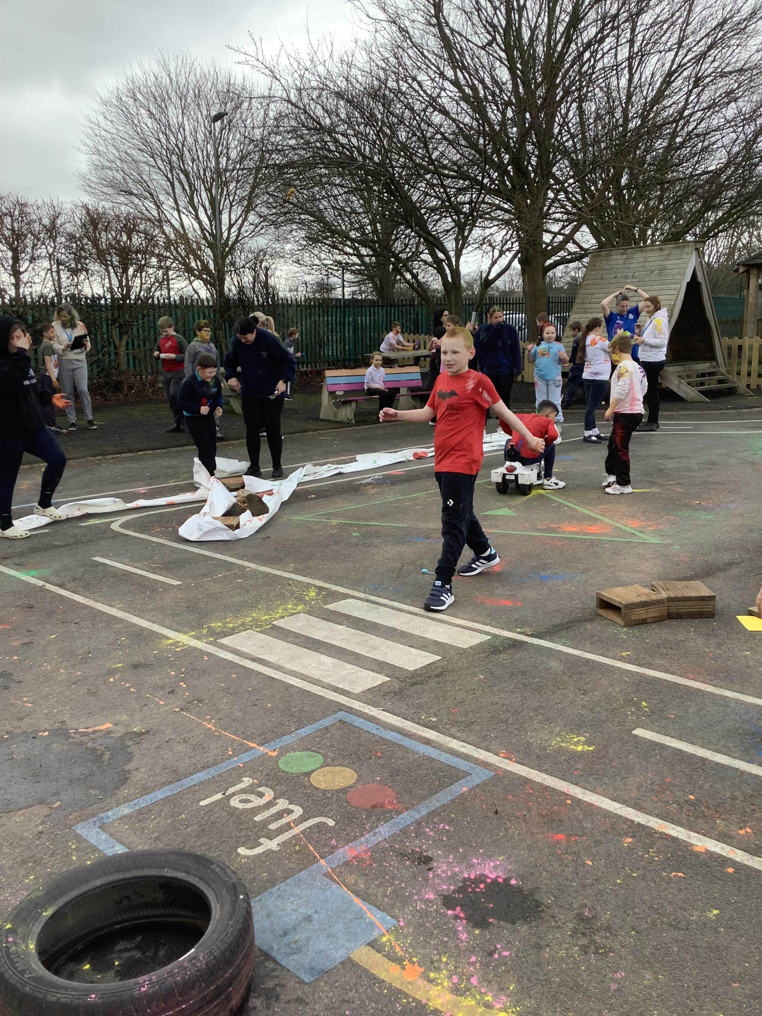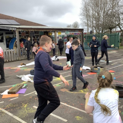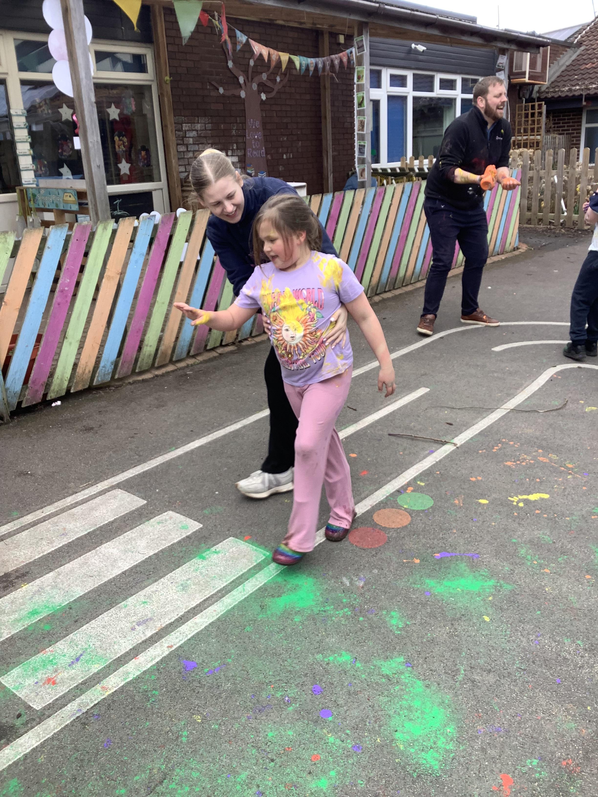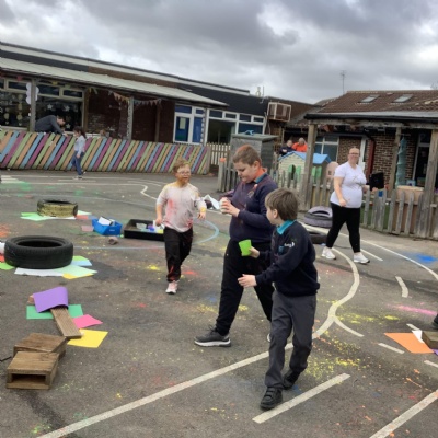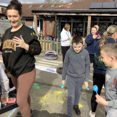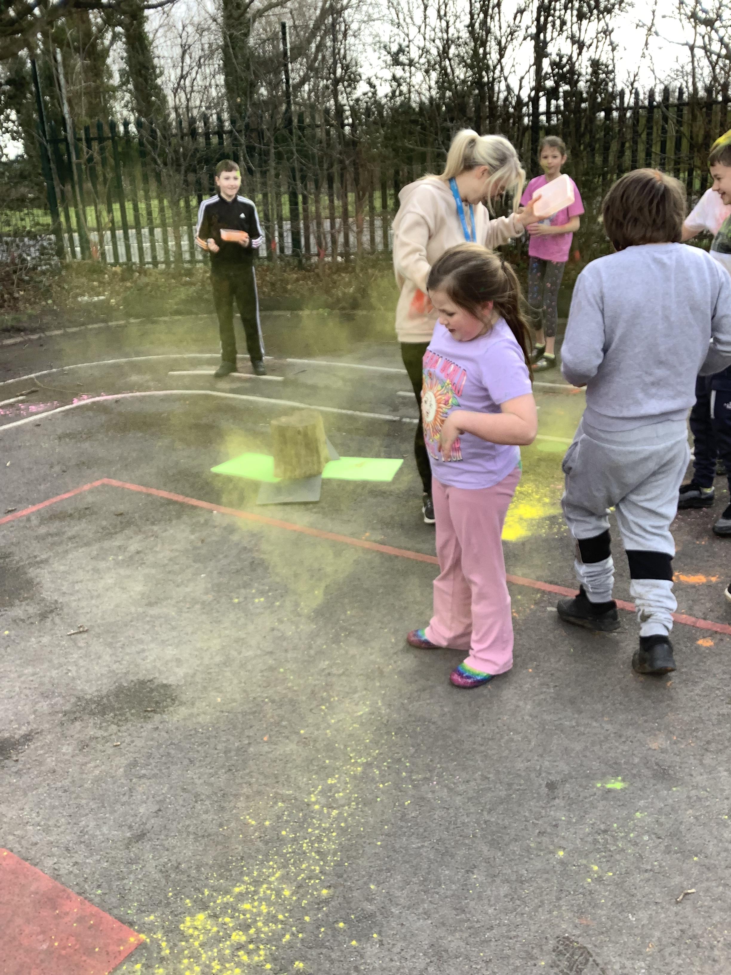 14.03.25 RE: Holi Festival! Some of the children from Anaconda Class had a brilliant time at Springwell Schools Holi Festival, the festival of colour! They had great fun throwing paint at each other and getting messy out on the yard.