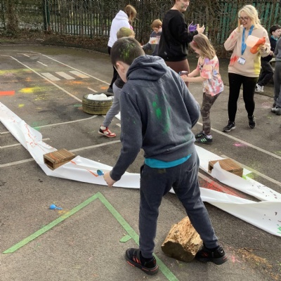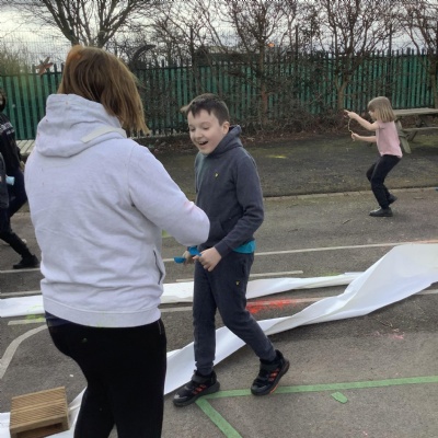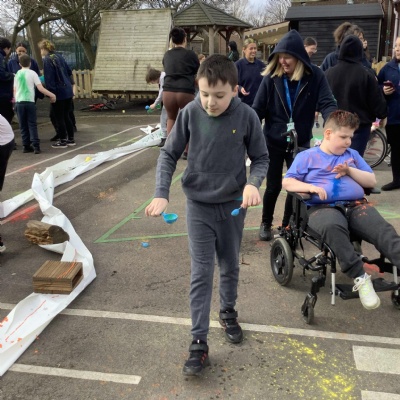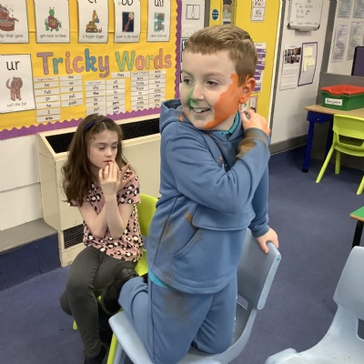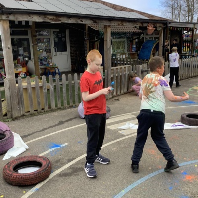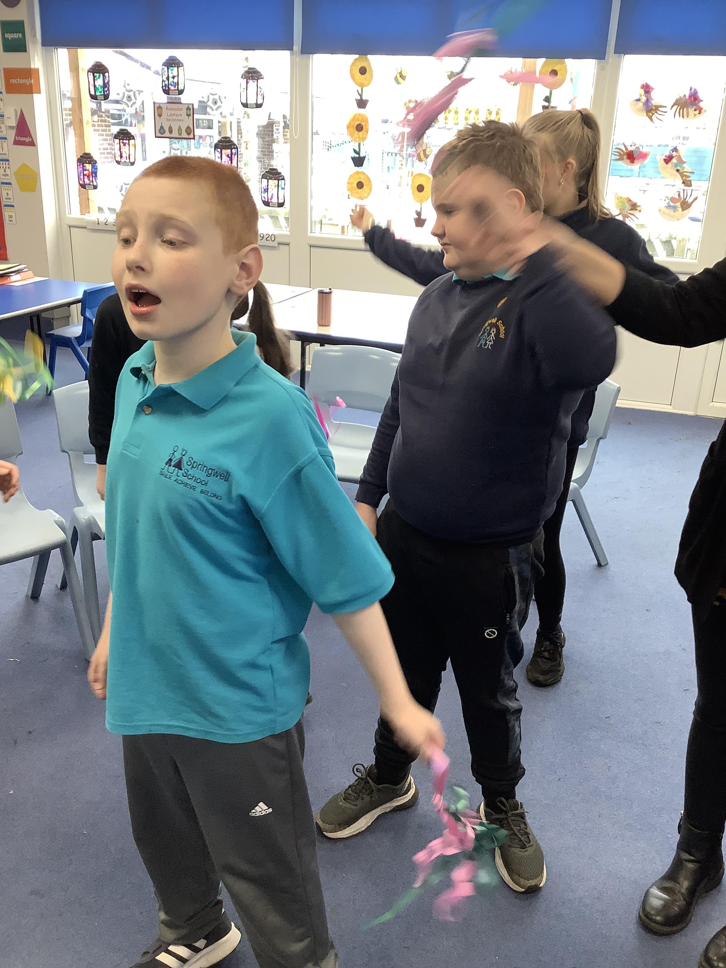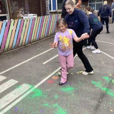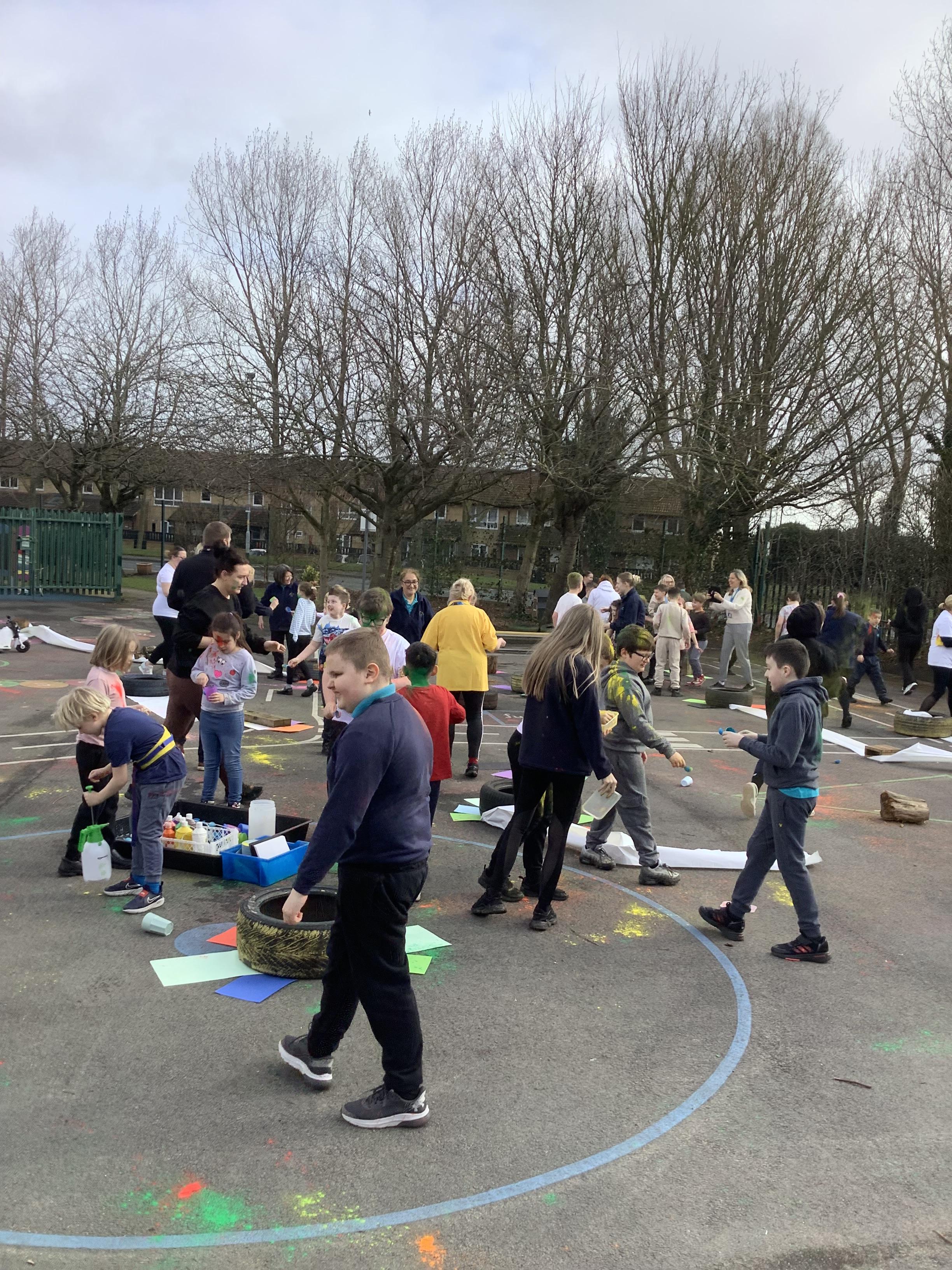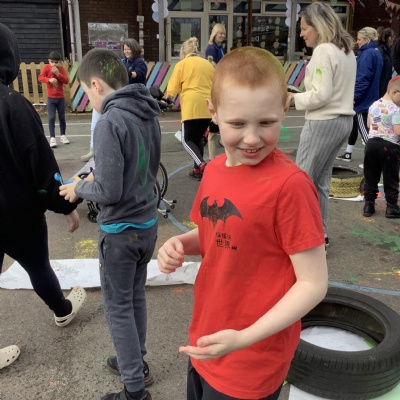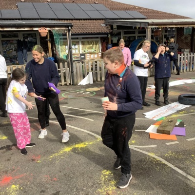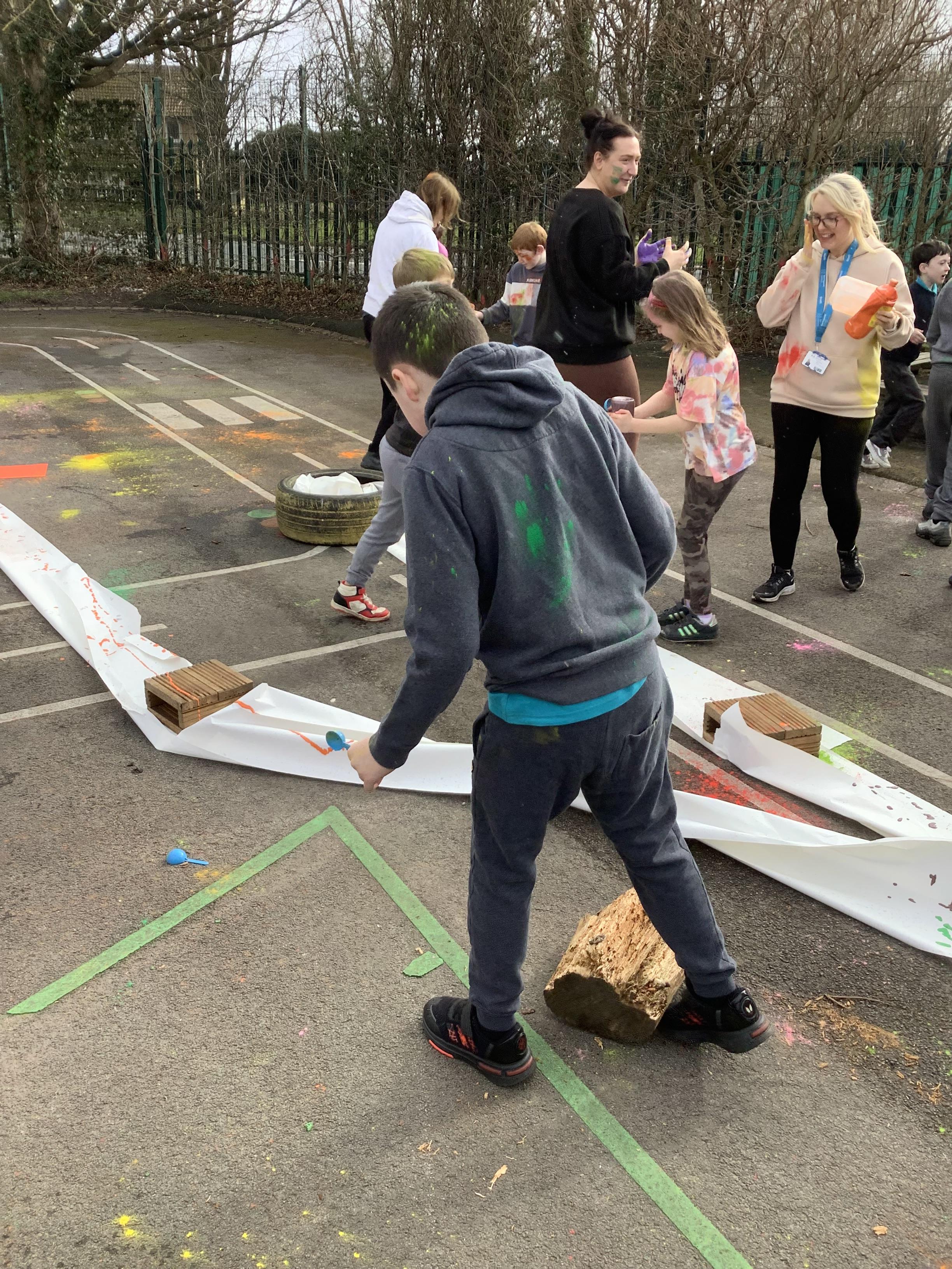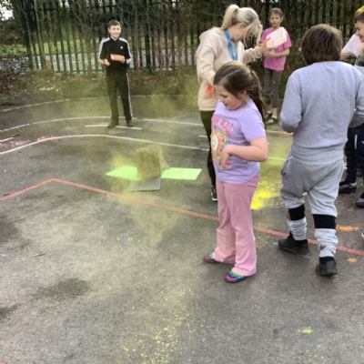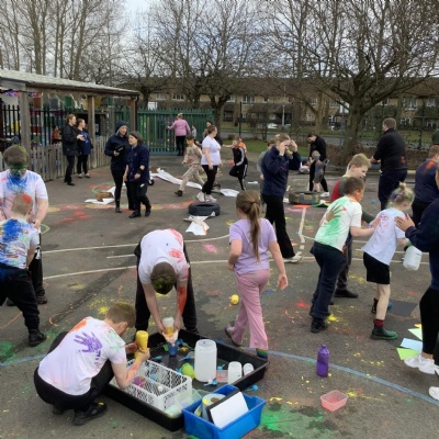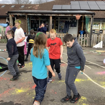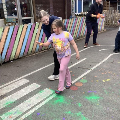 14.03.25 RE: Holi Festival! Some of the children from Anaconda Class had a brilliant time at Springwell Schools Holi Festival, the festival of colour! They had great fun throwing paint at each other and getting messy out on the yard.