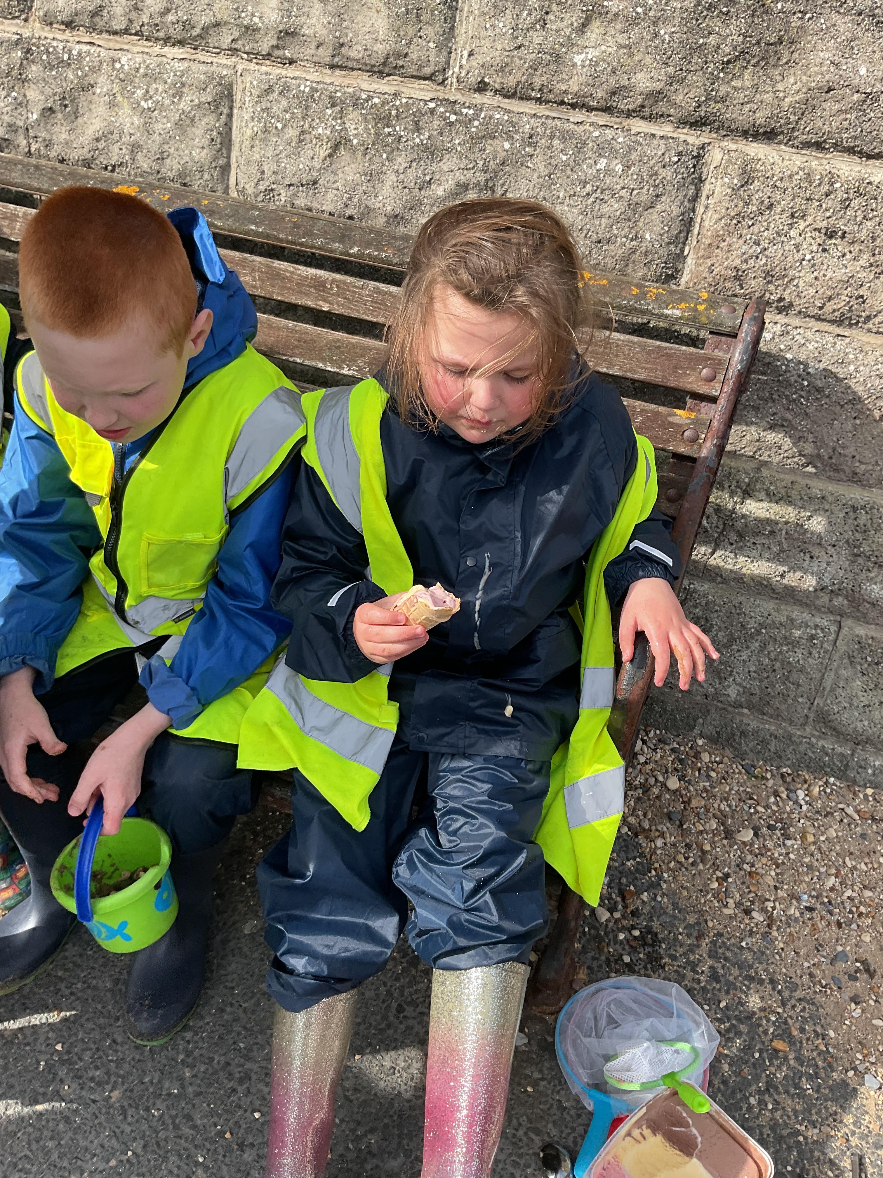 27.03.25 SCIENCE HABITATS IN HARTLEPOOL: BEACH We visited the Headland Beach. We explored an identified the different features of the beach and looked at what animals lives there too. We collected interesting objects in our buckets e.g seaweed, shells, rocks etc. Before we came back to school, we sat down together on the bench and had a delicious ice cream!