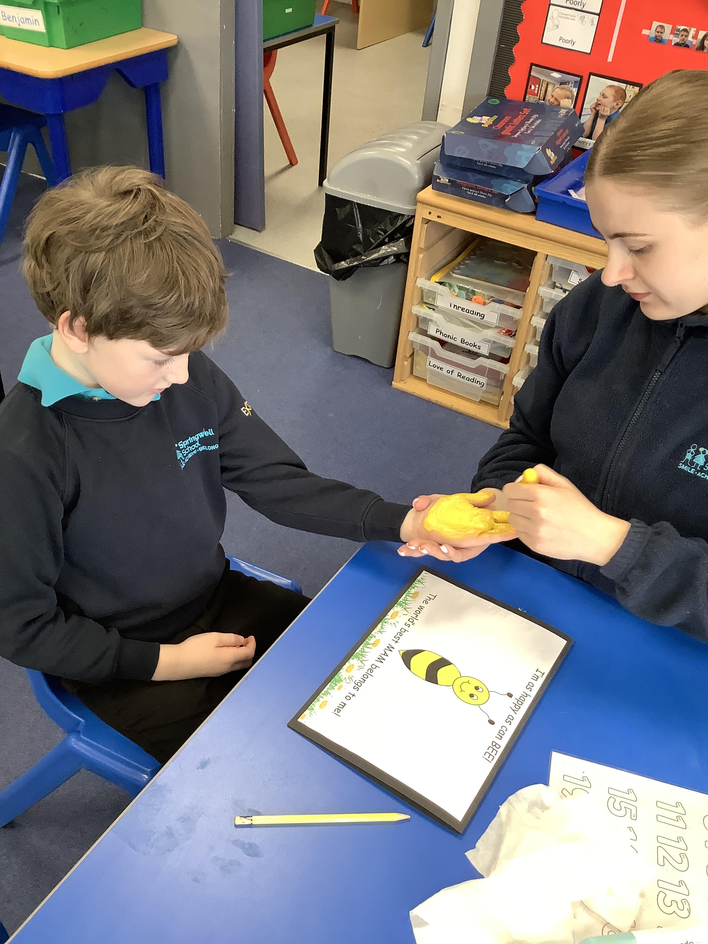 23.01.25 WRITING - DOUGH DISCO: The children are developing their fine motor skills by moulding the dough in variety of ways e.g. squashing, rolling, pinching etc. which in turn helps to improve their mark making and writing skills!