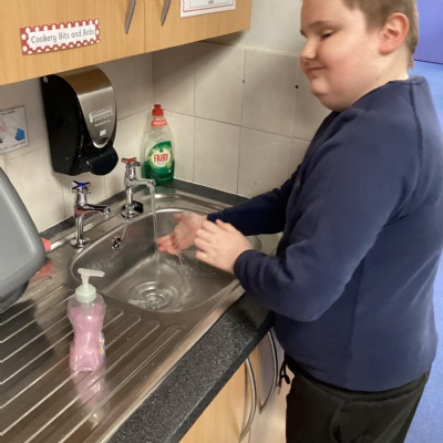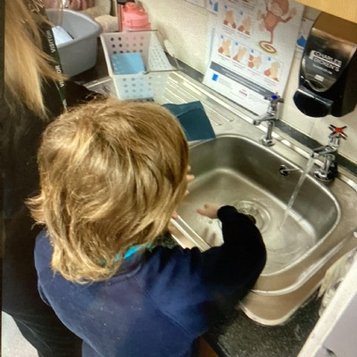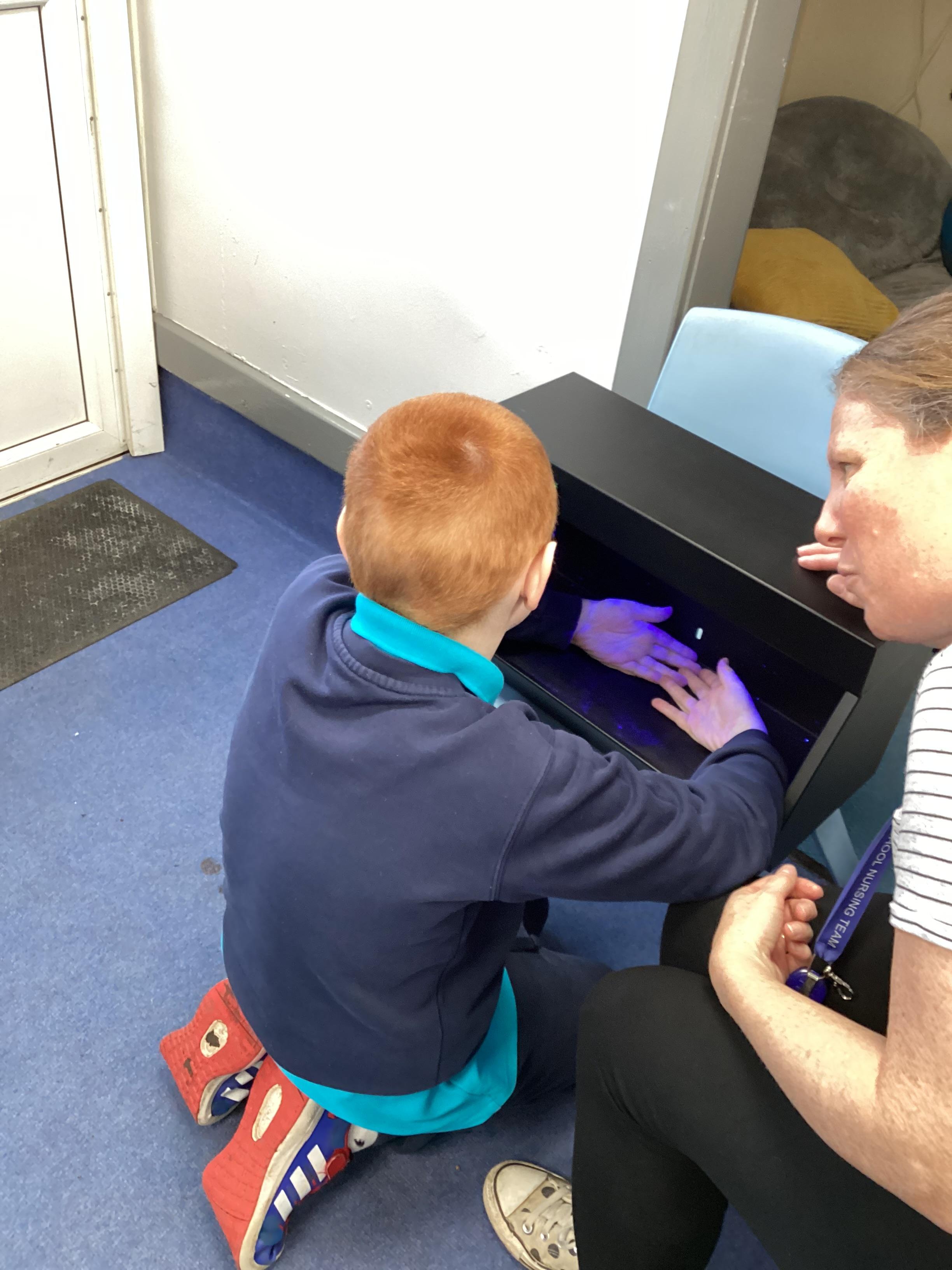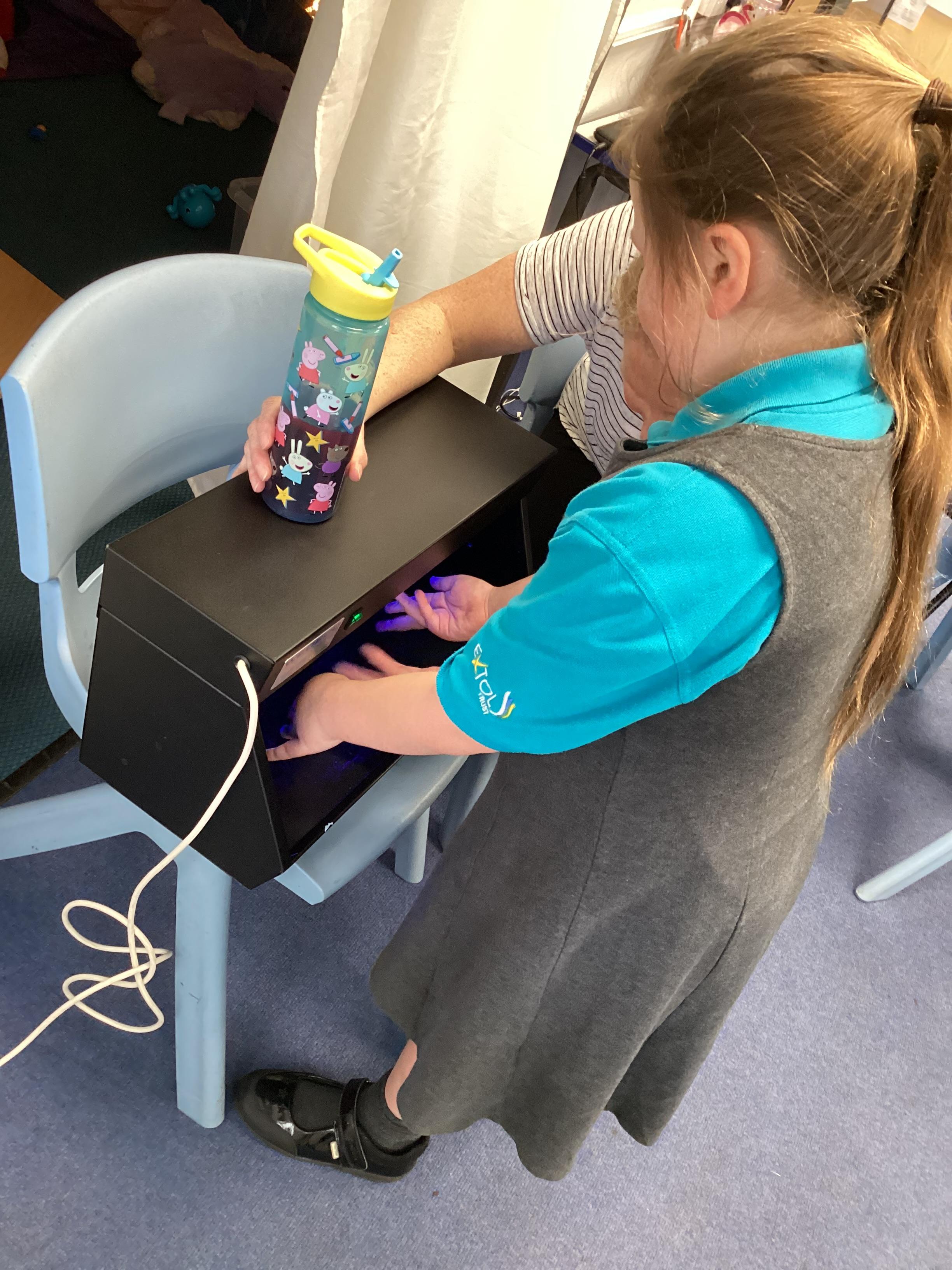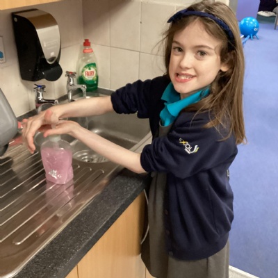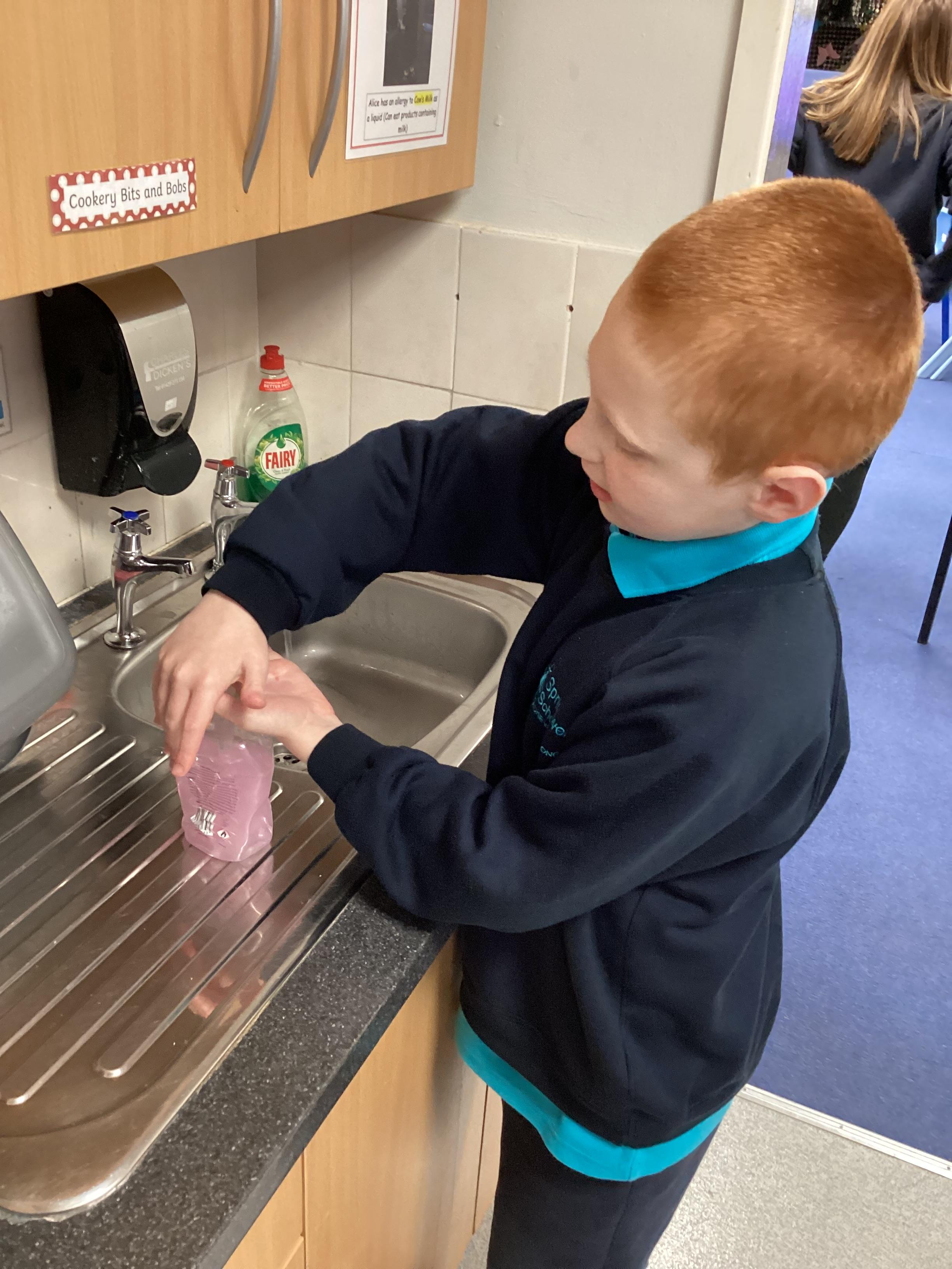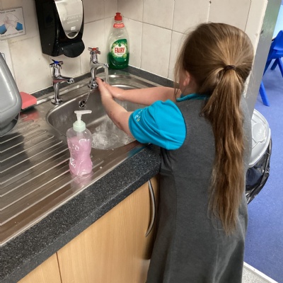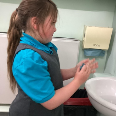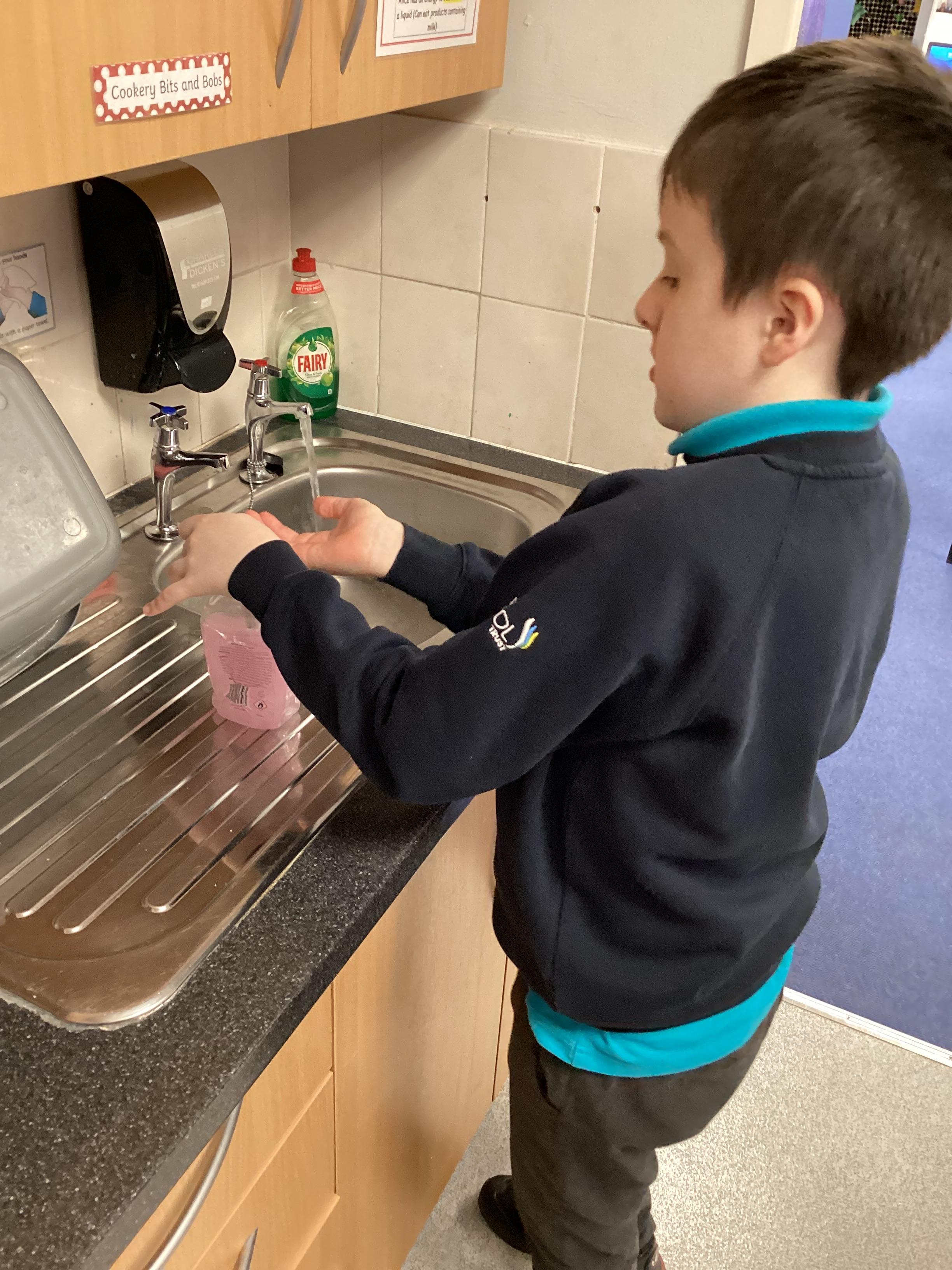 21.02.25 PHSRE: HAND WASHING The school nurses came into school today and read the children a story called: 'I Don't Want To Wash My Hands!' by Tony Ross. The children put special soap on their hands and placed them under a light box which illuminated all the germs. The children washed all their germs off their hands with soap and water. The nurses explained the importance of washing our hands regularly and when we should do so.