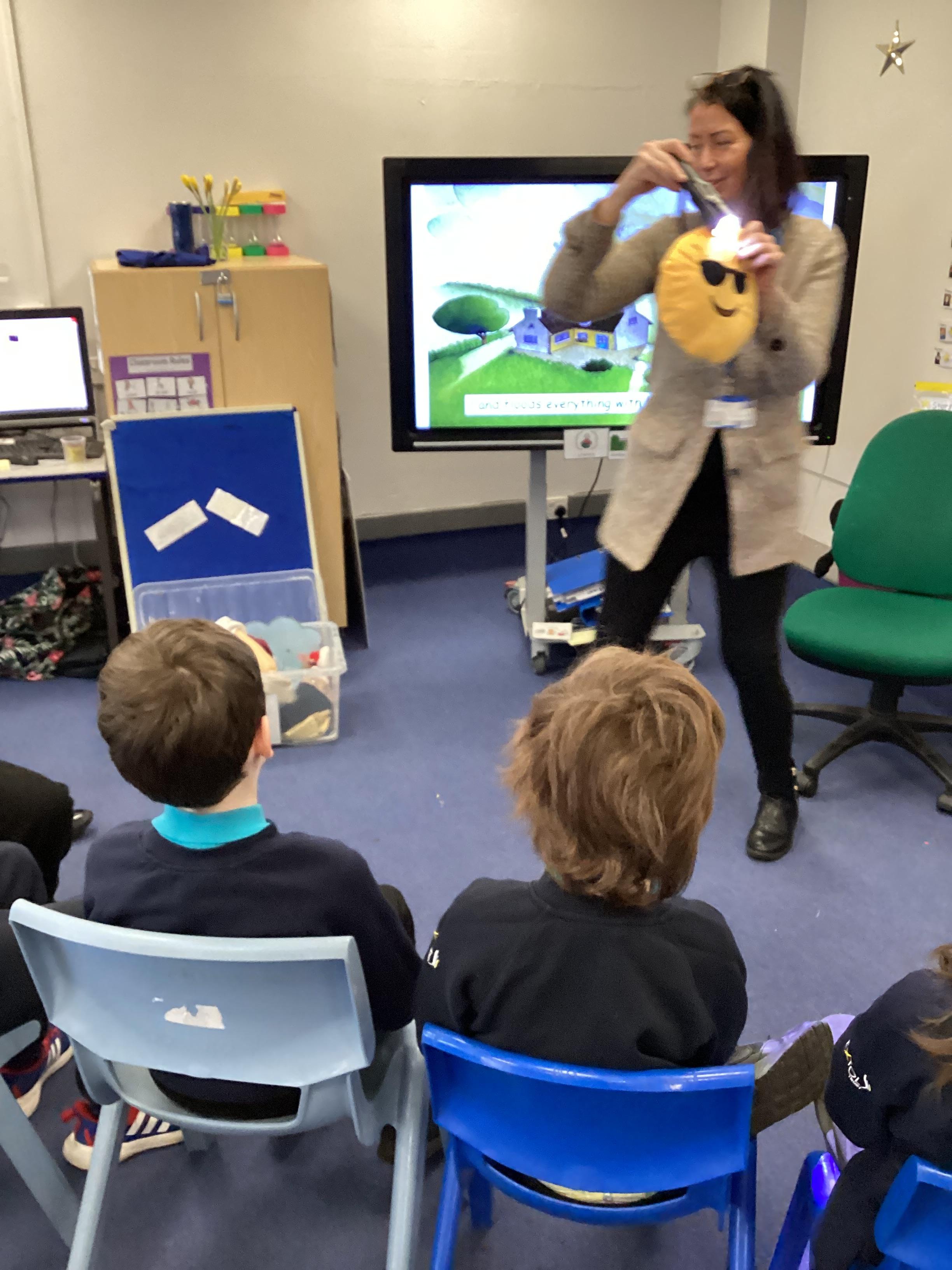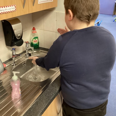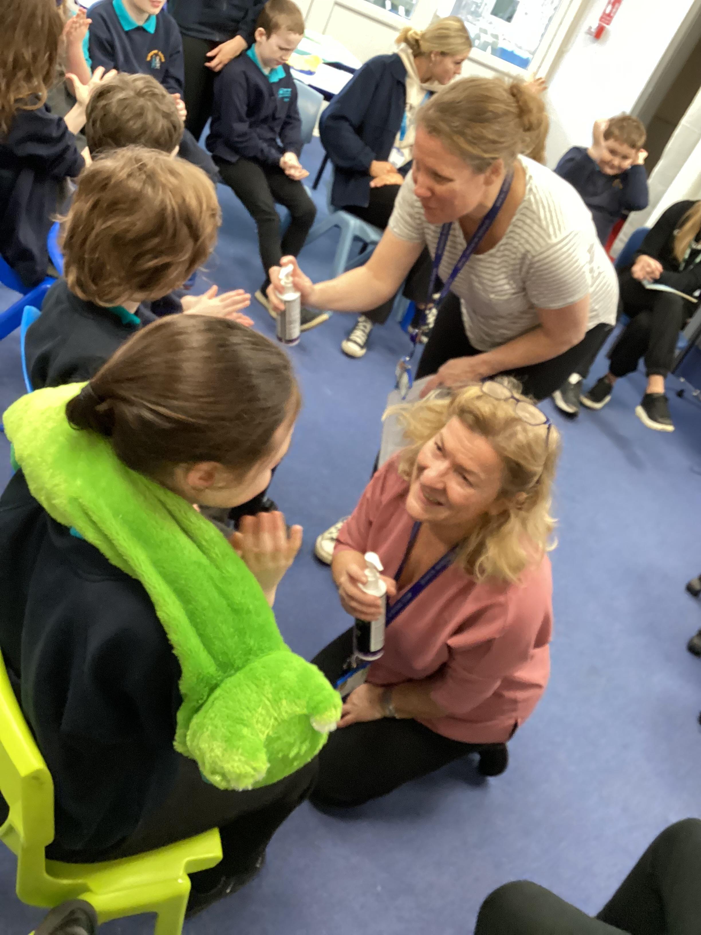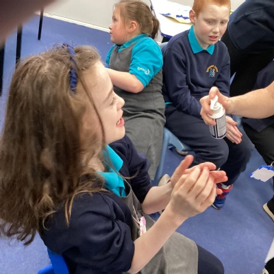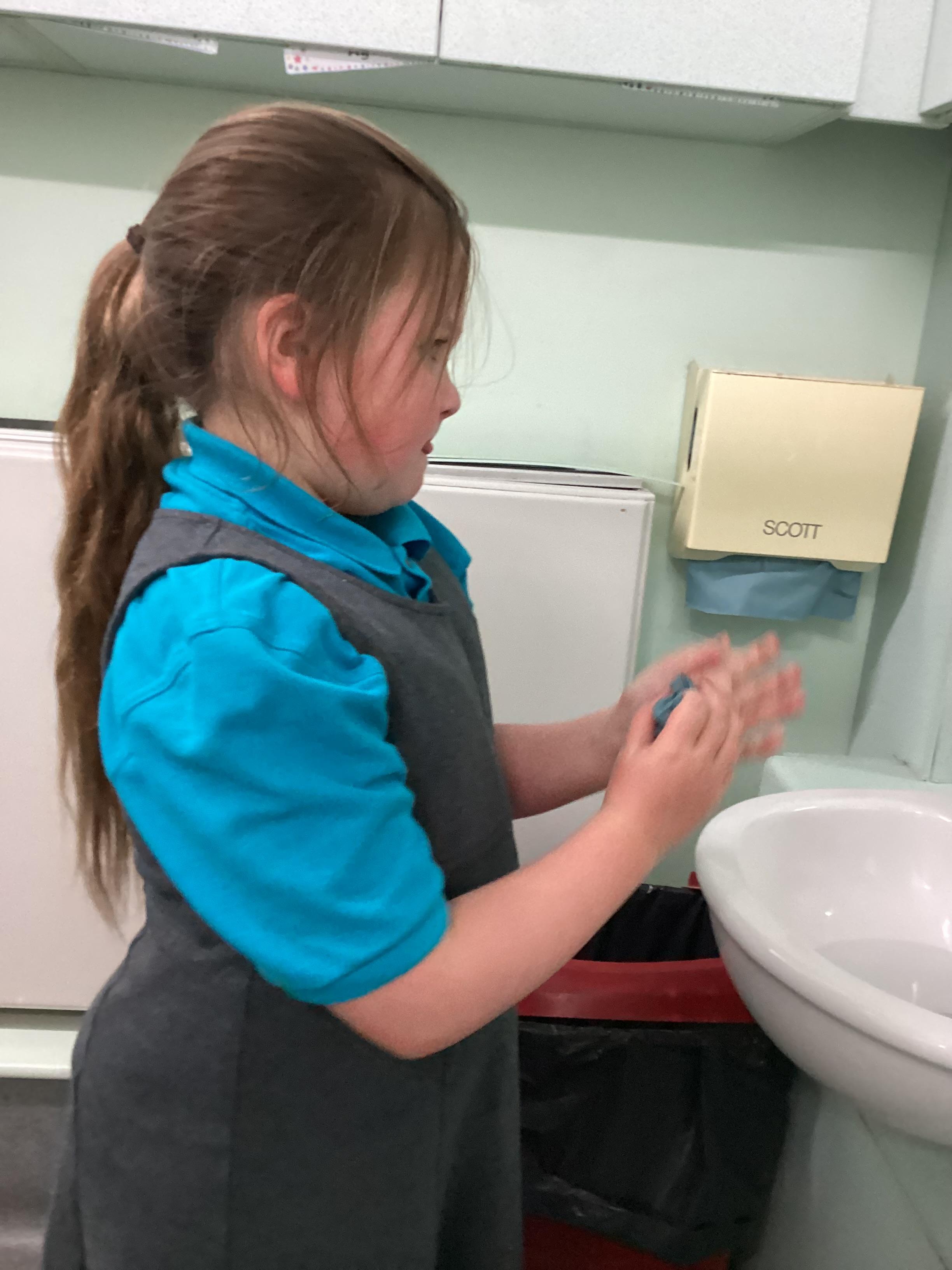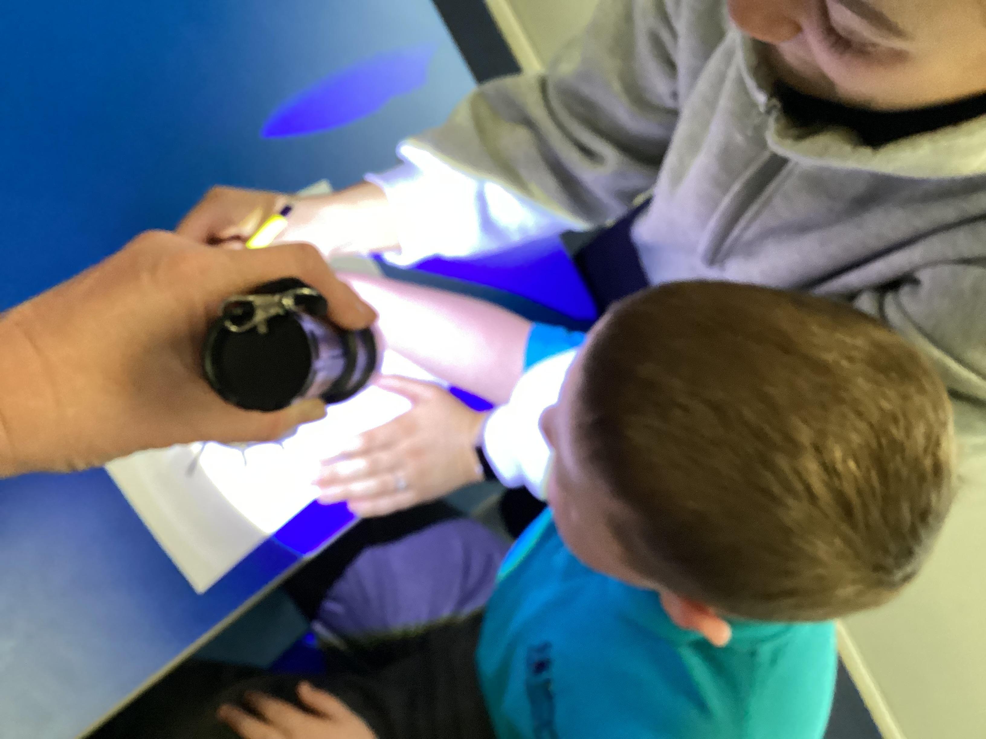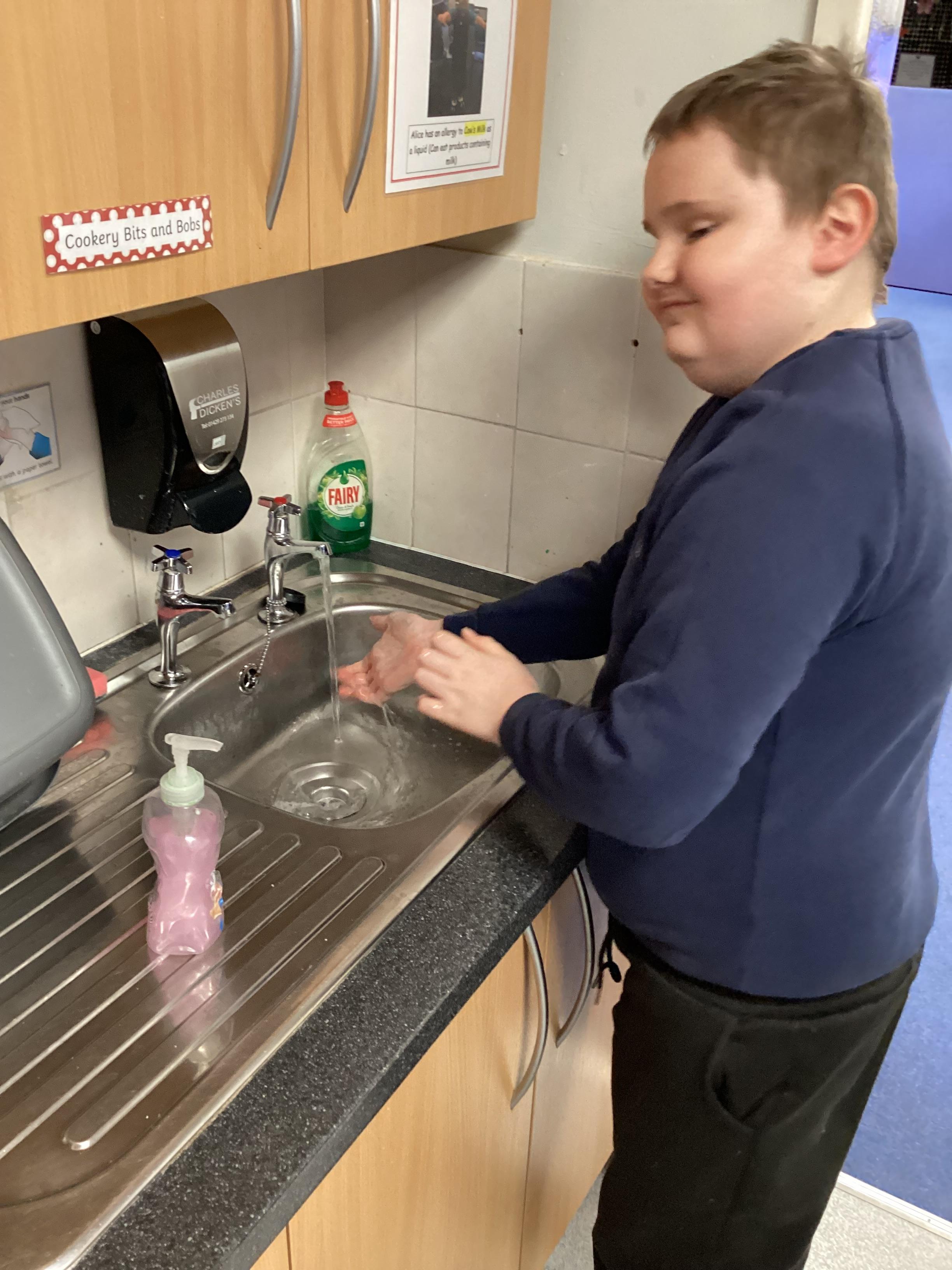 21.02.25 PHSRE: HAND WASHING The school nurses came into school today and read the children a story called: 'I Don't Want To Wash My Hands!' by Tony Ross. The children put special soap on their hands and placed them under a light box which illuminated all the germs. The children washed all their germs off their hands with soap and water. The nurses explained the importance of washing our hands regularly and when we should do so.