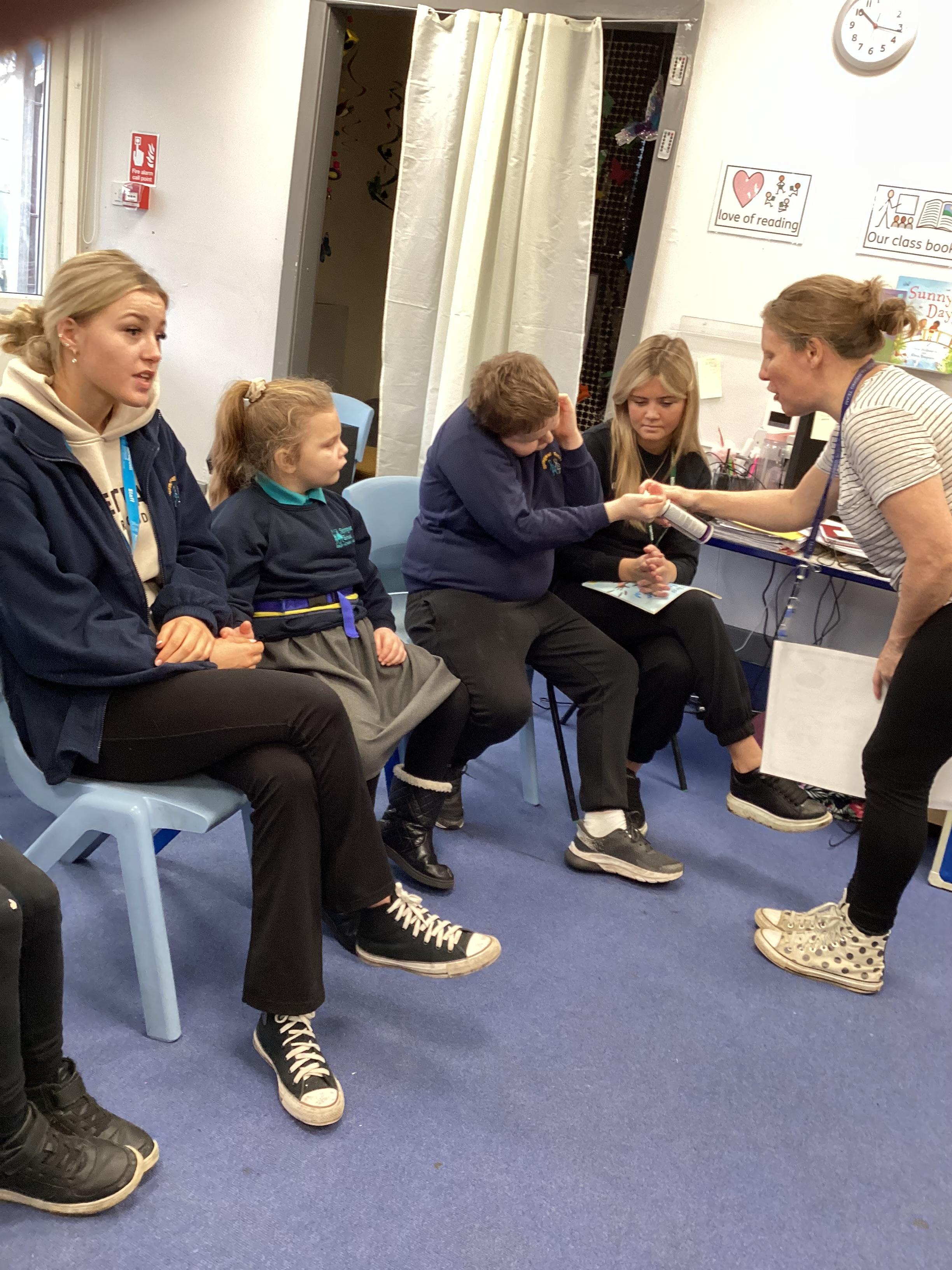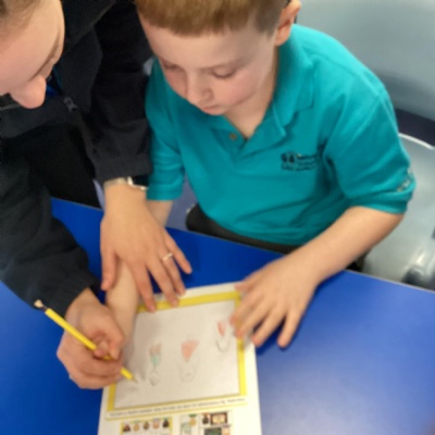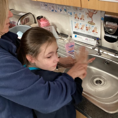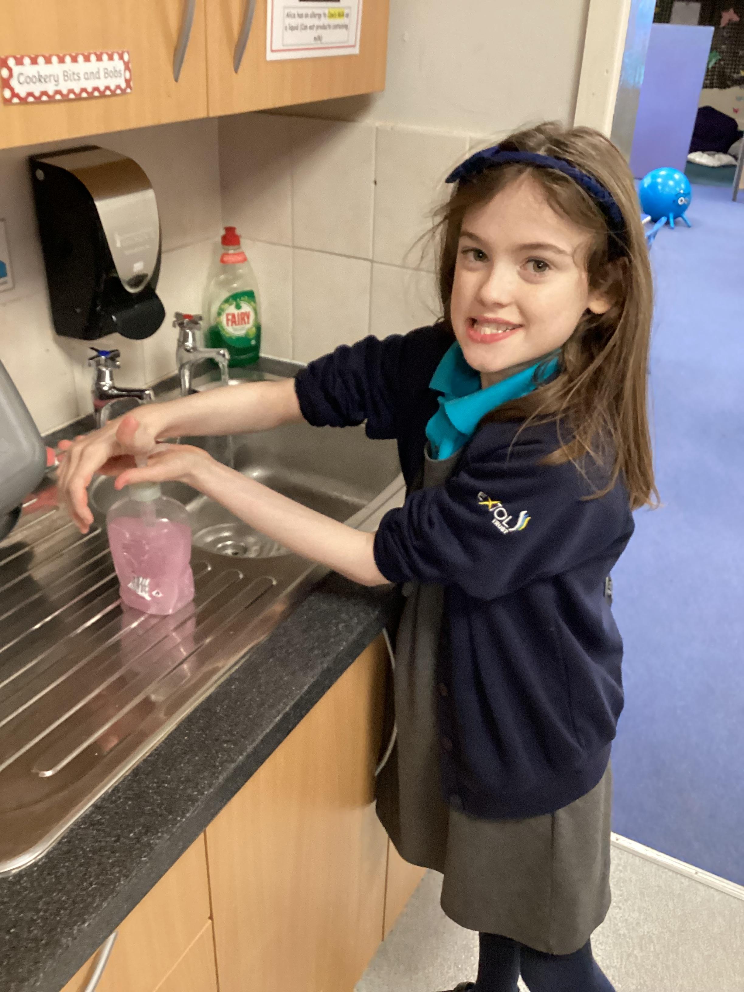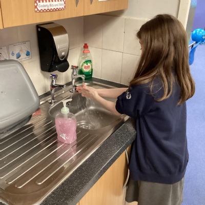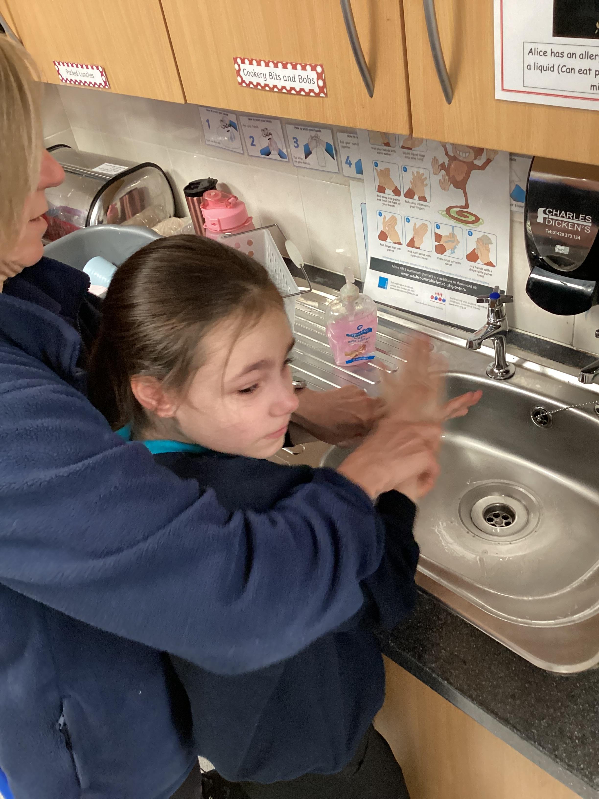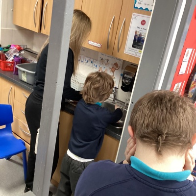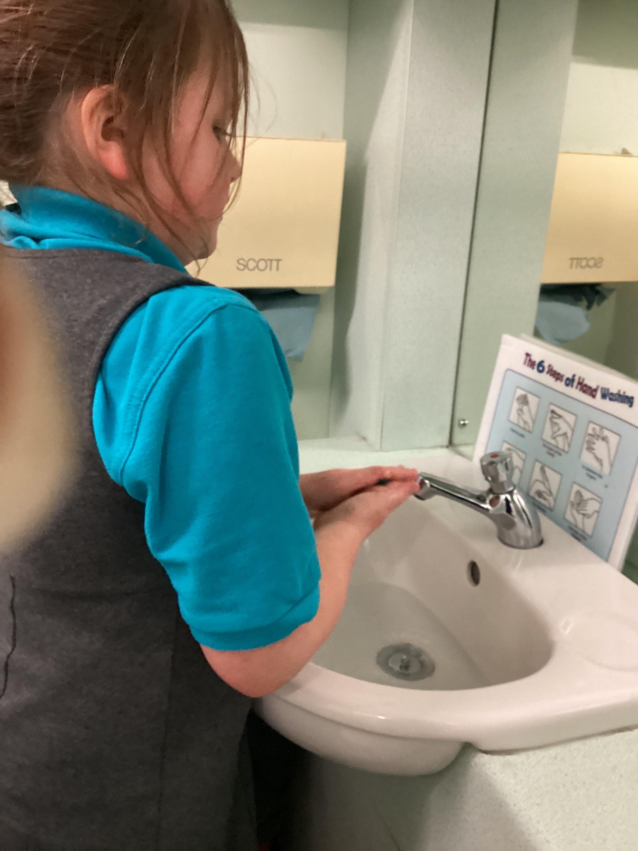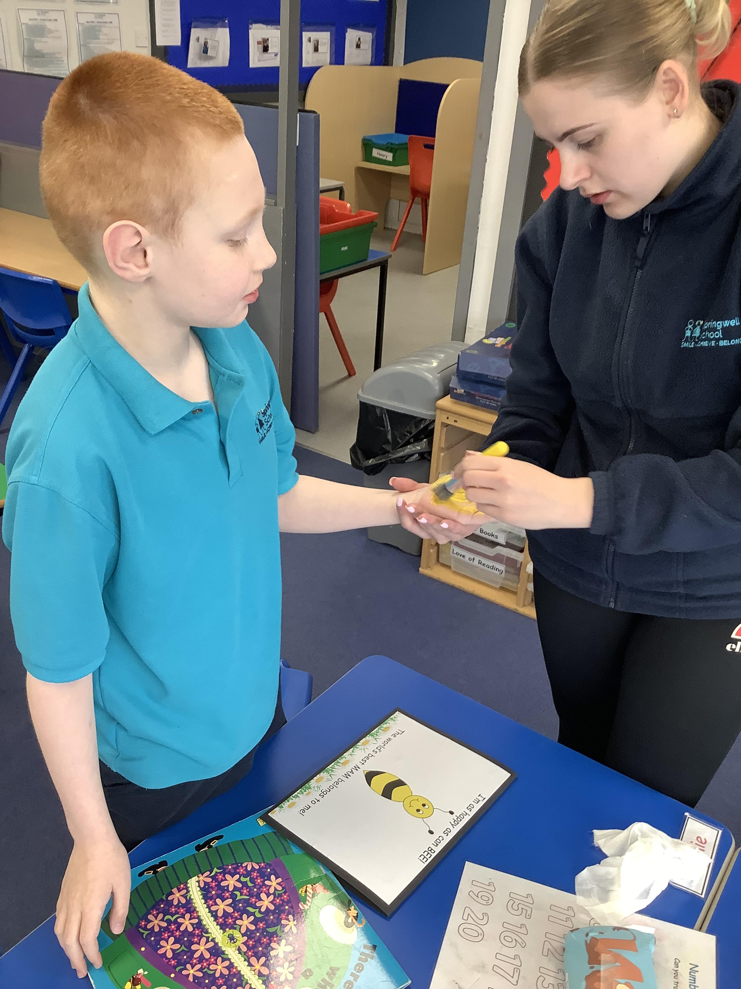 21.02.25 PHSRE: HAND WASHING The school nurses came into school today and read the children a story called: 'I Don't Want To Wash My Hands!' by Tony Ross. The children put special soap on their hands and placed them under a light box which illuminated all the germs. The children washed all their germs off their hands with soap and water. The nurses explained the importance of washing our hands regularly and when we should do so.