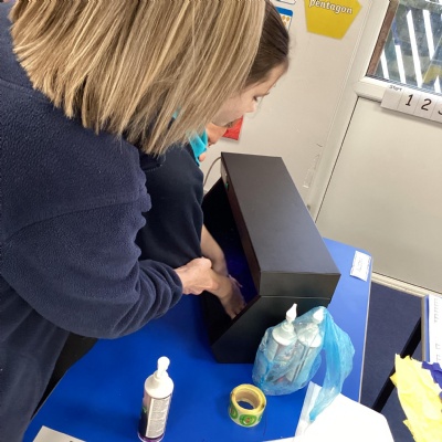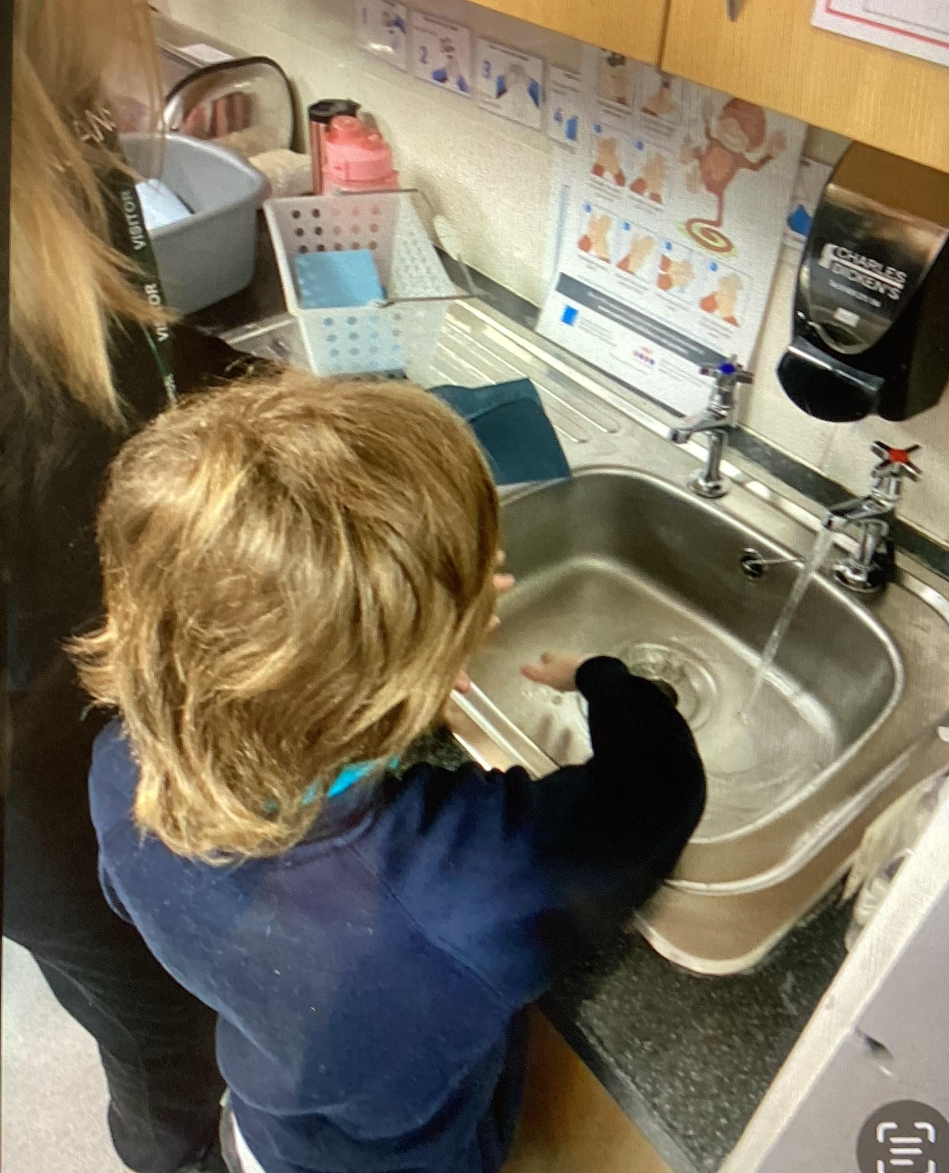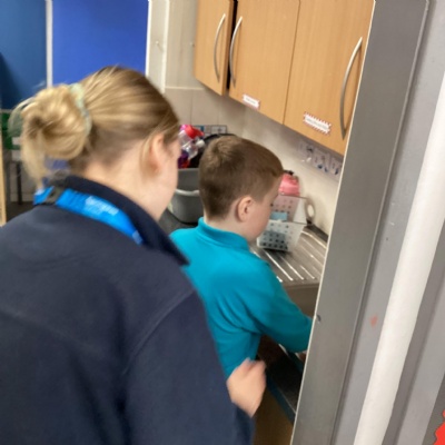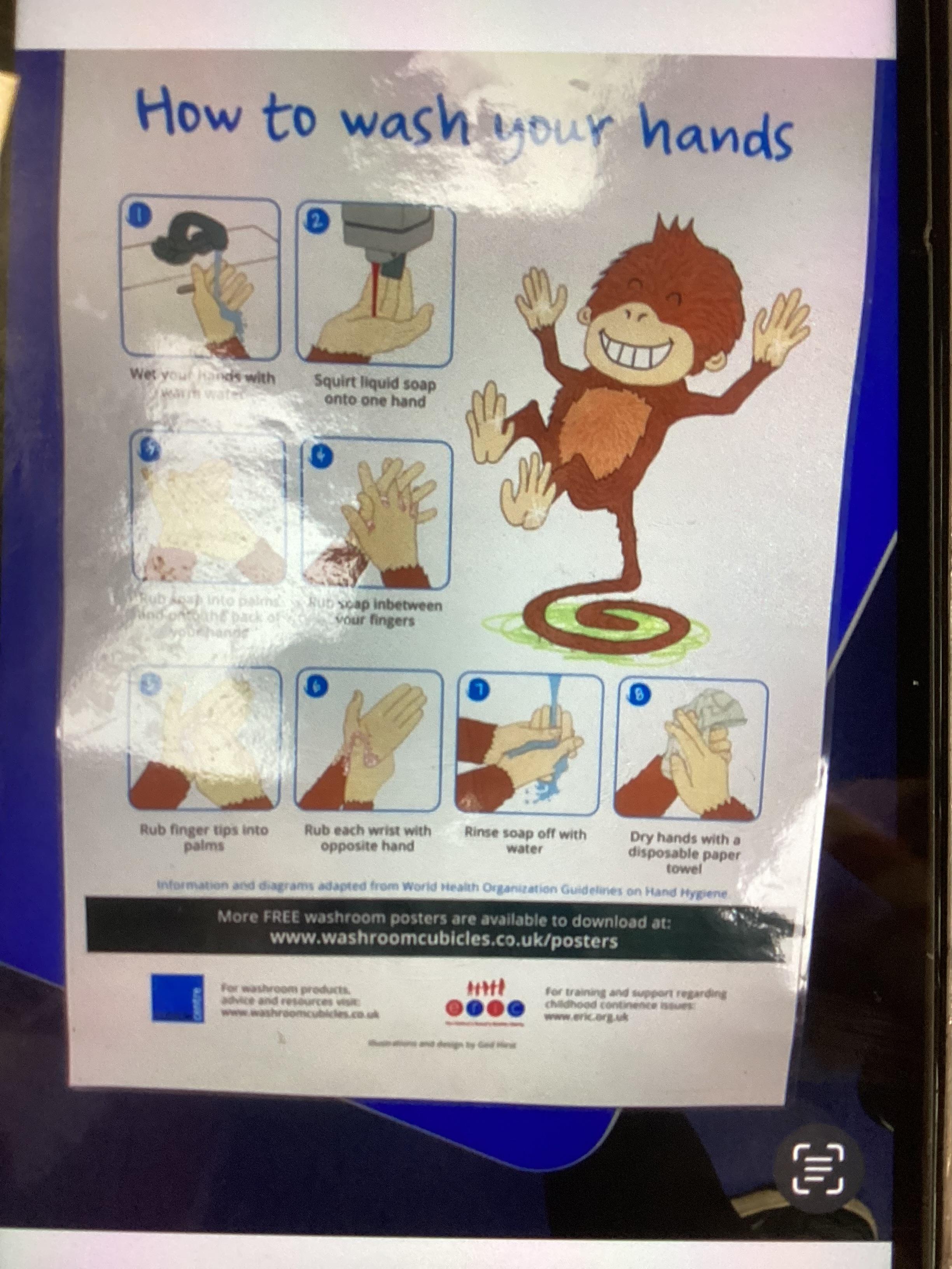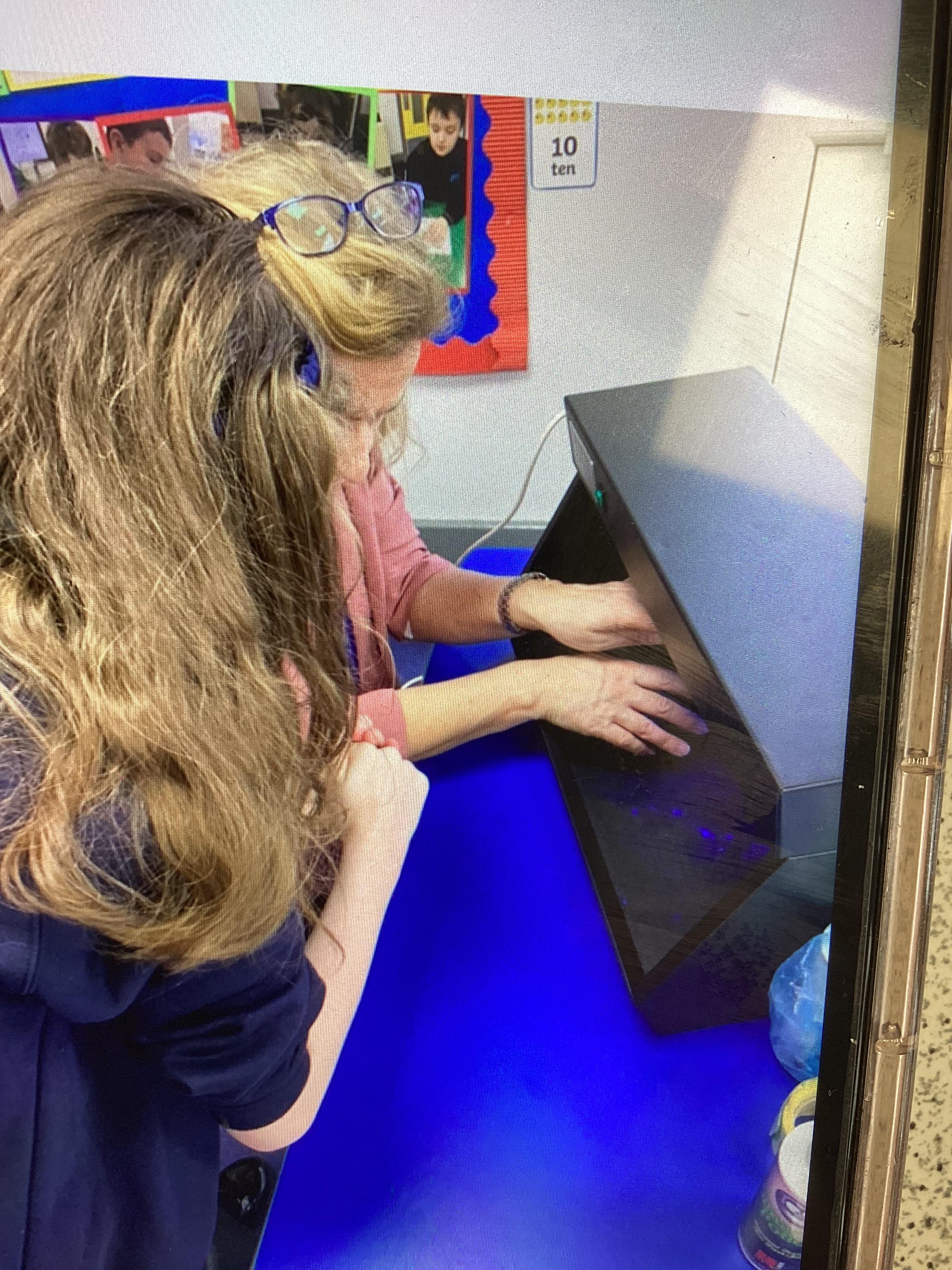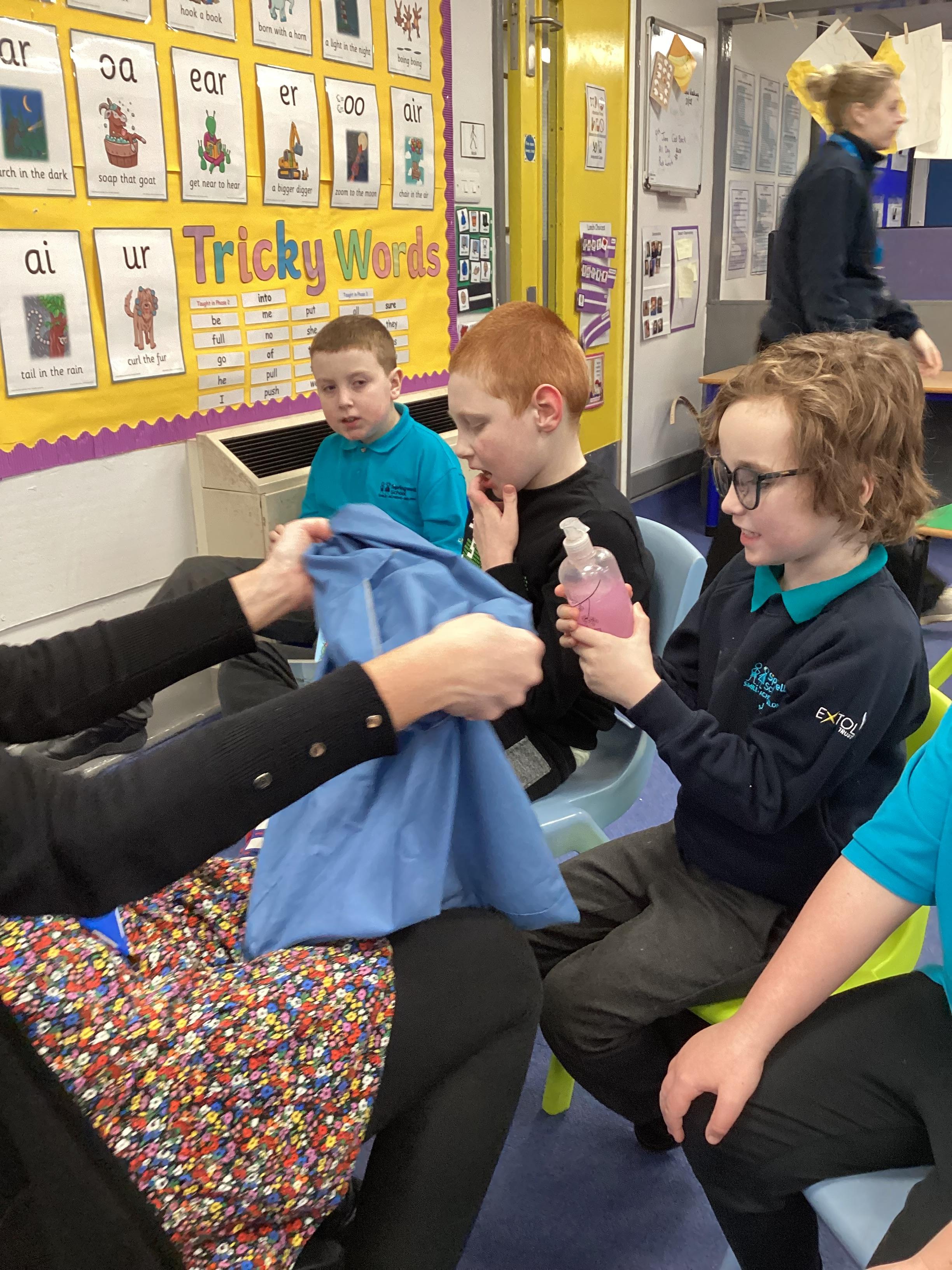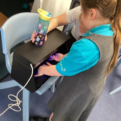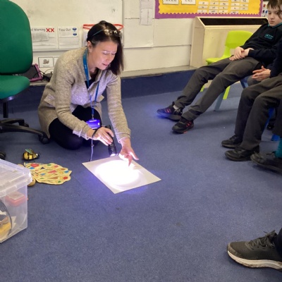 21.02.25 PHSRE: HAND WASHING The school nurses came into school today and read the children a story called: 'I Don't Want To Wash My Hands!' by Tony Ross. The children put special soap on their hands and placed them under a light box which illuminated all the germs. The children washed all their germs off their hands with soap and water. The nurses explained the importance of washing our hands regularly and when we should do so.