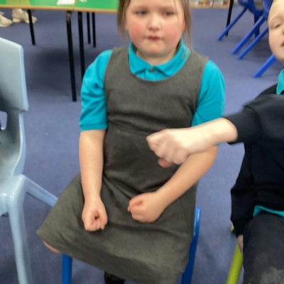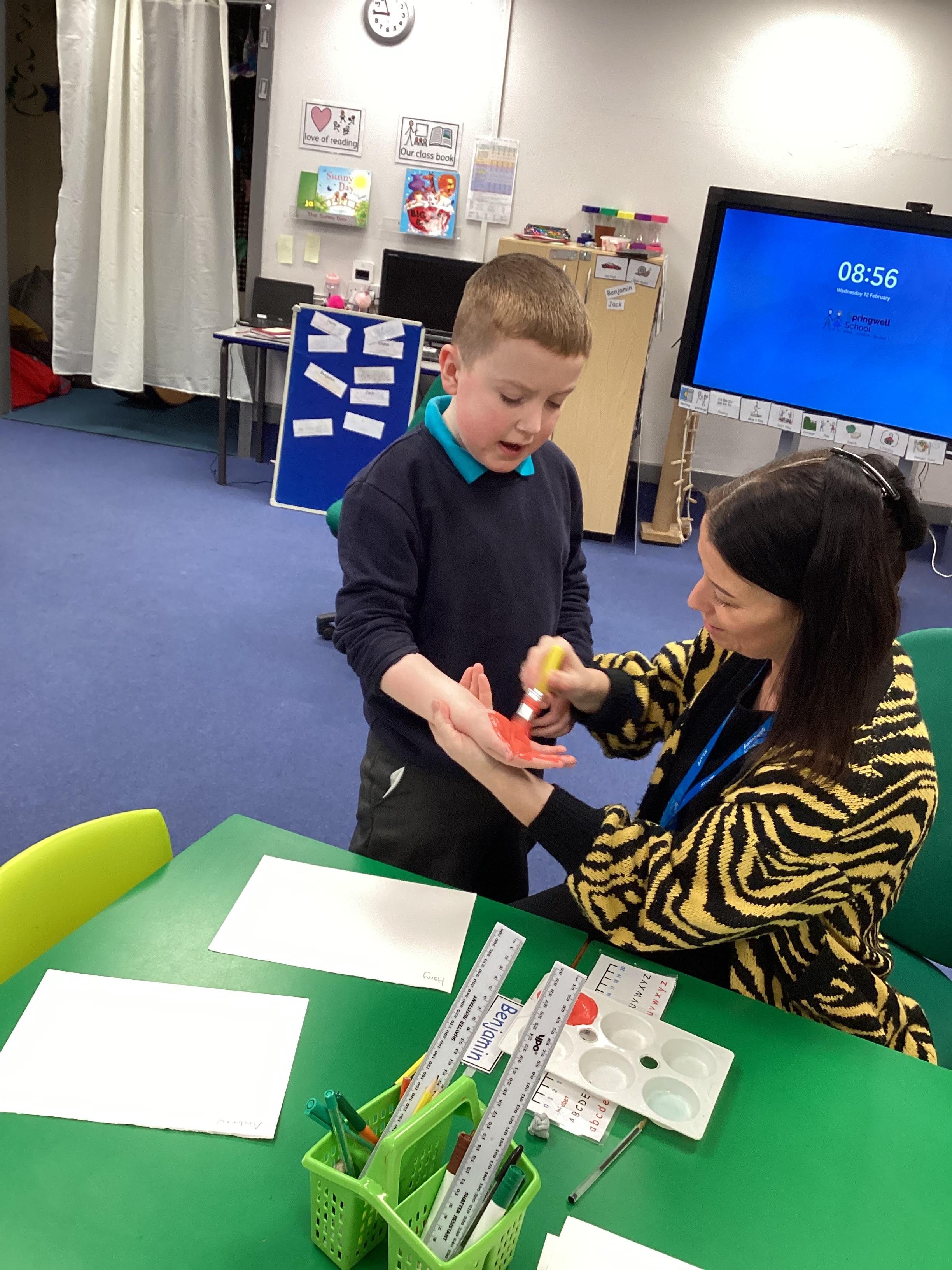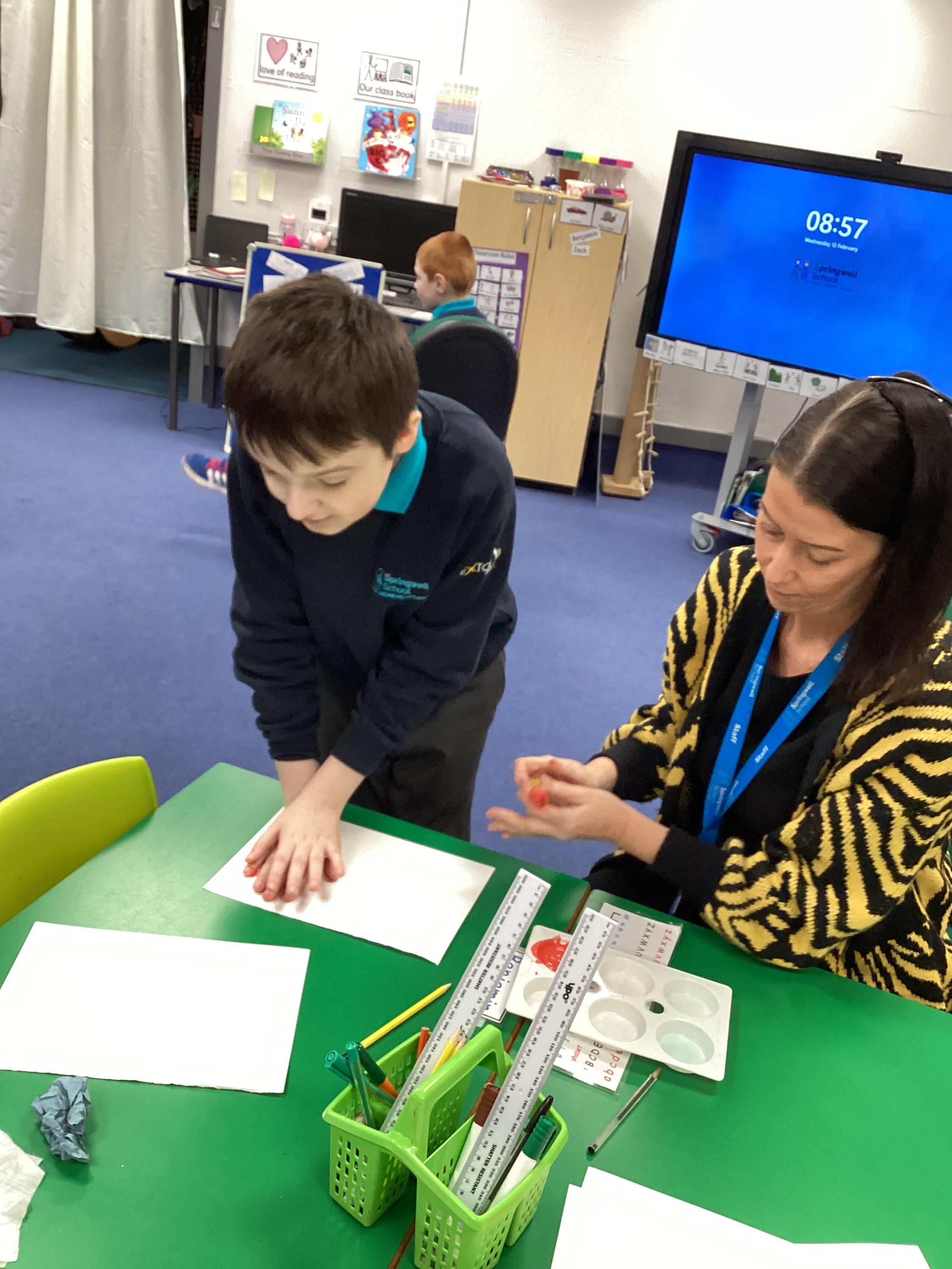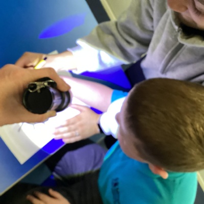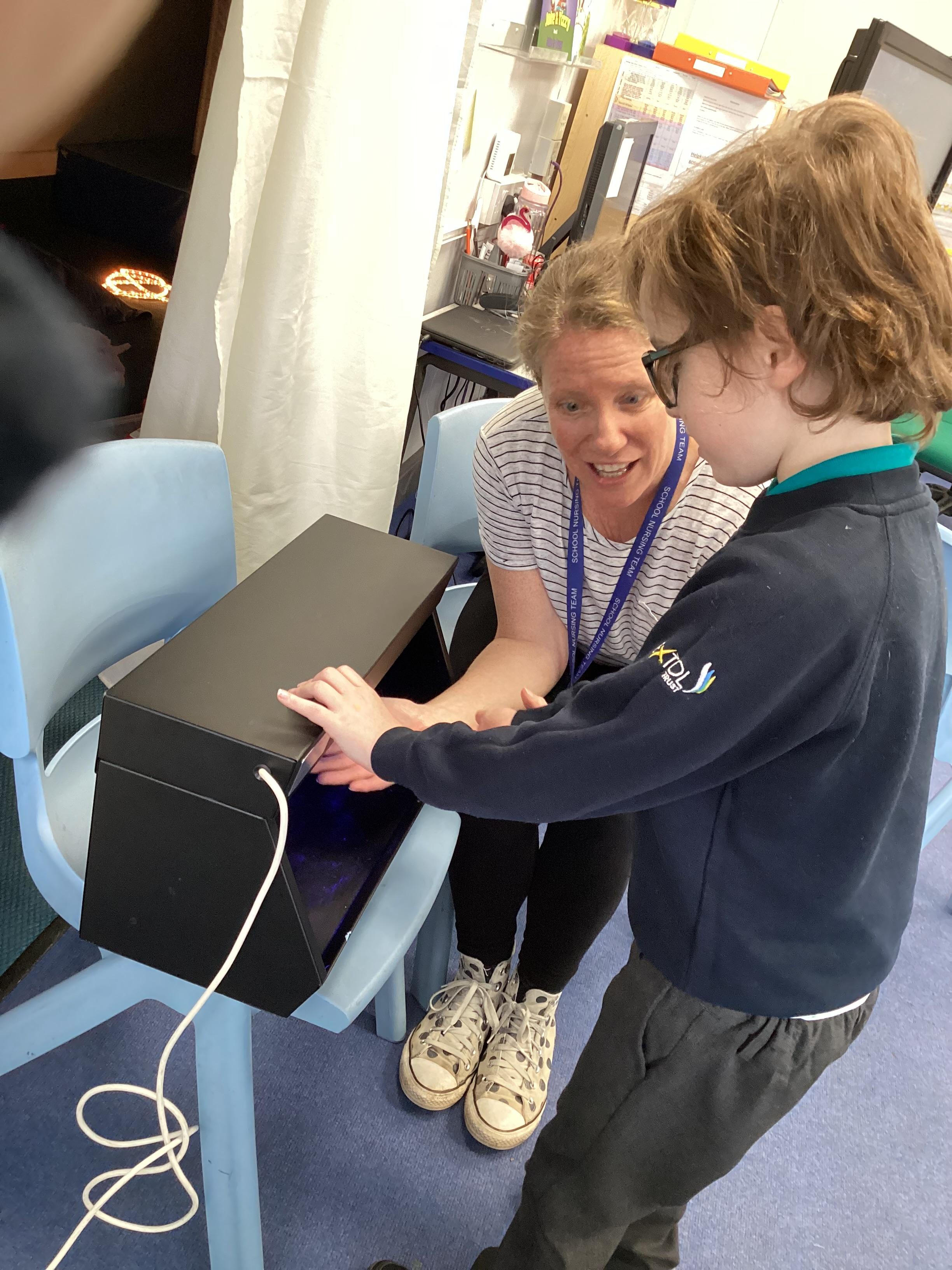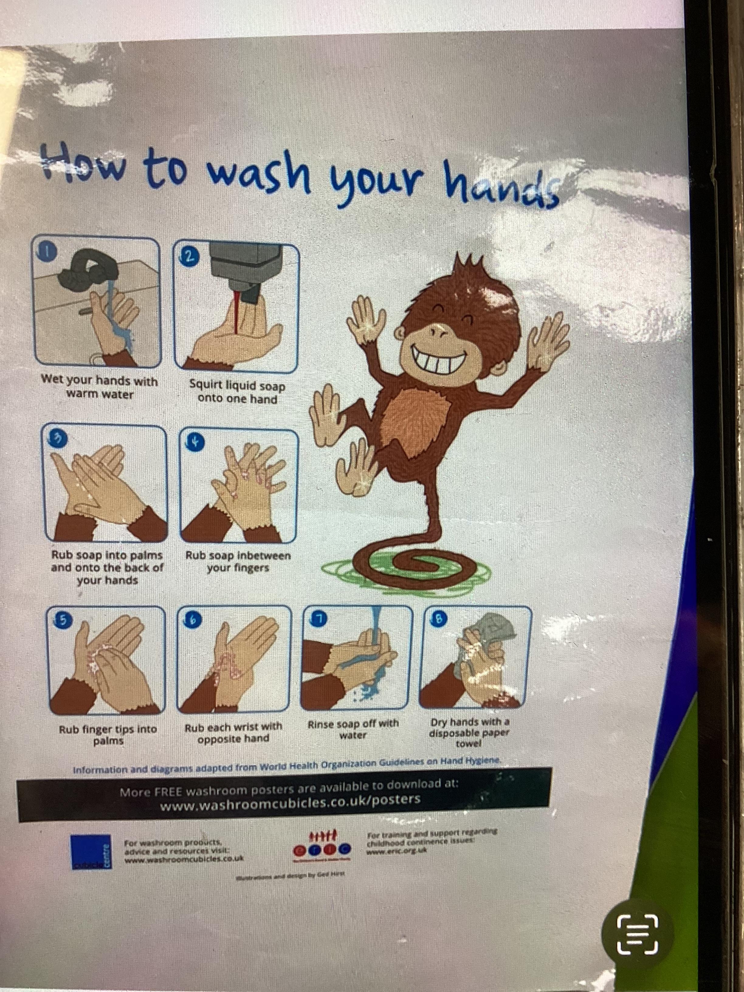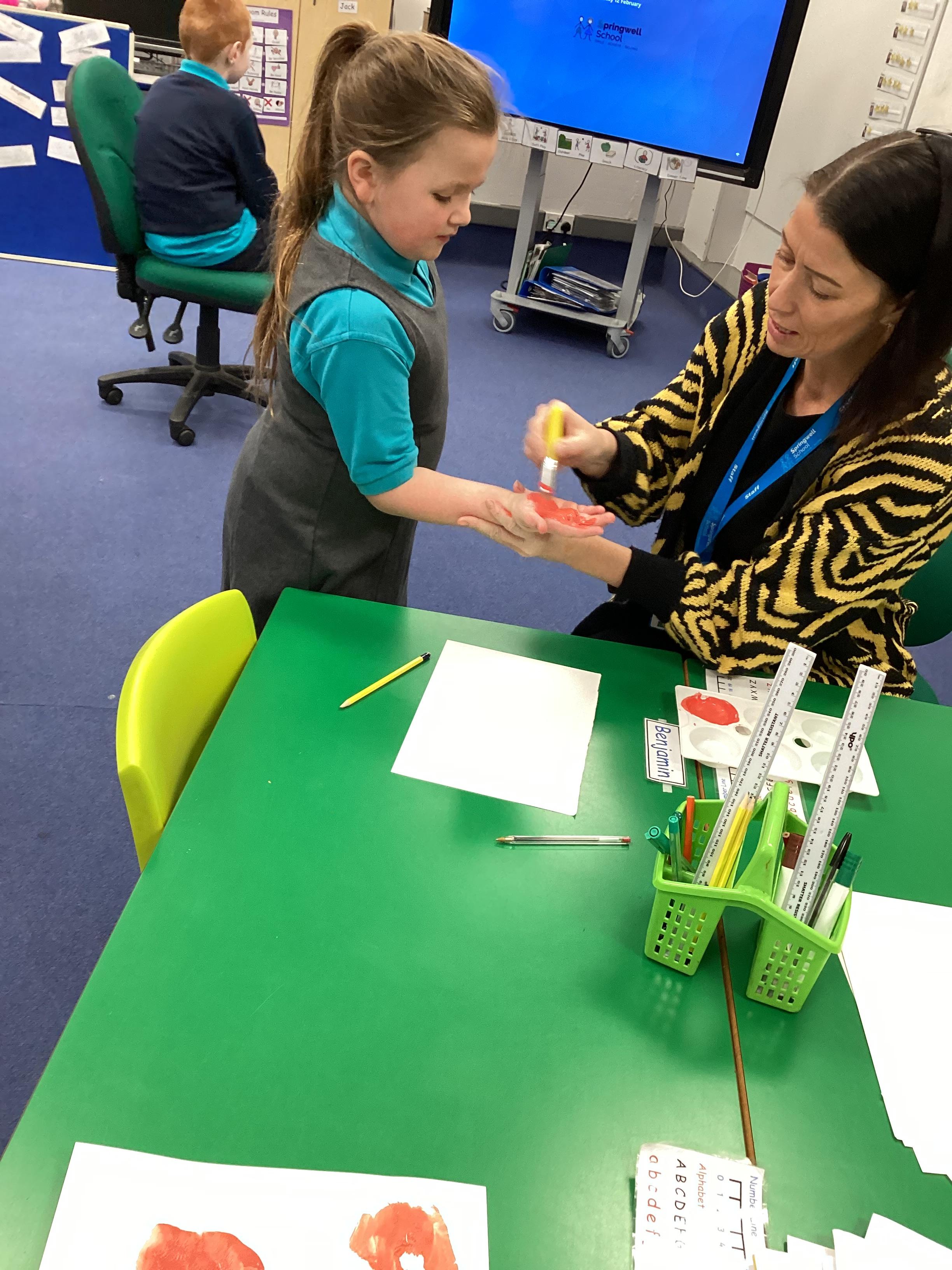 21.02.25 PHSRE: HAND WASHING The school nurses came into school today and read the children a story called: 'I Don't Want To Wash My Hands!' by Tony Ross. The children put special soap on their hands and placed them under a light box which illuminated all the germs. The children washed all their germs off their hands with soap and water. The nurses explained the importance of washing our hands regularly and when we should do so.