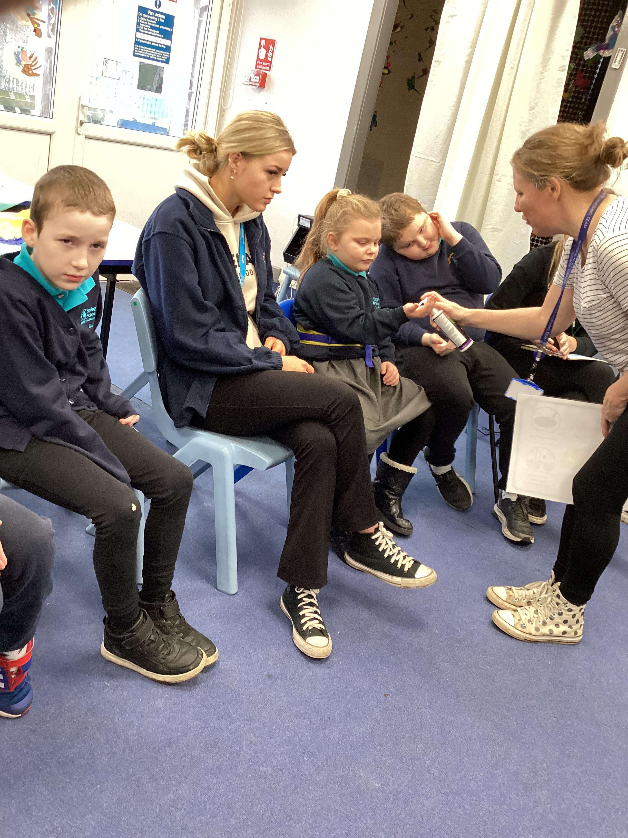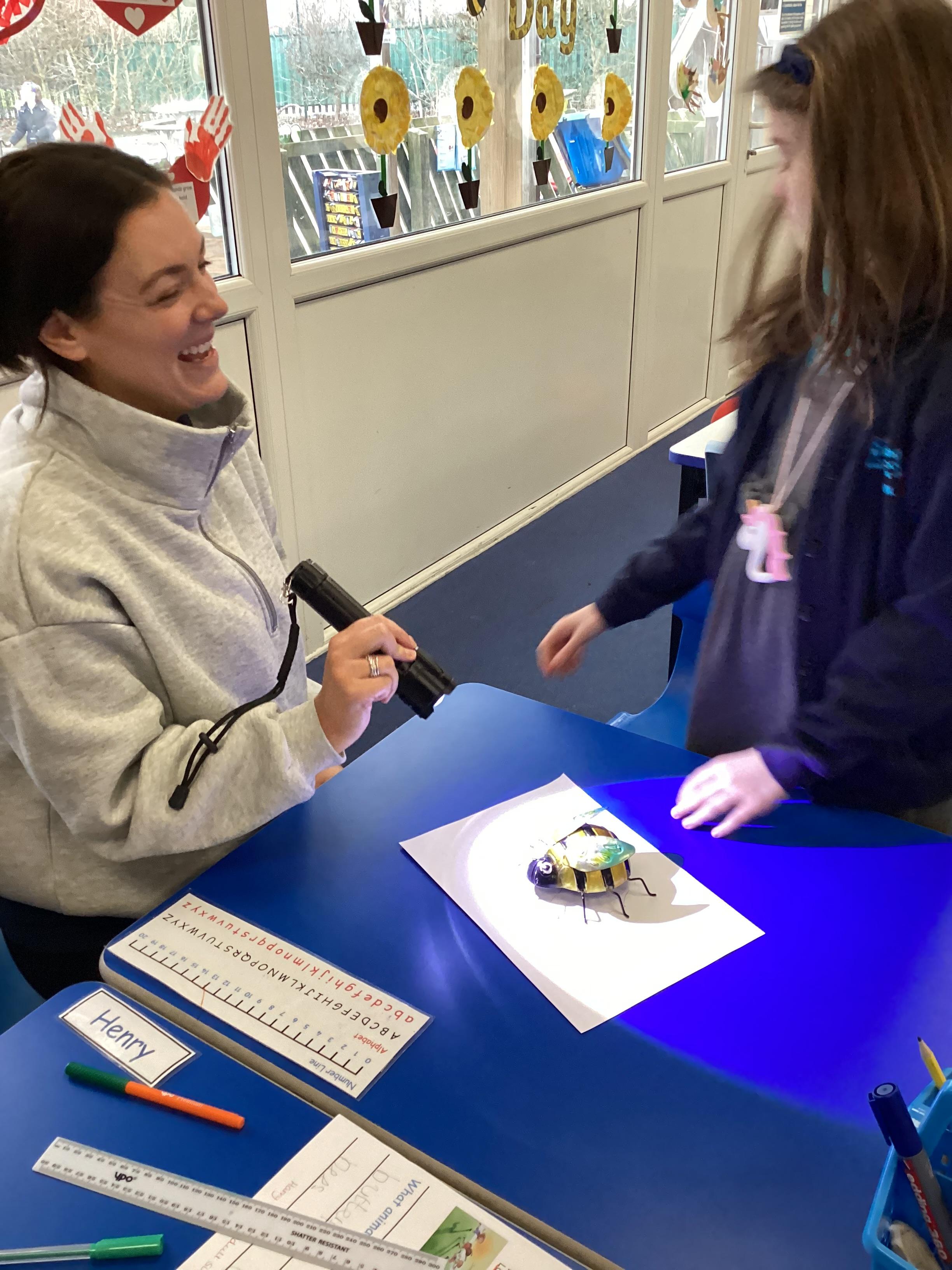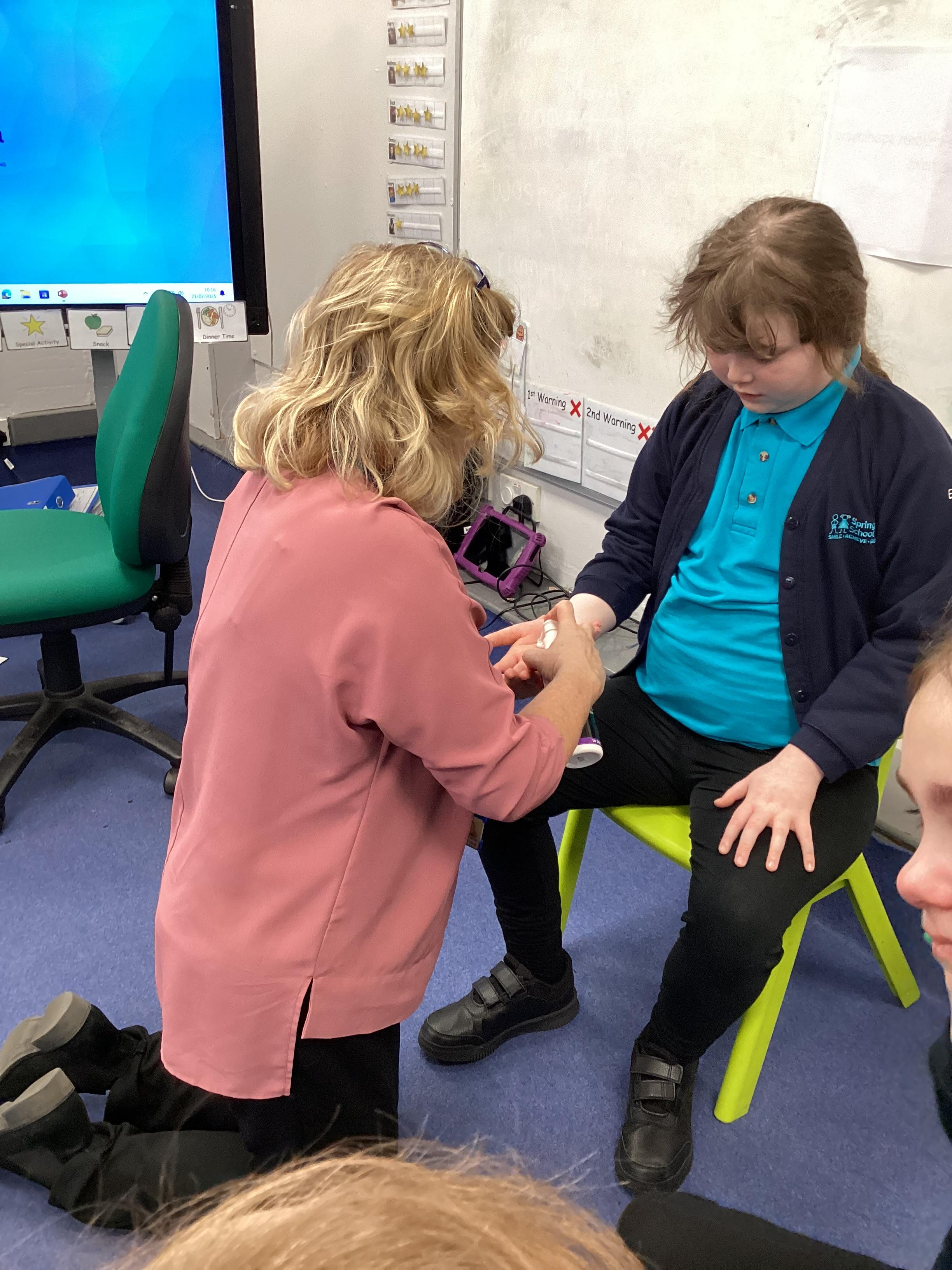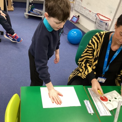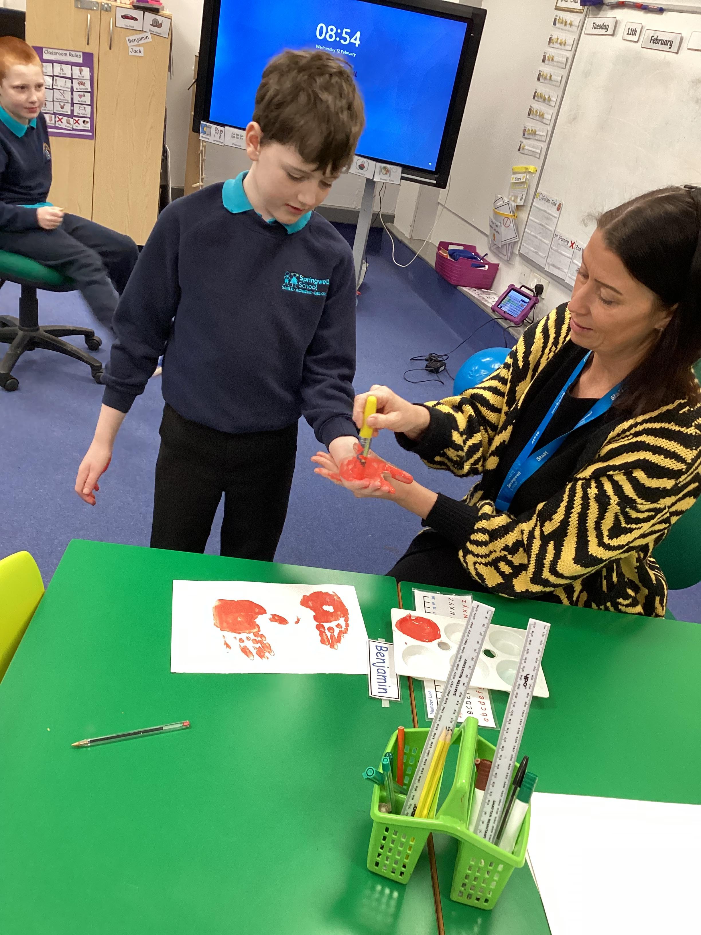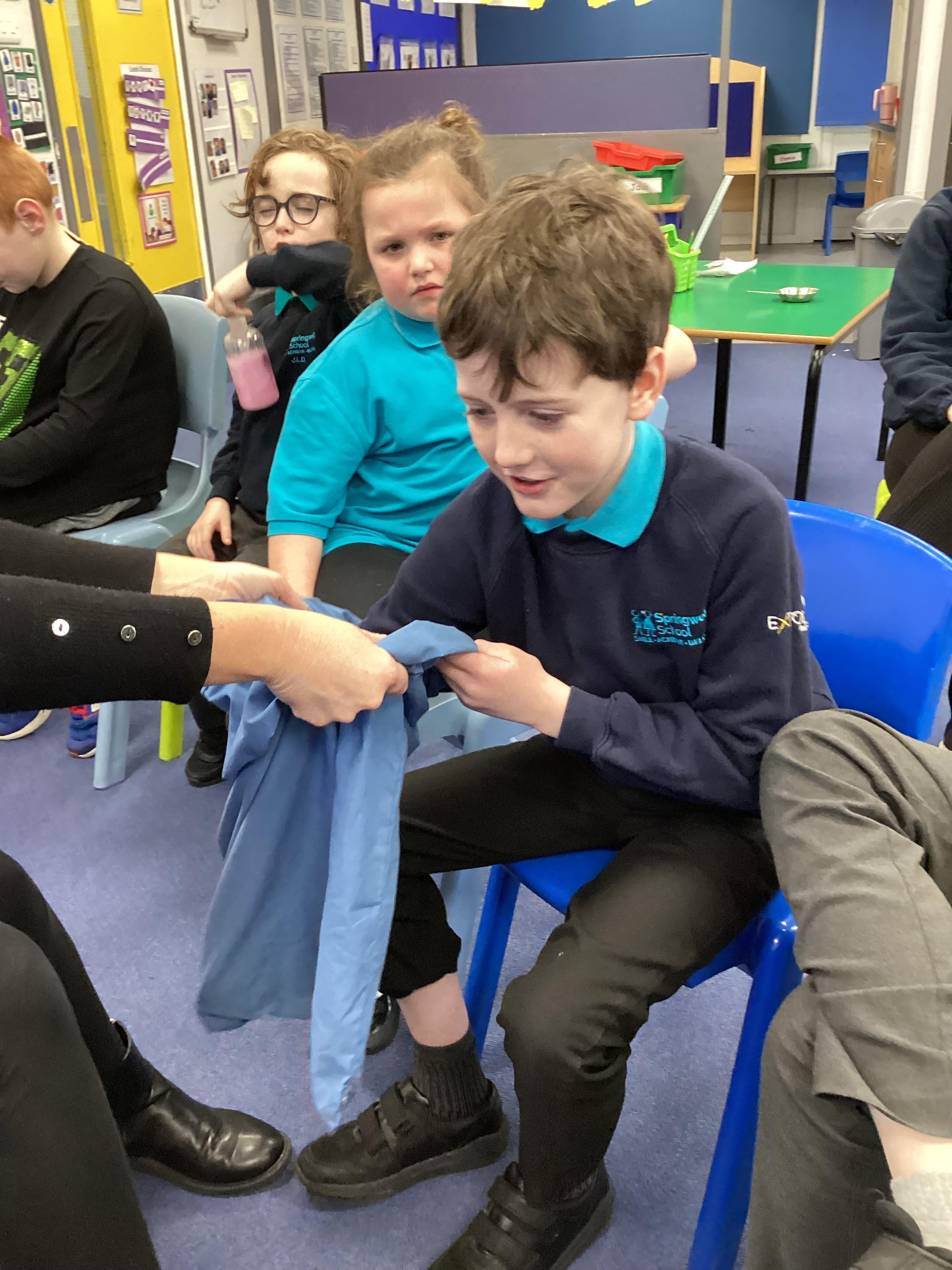 21.02.25 PHSRE: HAND WASHING The school nurses came into school today and read the children a story called: 'I Don't Want To Wash My Hands!' by Tony Ross. The children put special soap on their hands and placed them under a light box which illuminated all the germs. The children washed all their germs off their hands with soap and water. The nurses explained the importance of washing our hands regularly and when we should do so.