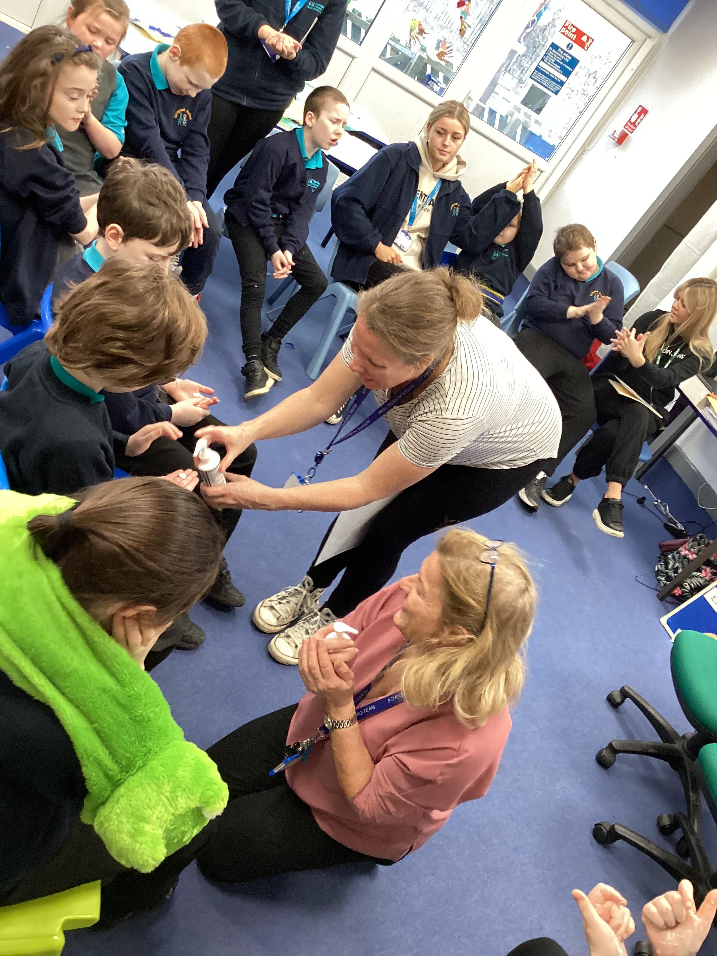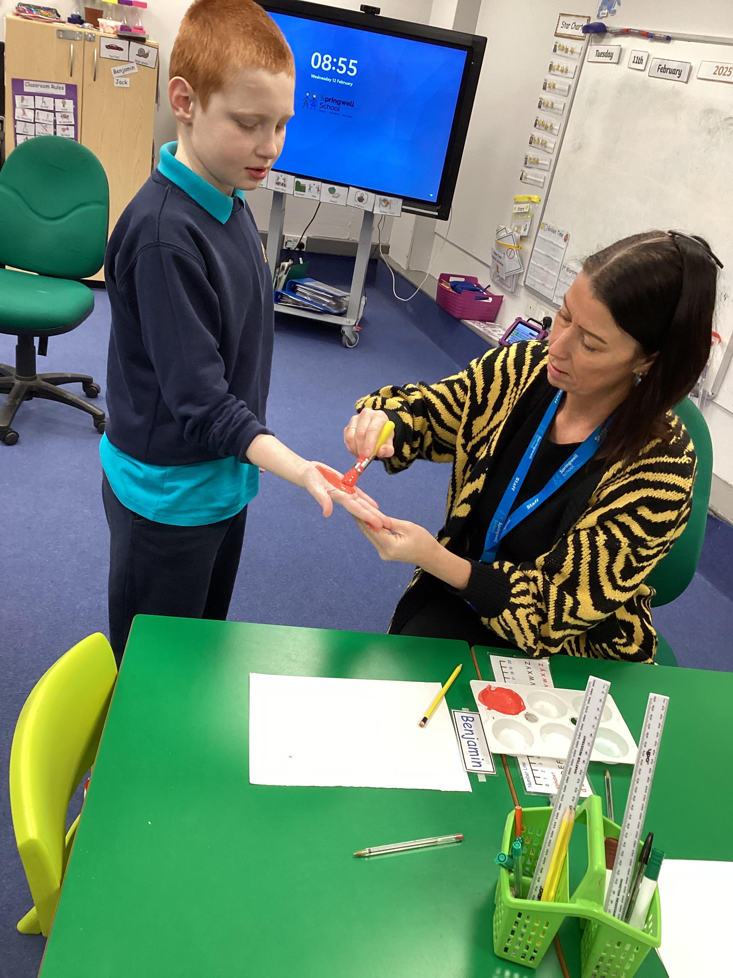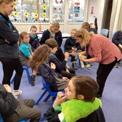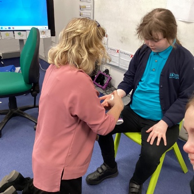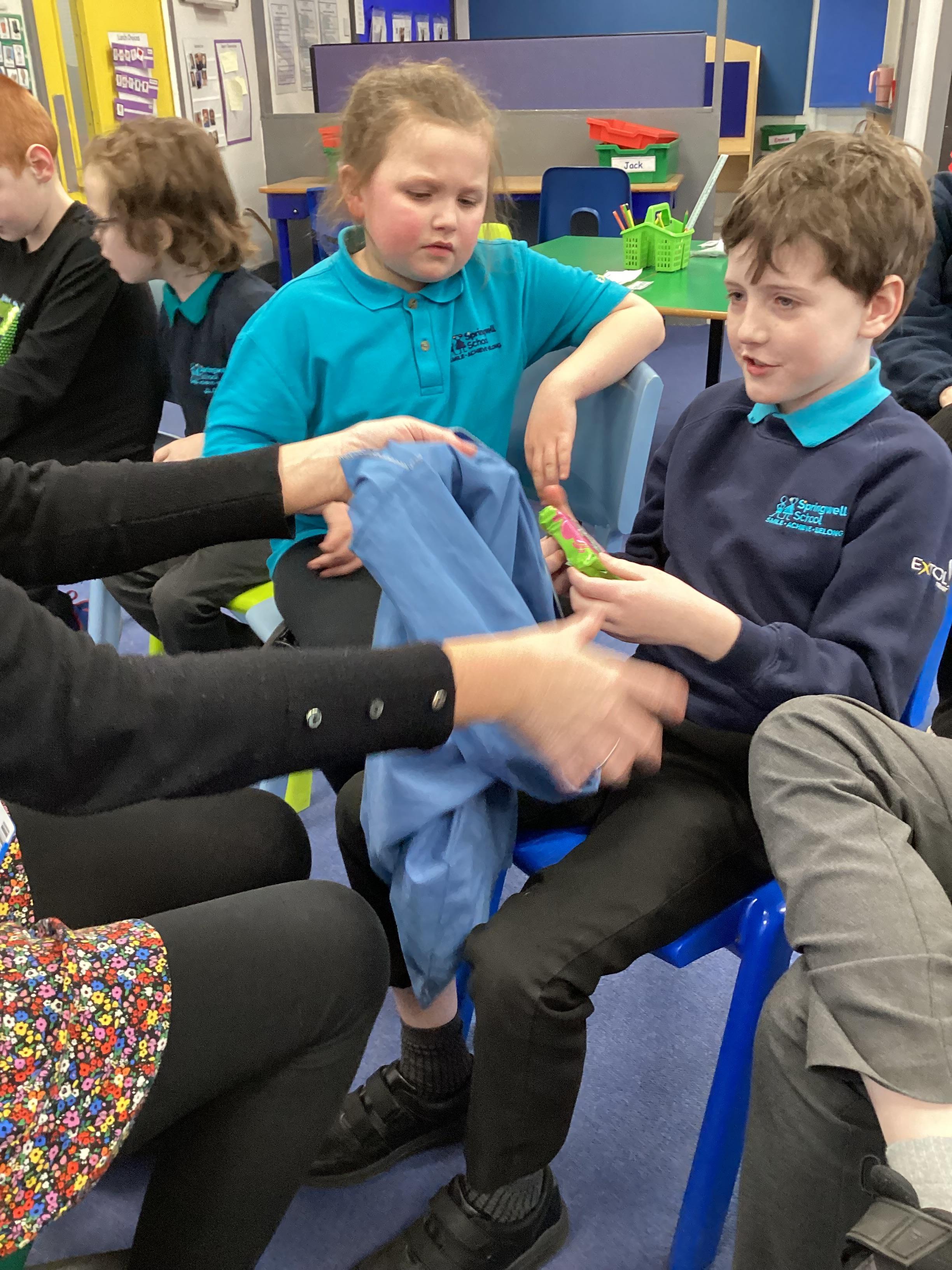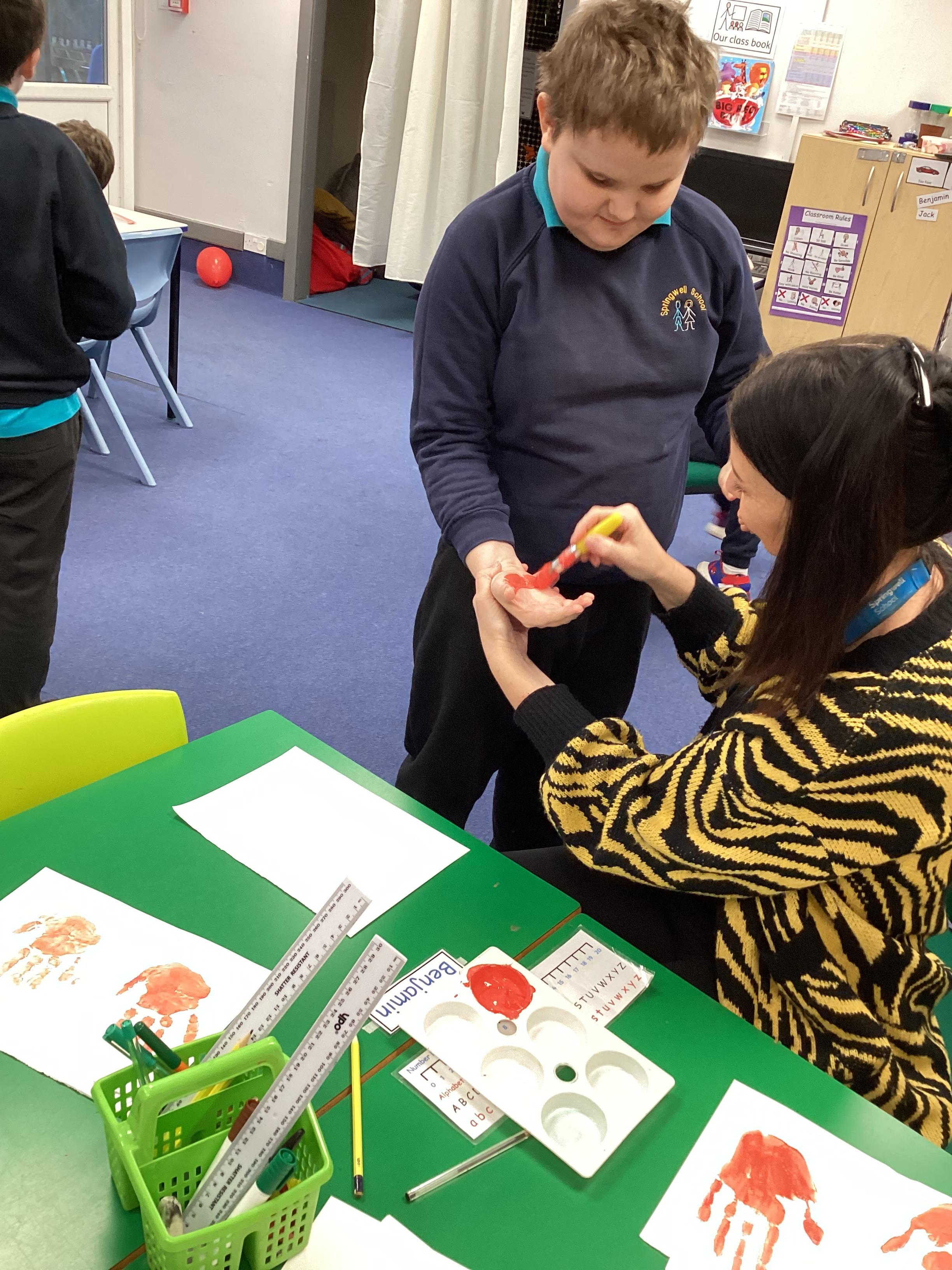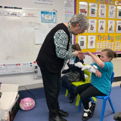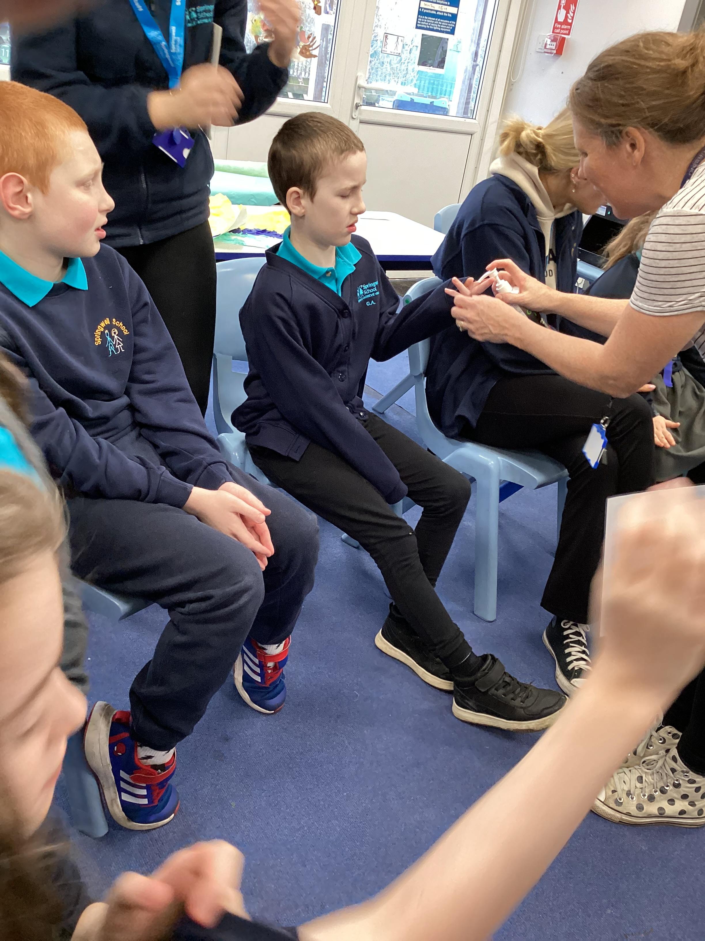 21.02.25 PHSRE: HAND WASHING The school nurses came into school today and read the children a story called: 'I Don't Want To Wash My Hands!' by Tony Ross. The children put special soap on their hands and placed them under a light box which illuminated all the germs. The children washed all their germs off their hands with soap and water. The nurses explained the importance of washing our hands regularly and when we should do so.
