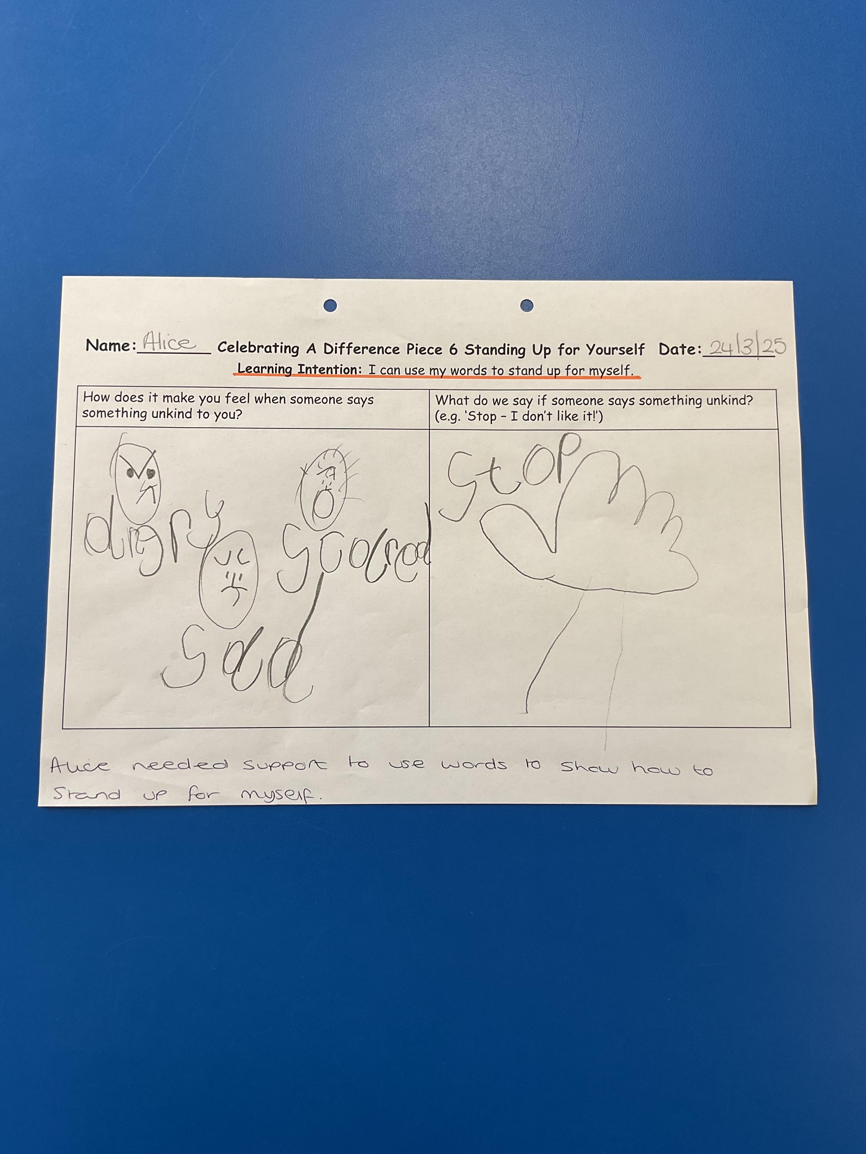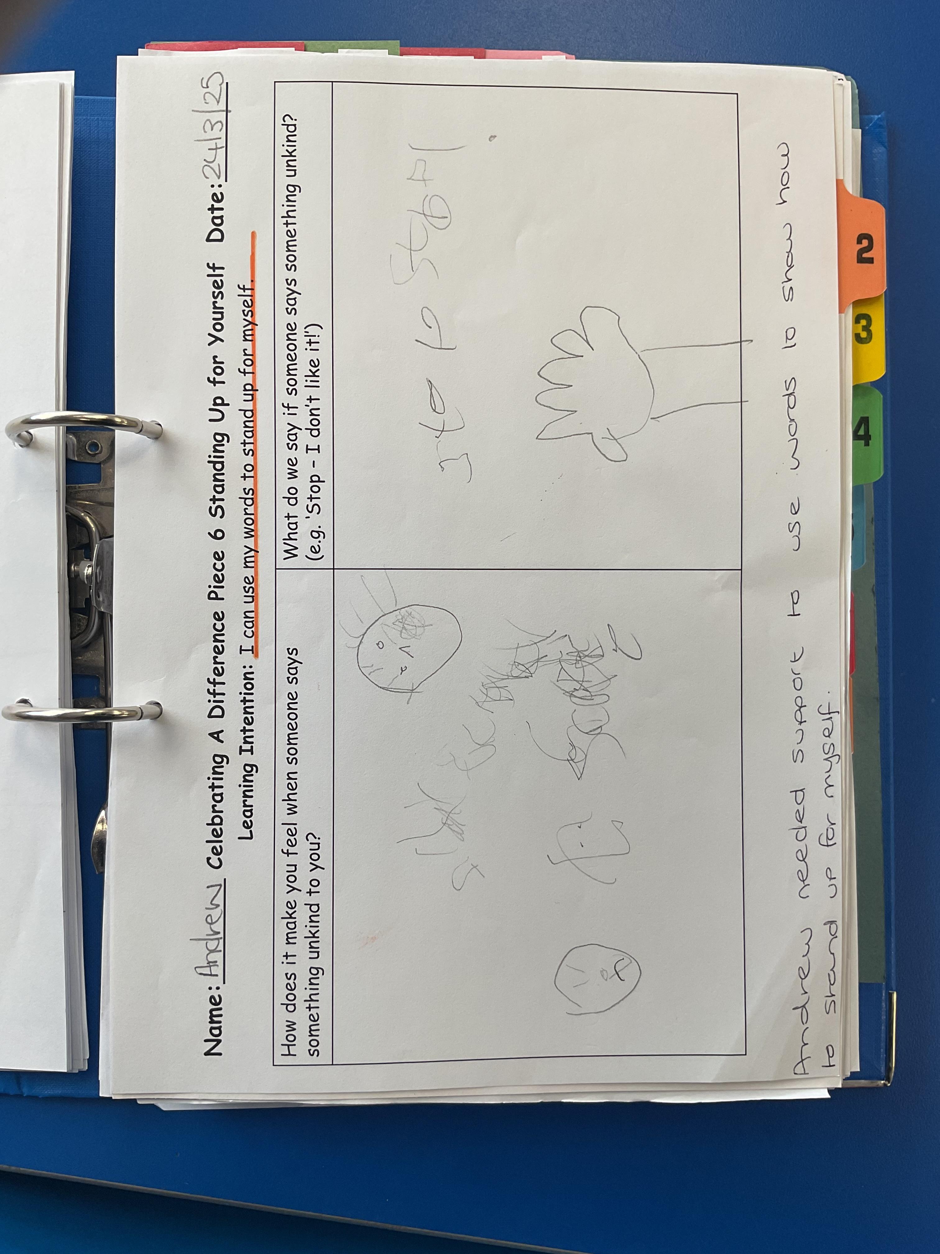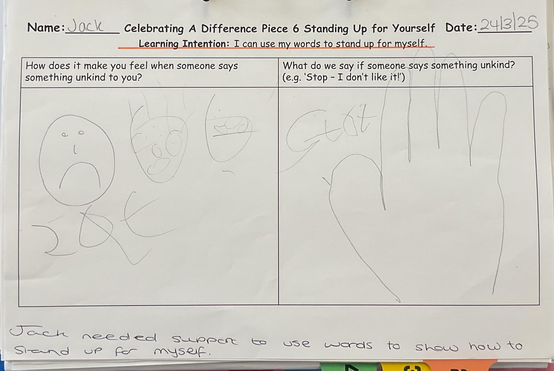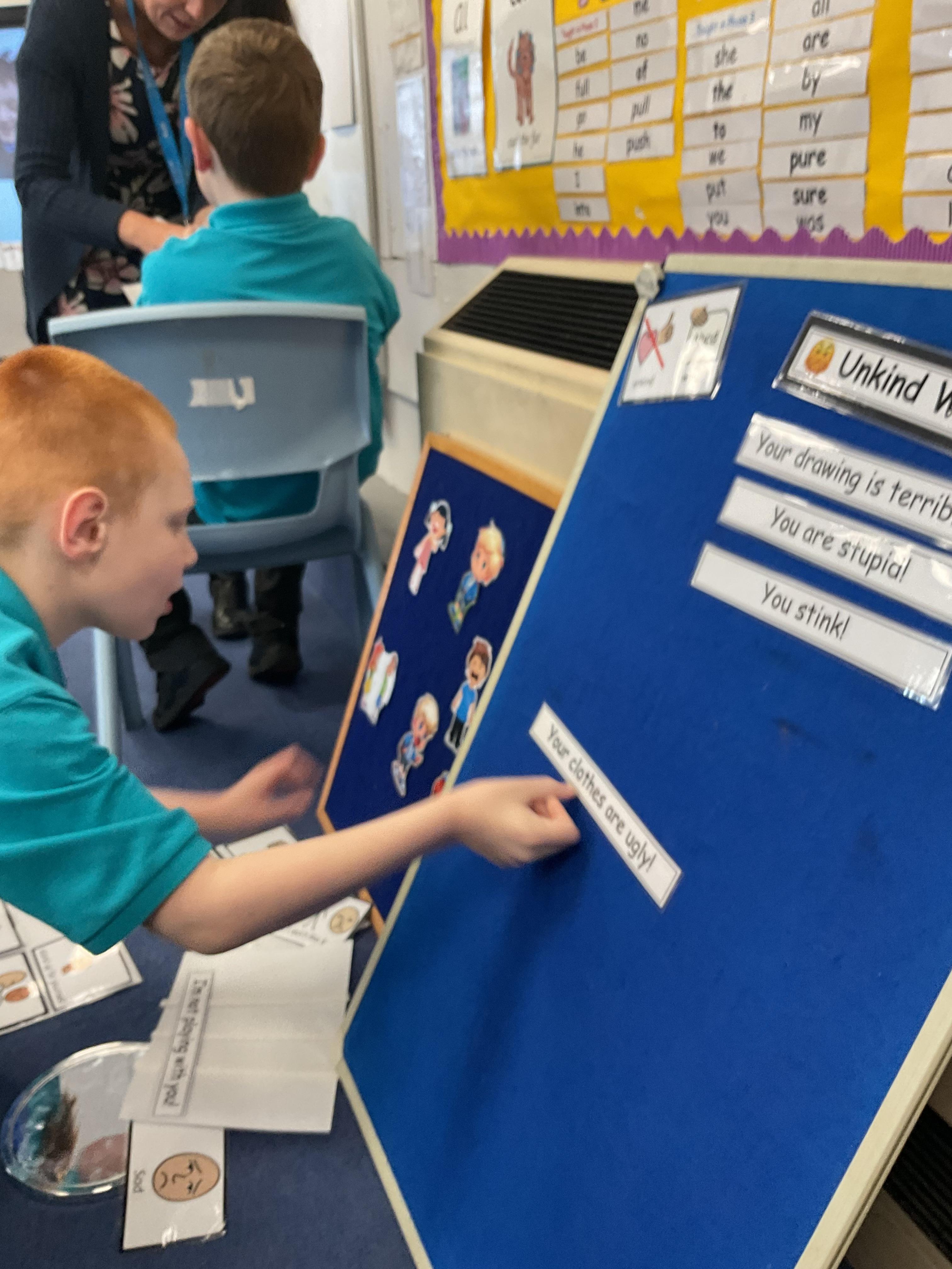 24.03.25 PHSE: In PHSE Anacondas have been learning about unkind words and standing up for themselves.