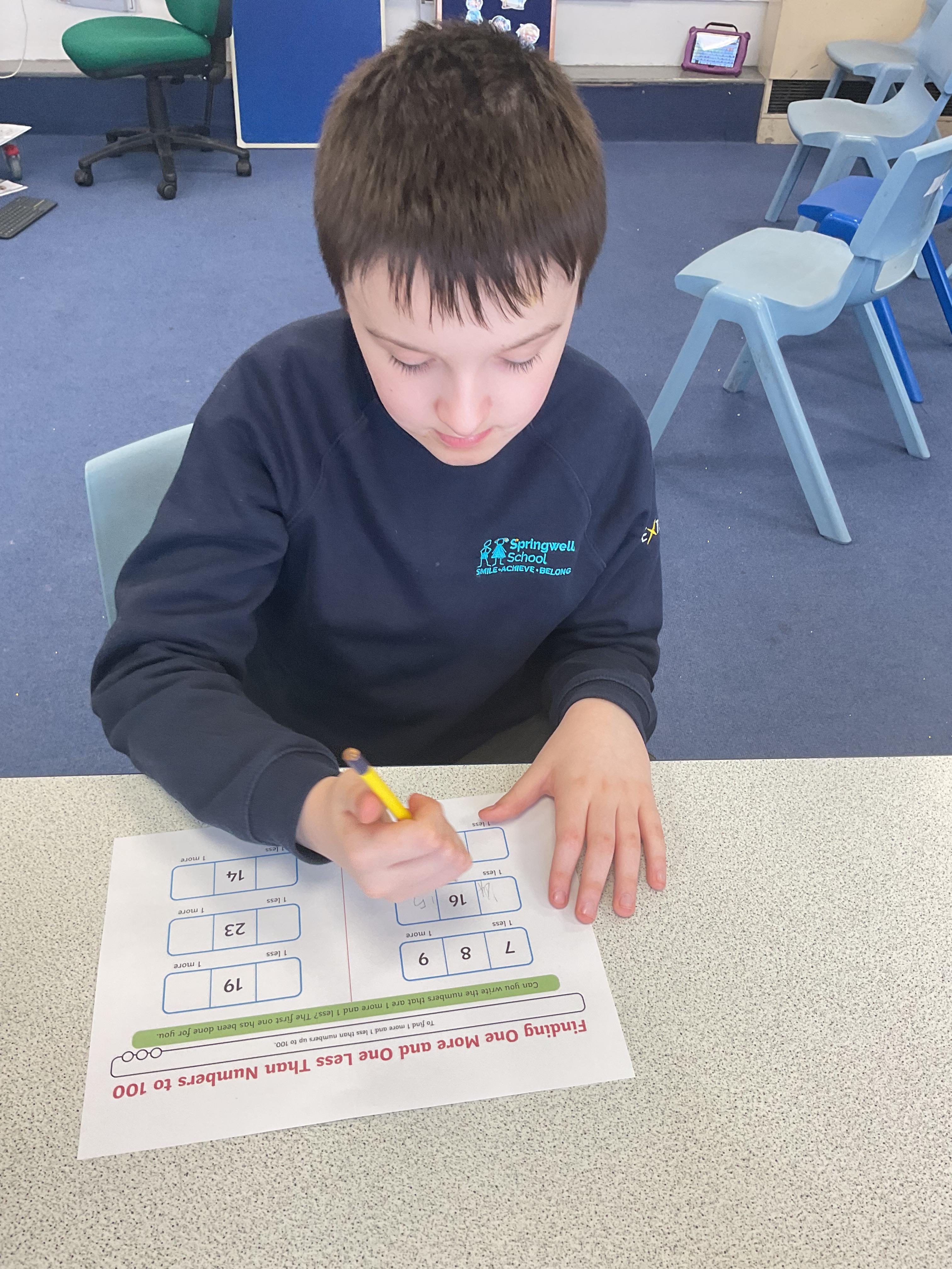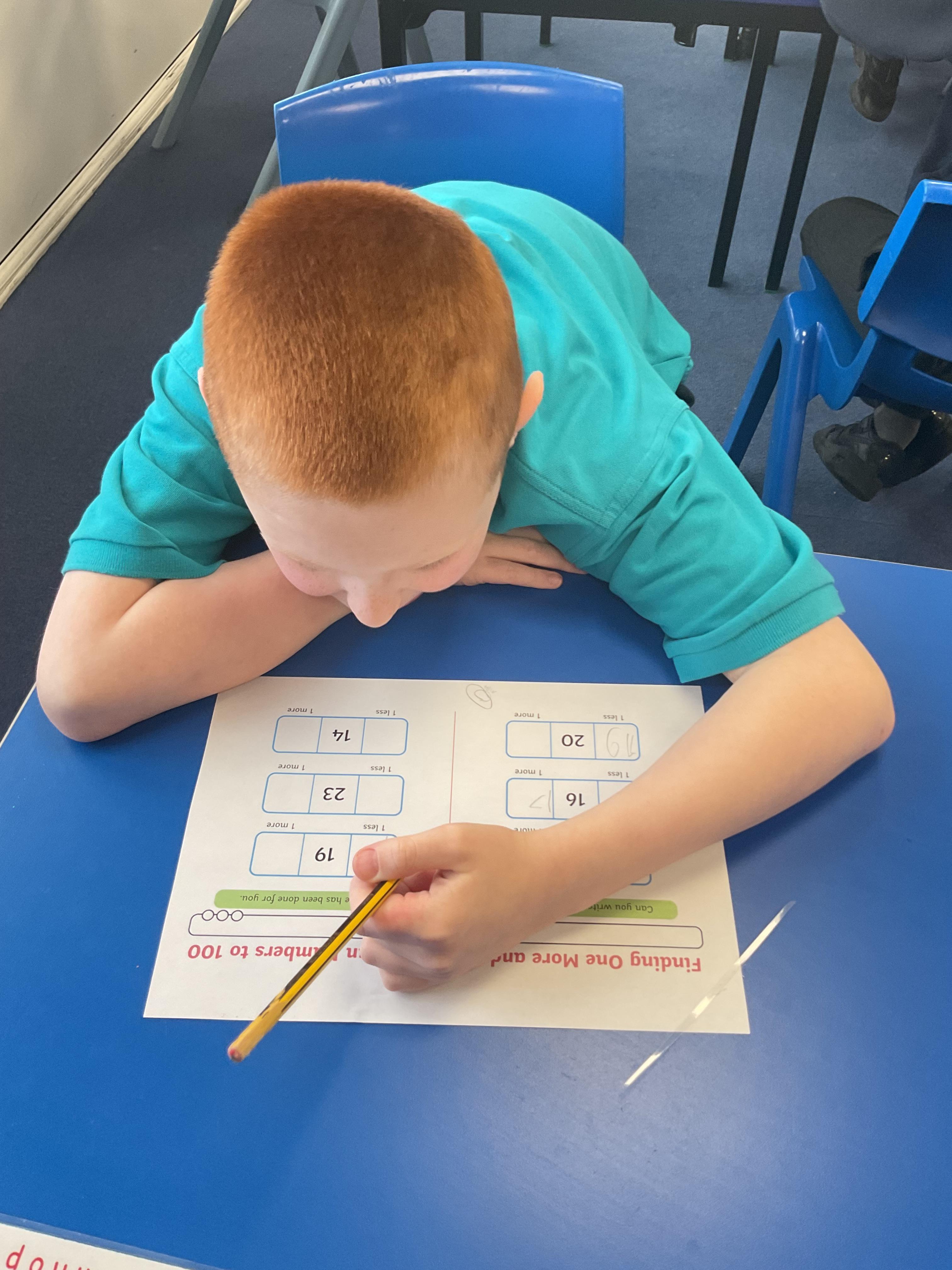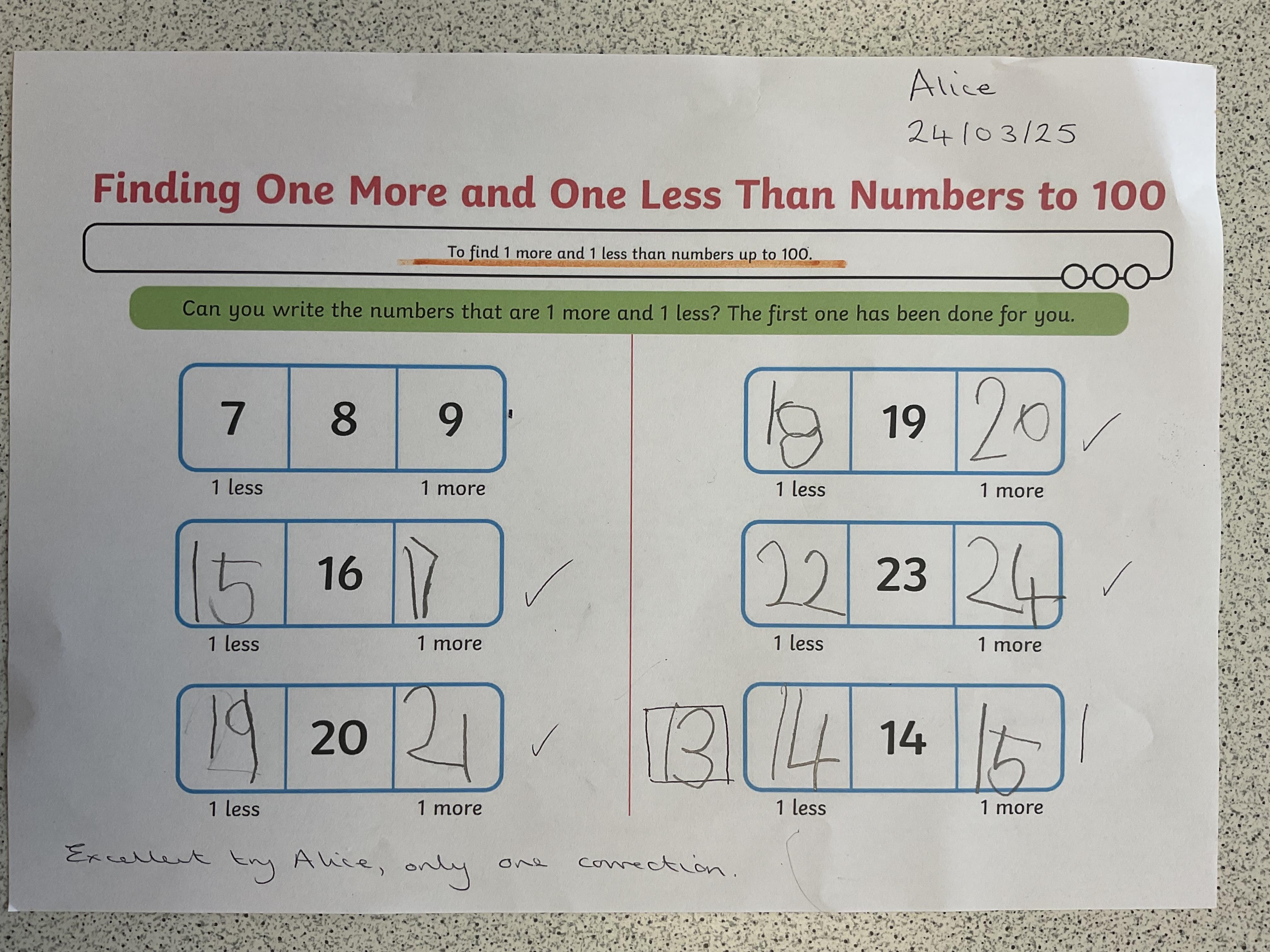 24.03.25 MATHS: In maths, Anaconda Class have been learning about adding one more from a given number, take one away from a given number.