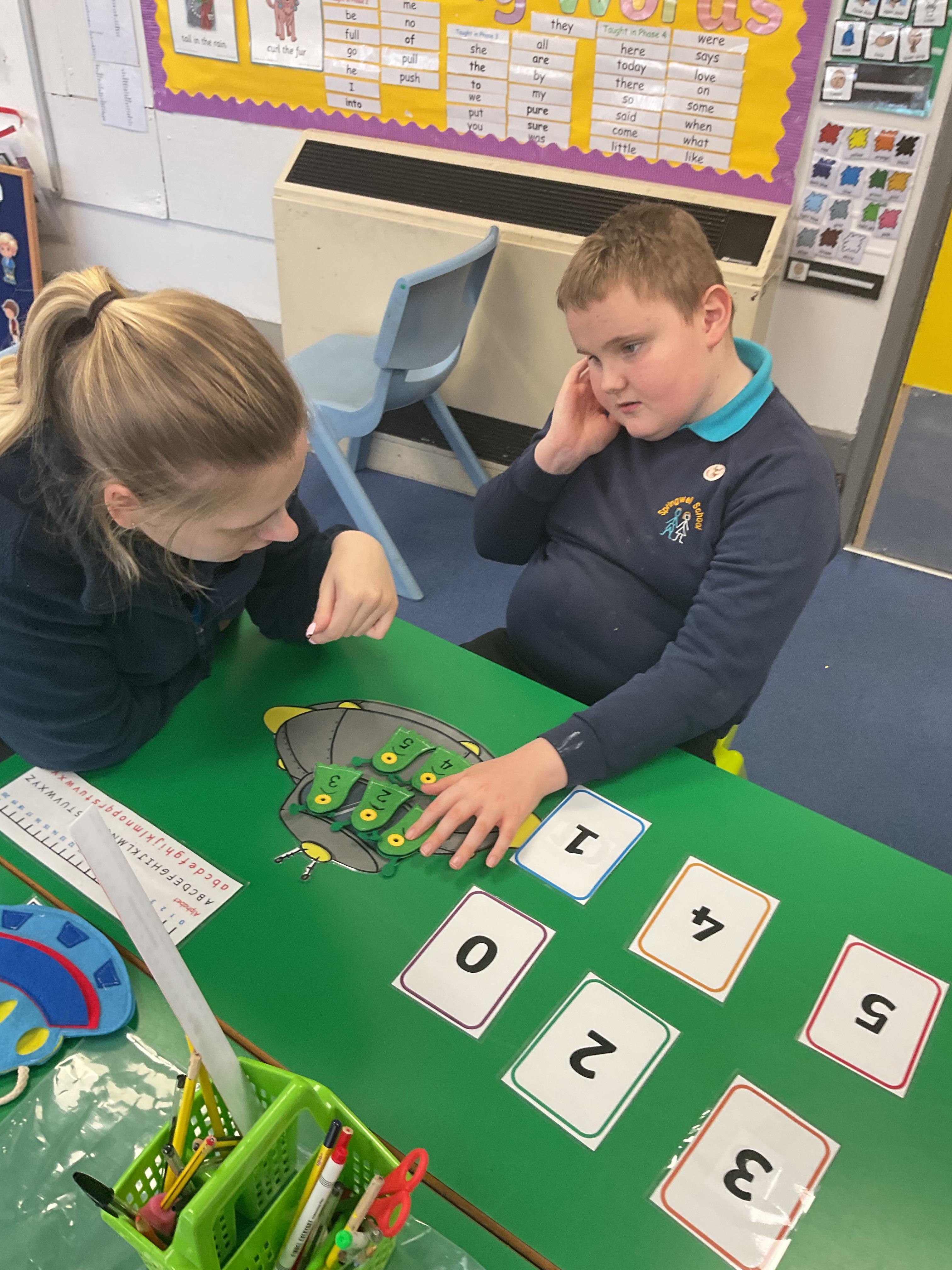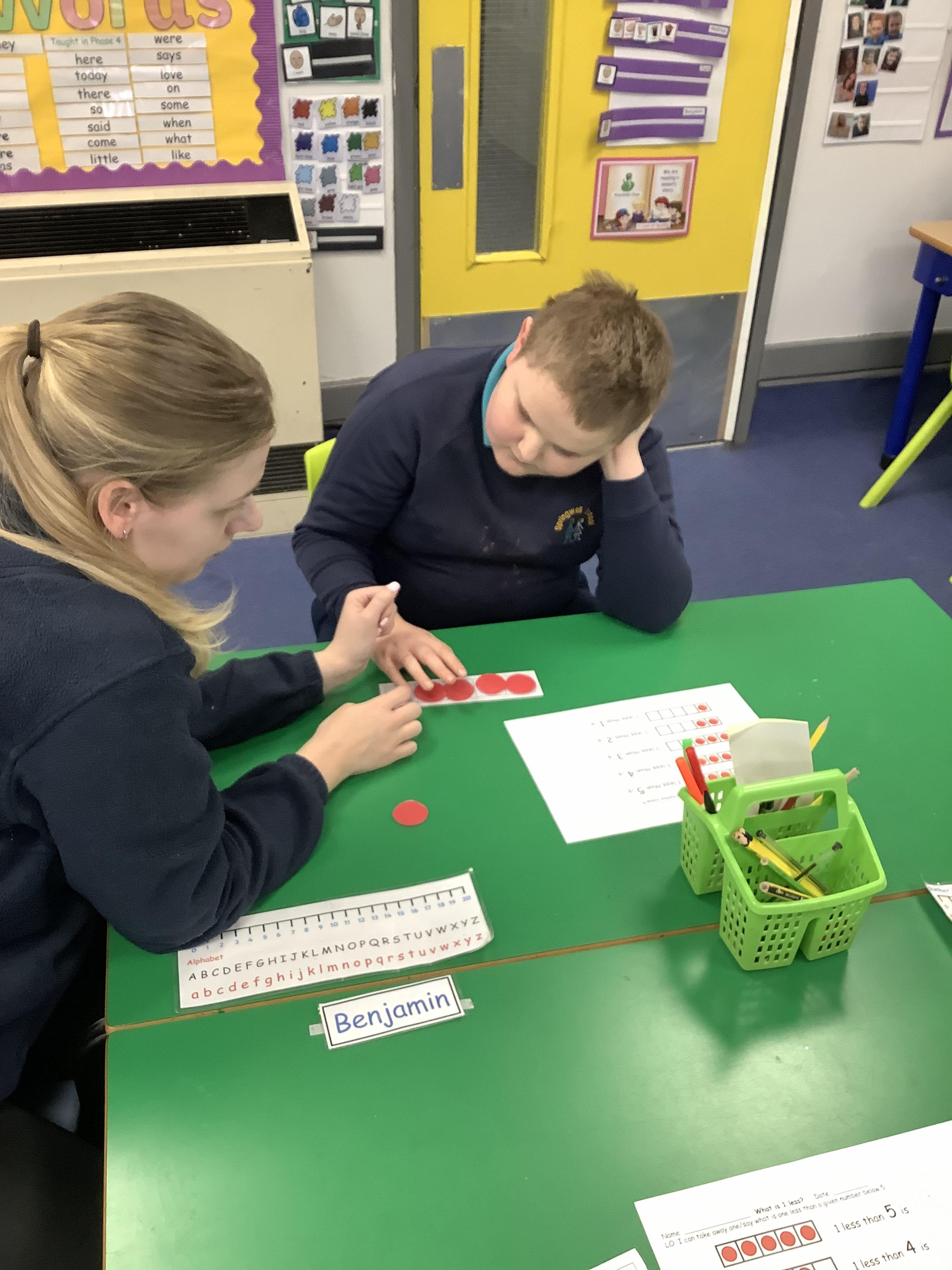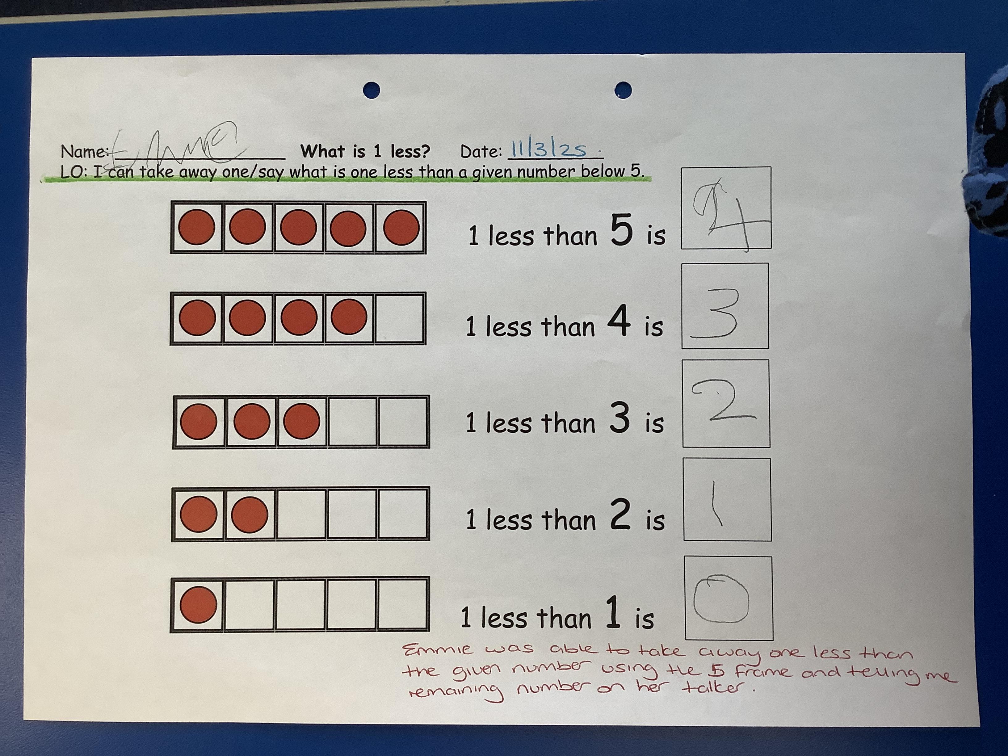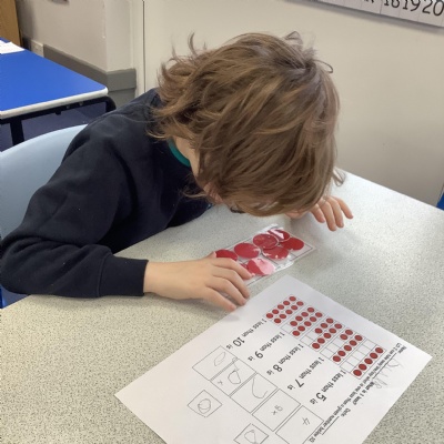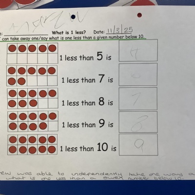 13.03.25 MATHS: The children have been using a five or ten frame to support them to take away one or say what is one less than a given number.