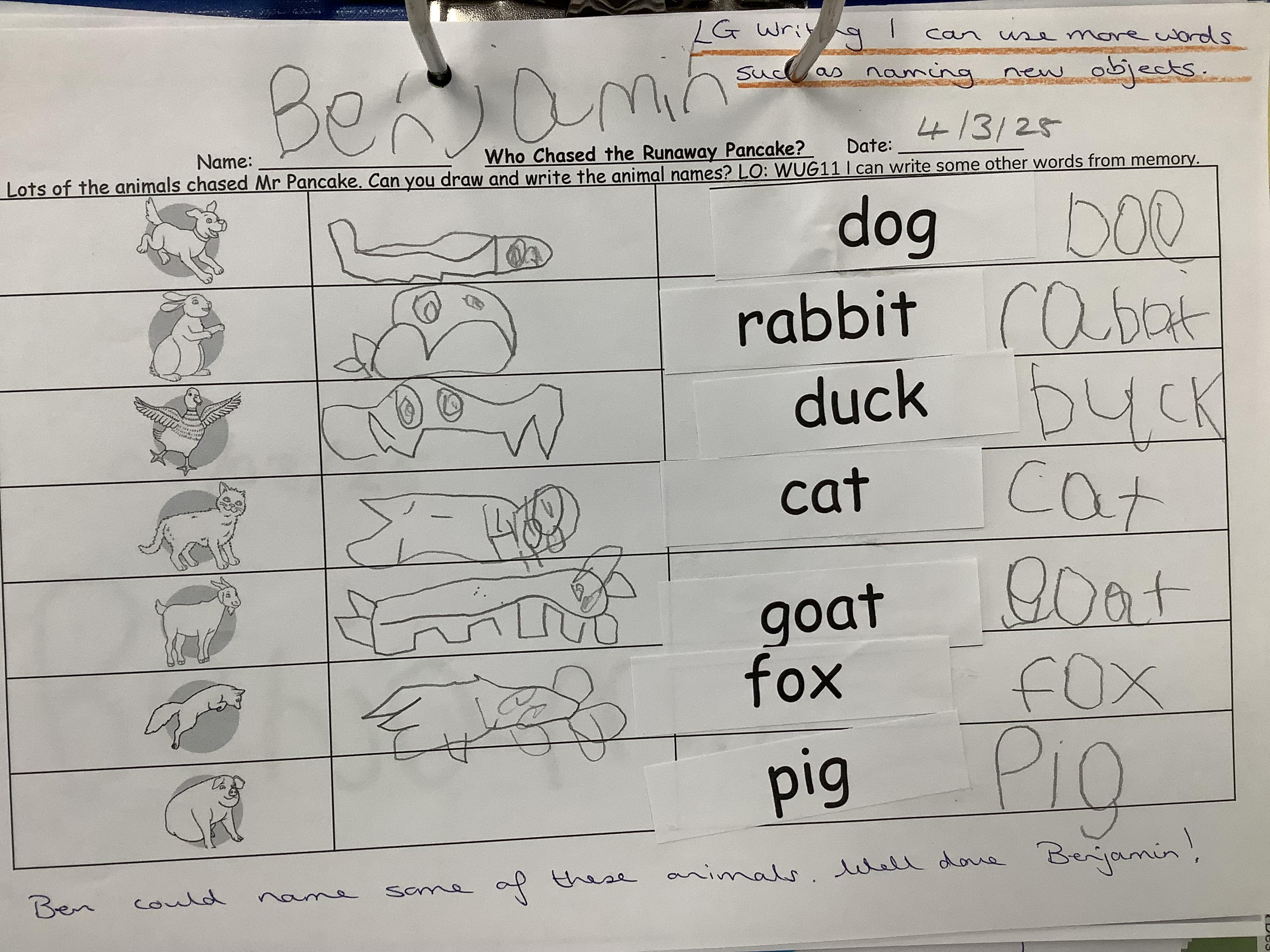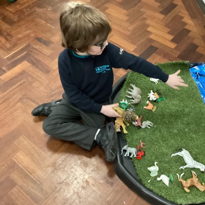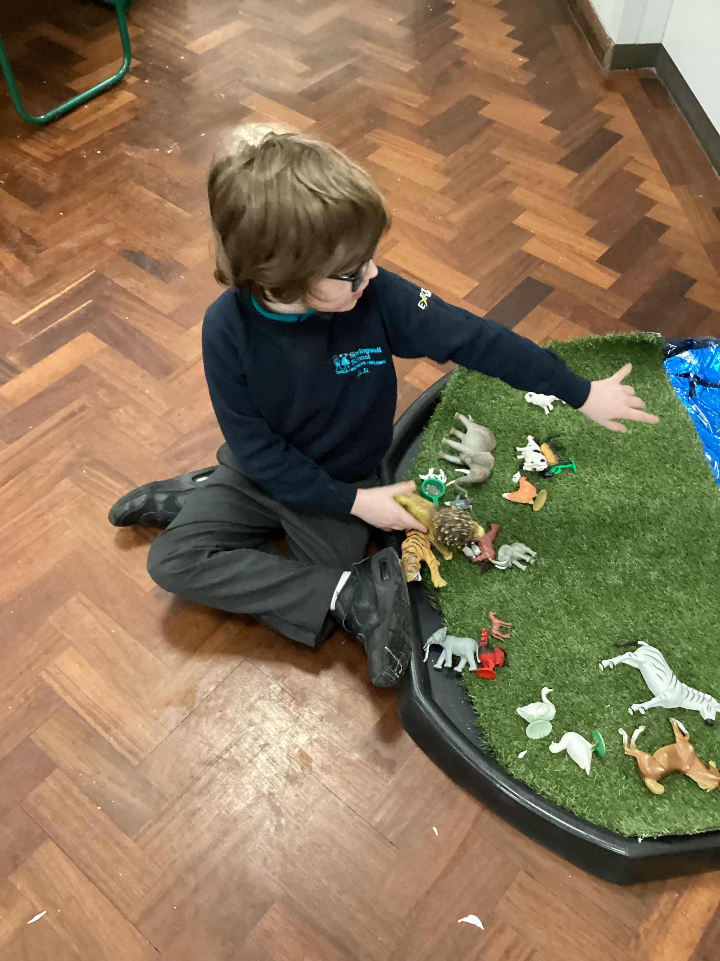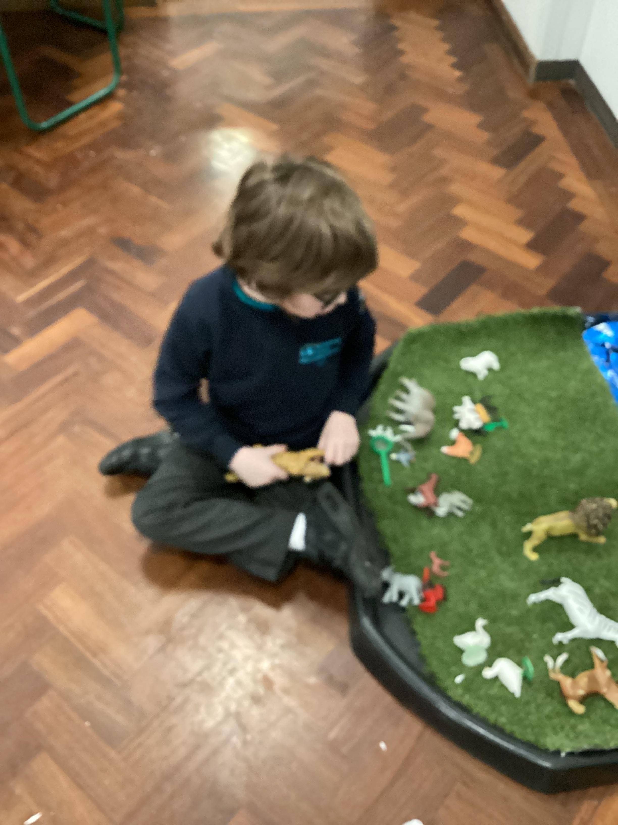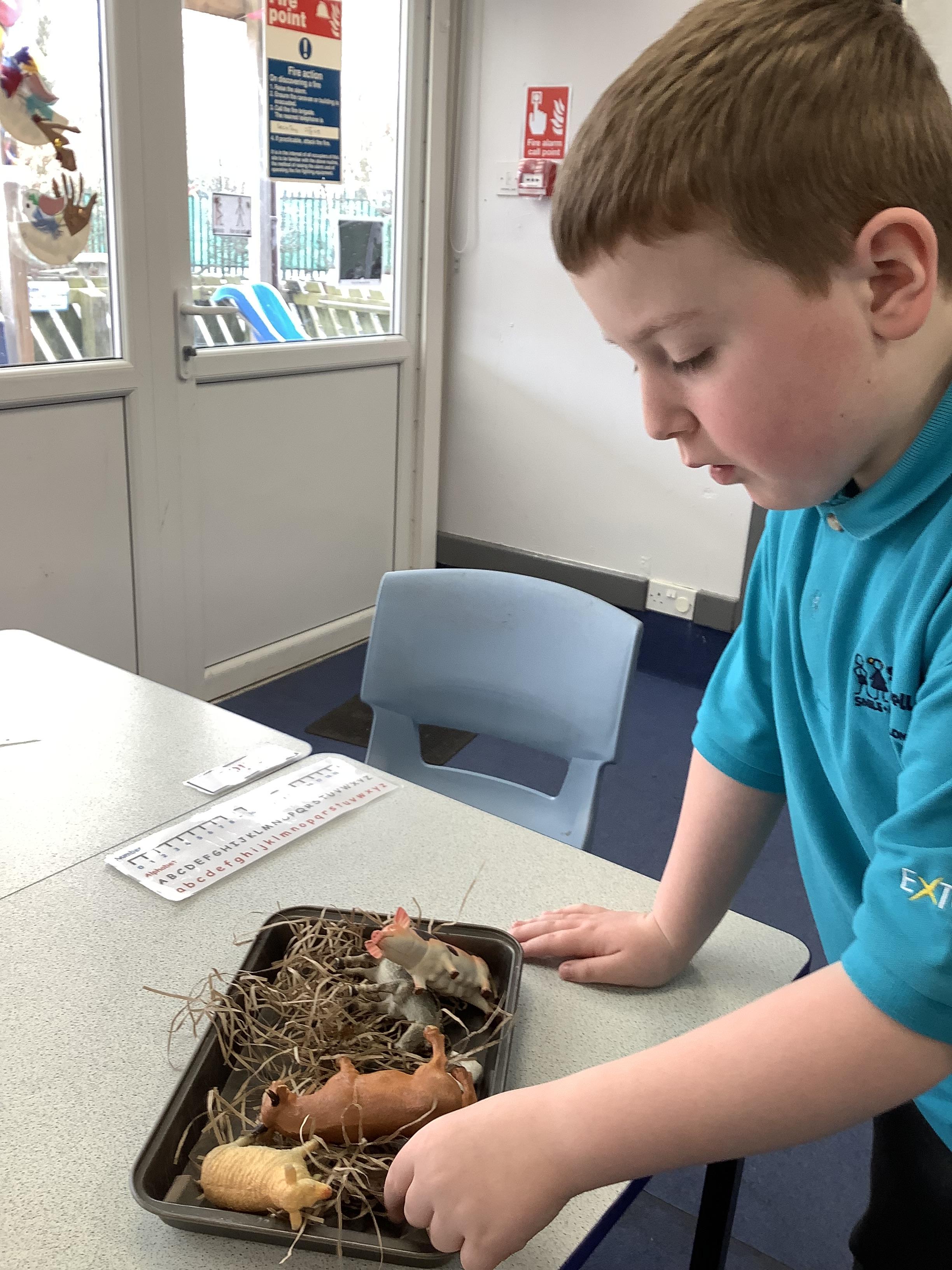 17.03.25 SCIENCE We have been looking closely at a farm and identifying what types of animals live here. We have been identifying all the different features in the farm environment and drawing symbolic representations of them including a farm house, duck pond, fields, a barn, muddy area for the pigs etc. We have been listening to the sounds each of the farm animals make, identifying them and mimicking them.