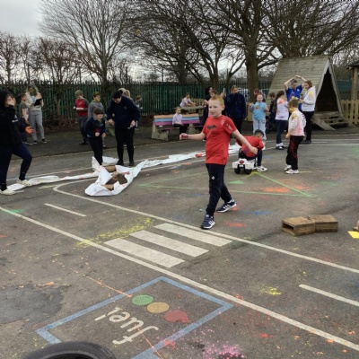 20.03.25 PHYSICAL EDUCATION: We explored 'Twedddle Farms' outdoor activities. The children were able to link specific movements with different play equipment. They absolutely loved jumping on the huge, bouncing pillow!