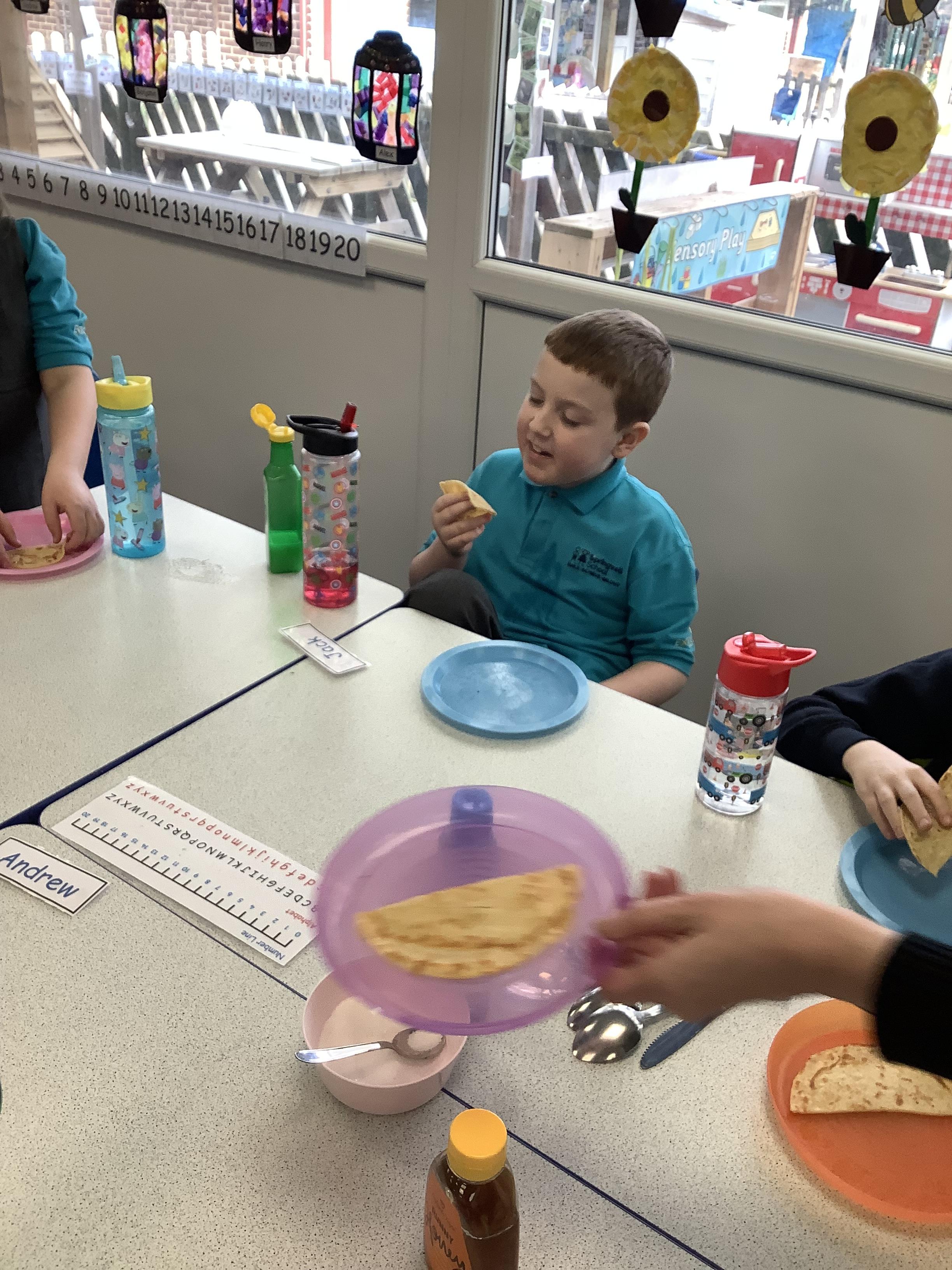 03.03.25 LITERACY - This week in Anaconda class, we have been reading the story "The Runaway Pancake". The children all love the book and love getting involved with all the props to help tell the story.