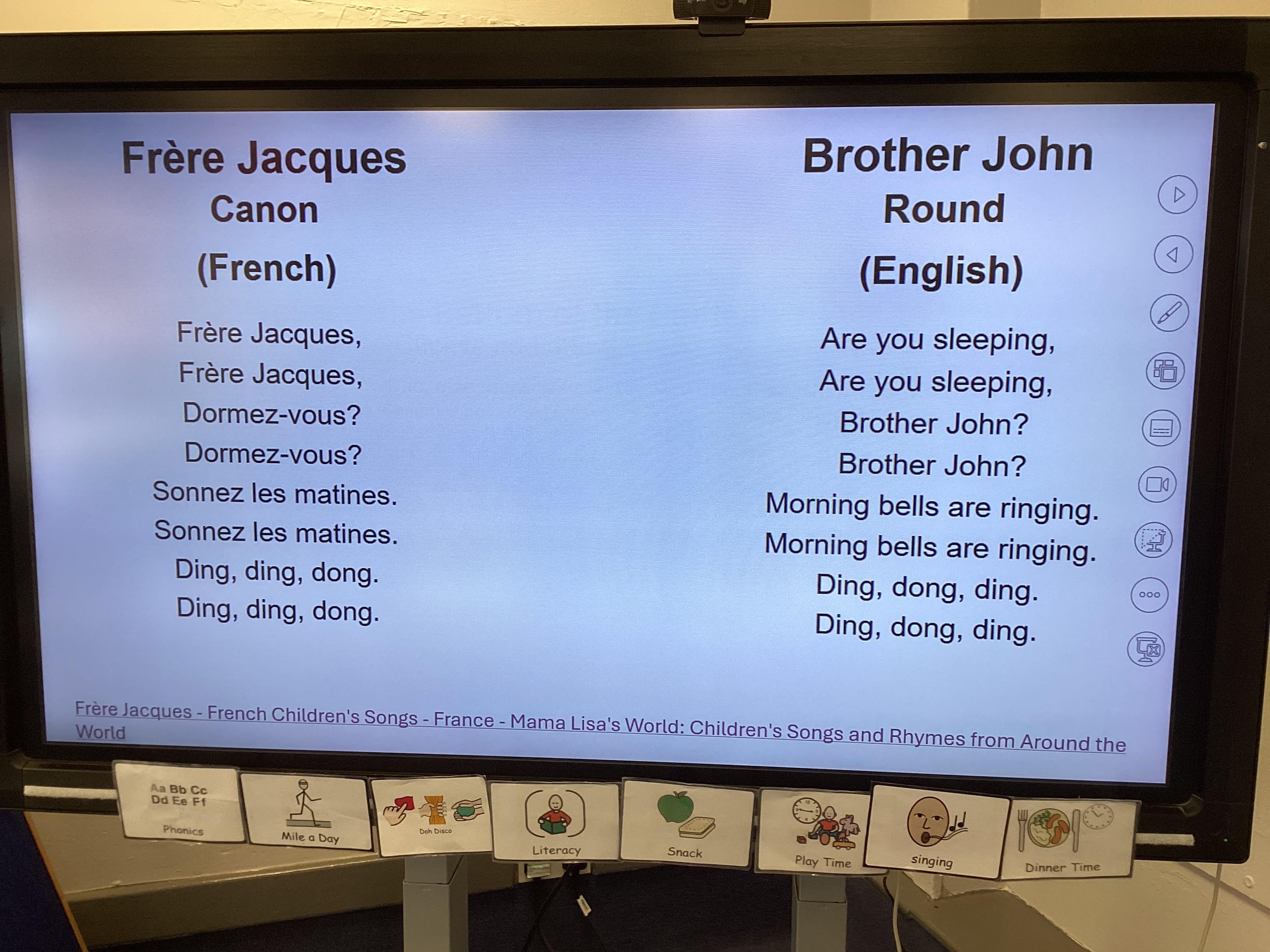 20.02.25 MUSIC: French Songs - The children have enjoyed listening to a variety of French songs. Today, we learned both the English and French versions of the songs; 'Frere Jacques' and 'Clic Clac, Dans Les Mans' today.