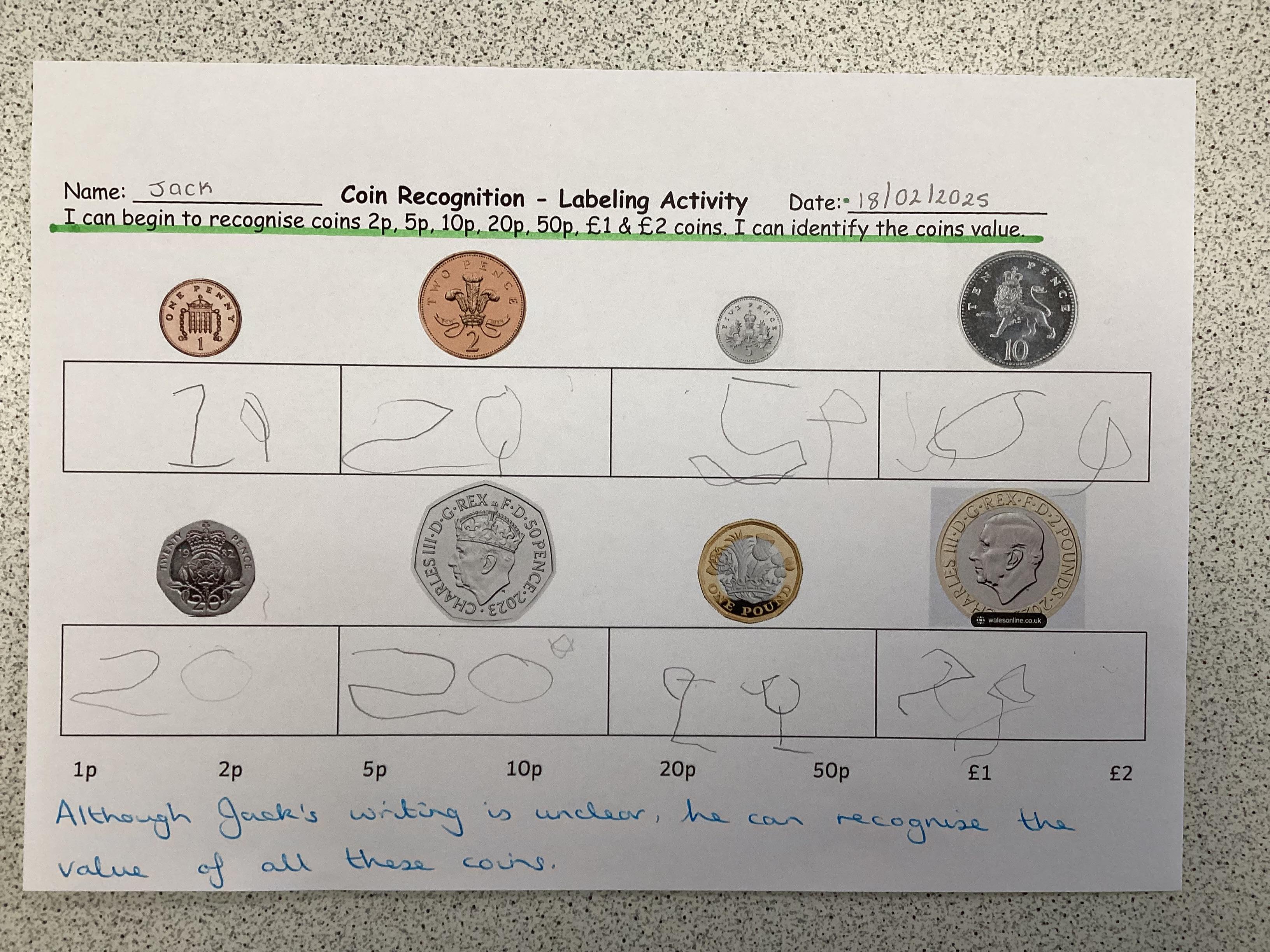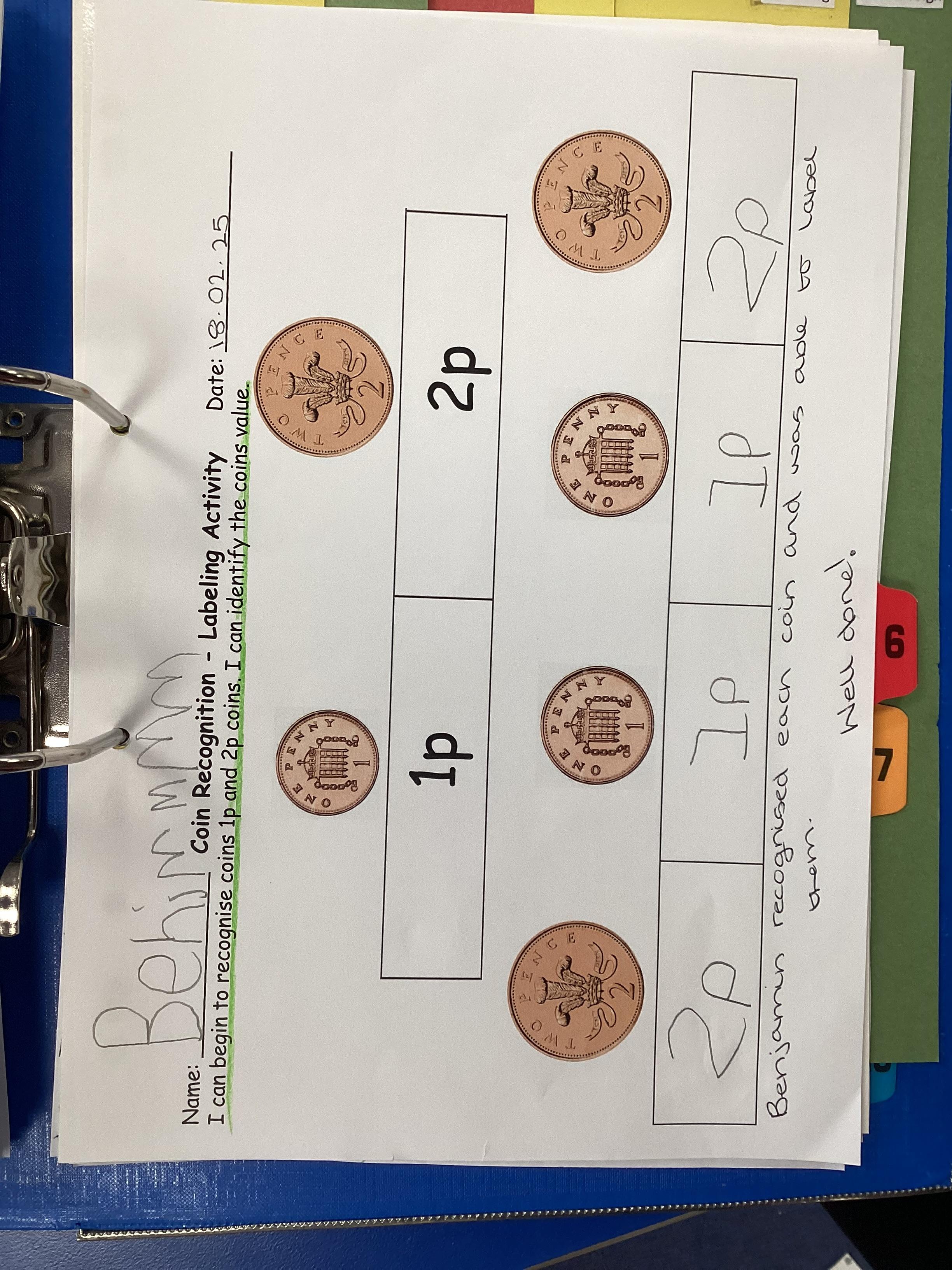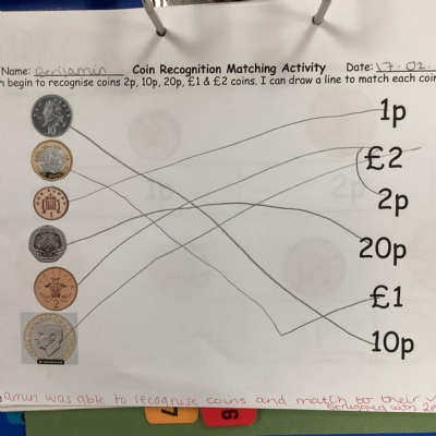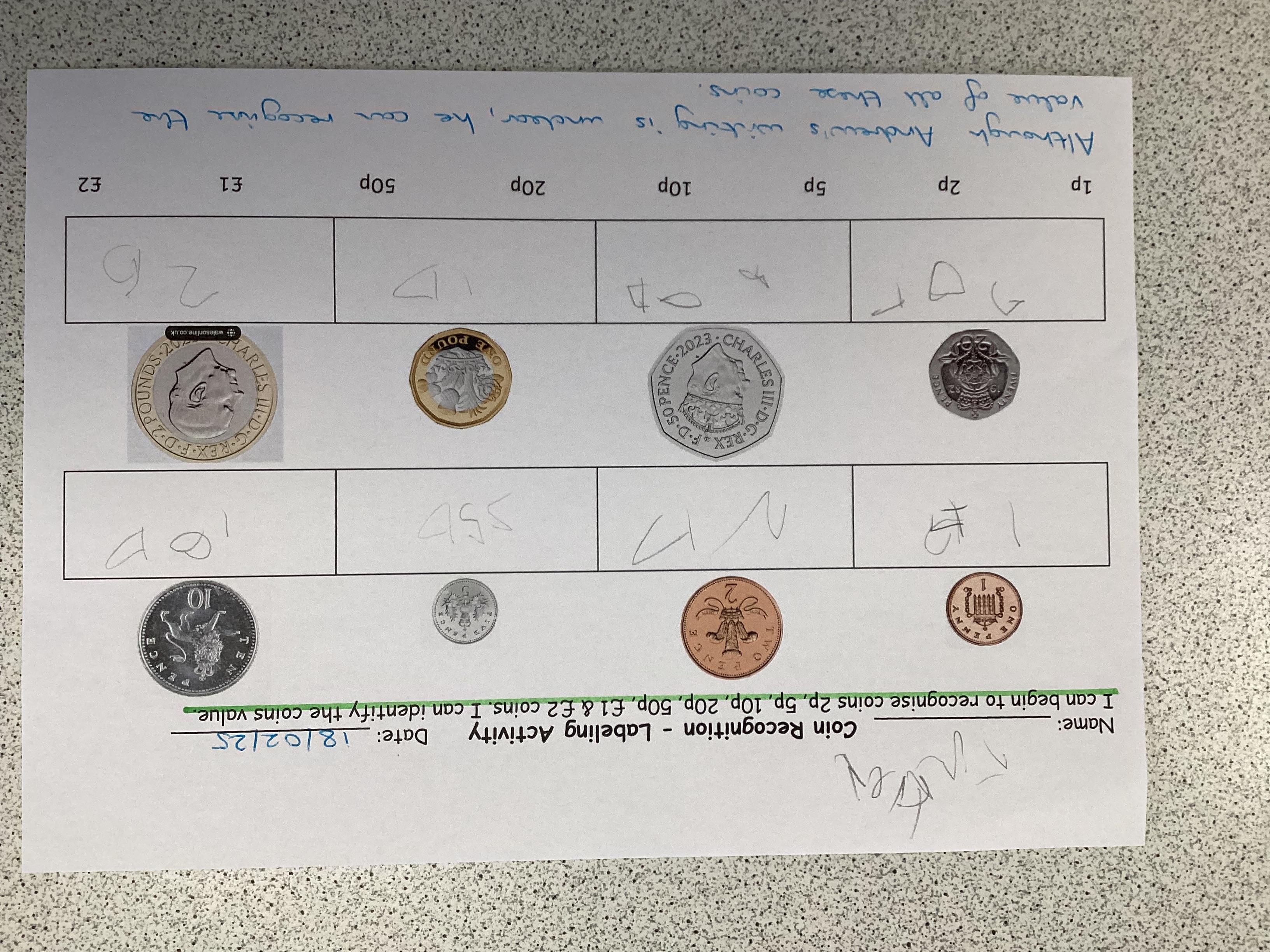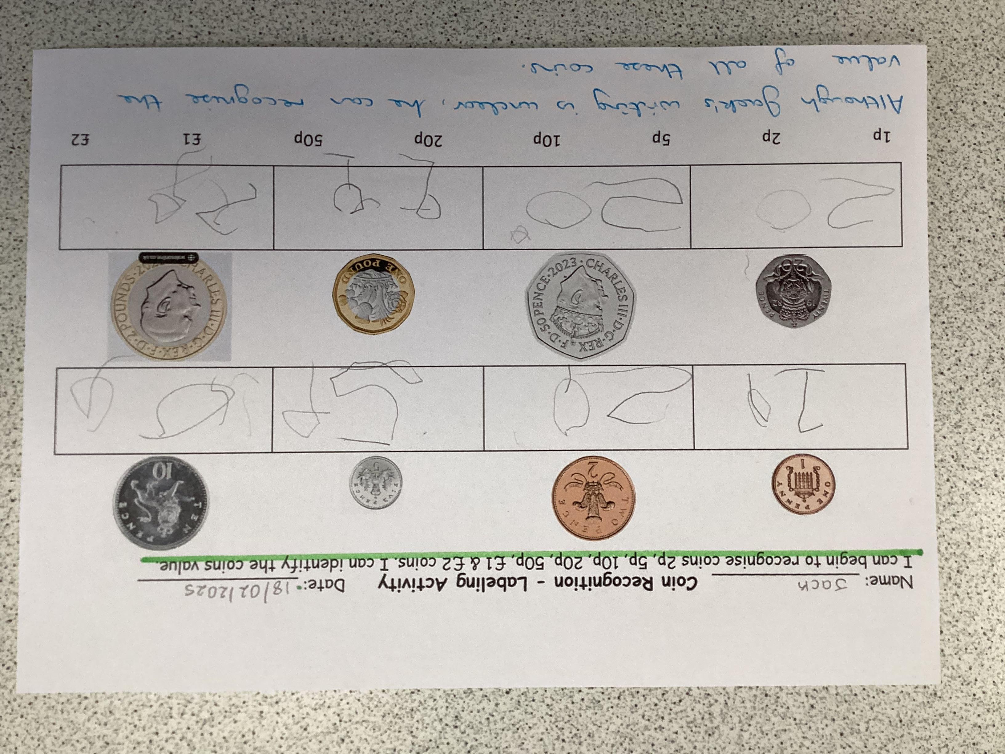 19.02.25 MATHS: MONEY We have been recognising, identifying and sorting coins according to their value; 1p, 2p, 5p, 10p, 20p, 50p, £1 & £2 coins.