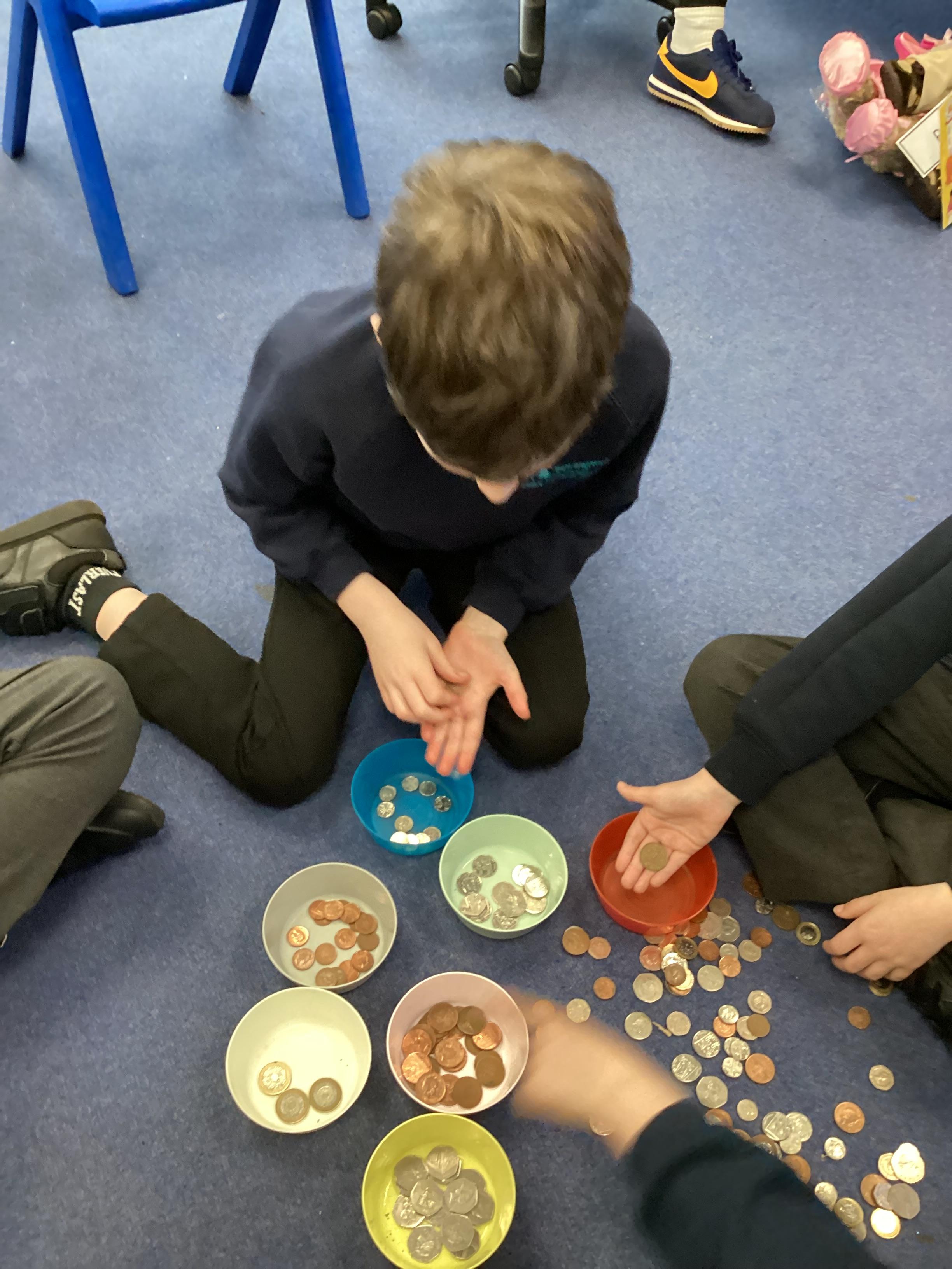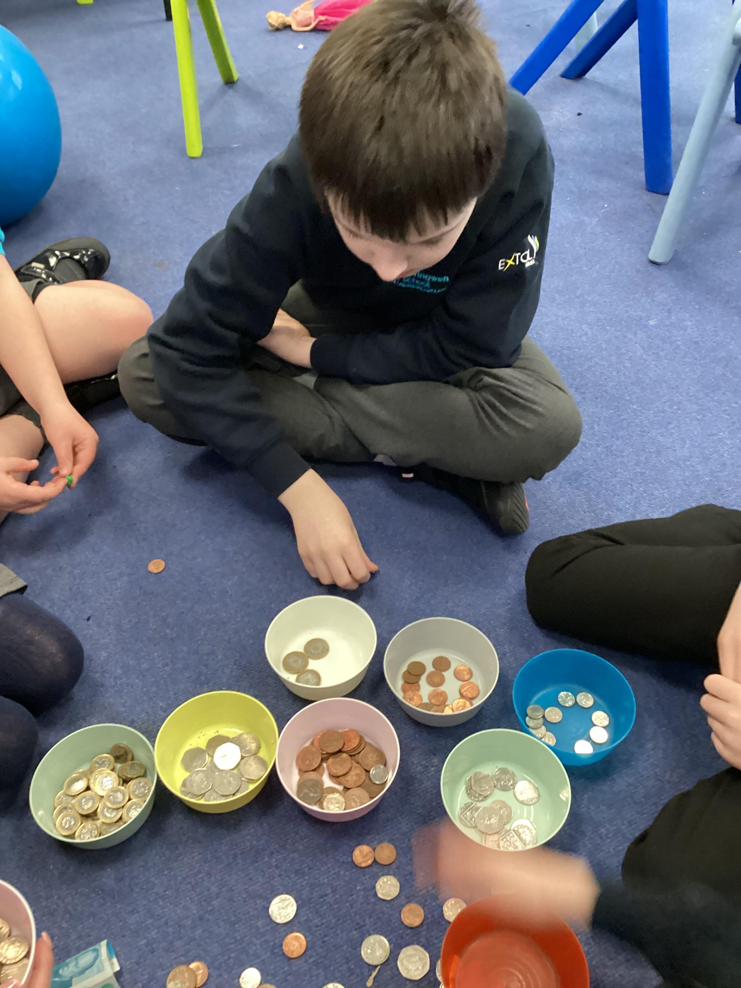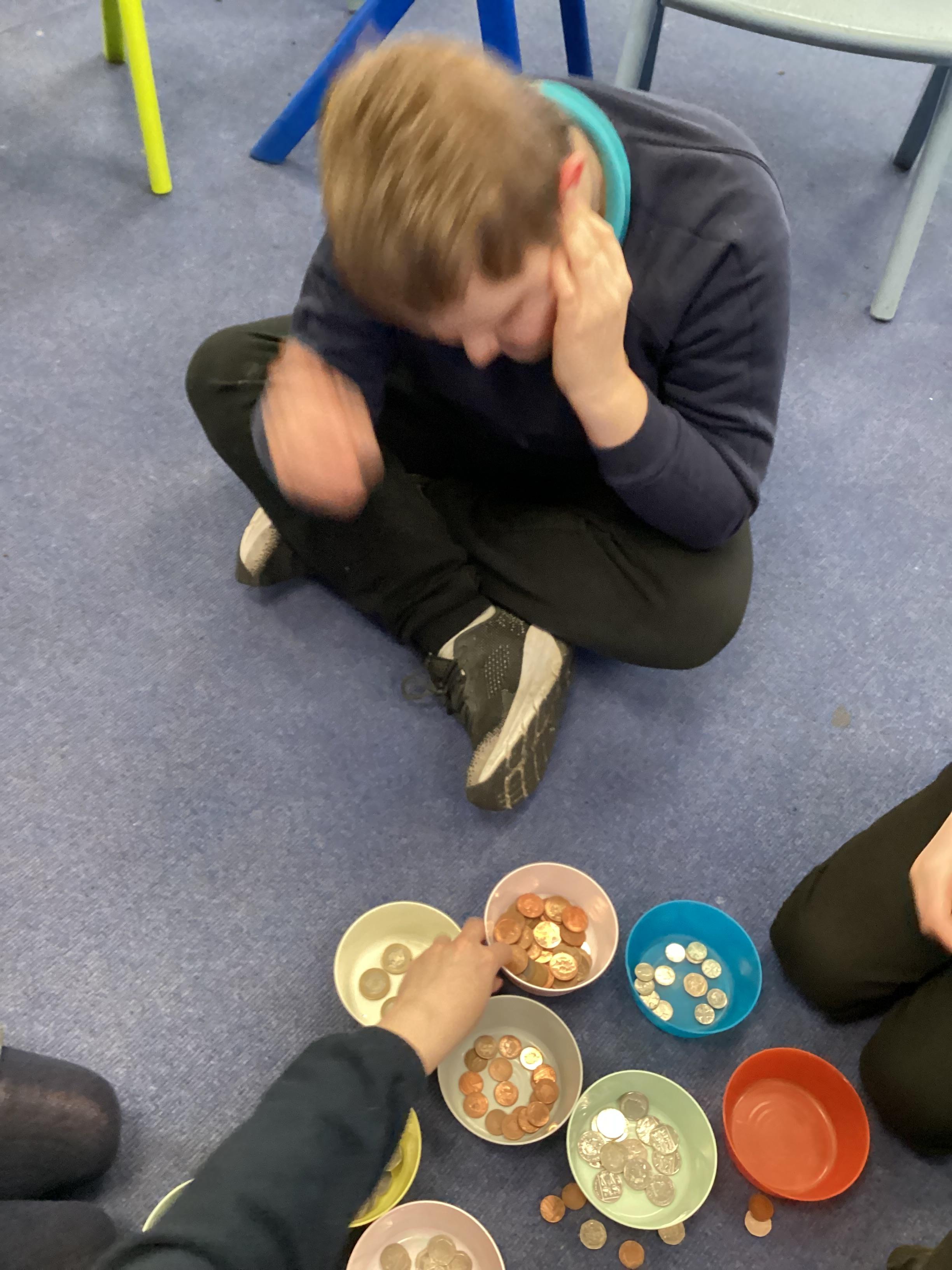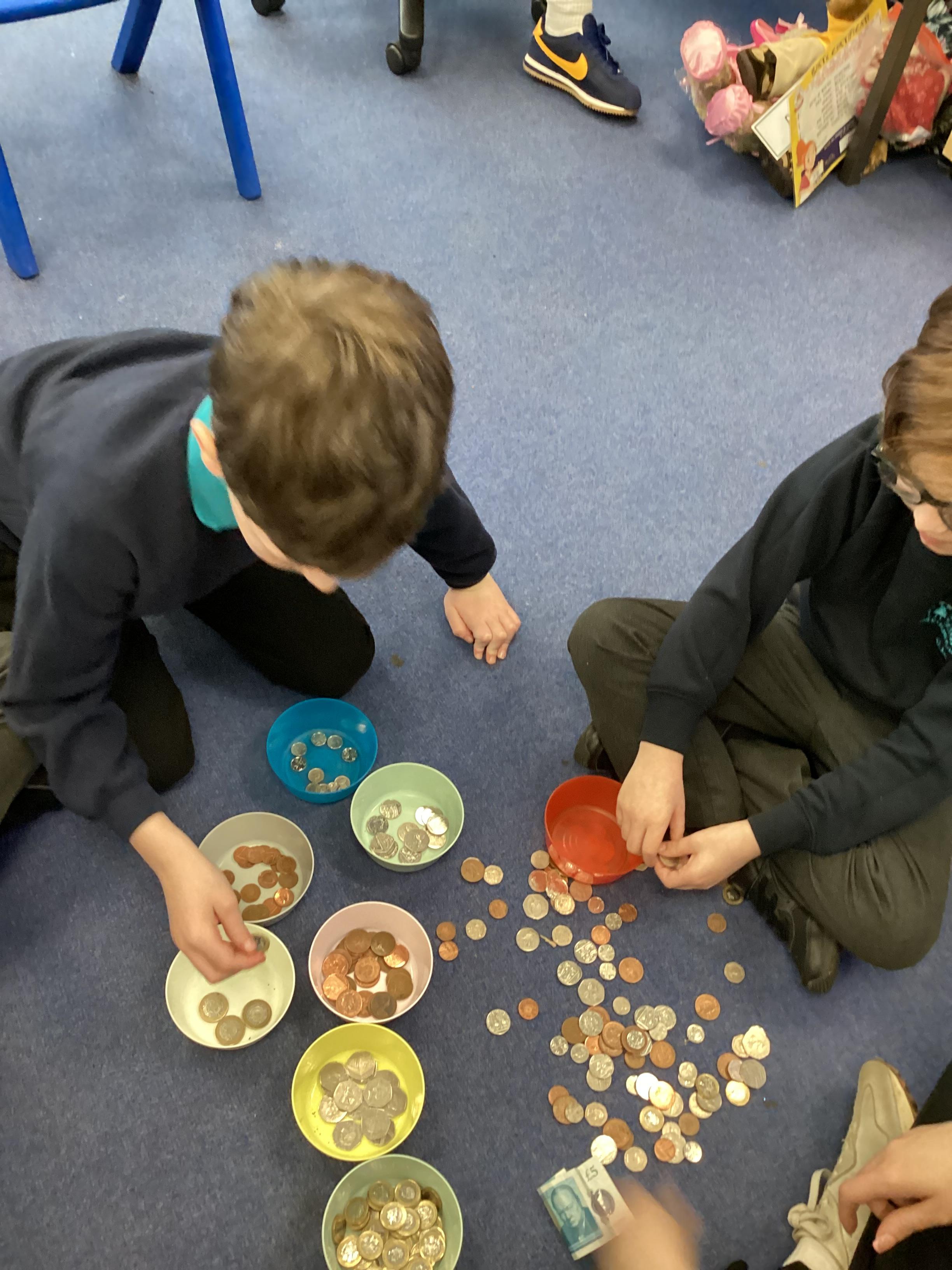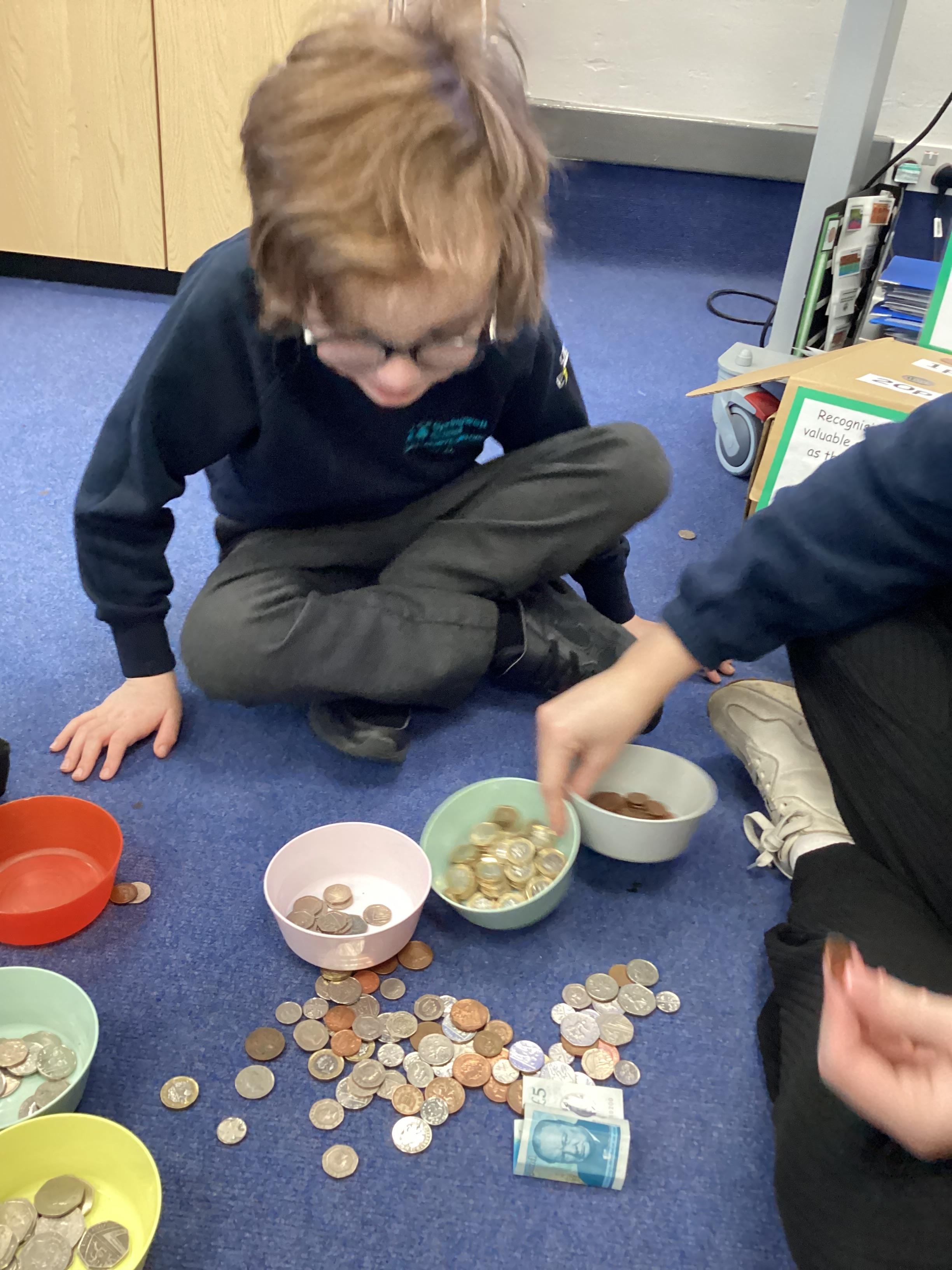 13.02.25 MATHS: MONEY The children have been recognising and sorting out the all the different coins (1p, 2p, 5p, 10p, 20p, 50p, £1, £2) in our number day donation box, into separate containers. Once the coins were sorted, we were able to count the total amount of coins and we amazing raised £81.90 for our school fund.