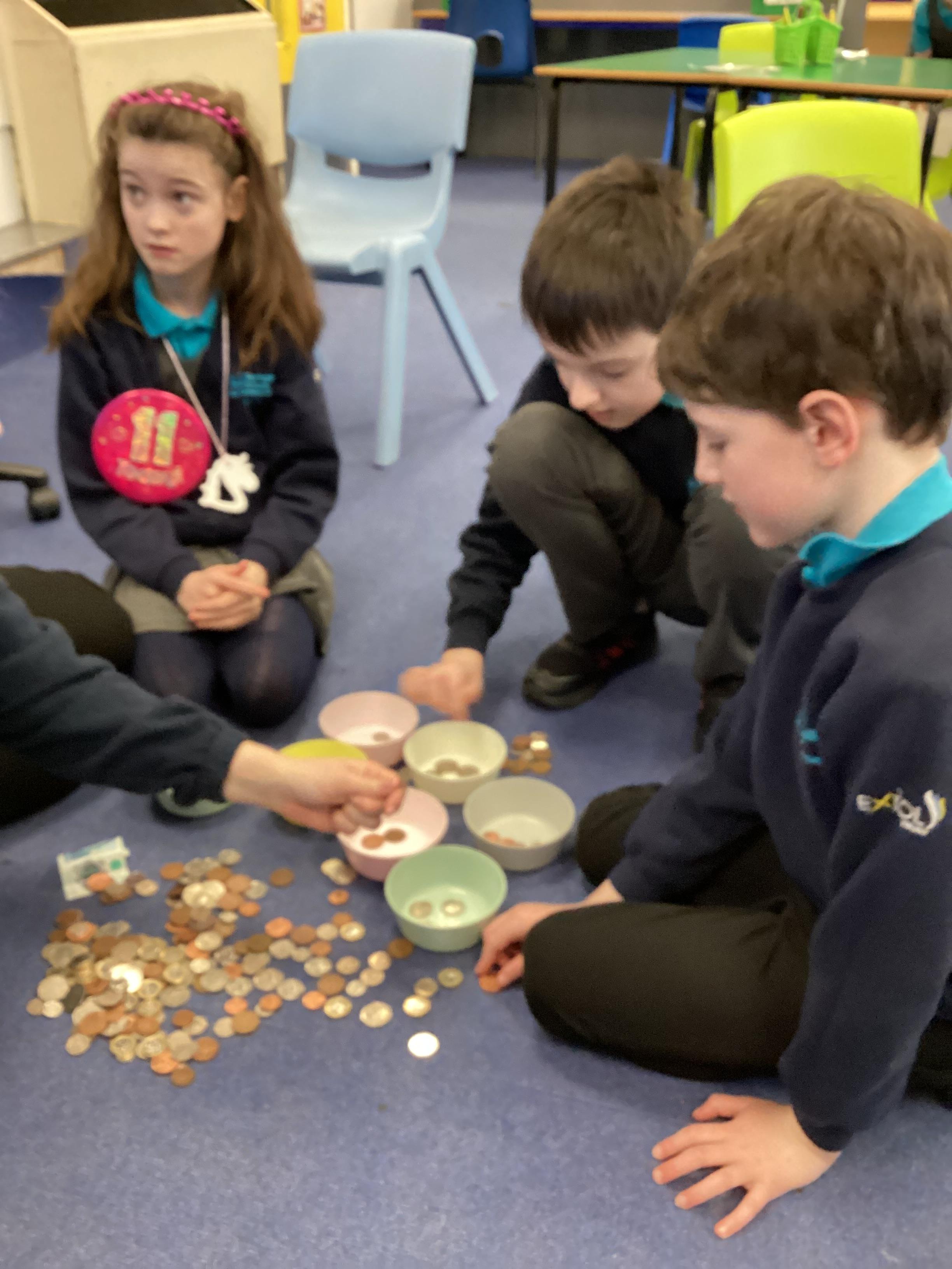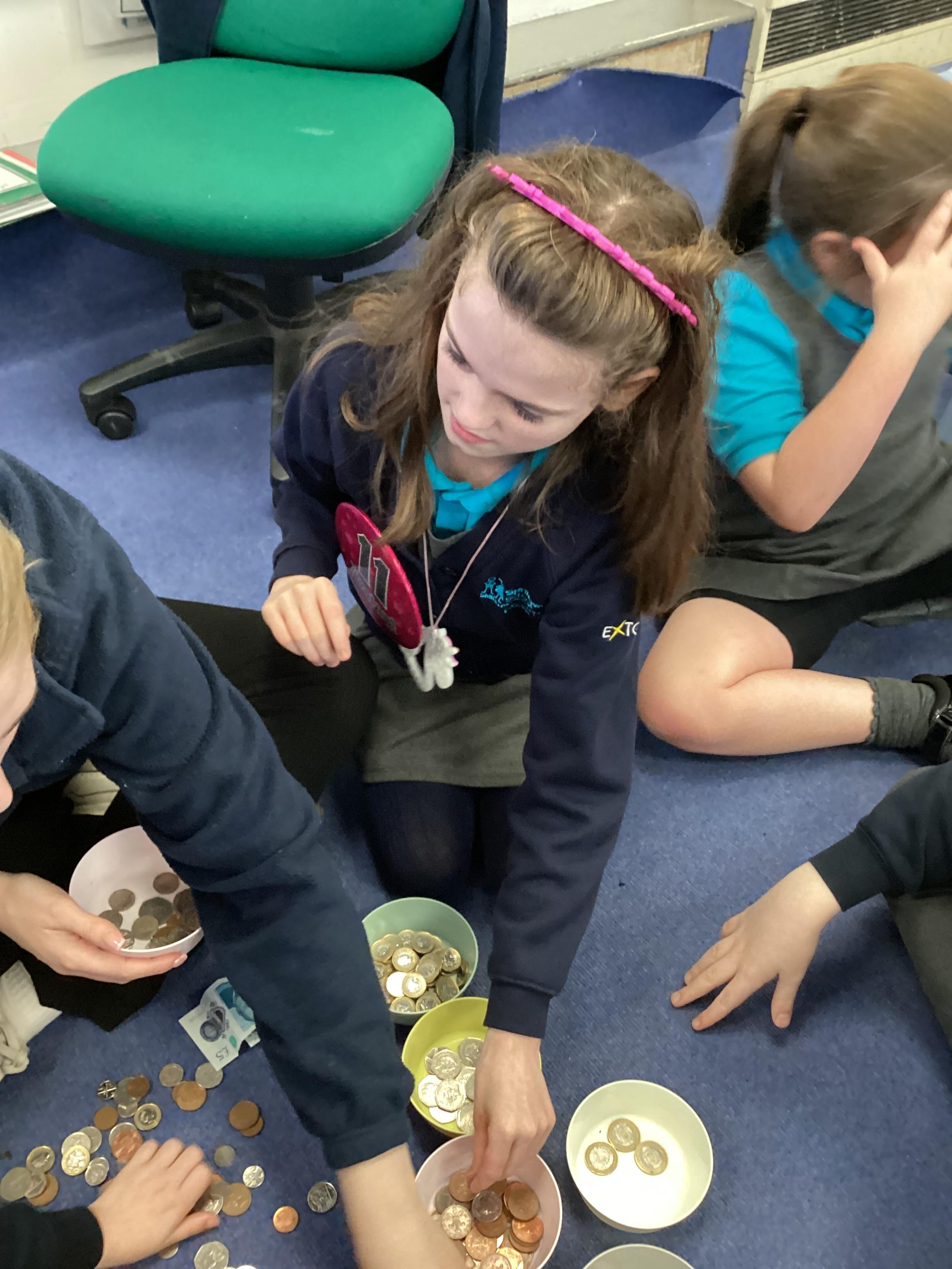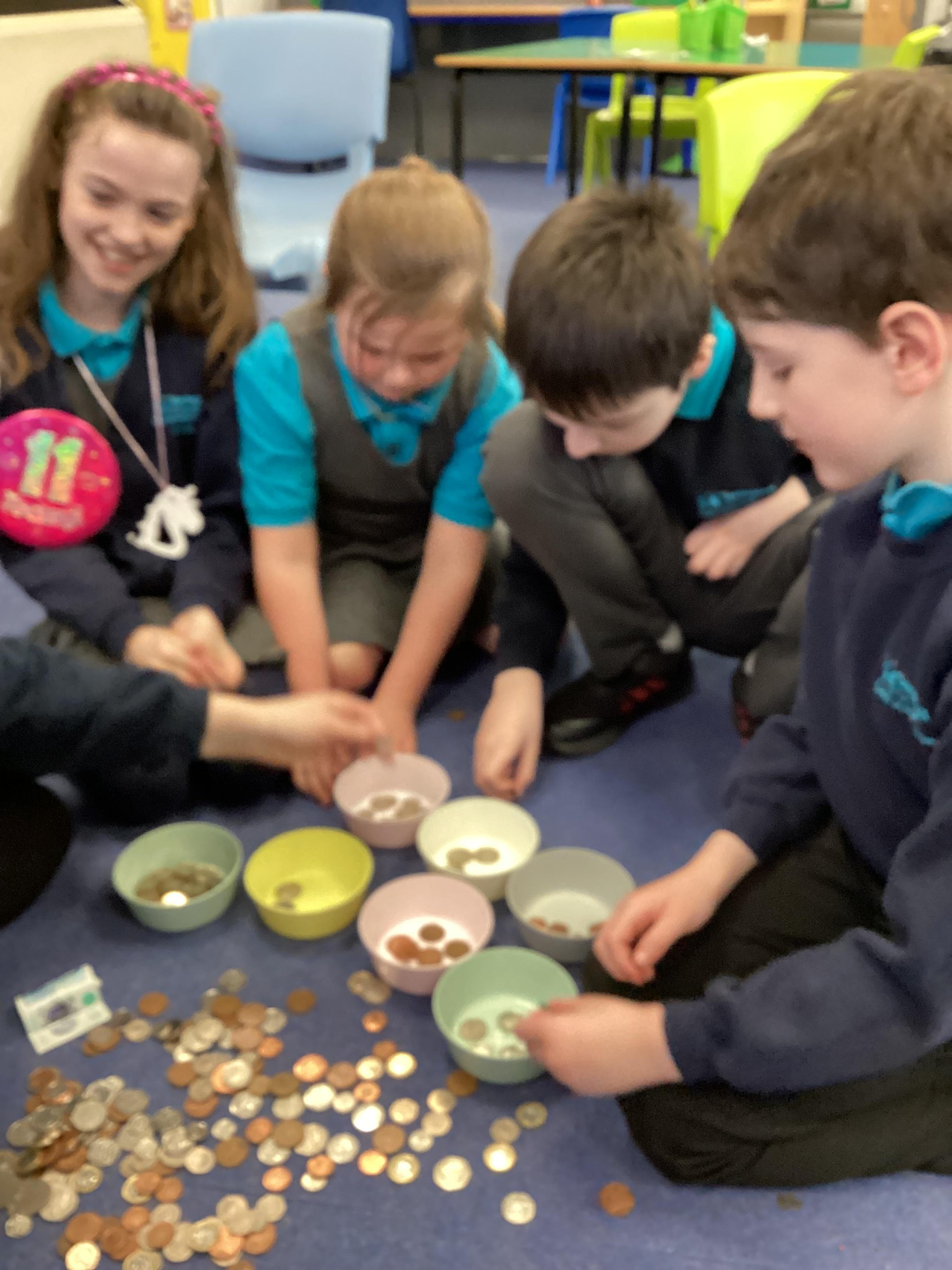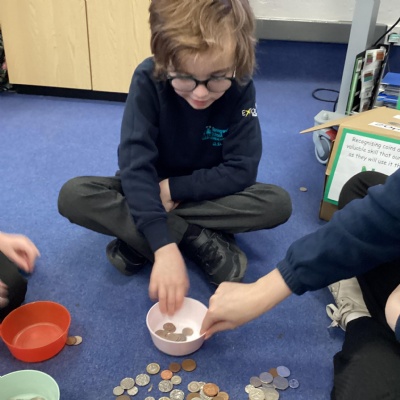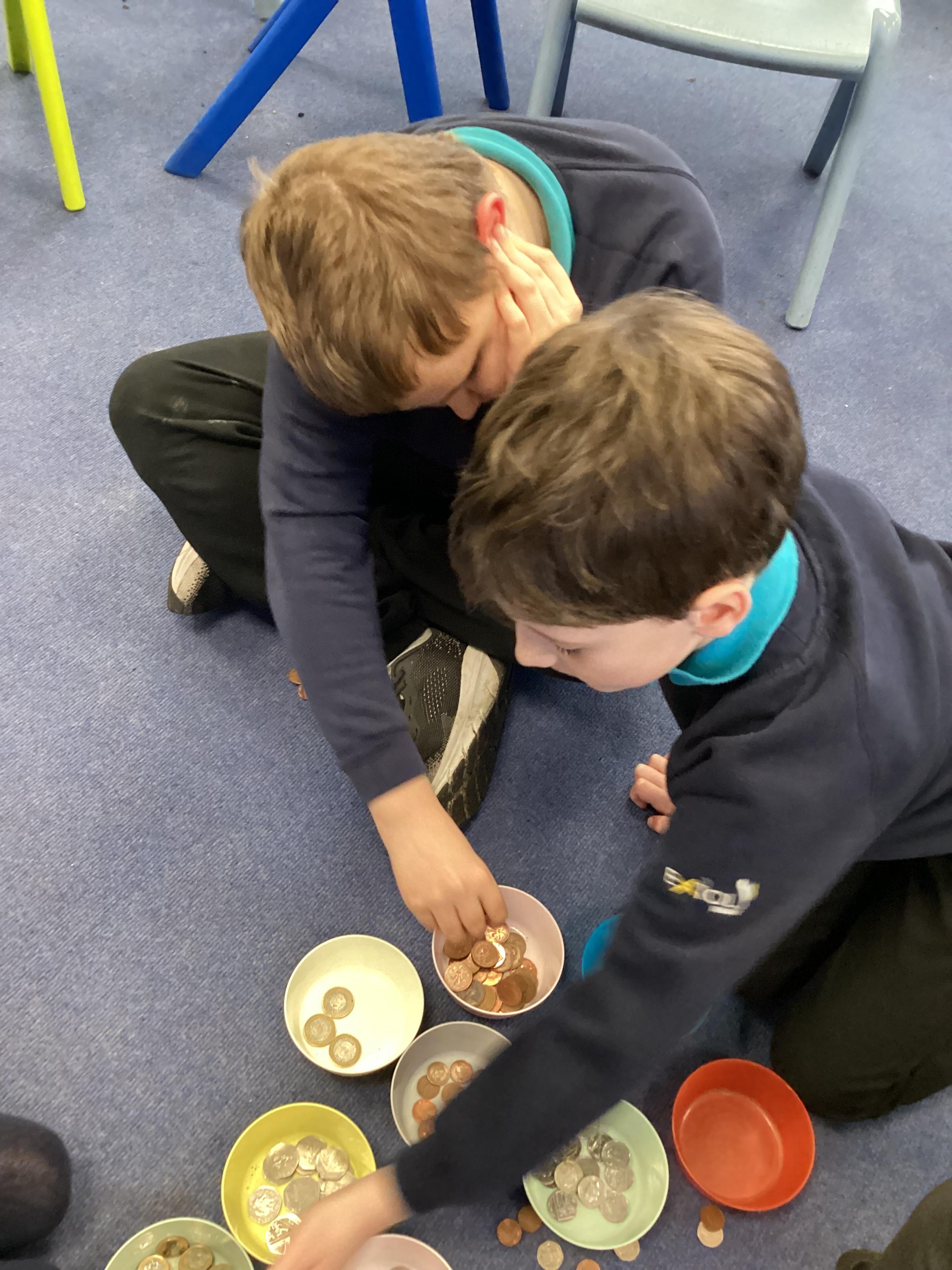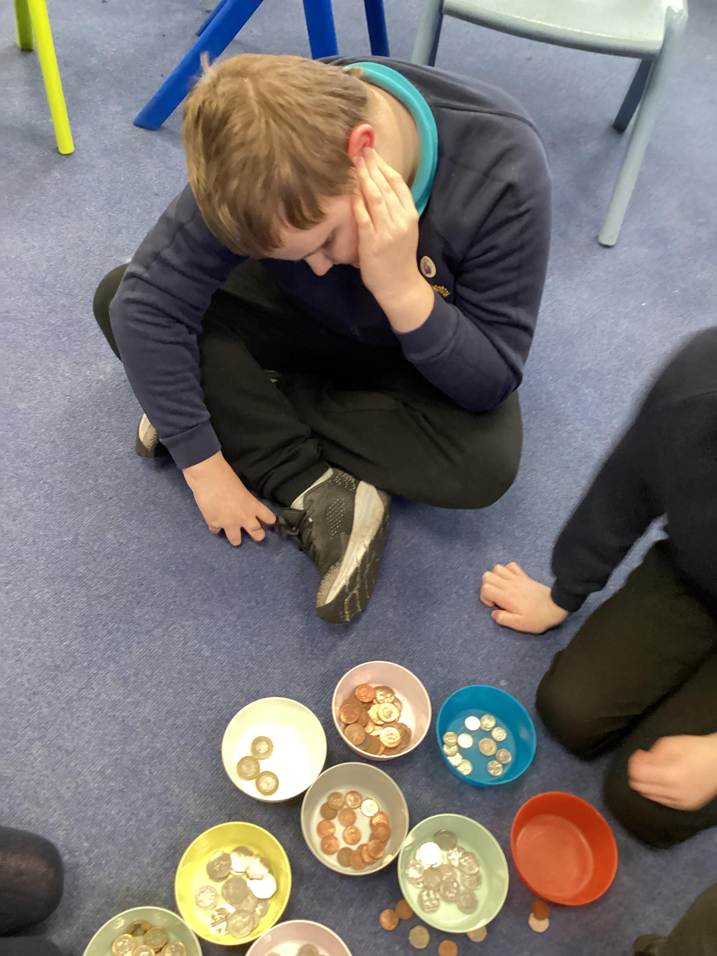 13.02.25 MATHS: MONEY The children have been recognising and sorting out the all the different coins (1p, 2p, 5p, 10p, 20p, 50p, £1, £2) in our number day donation box, into separate containers. Once the coins were sorted, we were able to count the total amount of coins and we amazing raised £81.90 for our school fund.