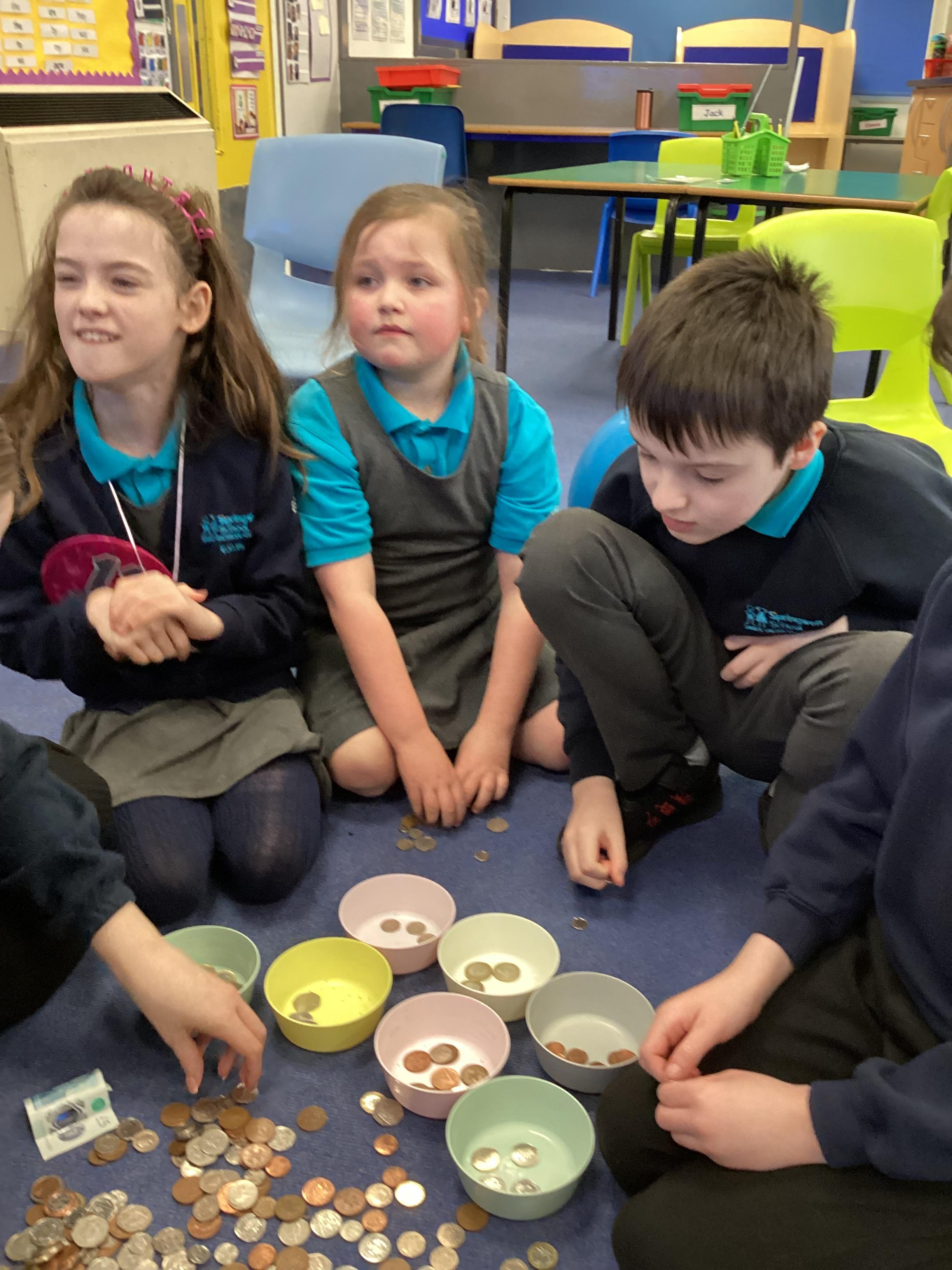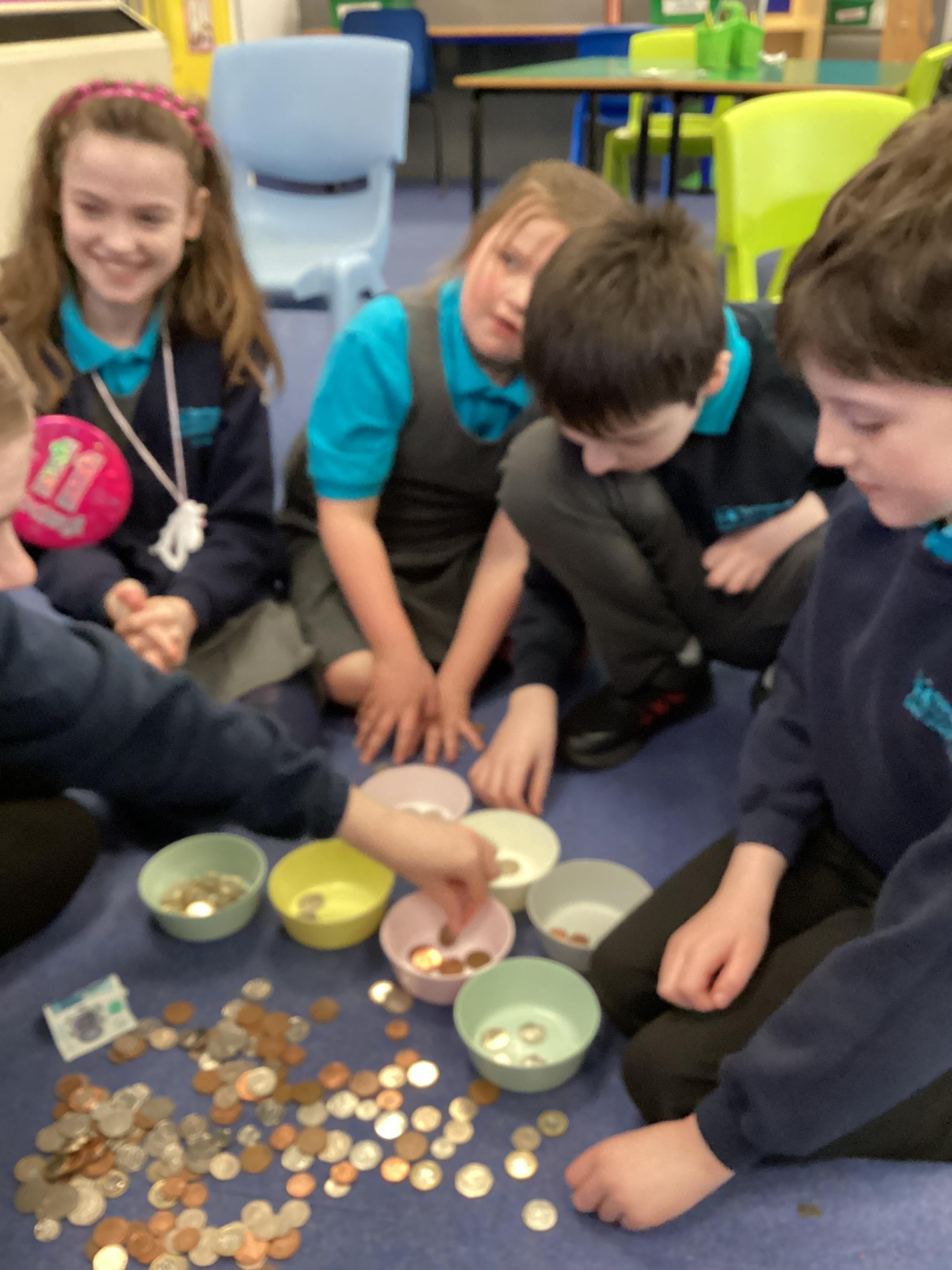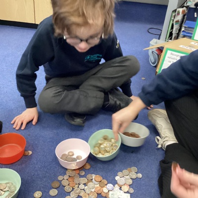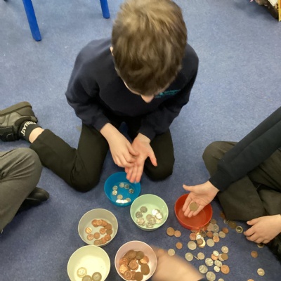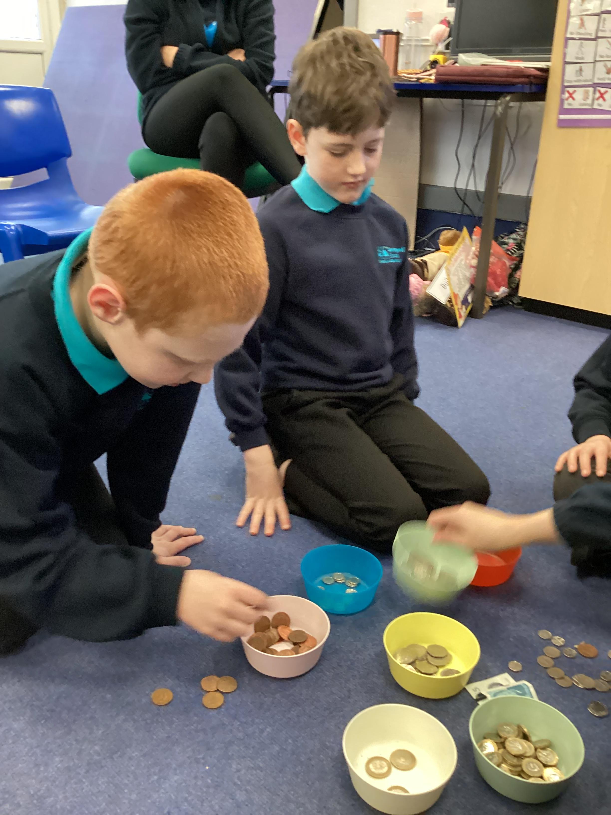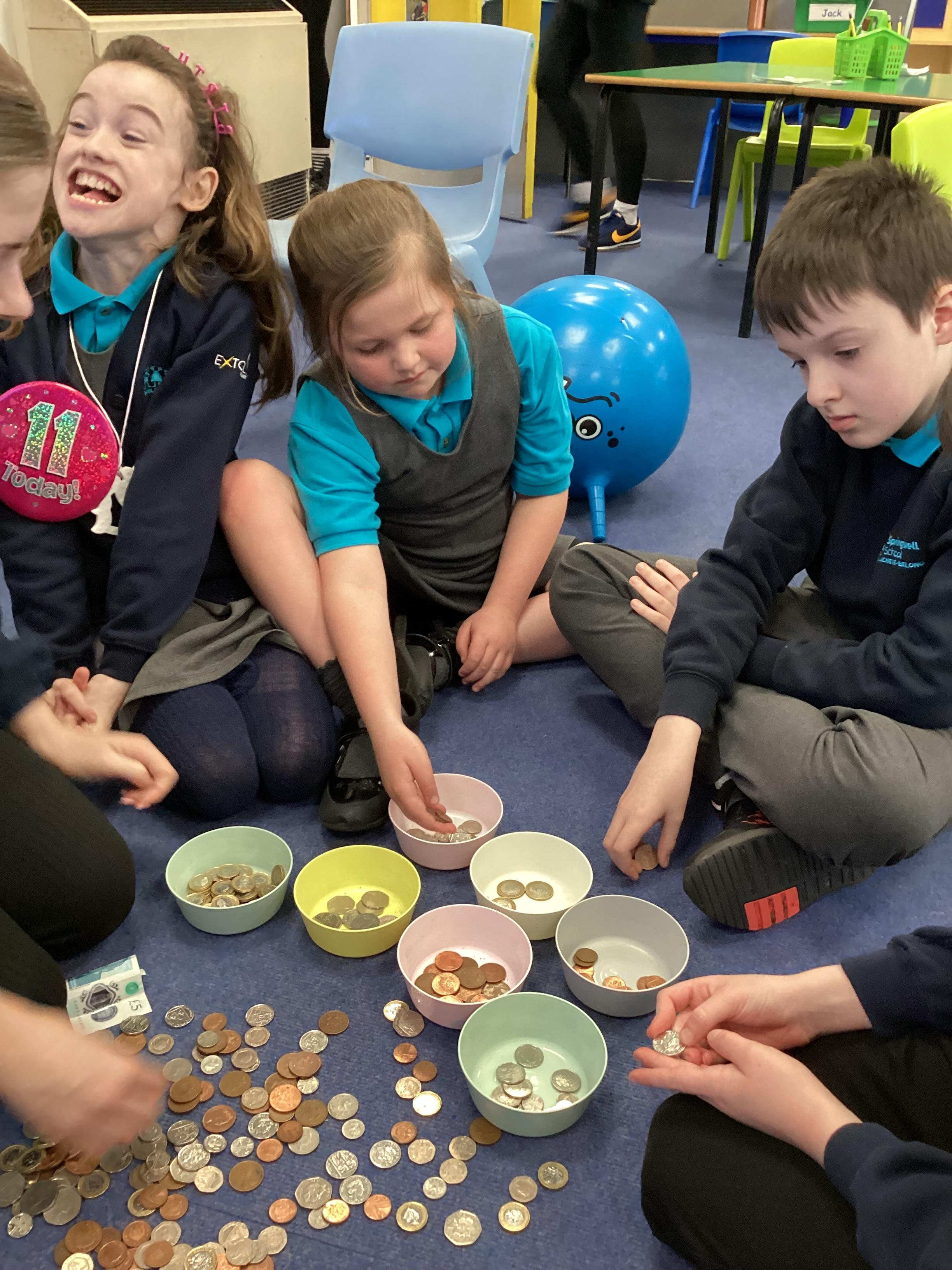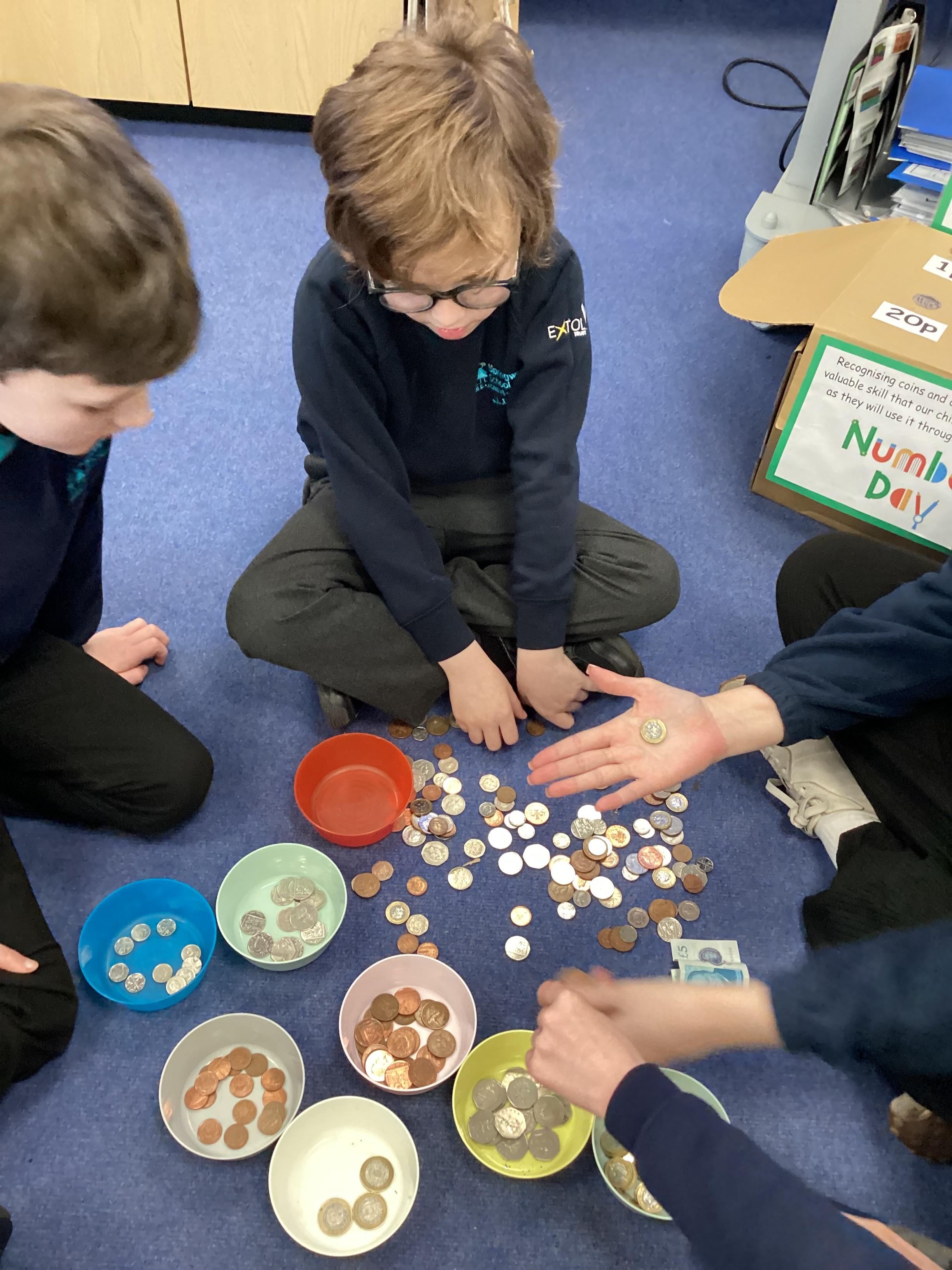 13.02.25 MATHS: MONEY The children have been recognising and sorting out the all the different coins (1p, 2p, 5p, 10p, 20p, 50p, £1, £2) in our number day donation box, into separate containers. Once the coins were sorted, we were able to count the total amount of coins and we amazing raised £81.90 for our school fund.