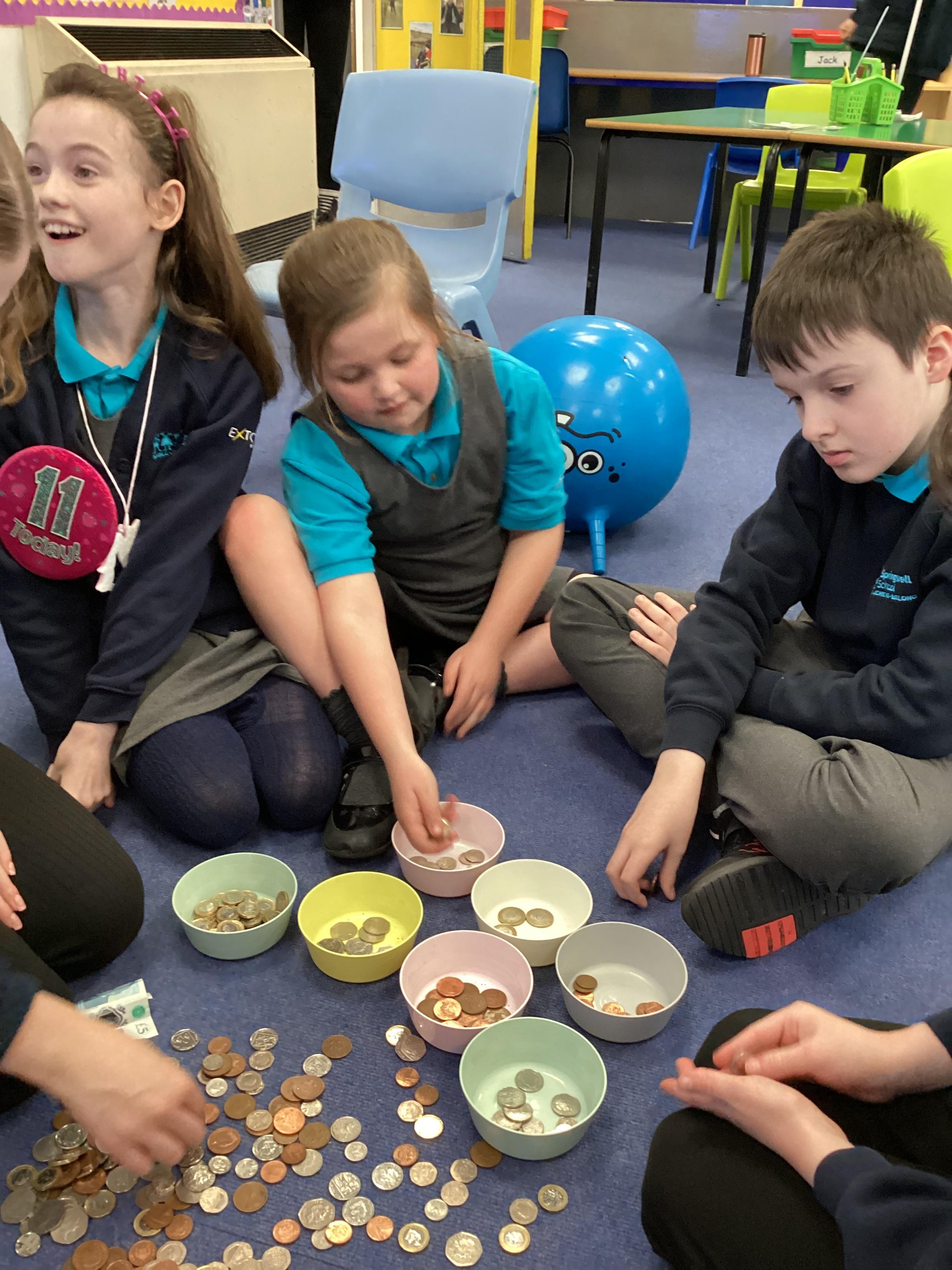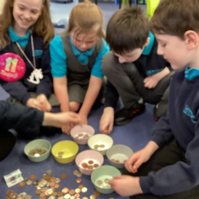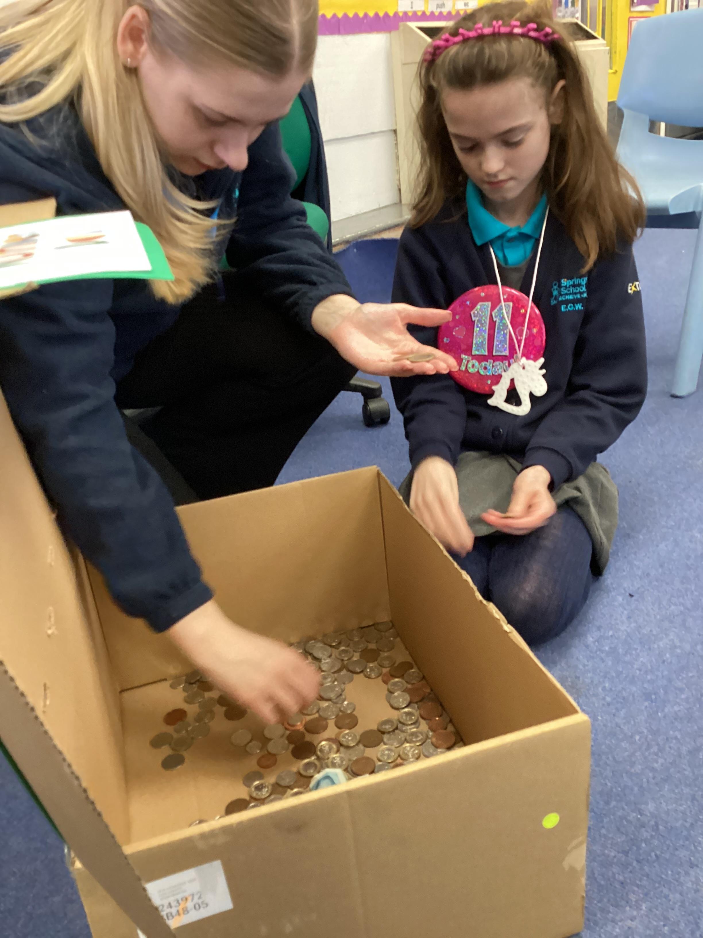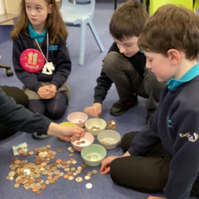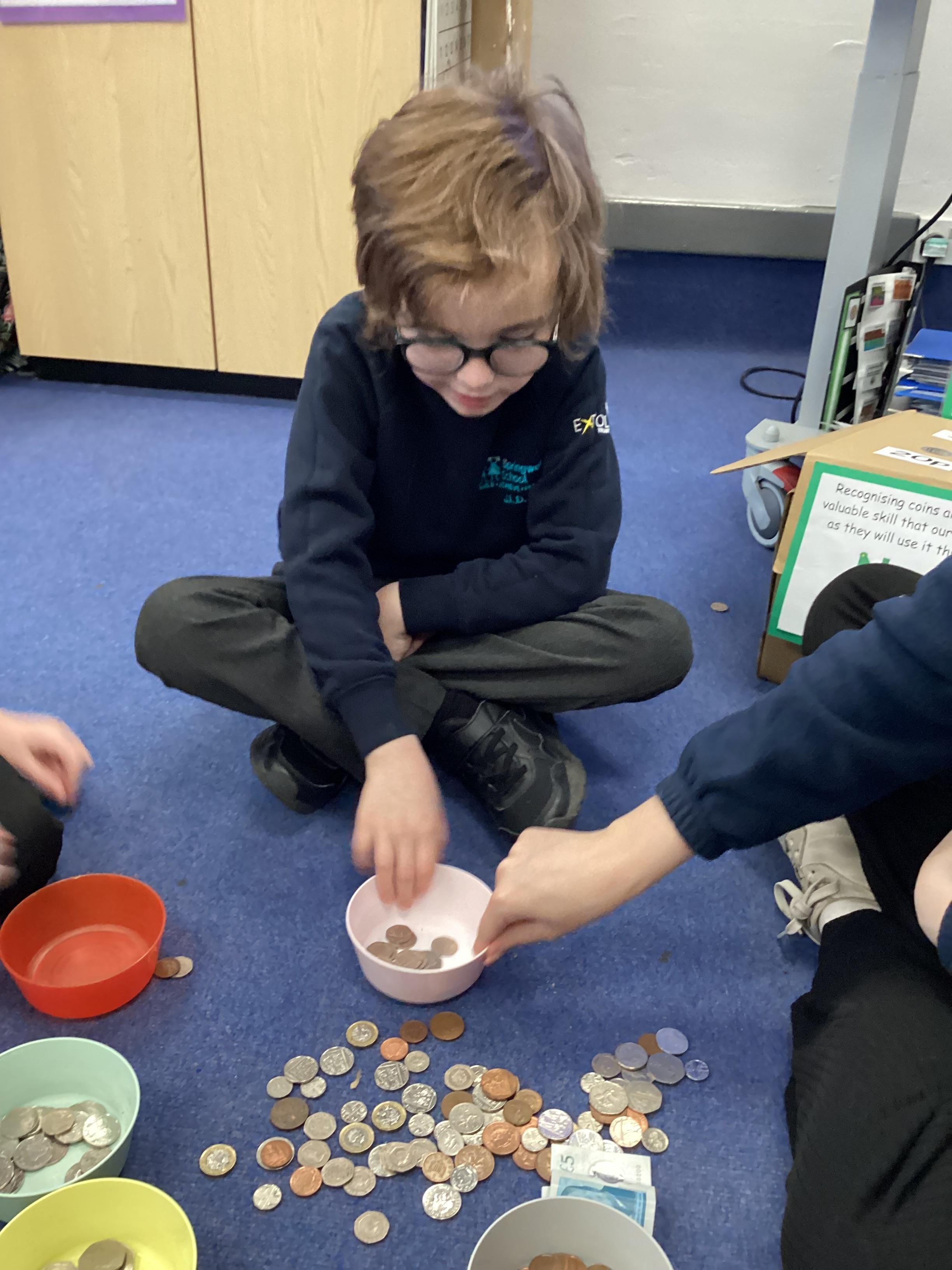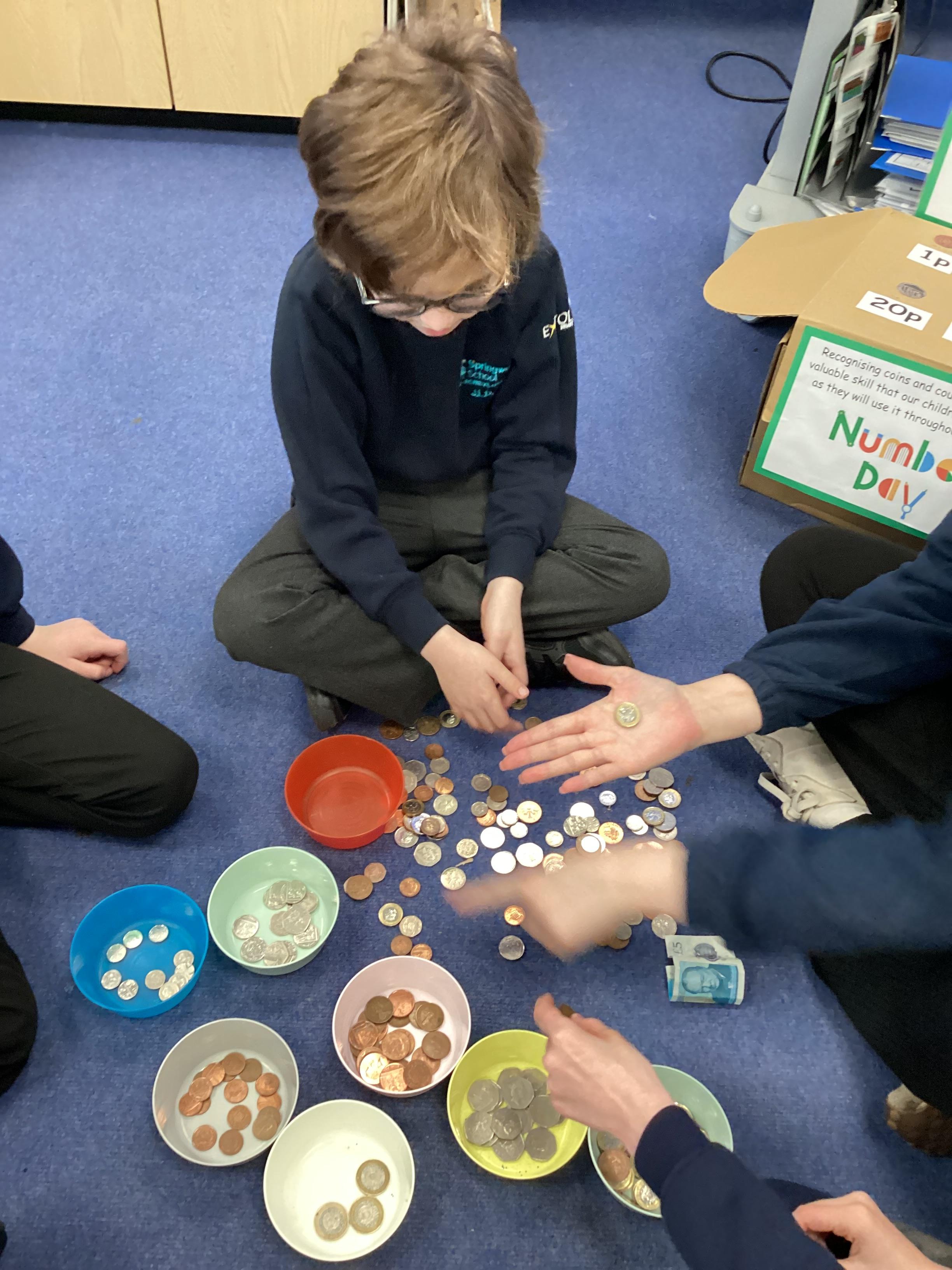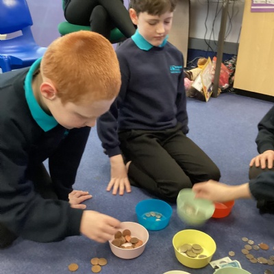 13.02.25 MATHS: MONEY The children have been recognising and sorting out the all the different coins (1p, 2p, 5p, 10p, 20p, 50p, £1, £2) in our number day donation box, into separate containers. Once the coins were sorted, we were able to count the total amount of coins and we amazing raised £81.90 for our school fund.