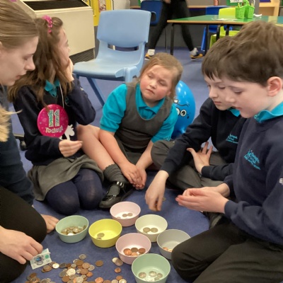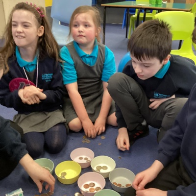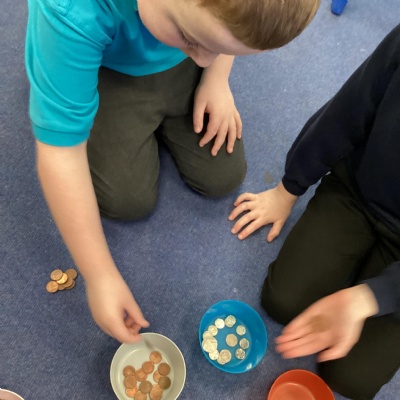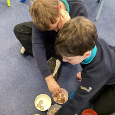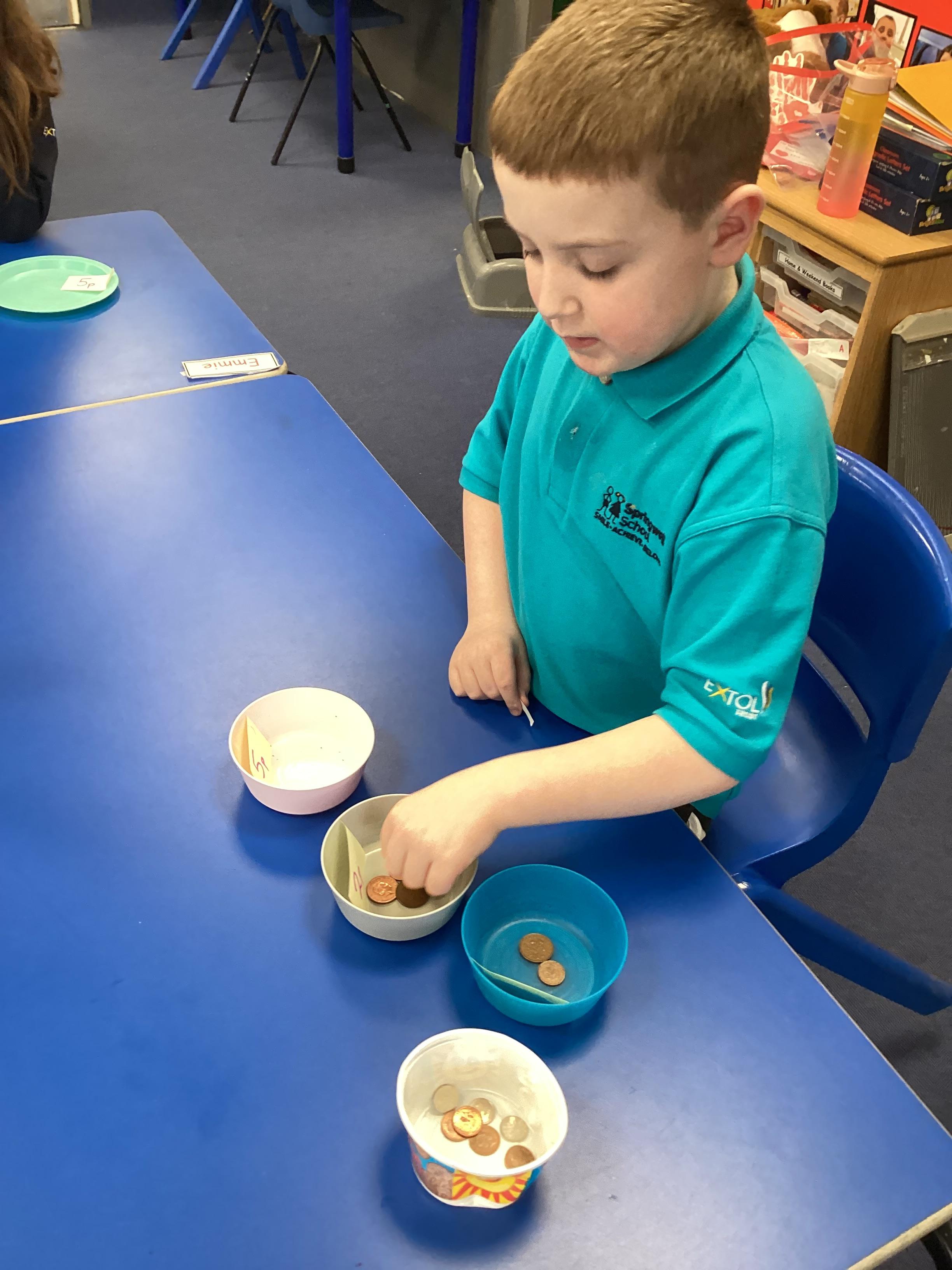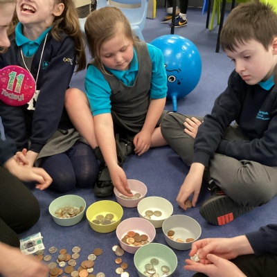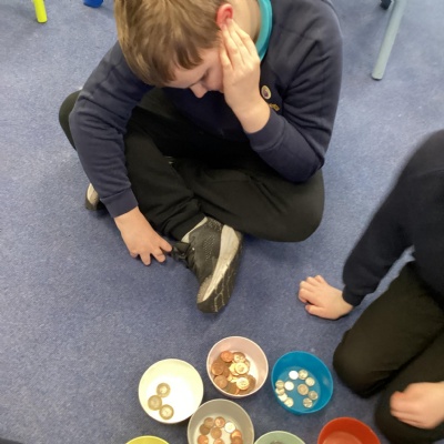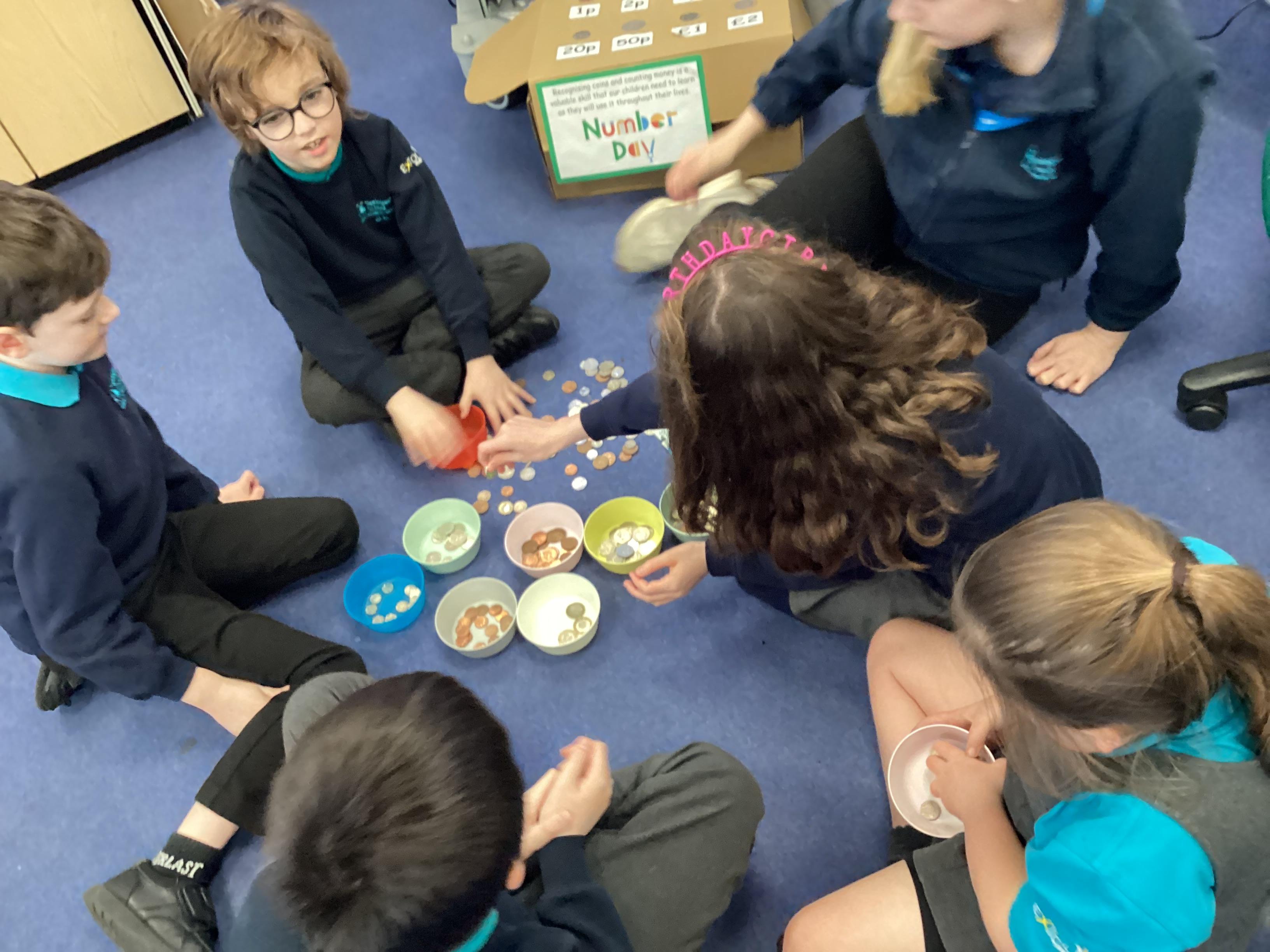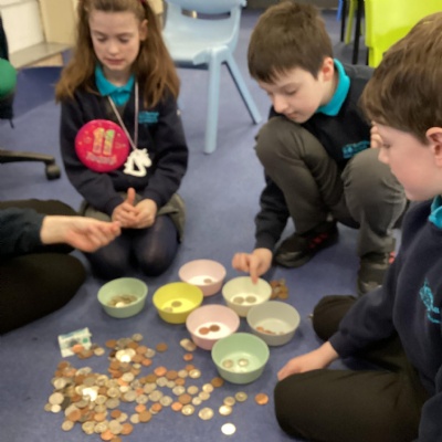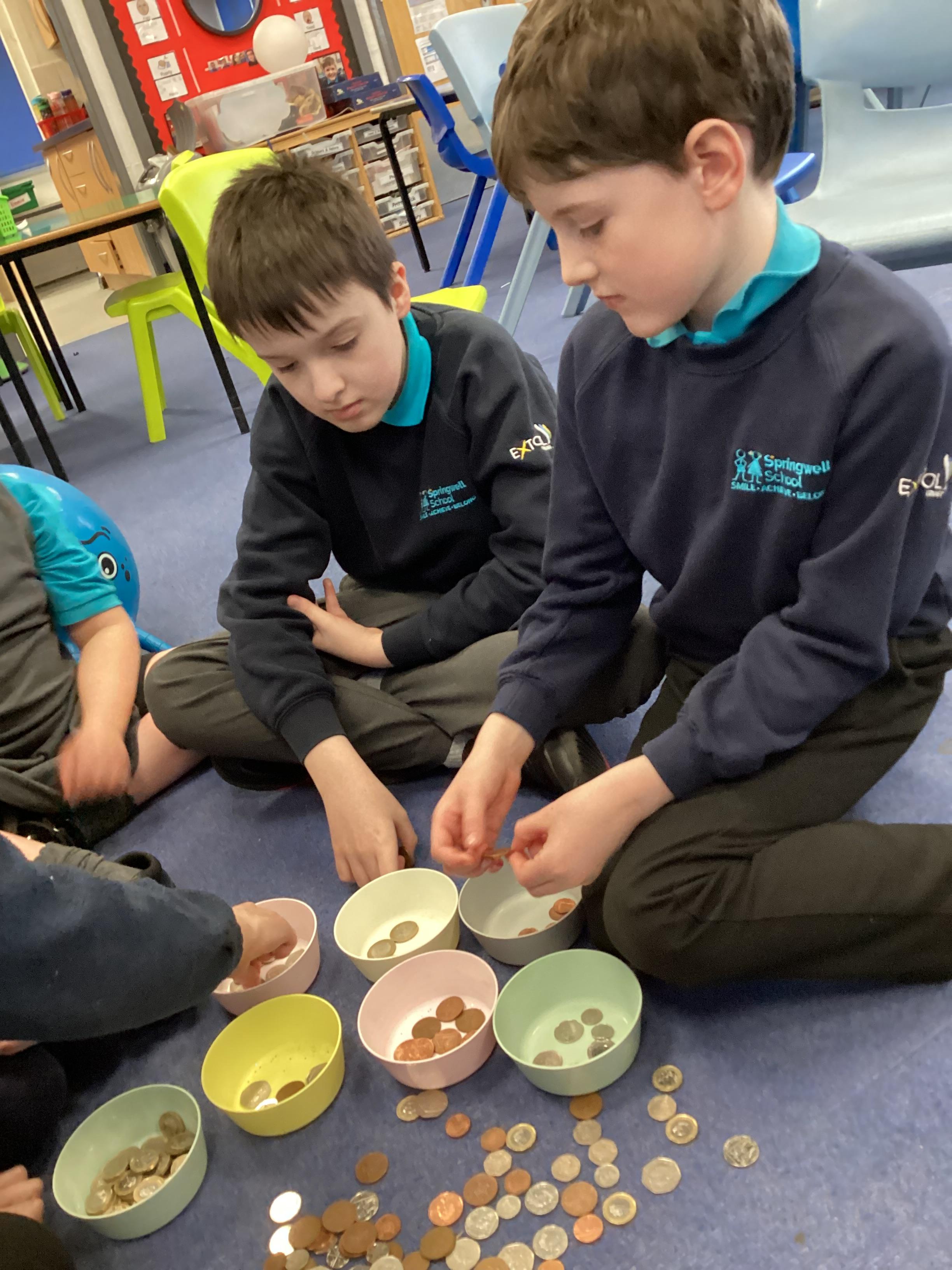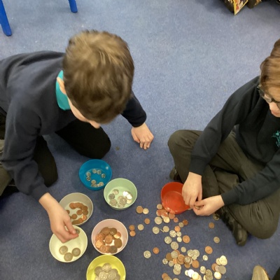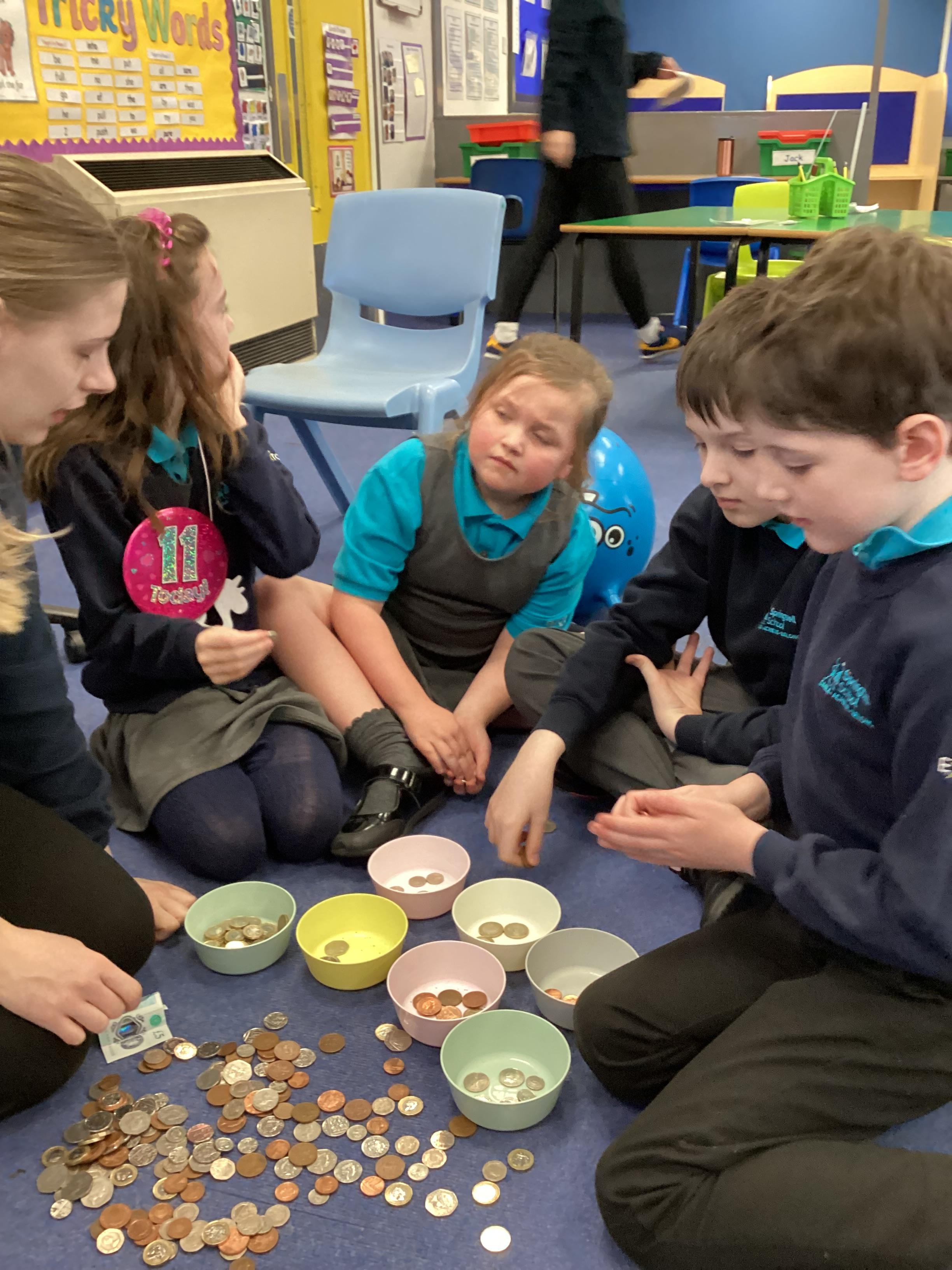 13.02.25 MATHS: MONEY The children have been recognising and sorting out the all the different coins (1p, 2p, 5p, 10p, 20p, 50p, £1, £2) in our number day donation box, into separate containers. Once the coins were sorted, we were able to count the total amount of coins and we amazing raised £81.90 for our school fund.