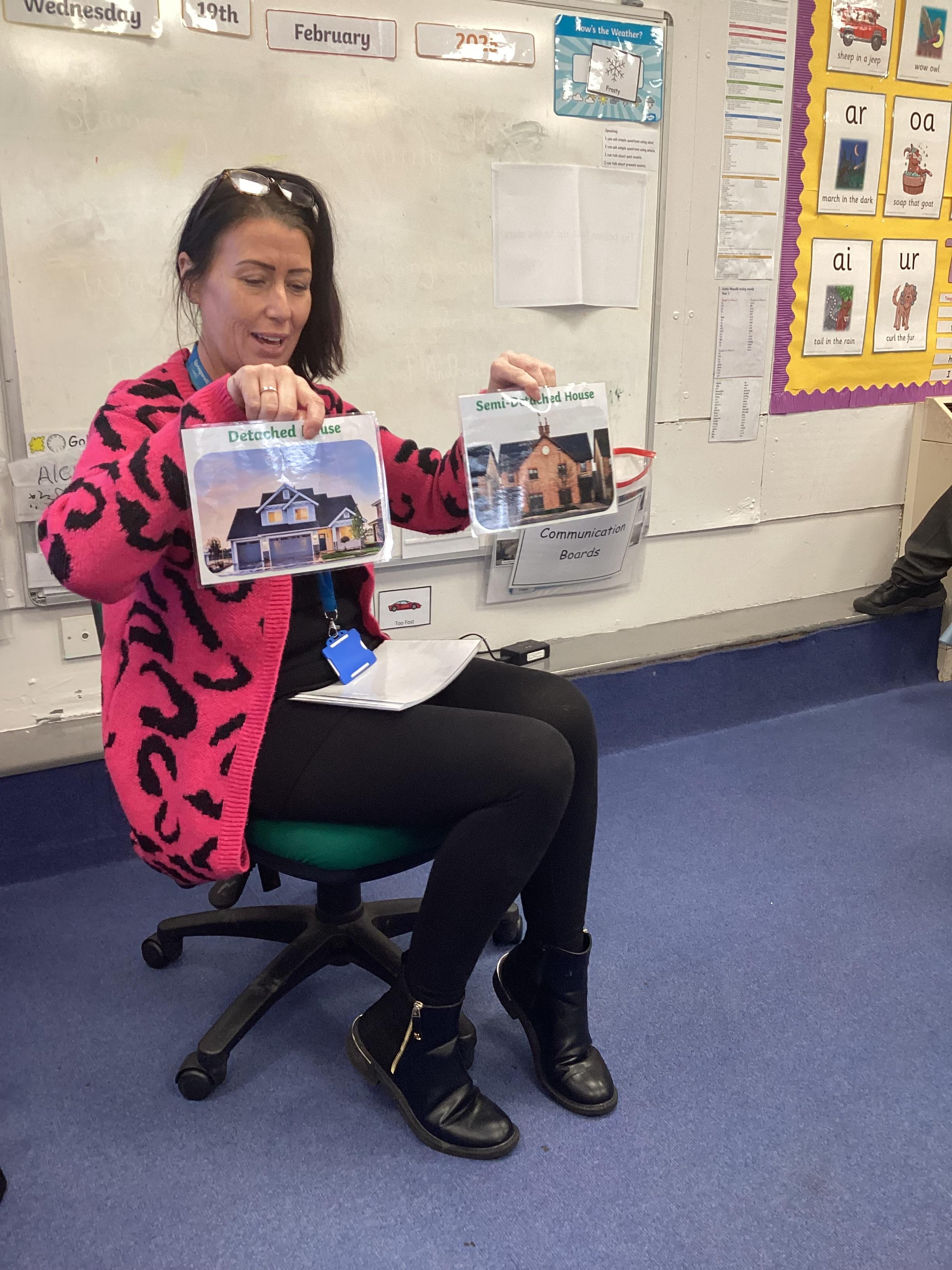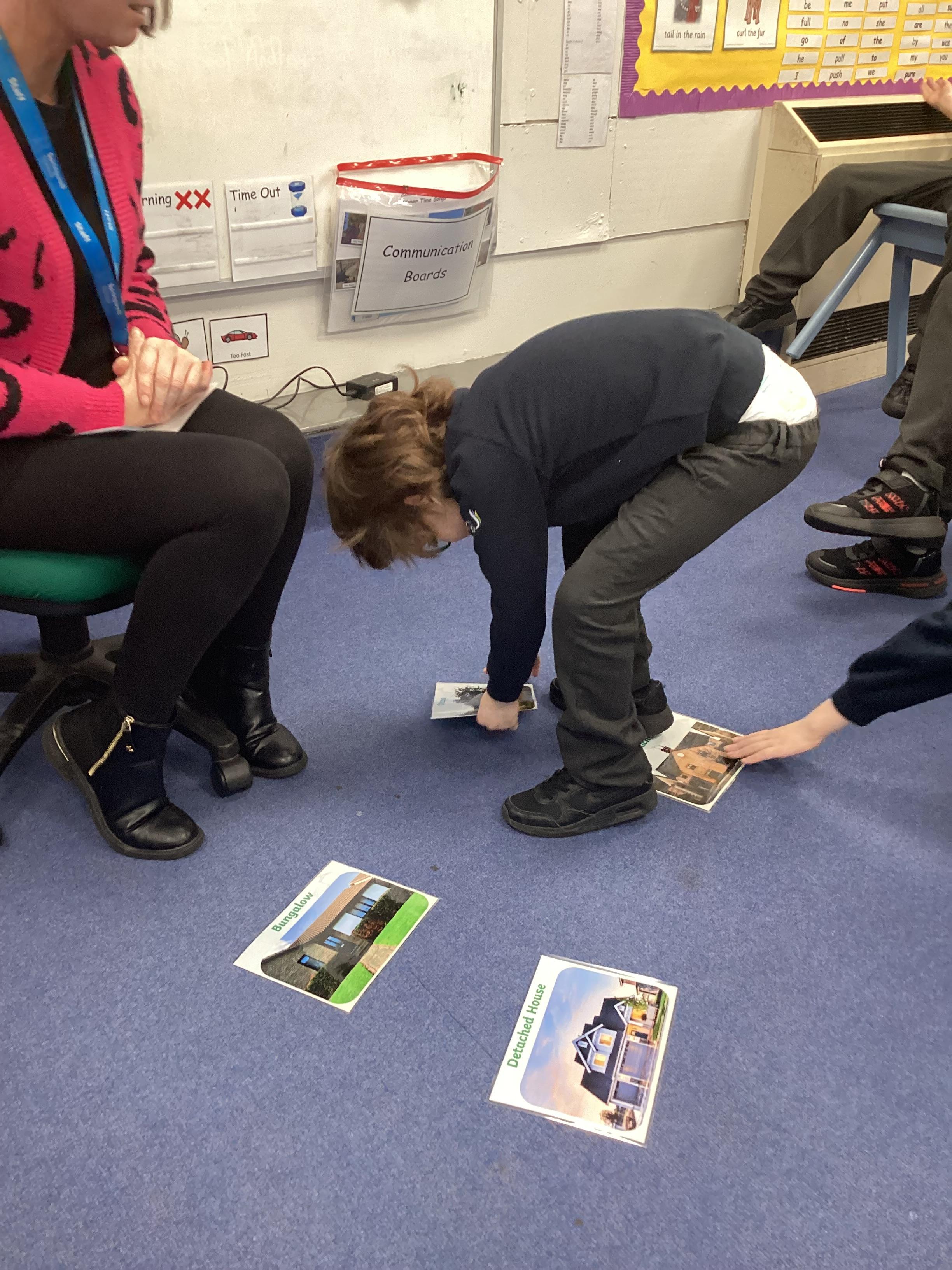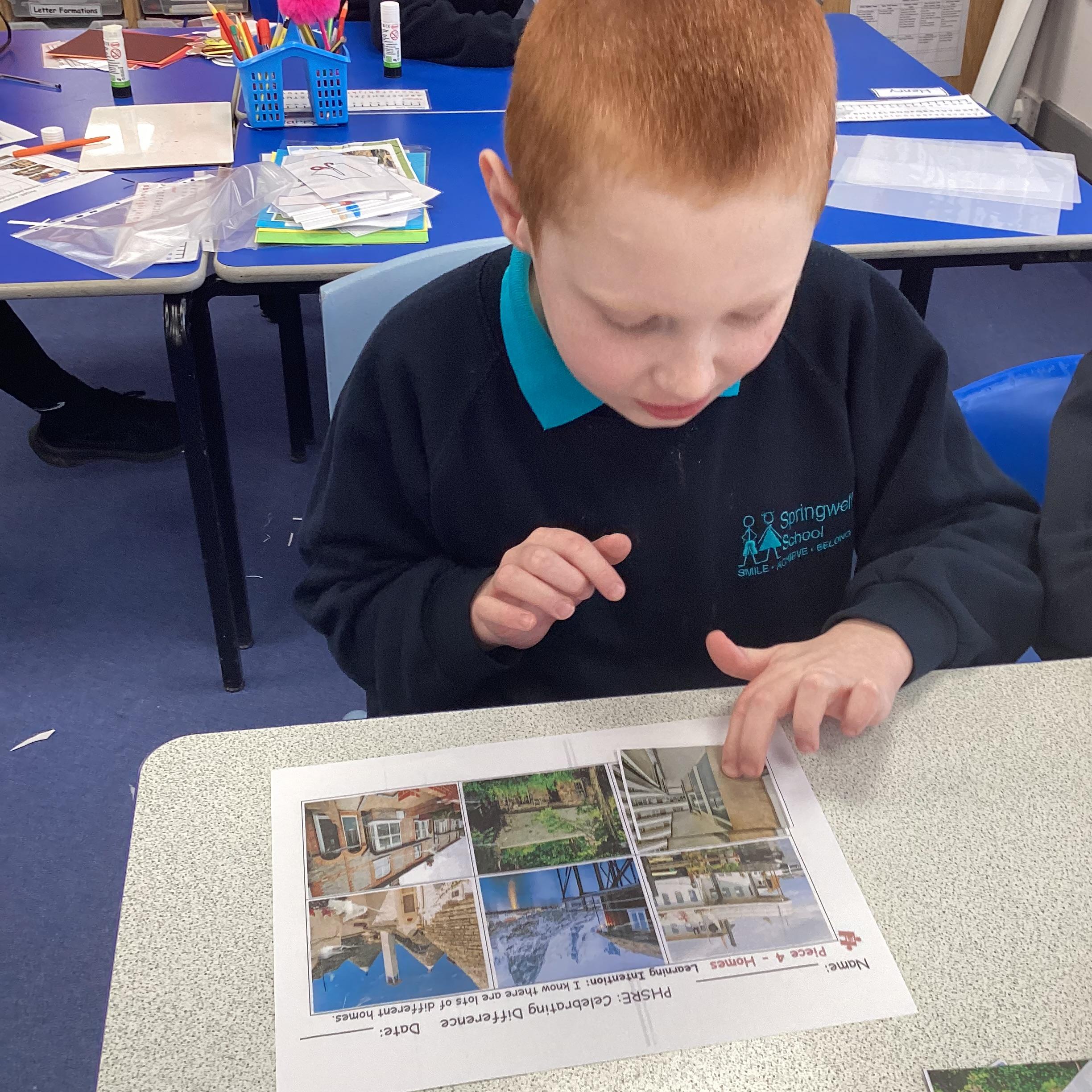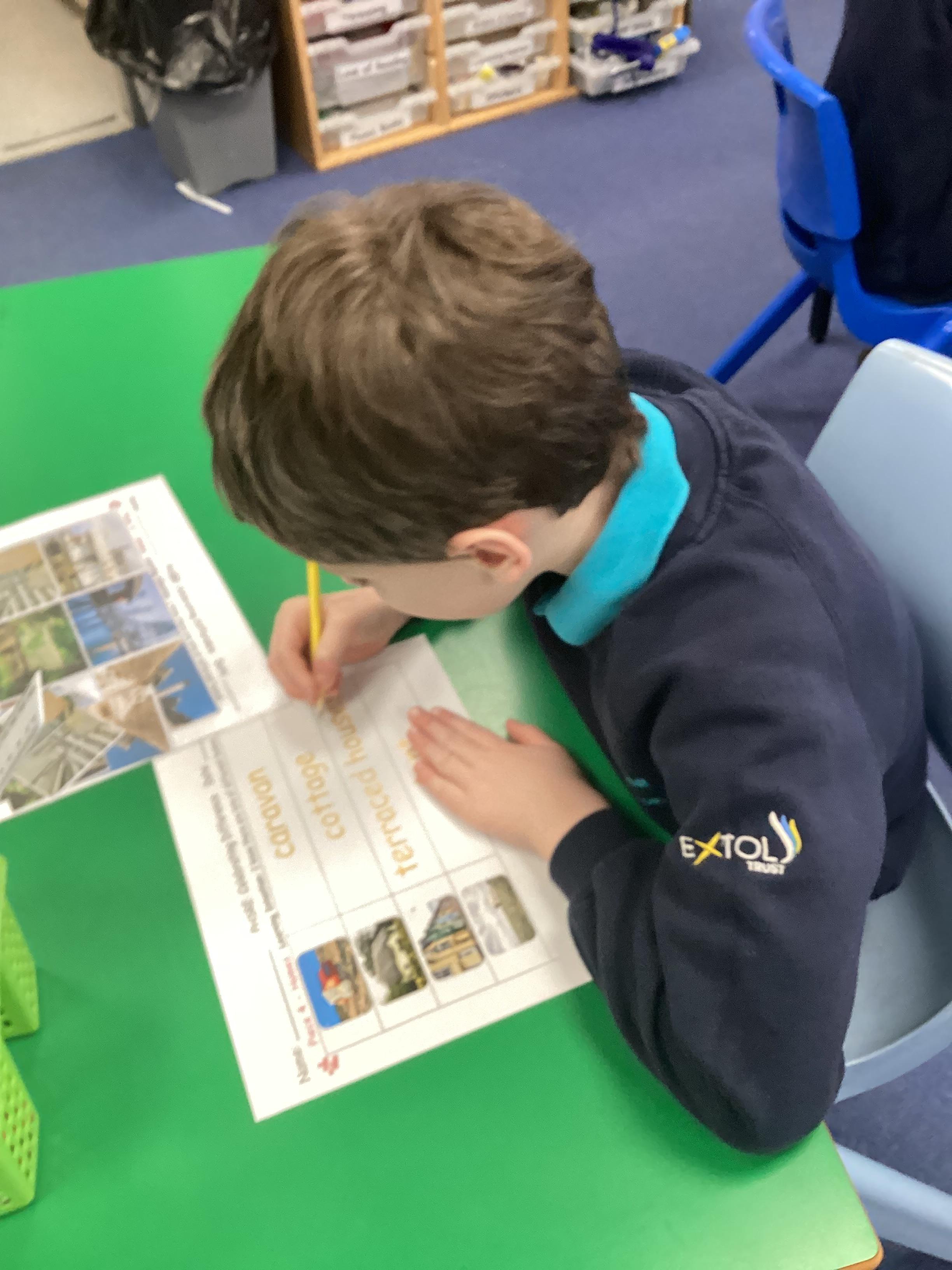 18.02.25 PHSRE CELEBRATING DIFFERENCE PIECE 4: HOMES We looked at a variety of photos showing different types of homes. The children were identifying and matching the different homes and writing a list. We all had a go at beating our new chime bar during 'calm me time'.