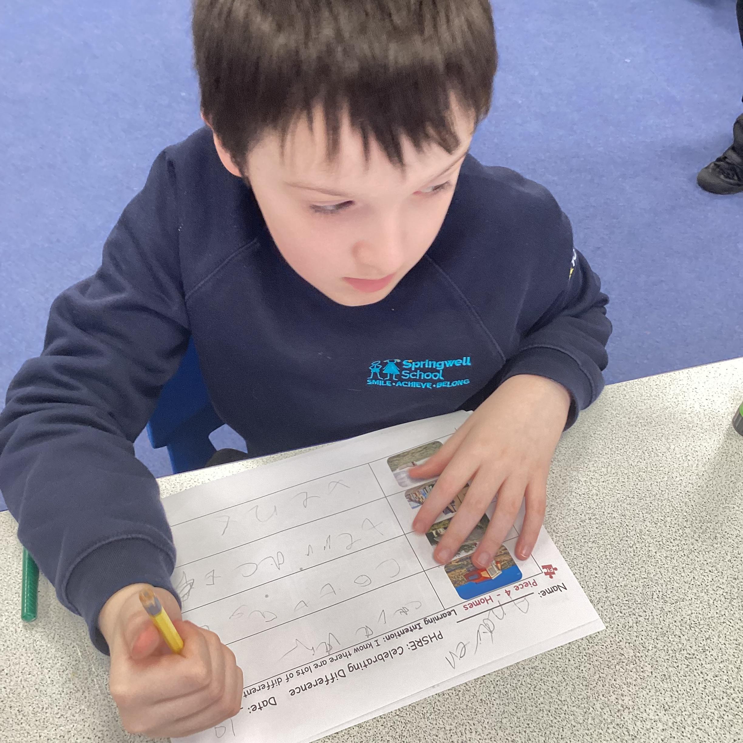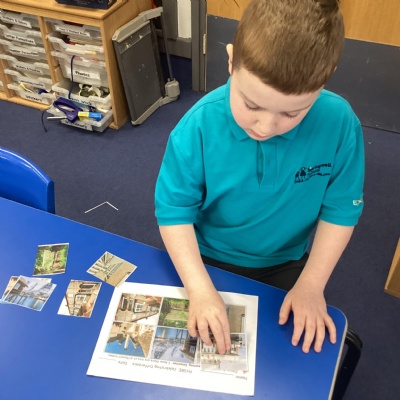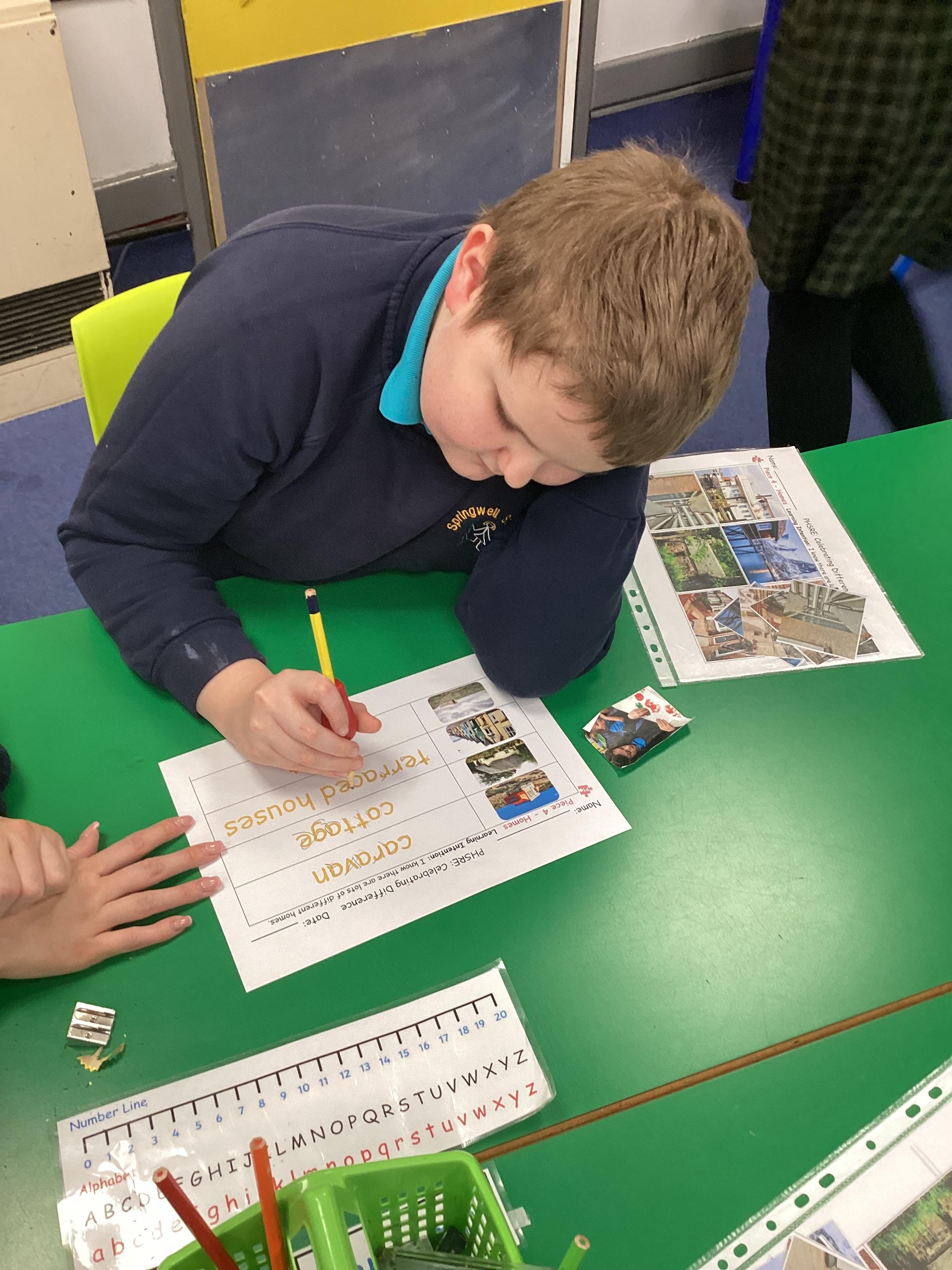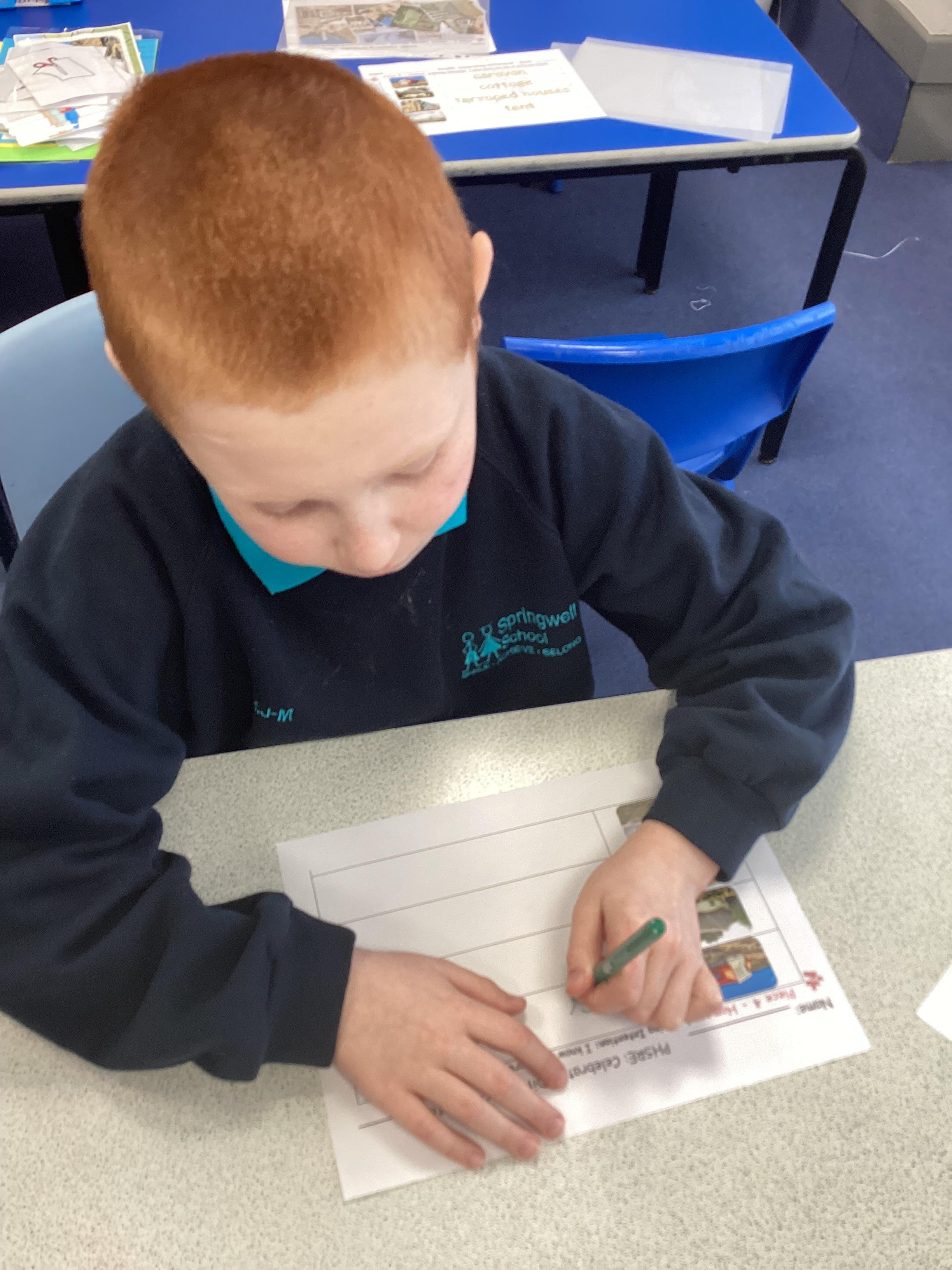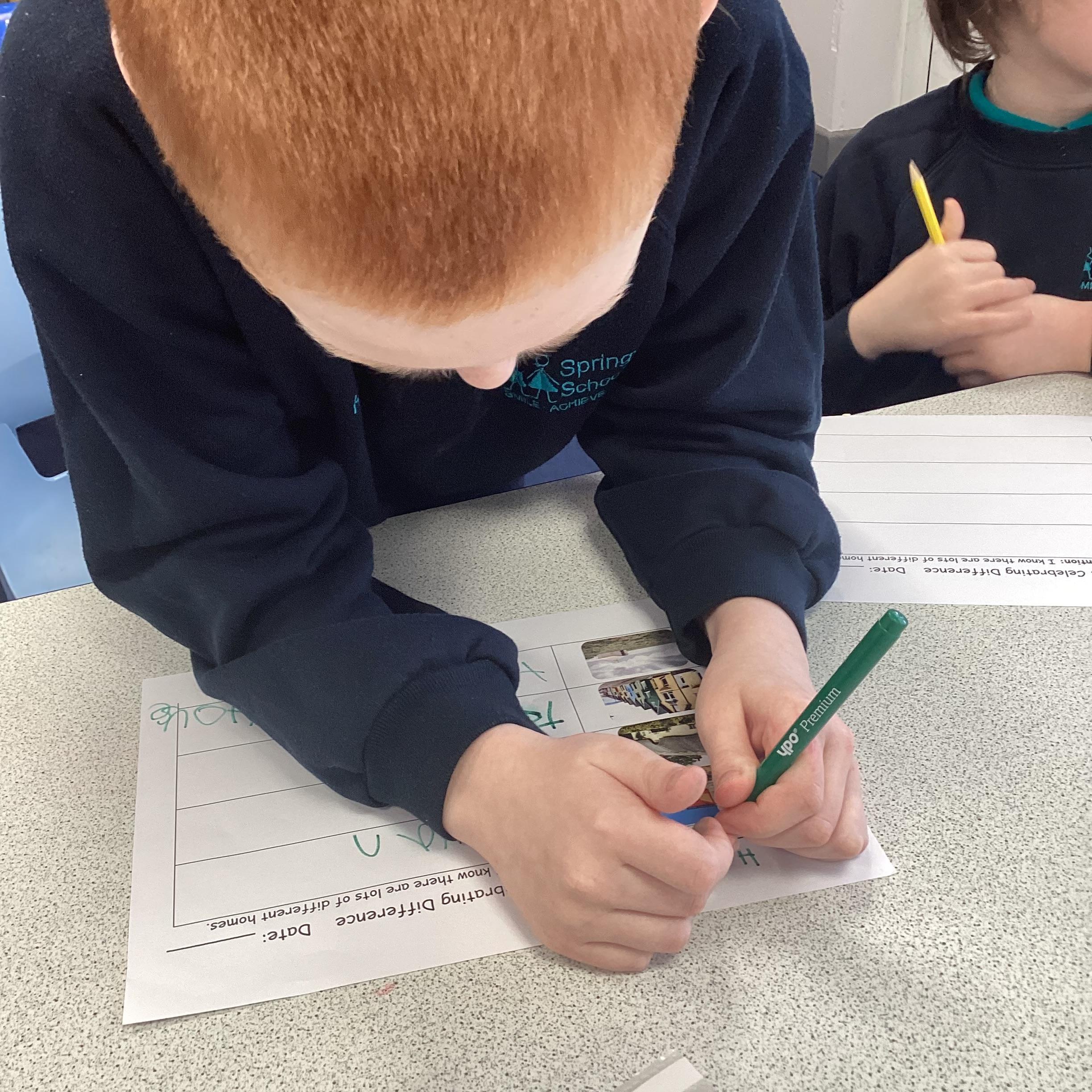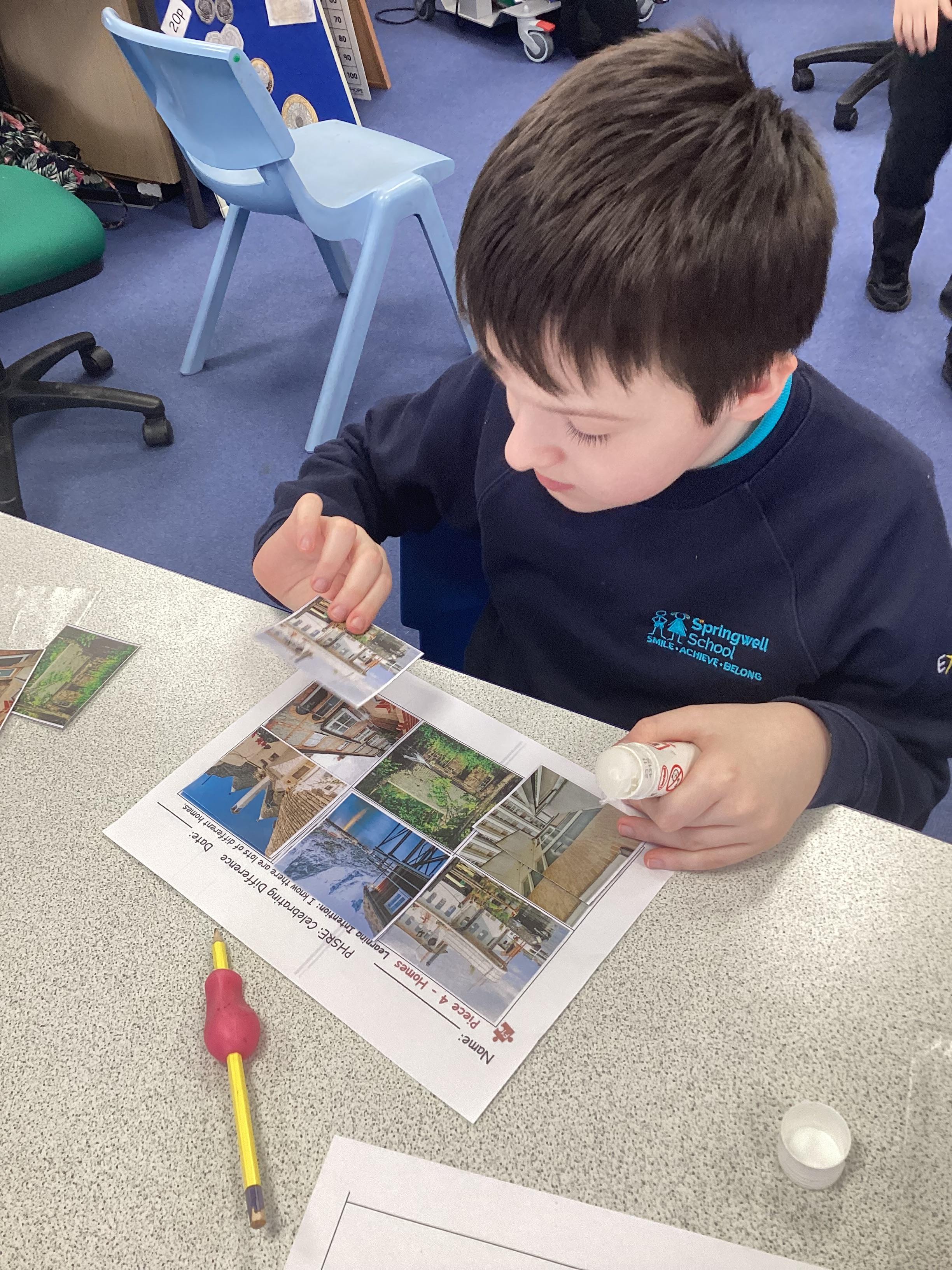 18.02.25 PHSRE CELEBRATING DIFFERENCE PIECE 4: HOMES We looked at a variety of photos showing different types of homes. The children were identifying and matching the different homes and writing a list. We all had a go at beating our new chime bar during 'calm me time'.