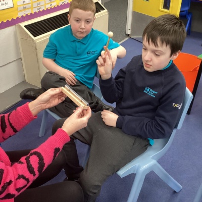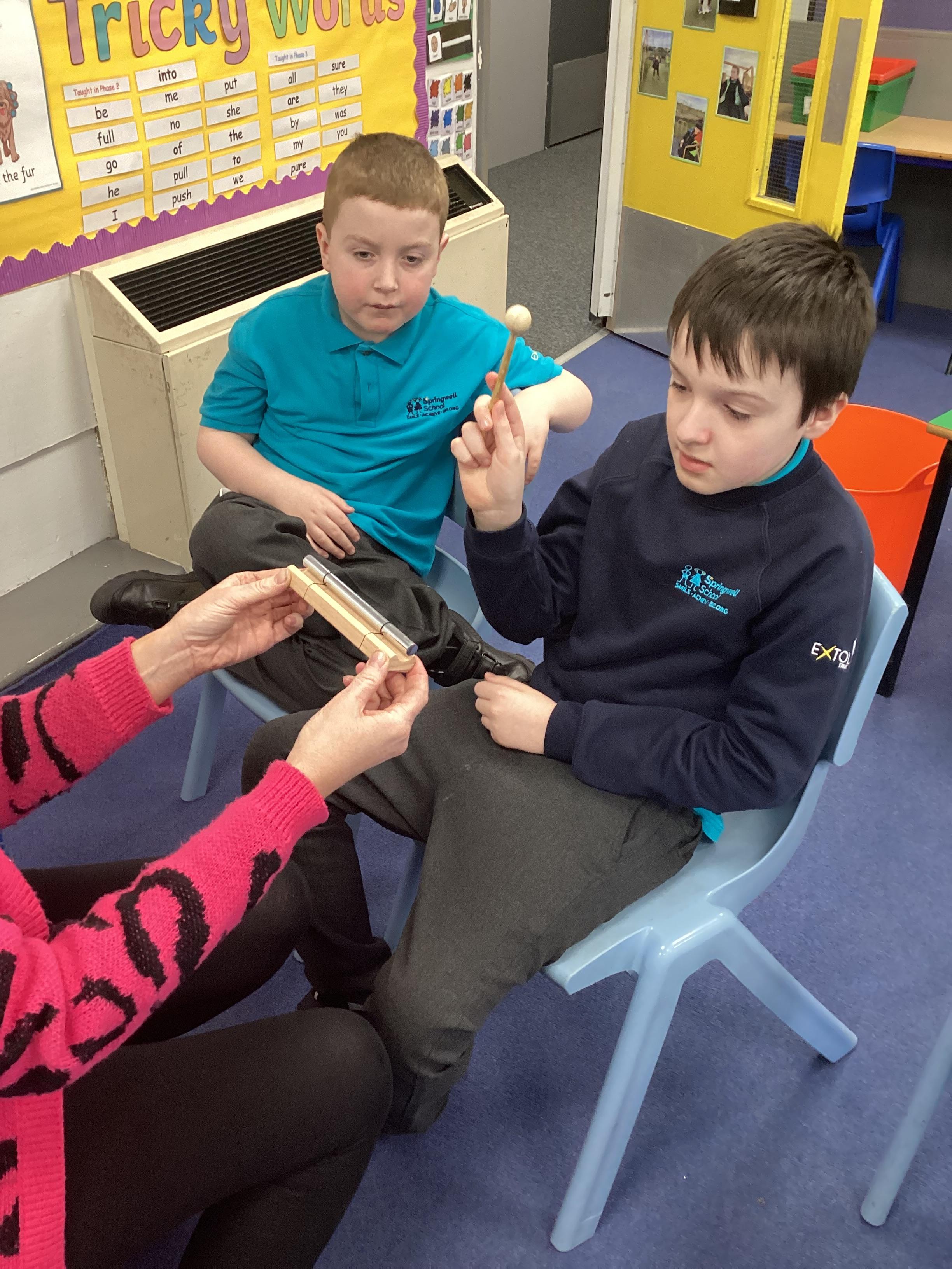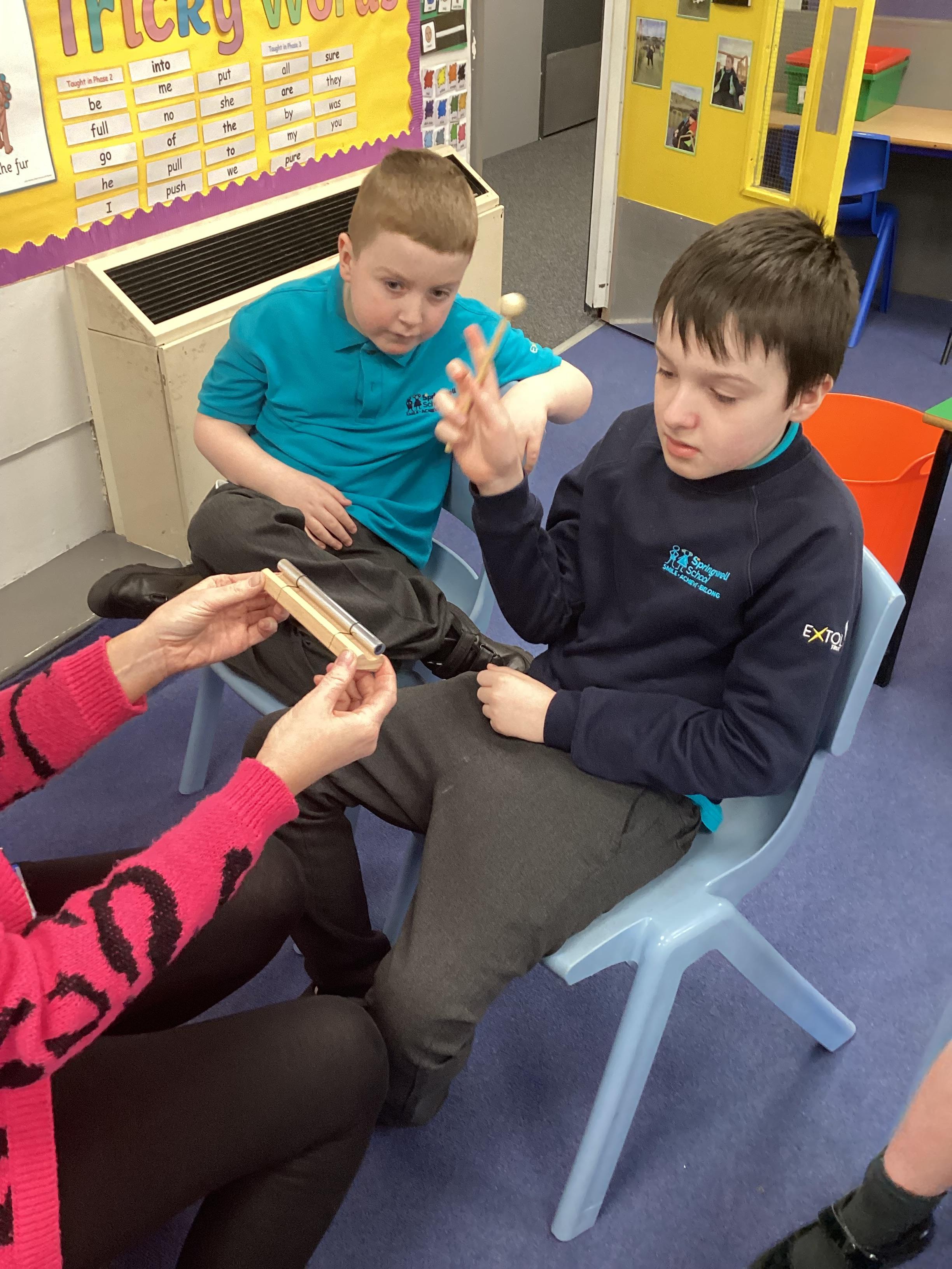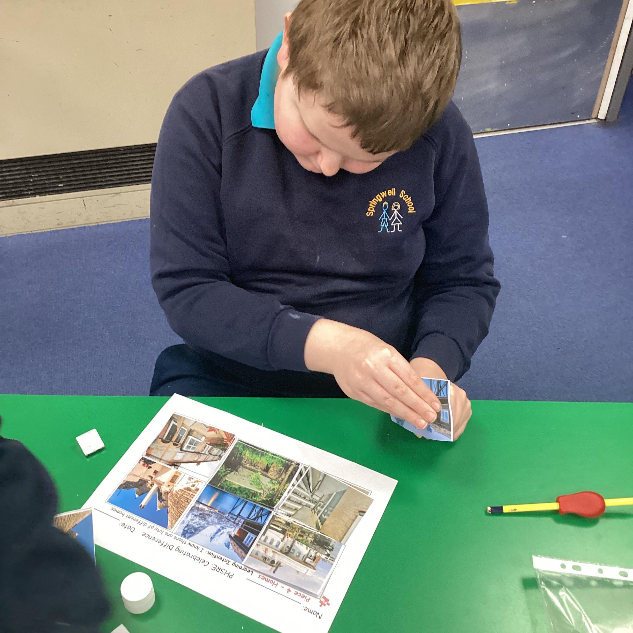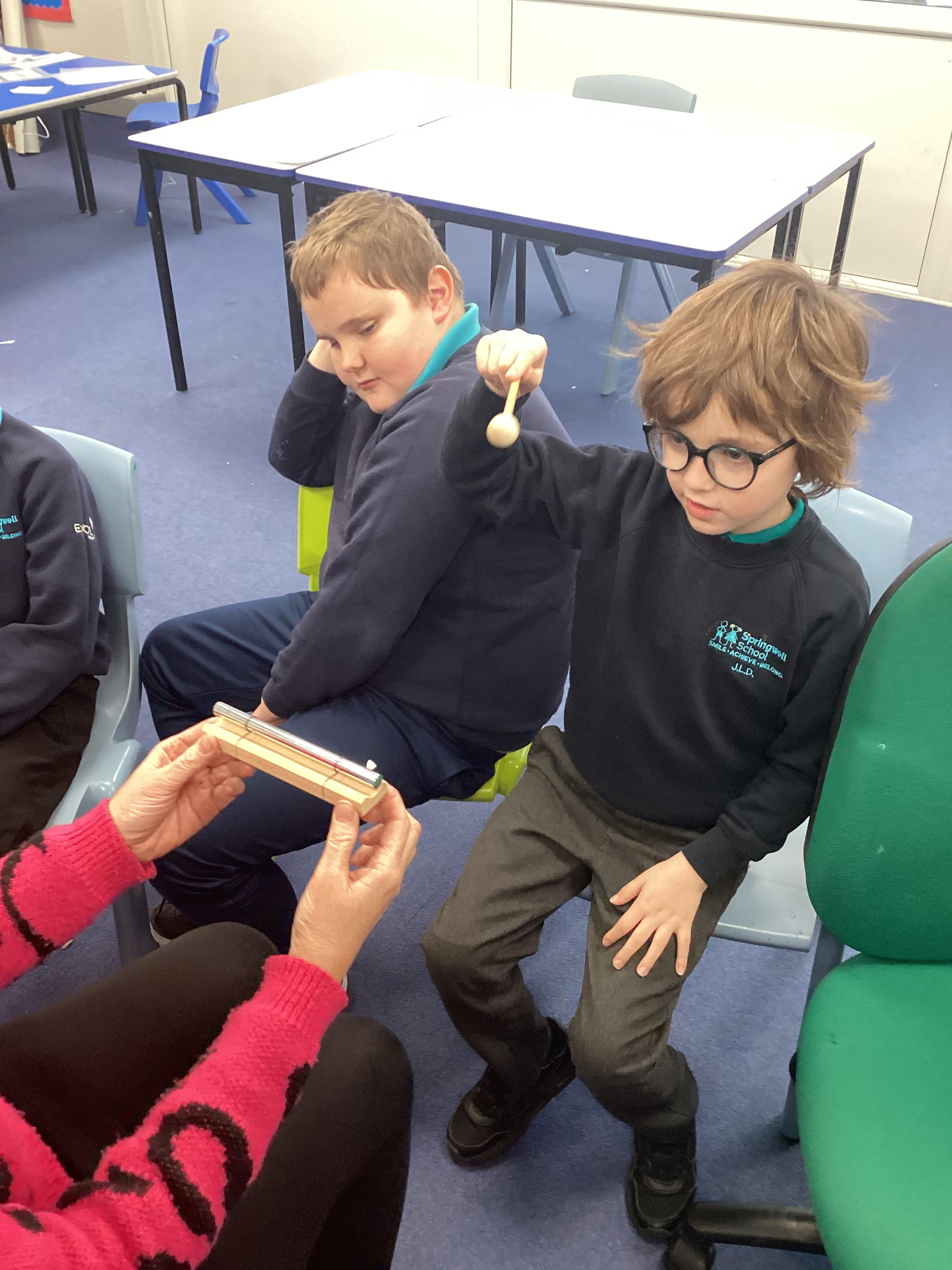 18.02.25 PHSRE CELEBRATING DIFFERENCE PIECE 4: HOMES We looked at a variety of photos showing different types of homes. The children were identifying and matching the different homes and writing a list. We all had a go at beating our new chime bar during 'calm me time'.