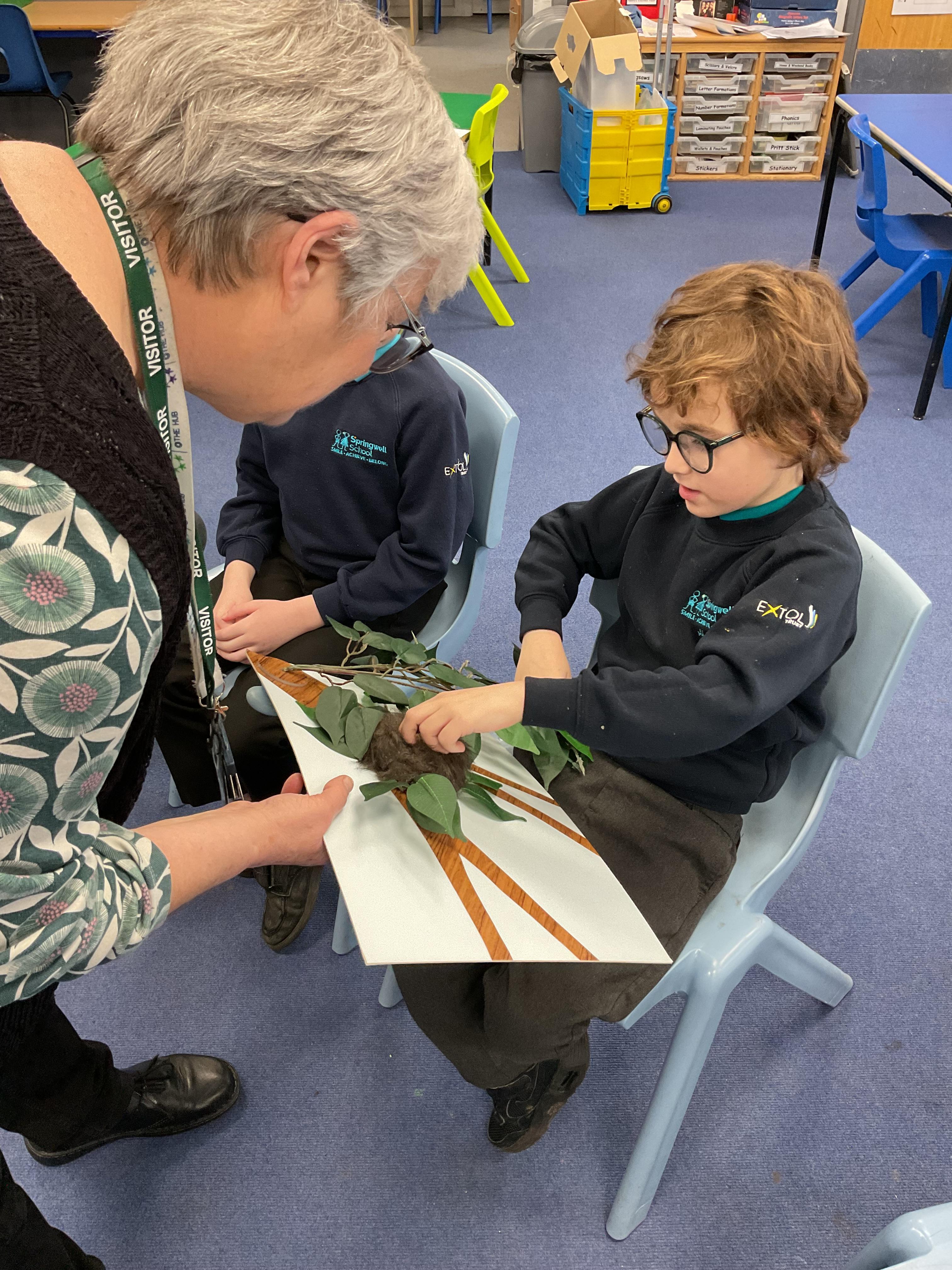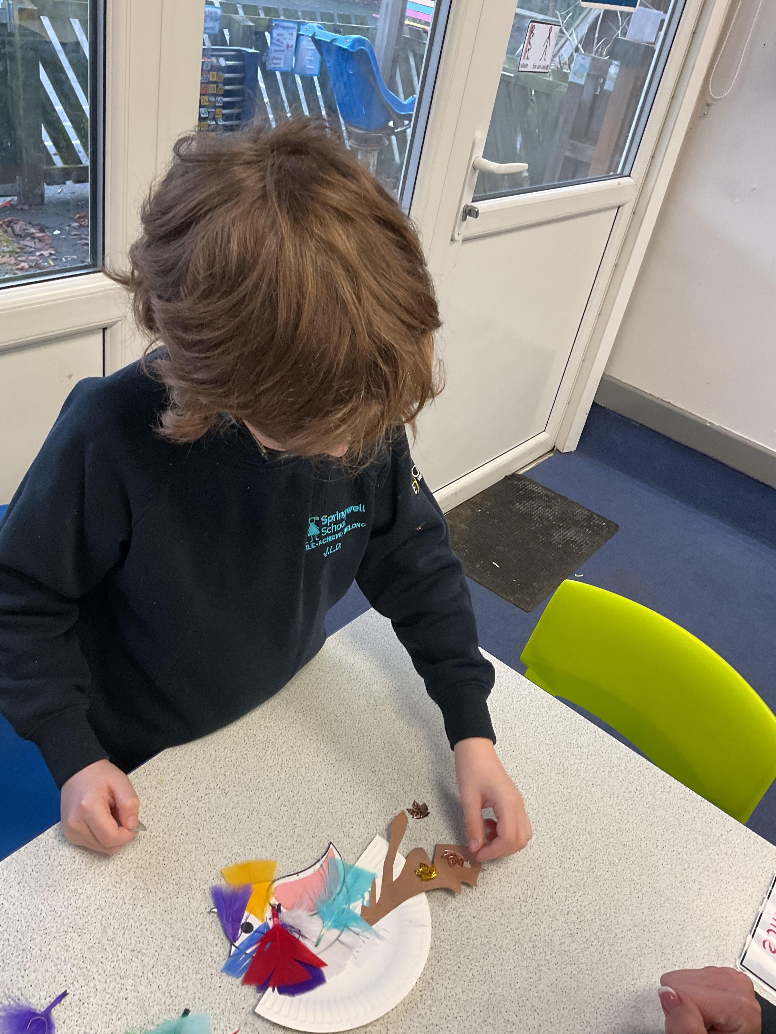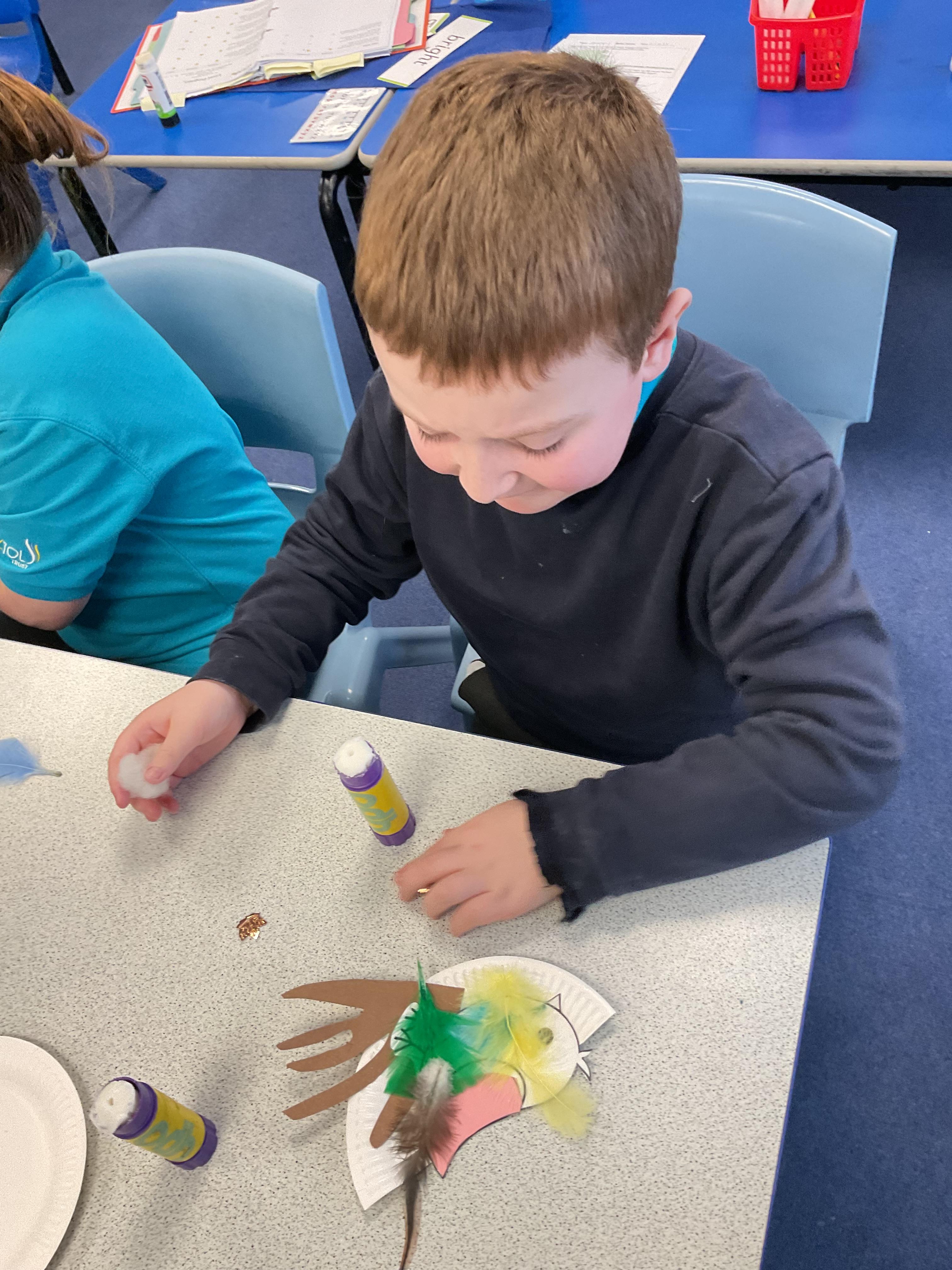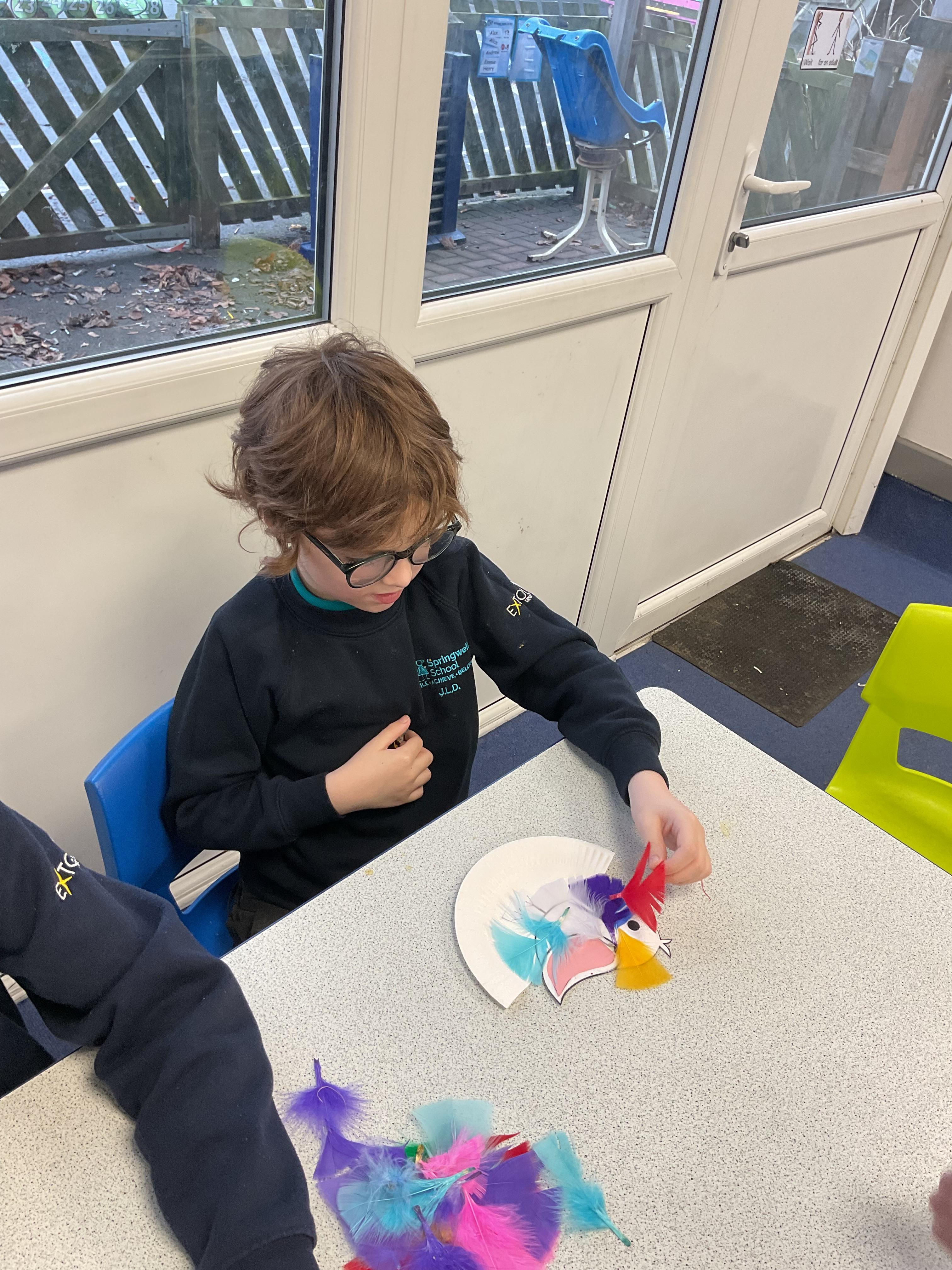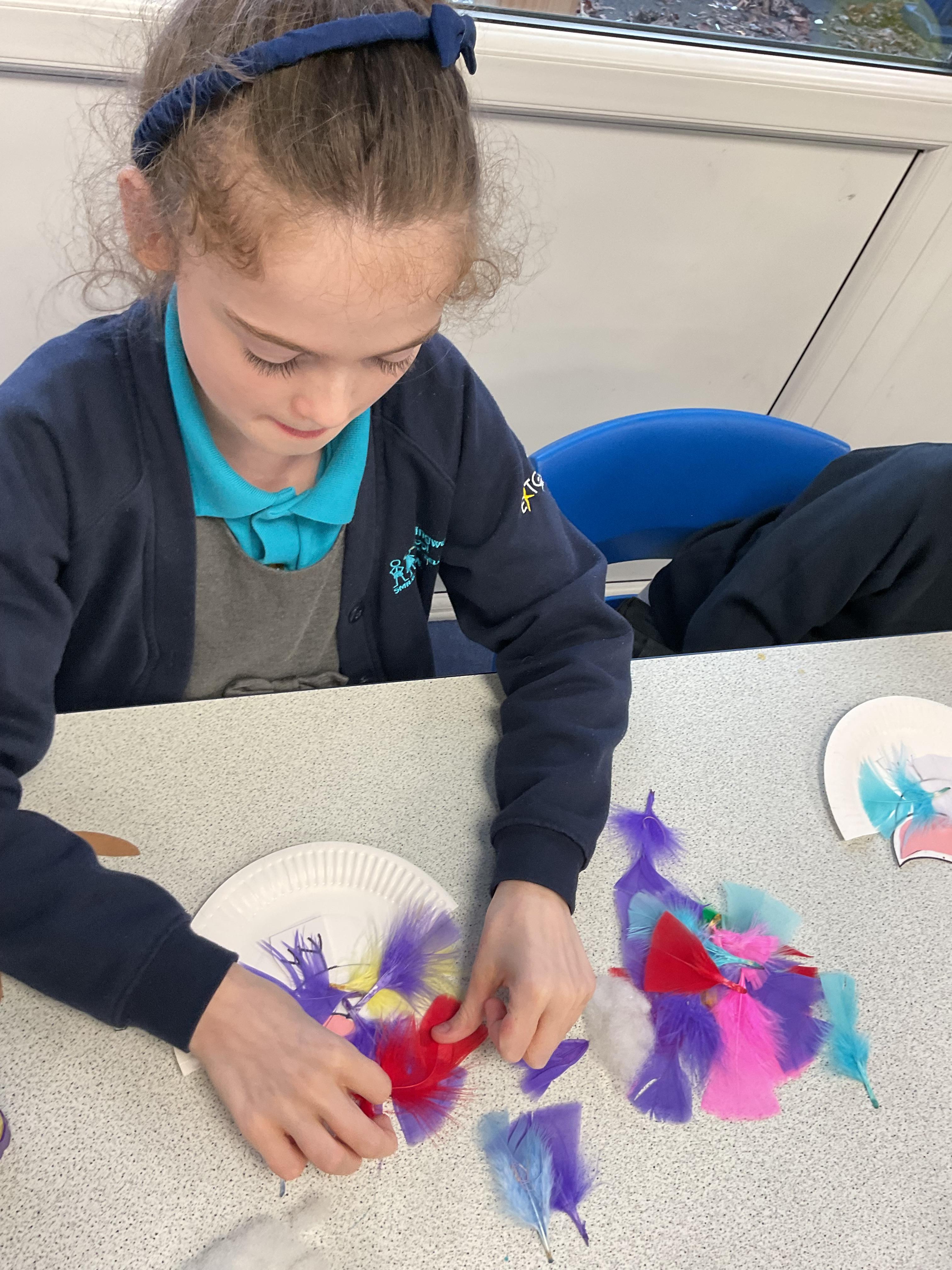 28.01.25 STORY AND CRAFT SESSION: Joanna from the library came into our class today to read the children a story about birds. The children explored all the multi-sensory story props using their senses with interest. The children then created their own little bird using a variety of art material and feathers. How amazing do they look!