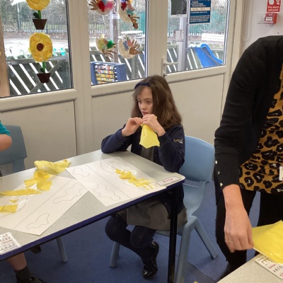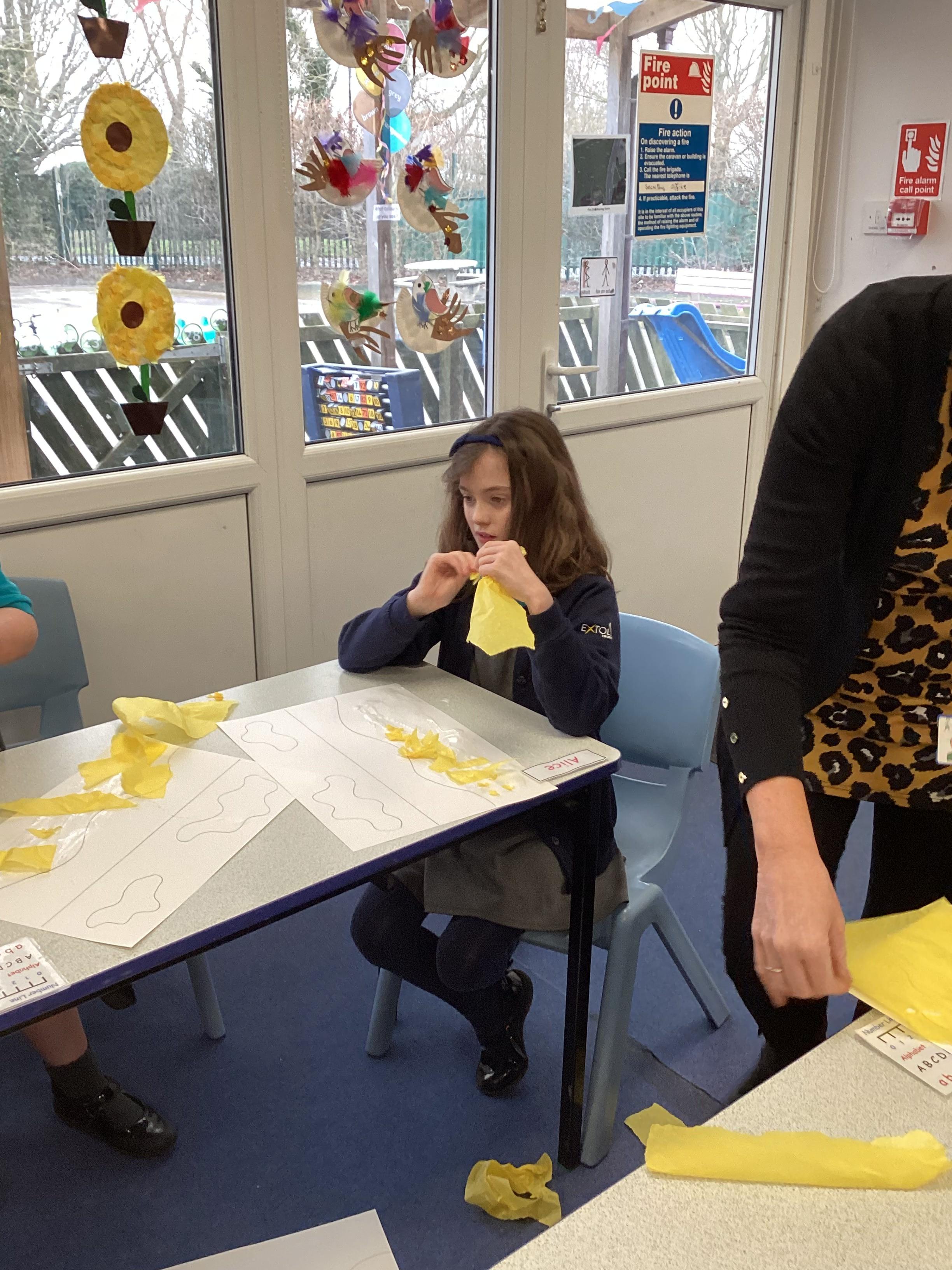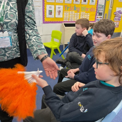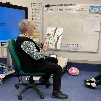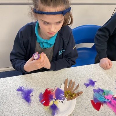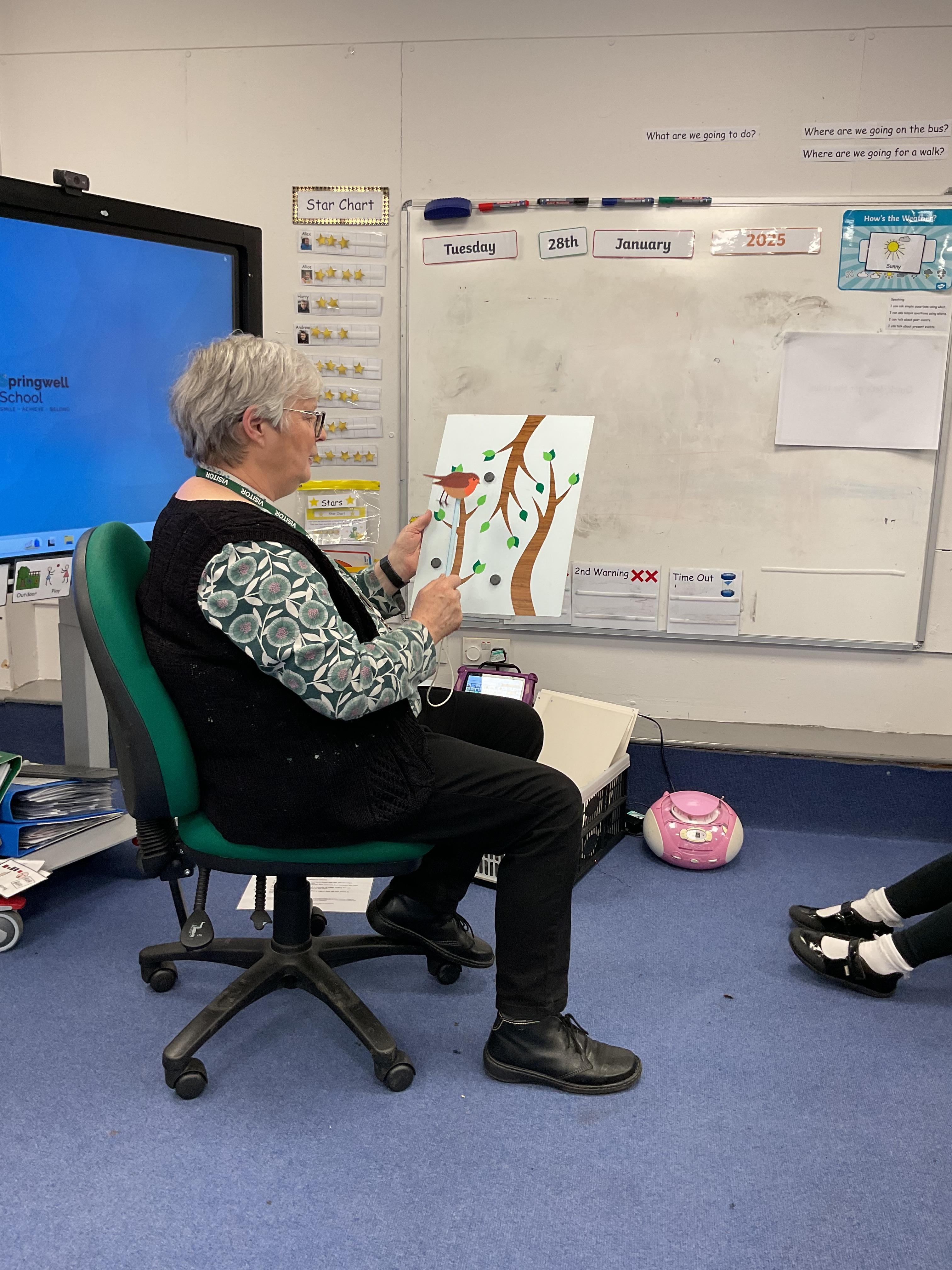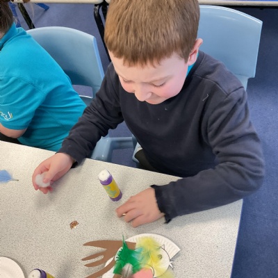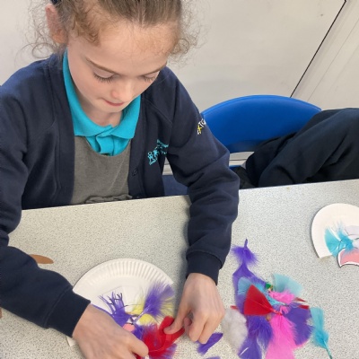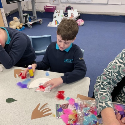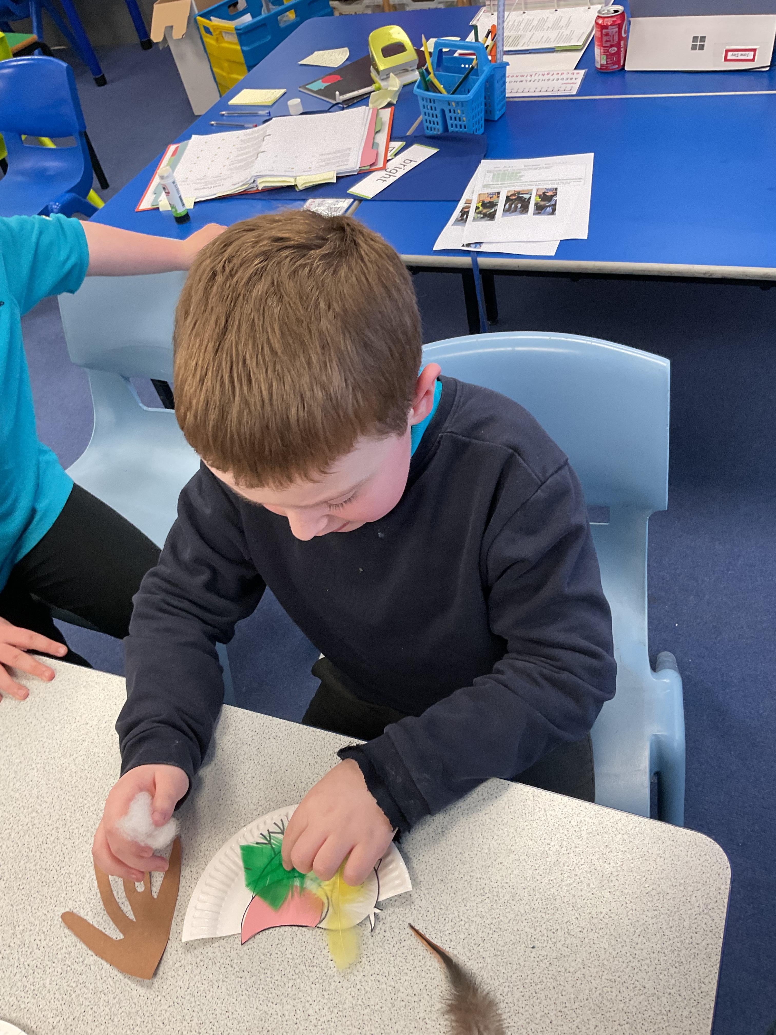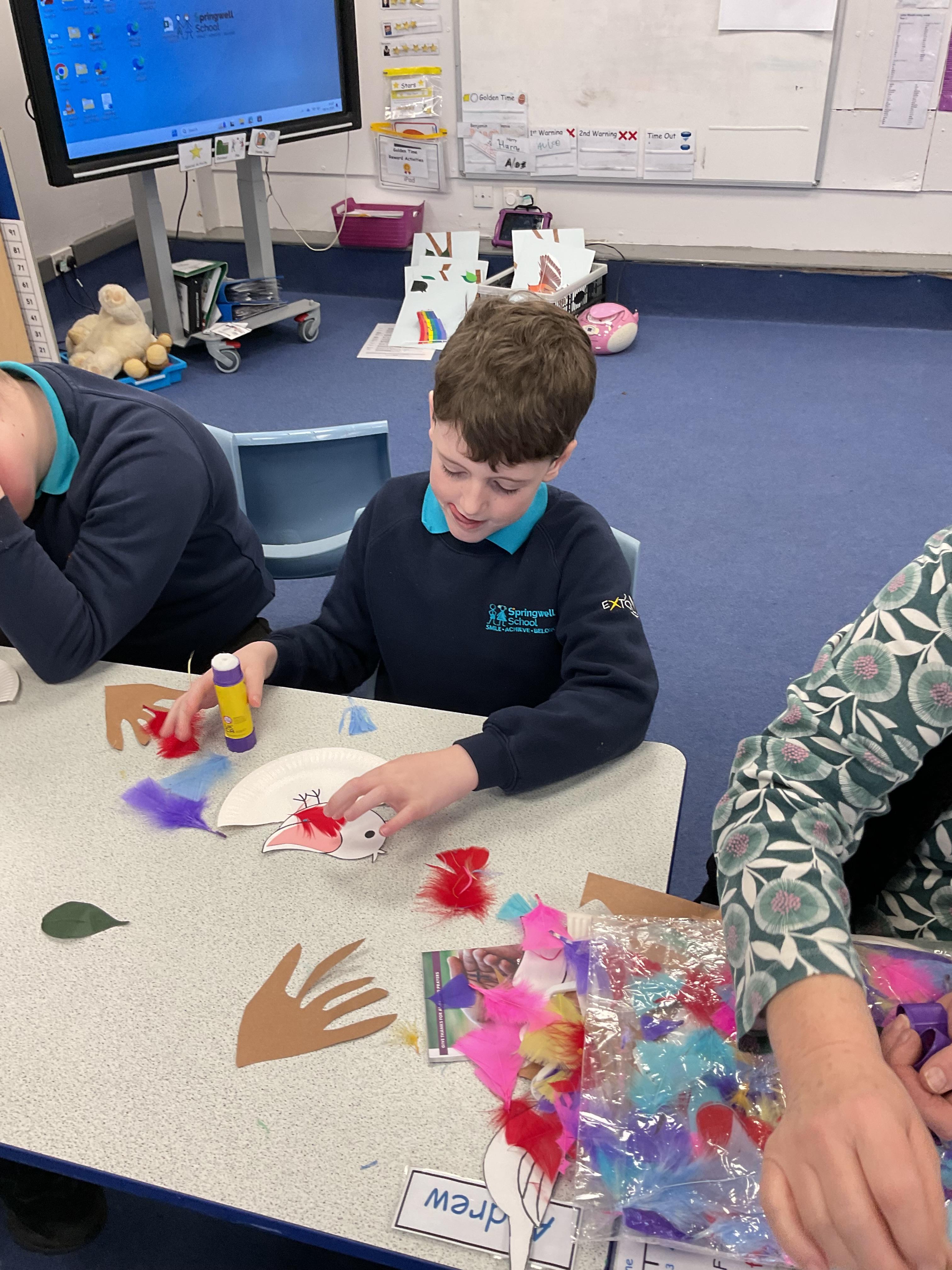 28.01.25 STORY AND CRAFT SESSION: Joanna from the library came into our class today to read the children a story about birds. The children explored all the multi-sensory story props using their senses with interest. The children then created their own little bird using a variety of art material and feathers. How amazing do they look!