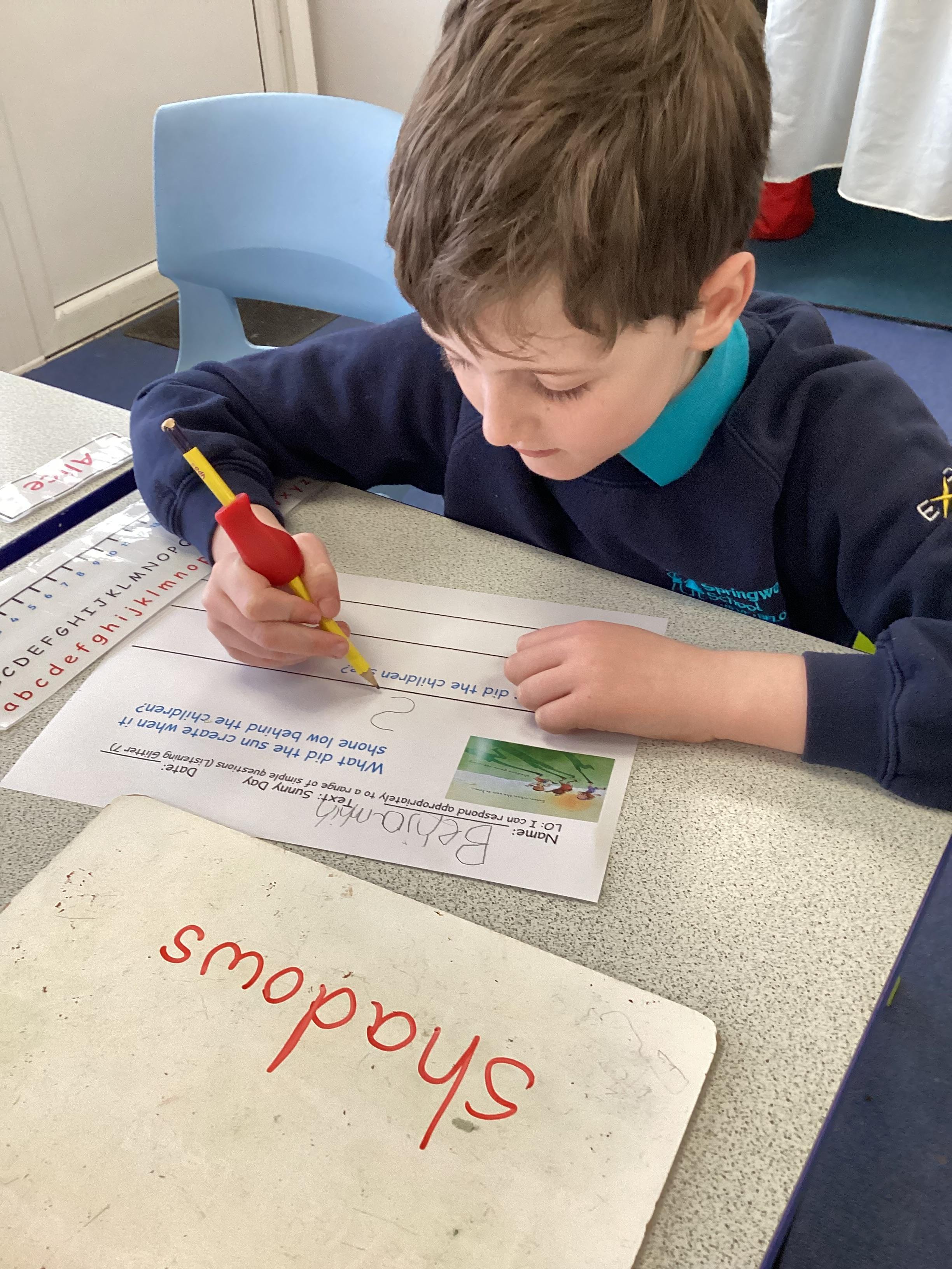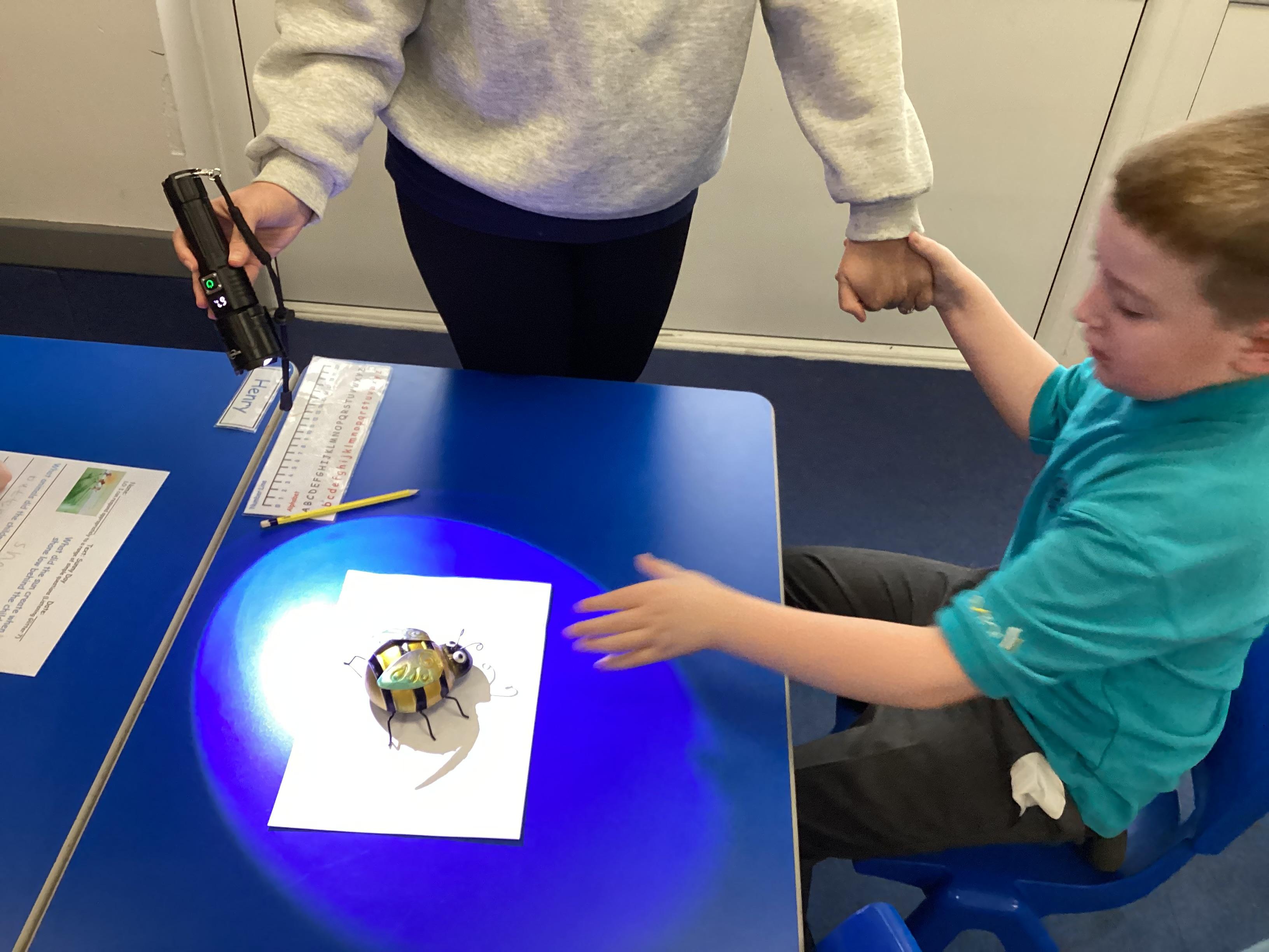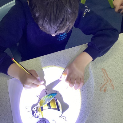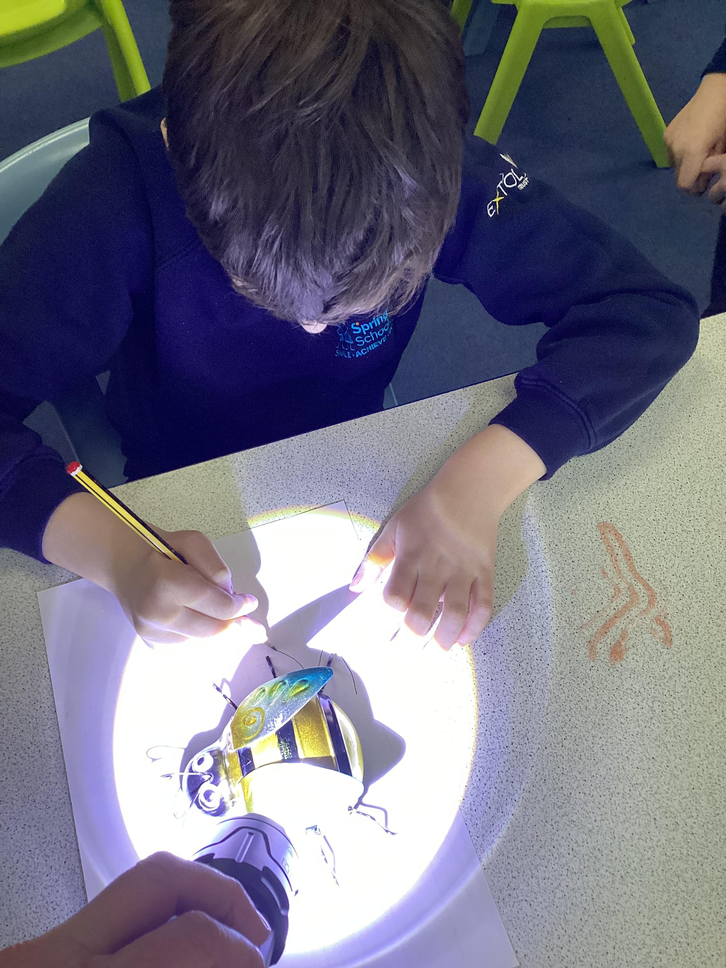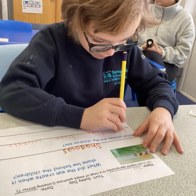LITERACY: The Sunny Day - The children have been reading and answering questions about the story. We have had fun, creating our own shadows using a torch. The children carefully drew around the shape of the different shadows they created.