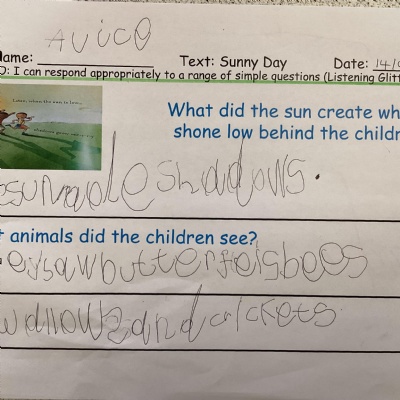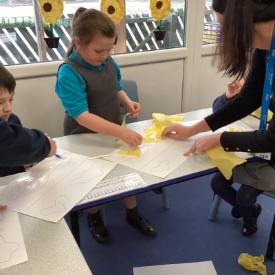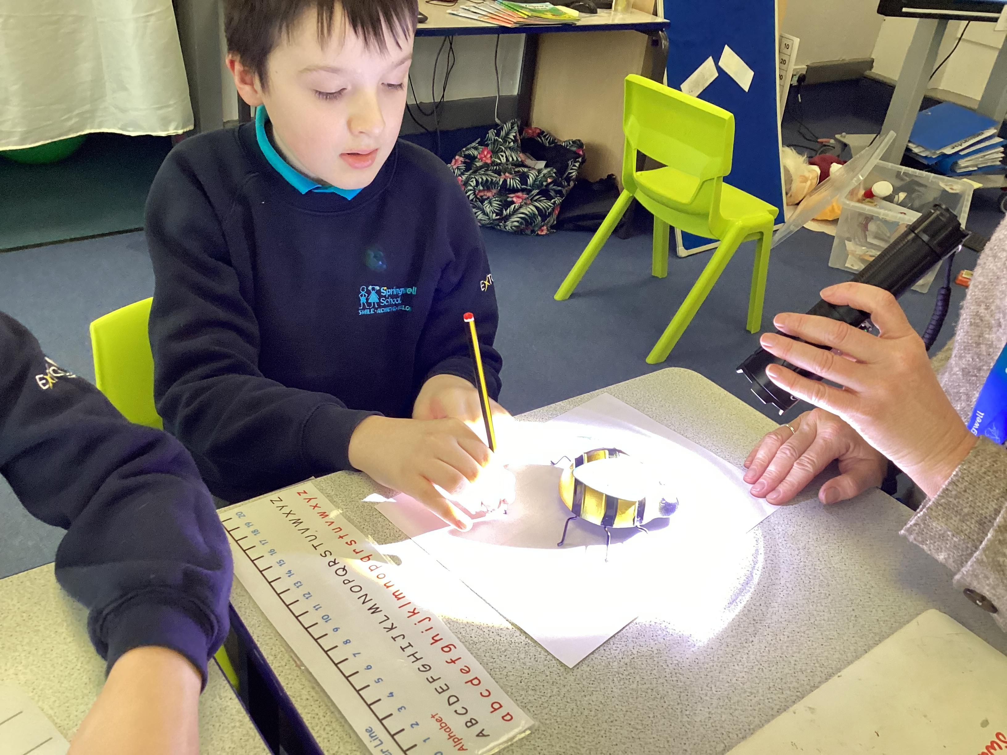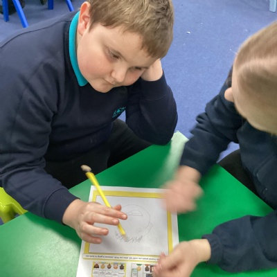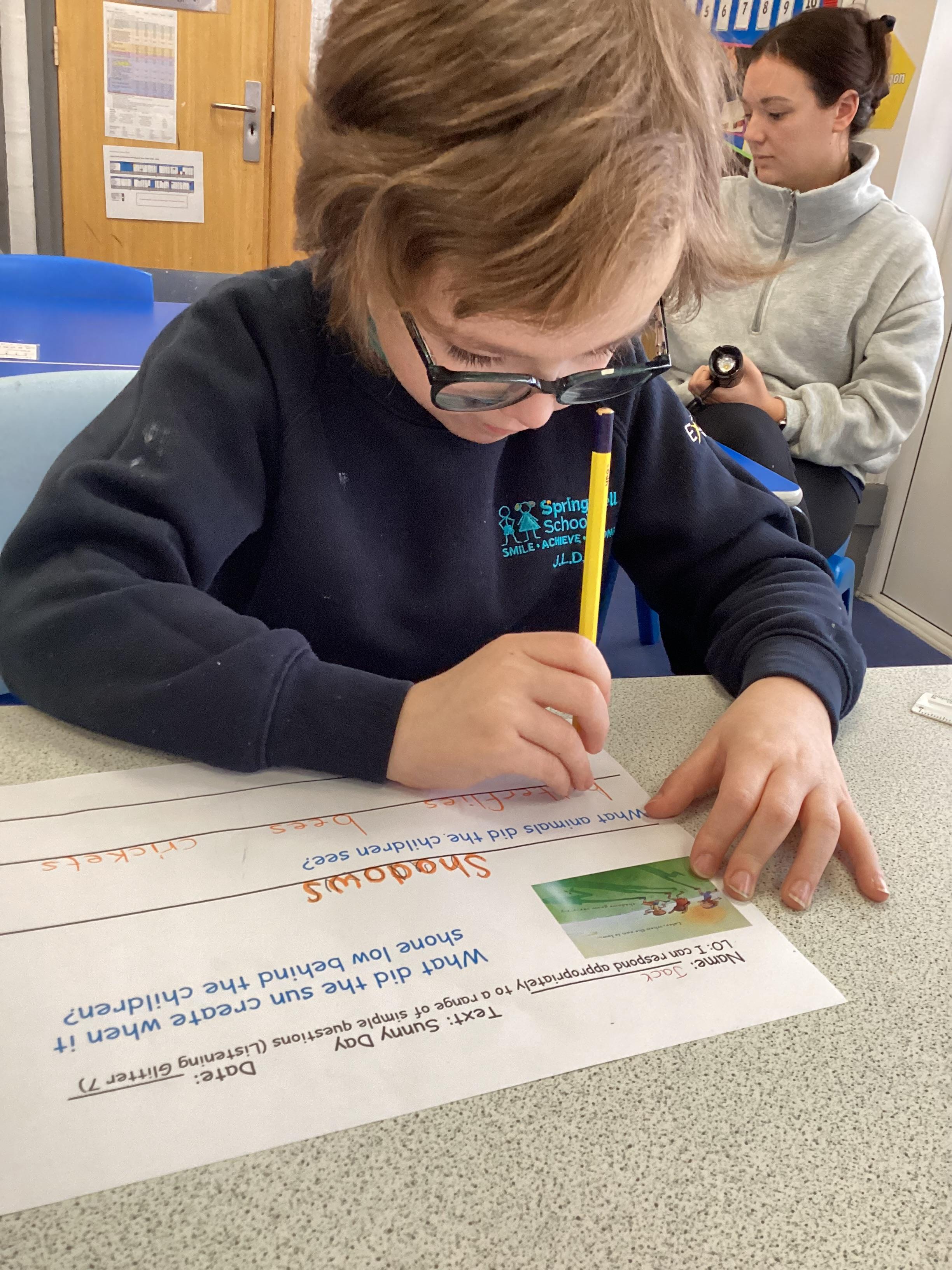 LITERACY: The Sunny Day - The children have been reading and answering questions about the story. We have had fun, creating our own shadows using a torch. The children carefully drew around the shape of the different shadows they created.