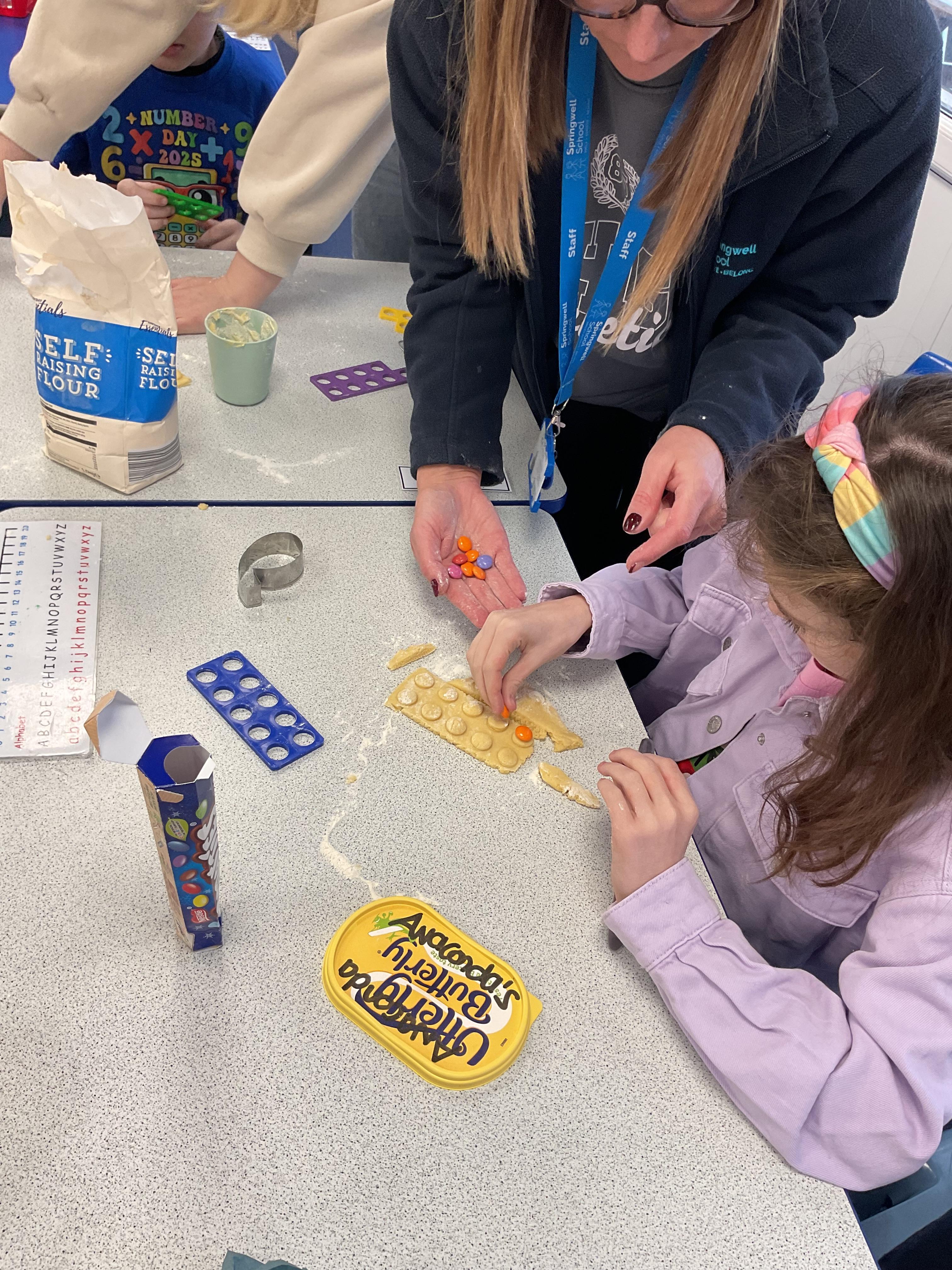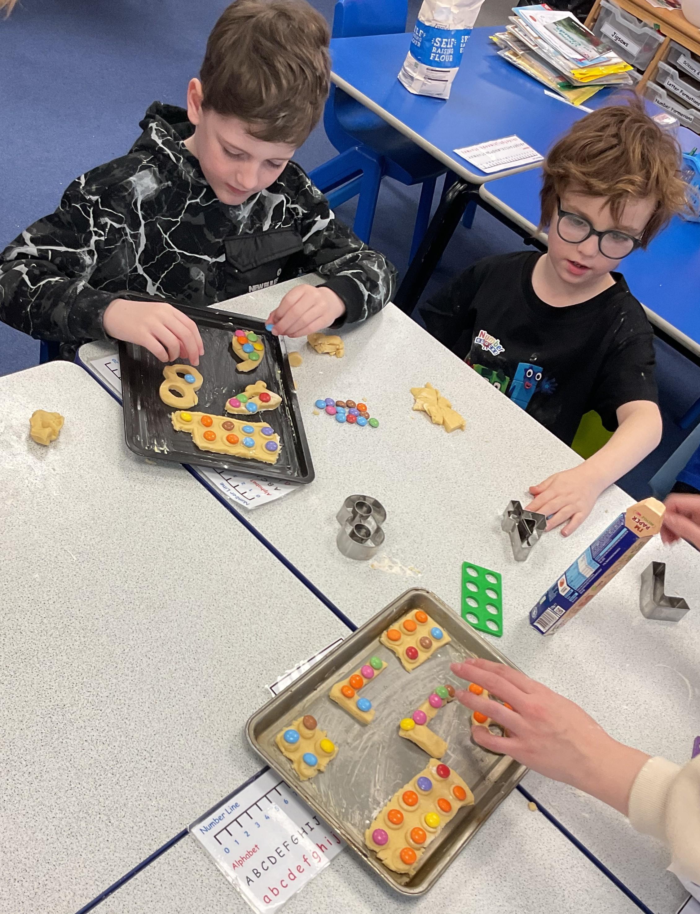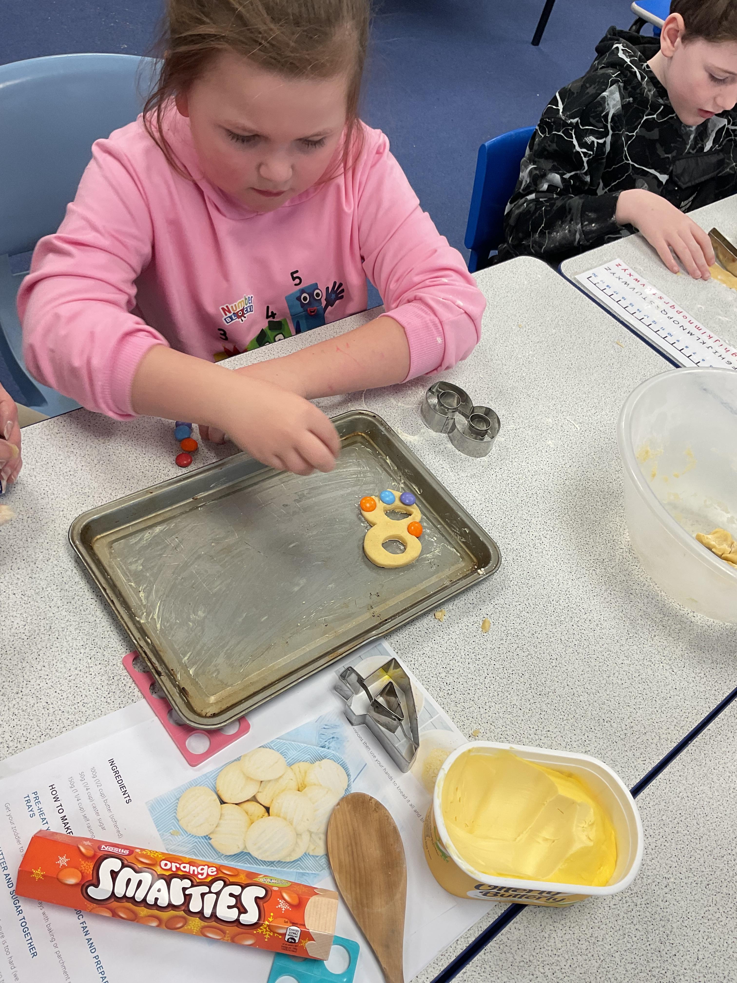 07.02.25 NUMBER DAY! We have been dancing to number songs, singing number songs, representing numbers with numicon, exploring coins, chalking numbers on the playground and baking our own special number biscuits!
