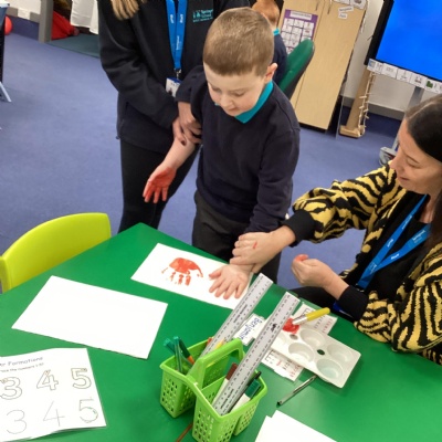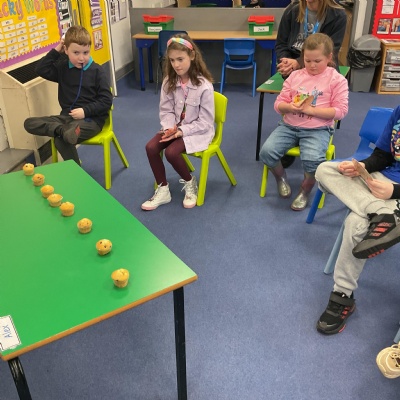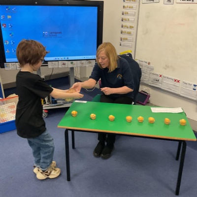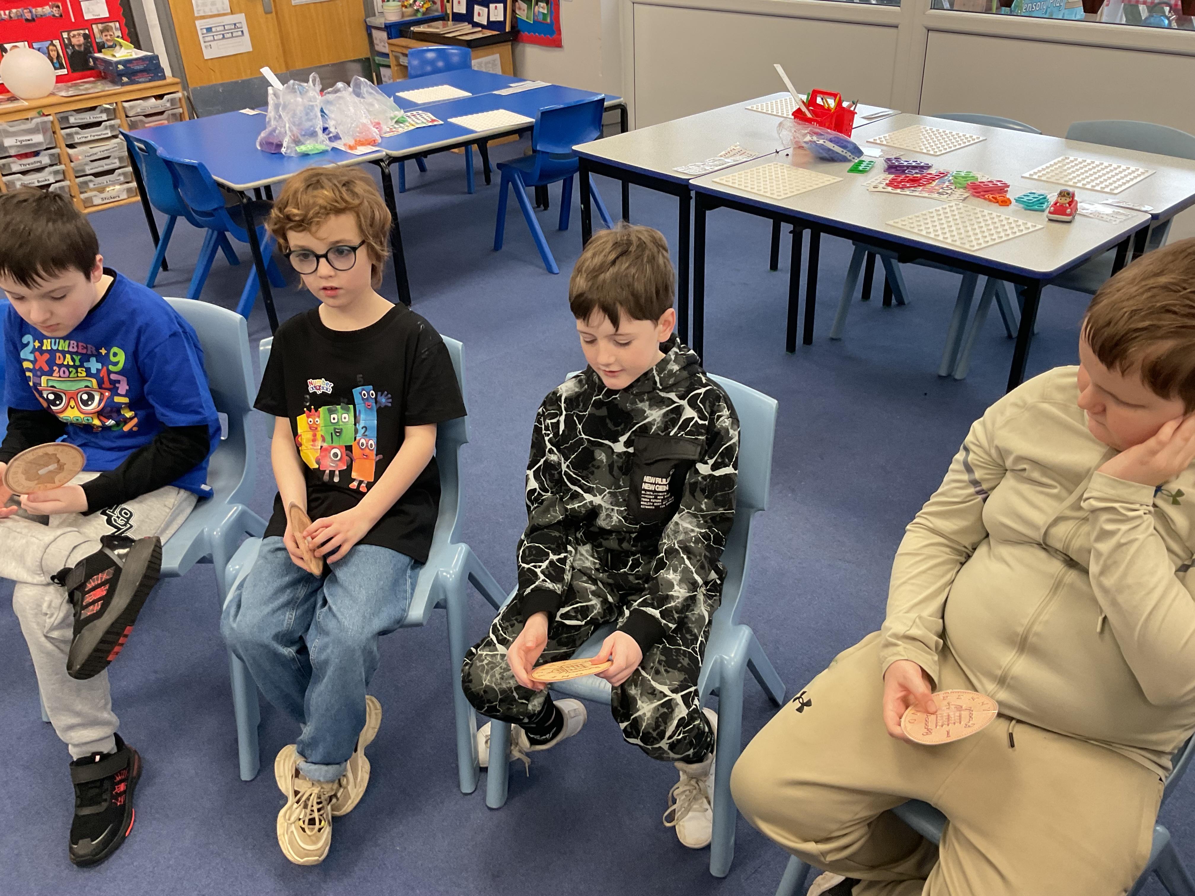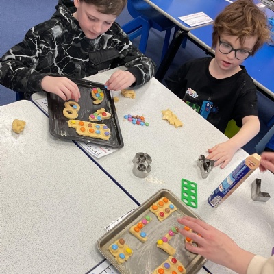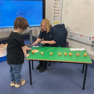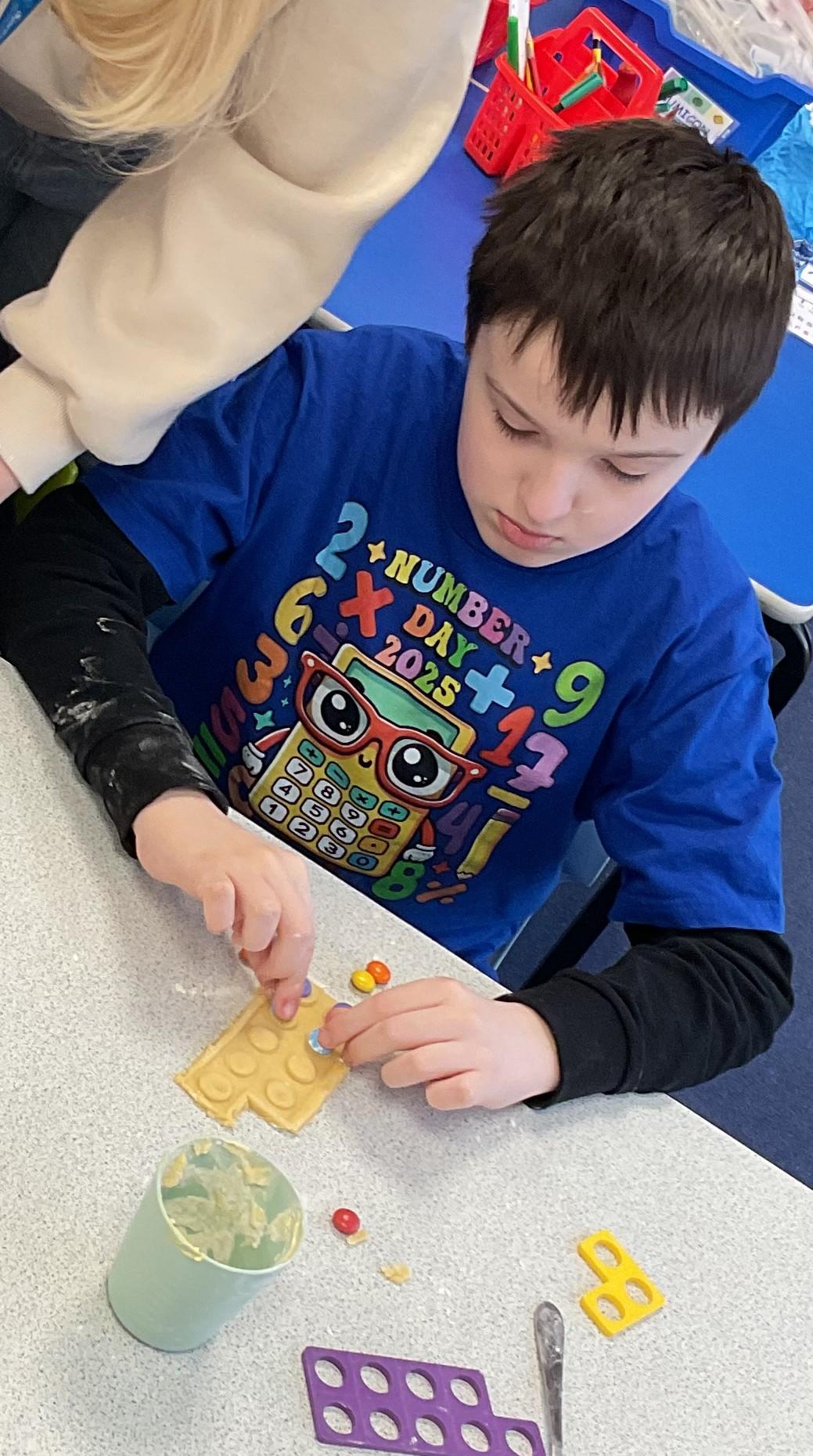 07.02.25 NUMBER DAY! We have been dancing to number songs, singing number songs, representing numbers with numicon, exploring coins, chalking numbers on the playground and baking our own special number biscuits!