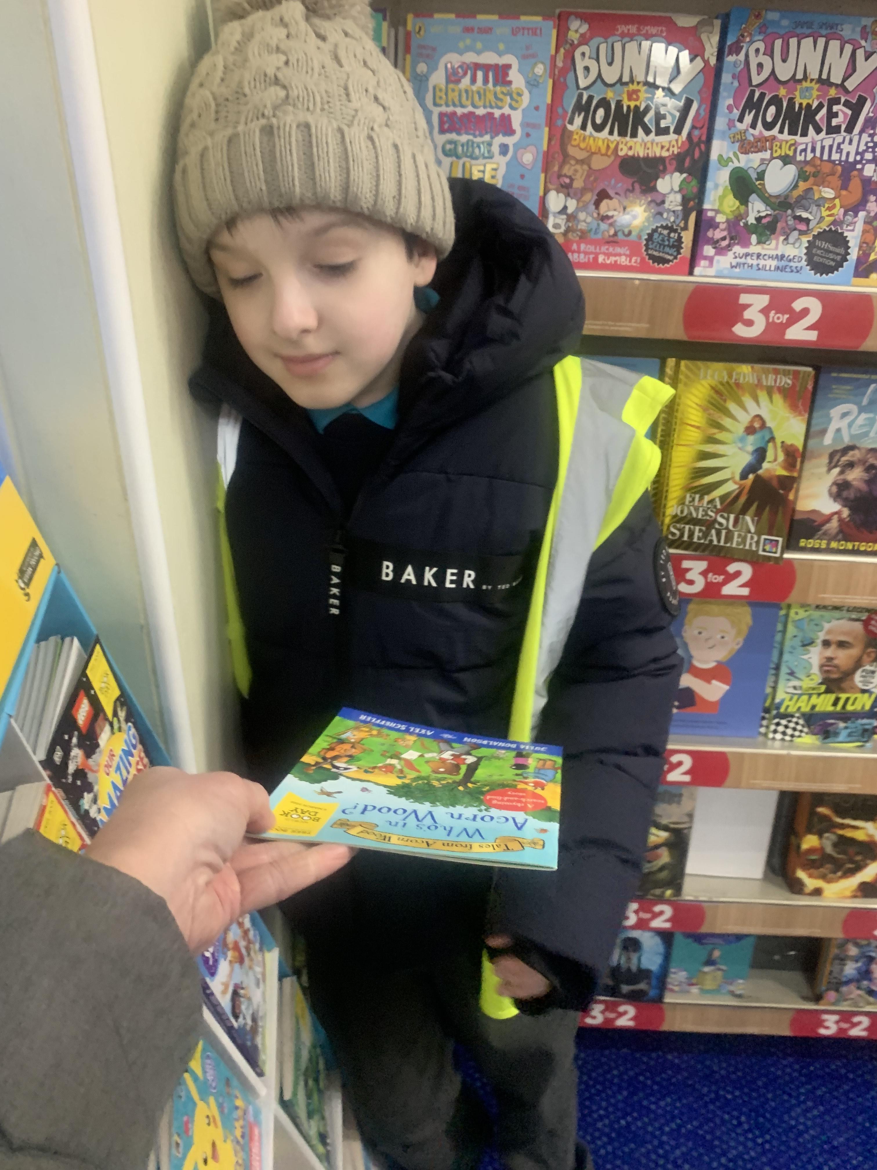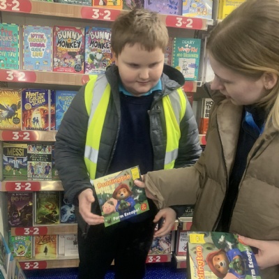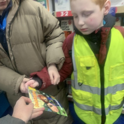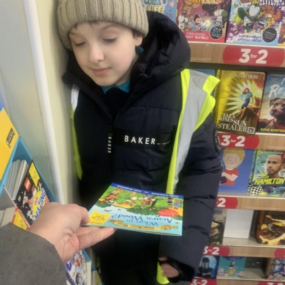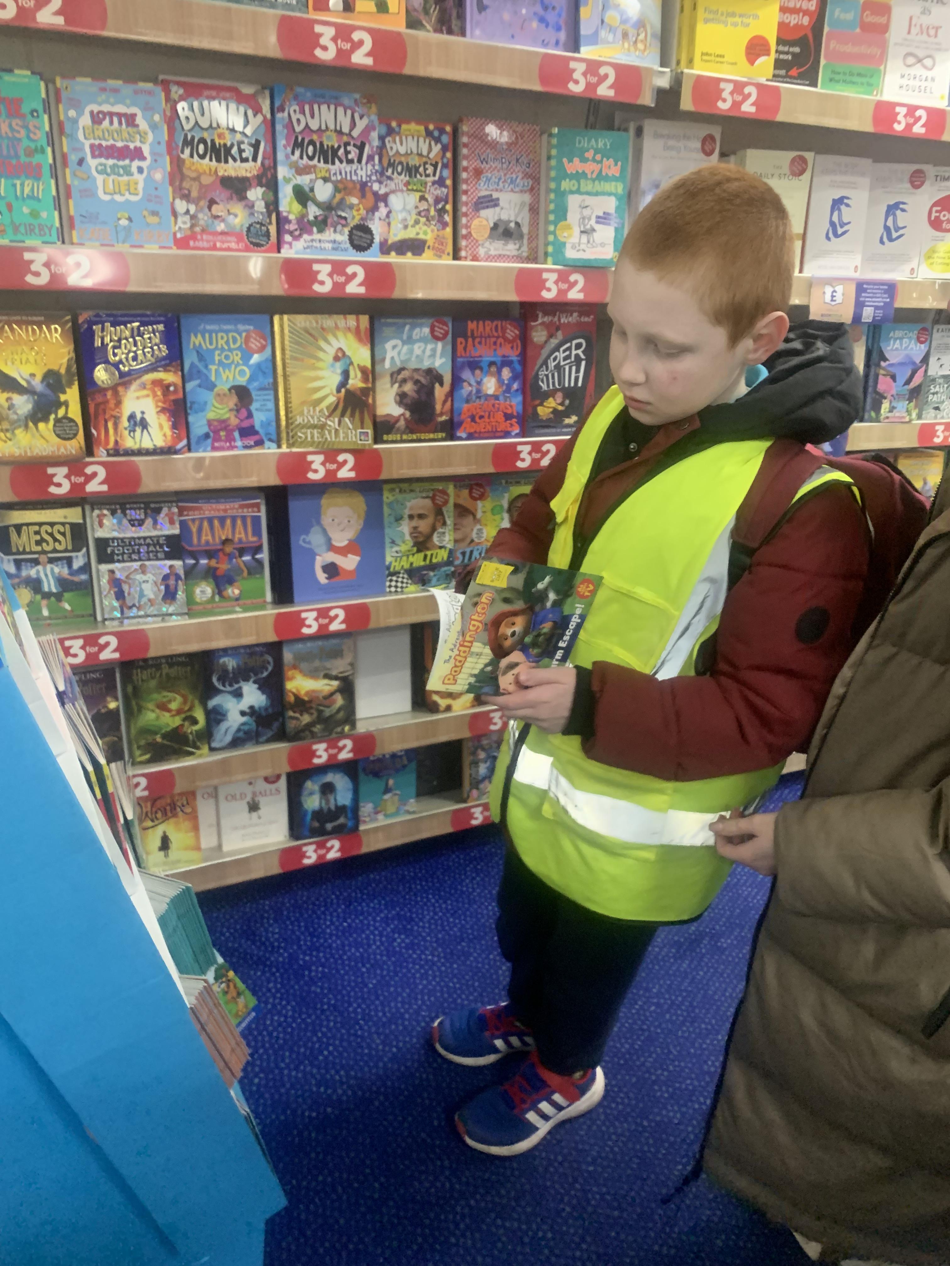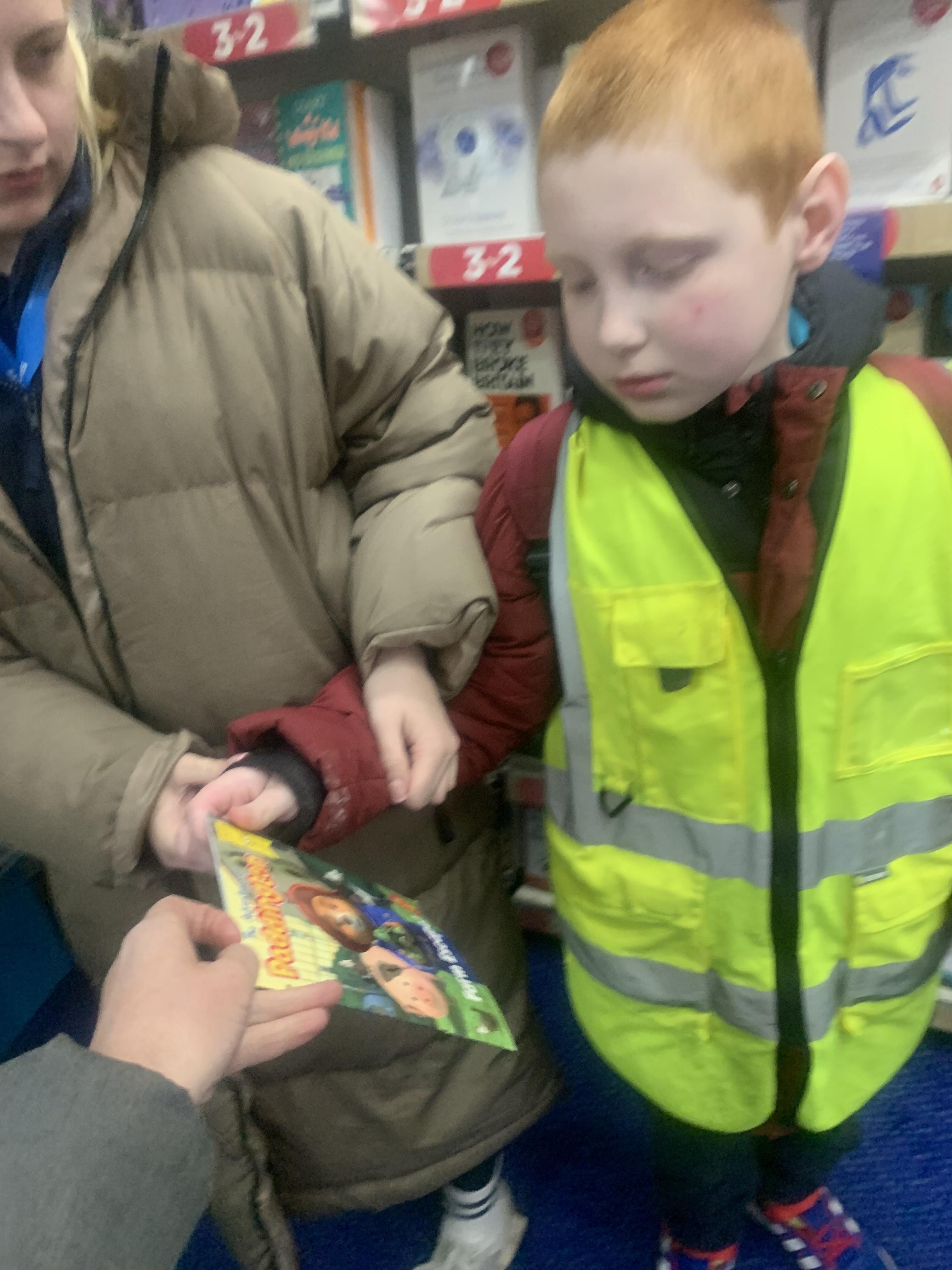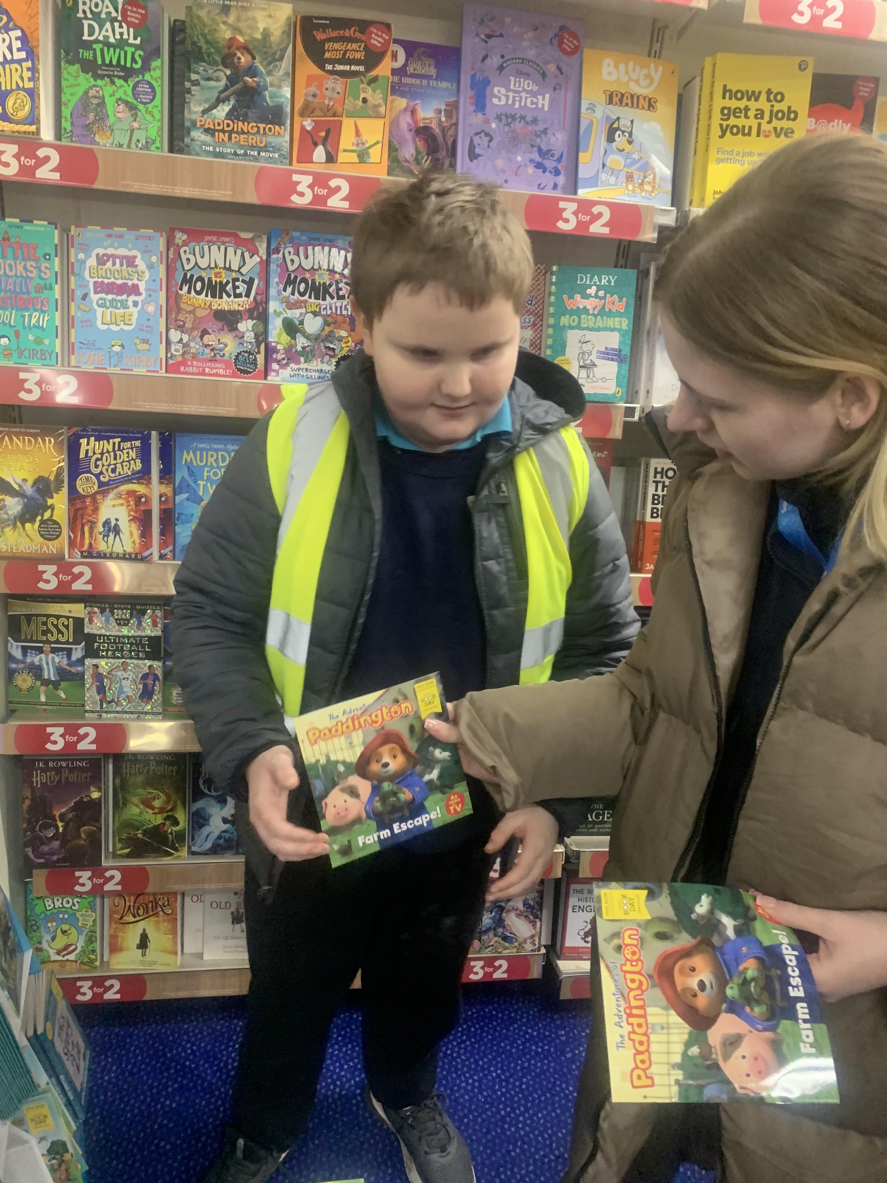 13.02.25 WORLD BOOK DAY TOKENS: This afternoon, we went to WHSmiths to look at the books. The children choose their favourite book and we used our tokens to purchase them. The children took their books home to share and read with their parents.