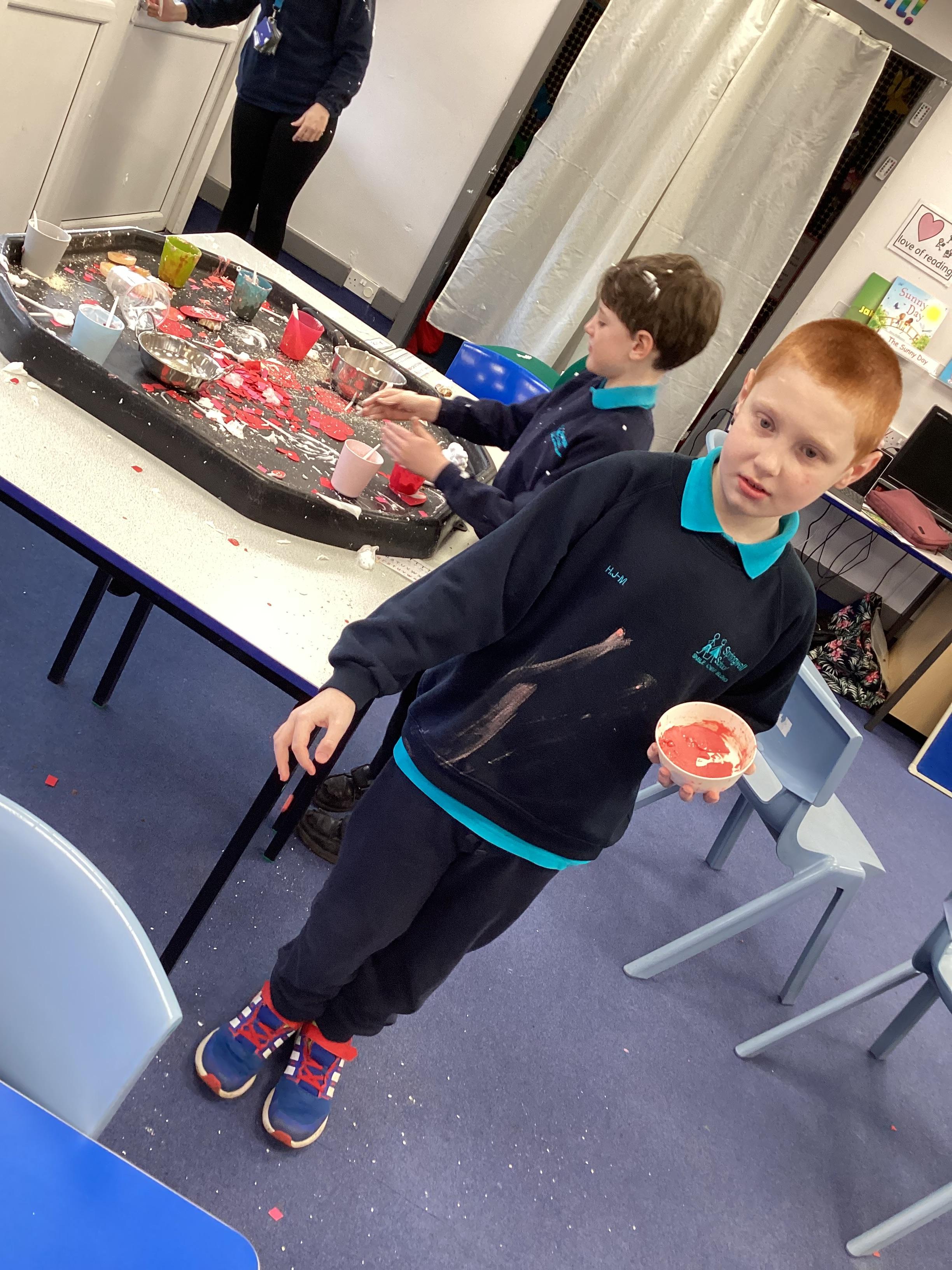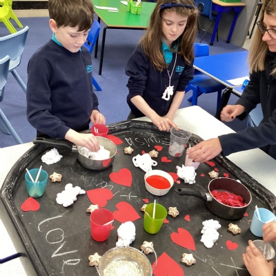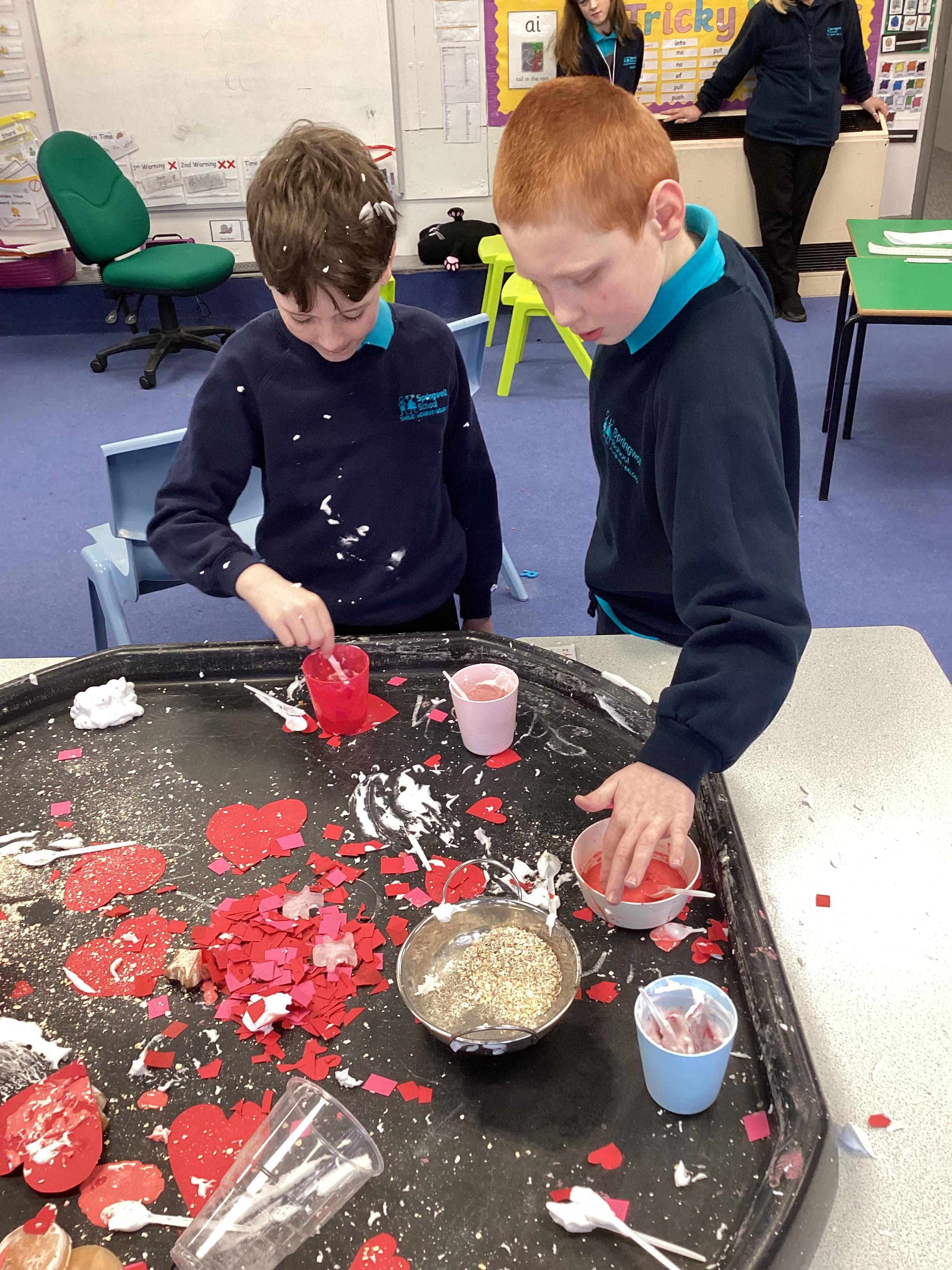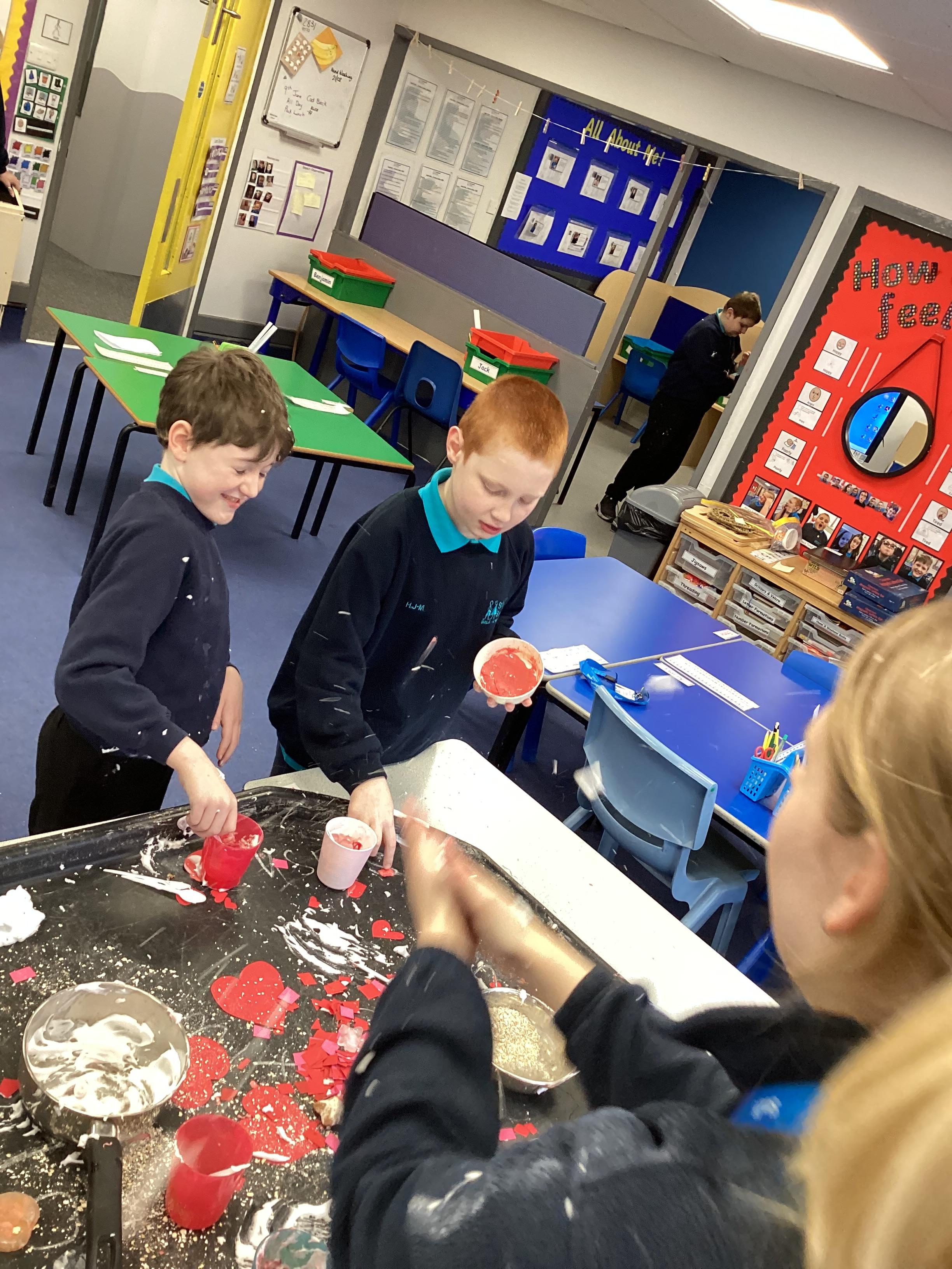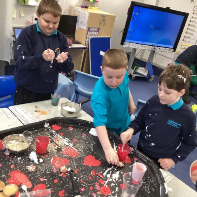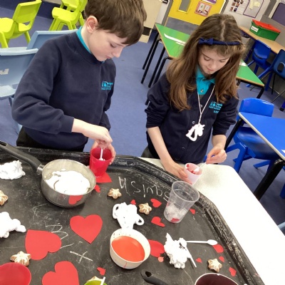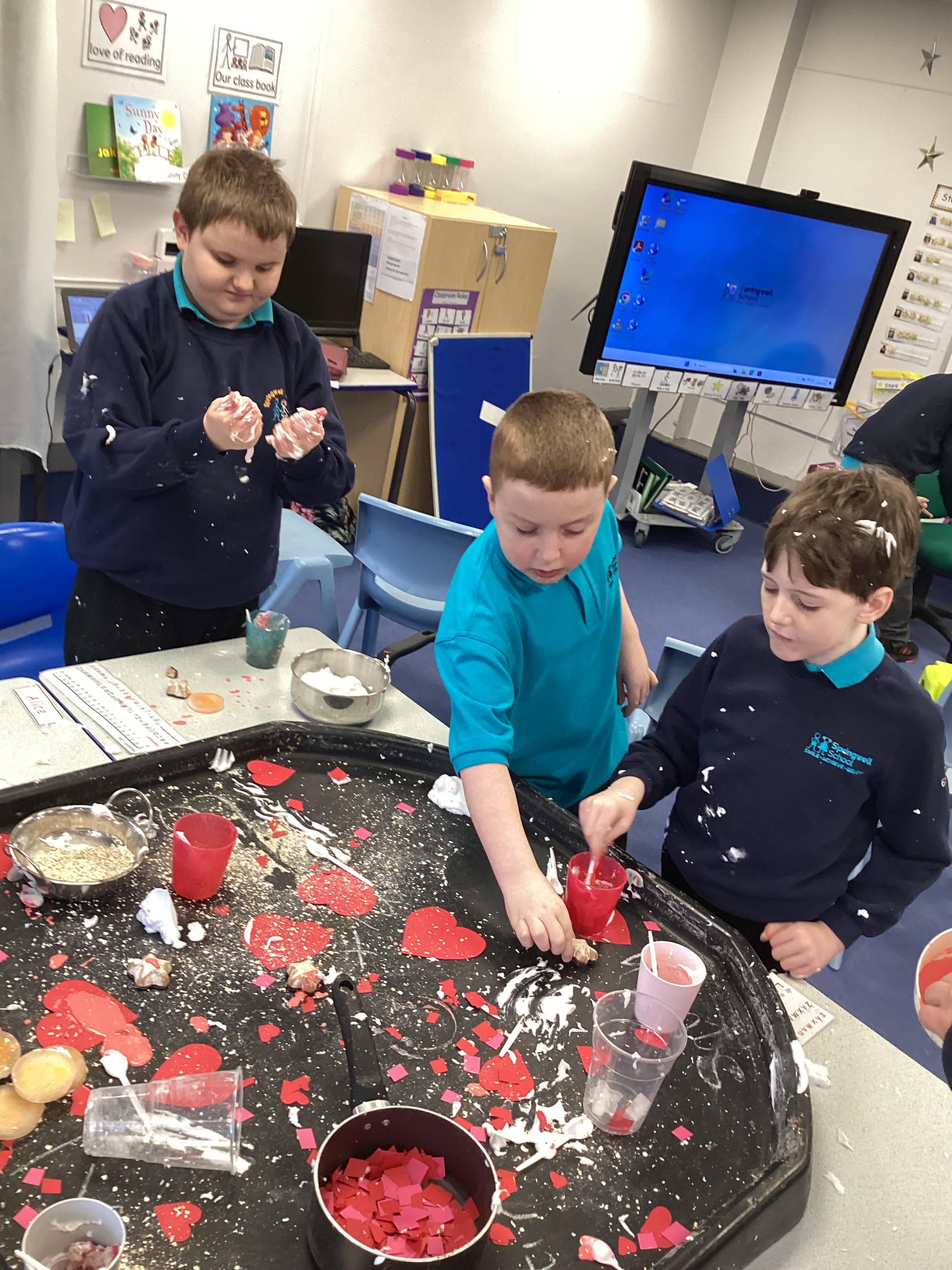 13.02.25 Valentines Messy Play - The children enjoyed making love potions during literacy today. They used some lovely language while exploring, mixing, stirring and even eating our ingredients.