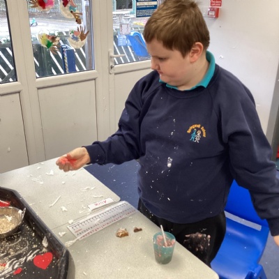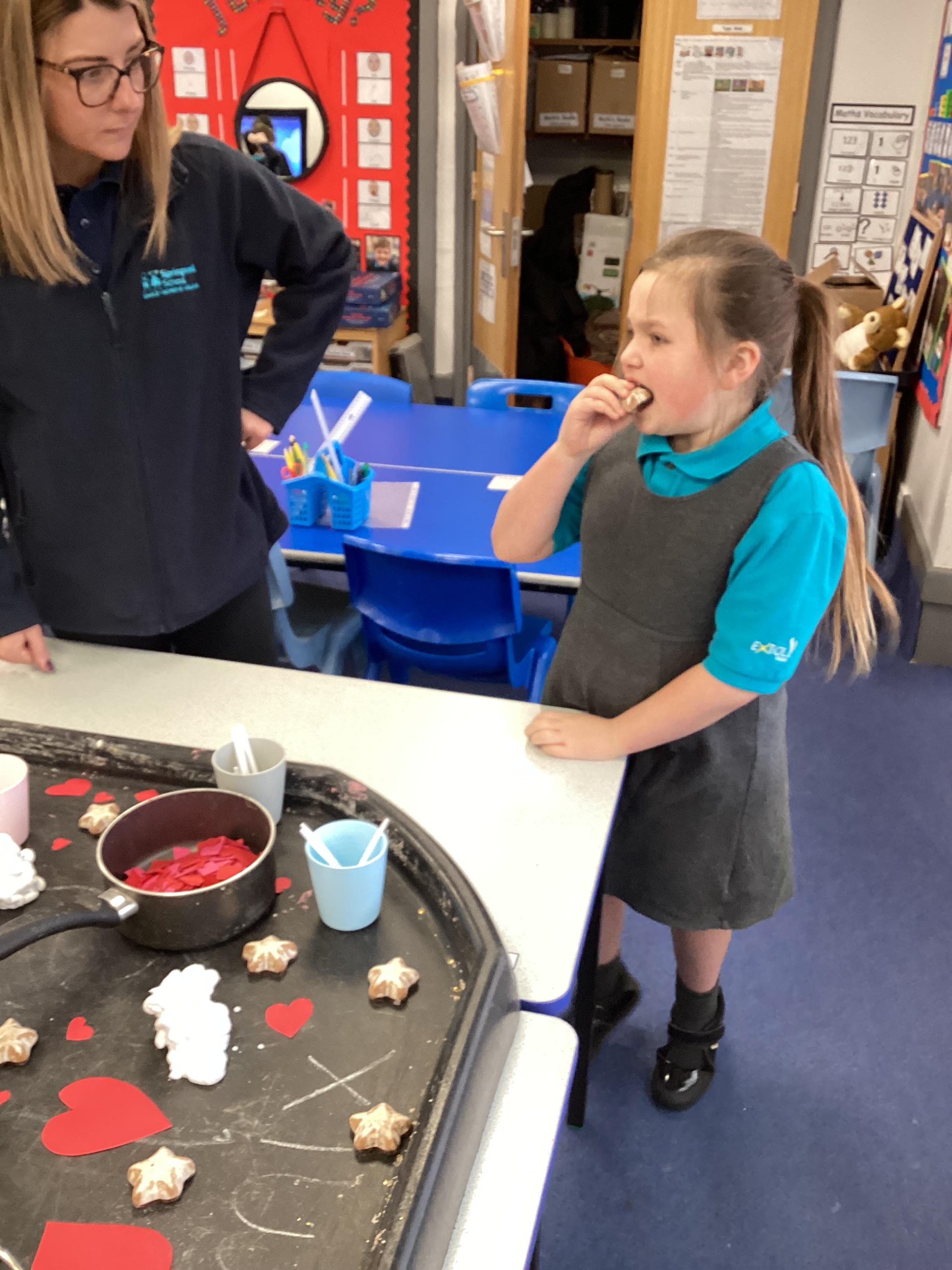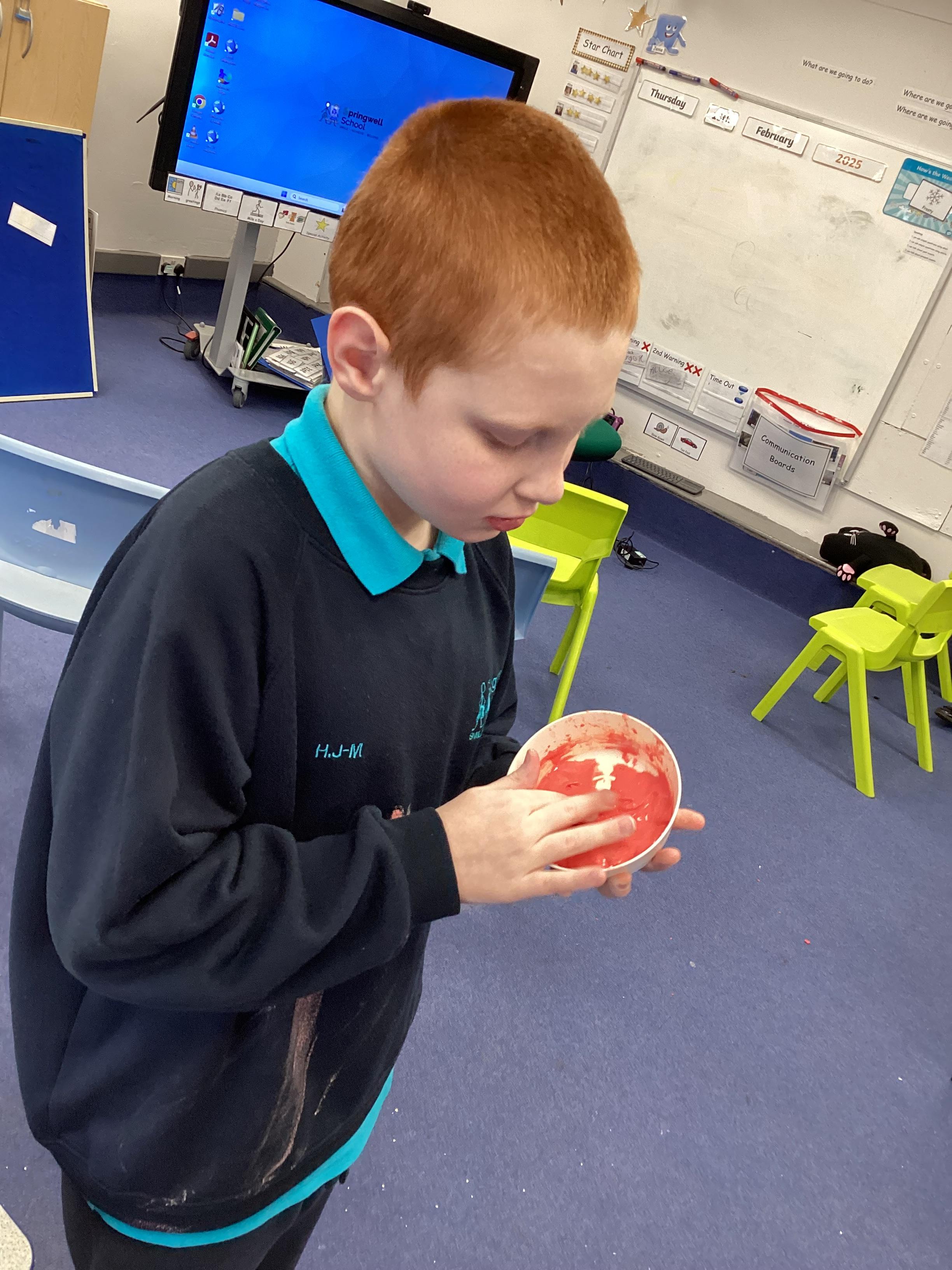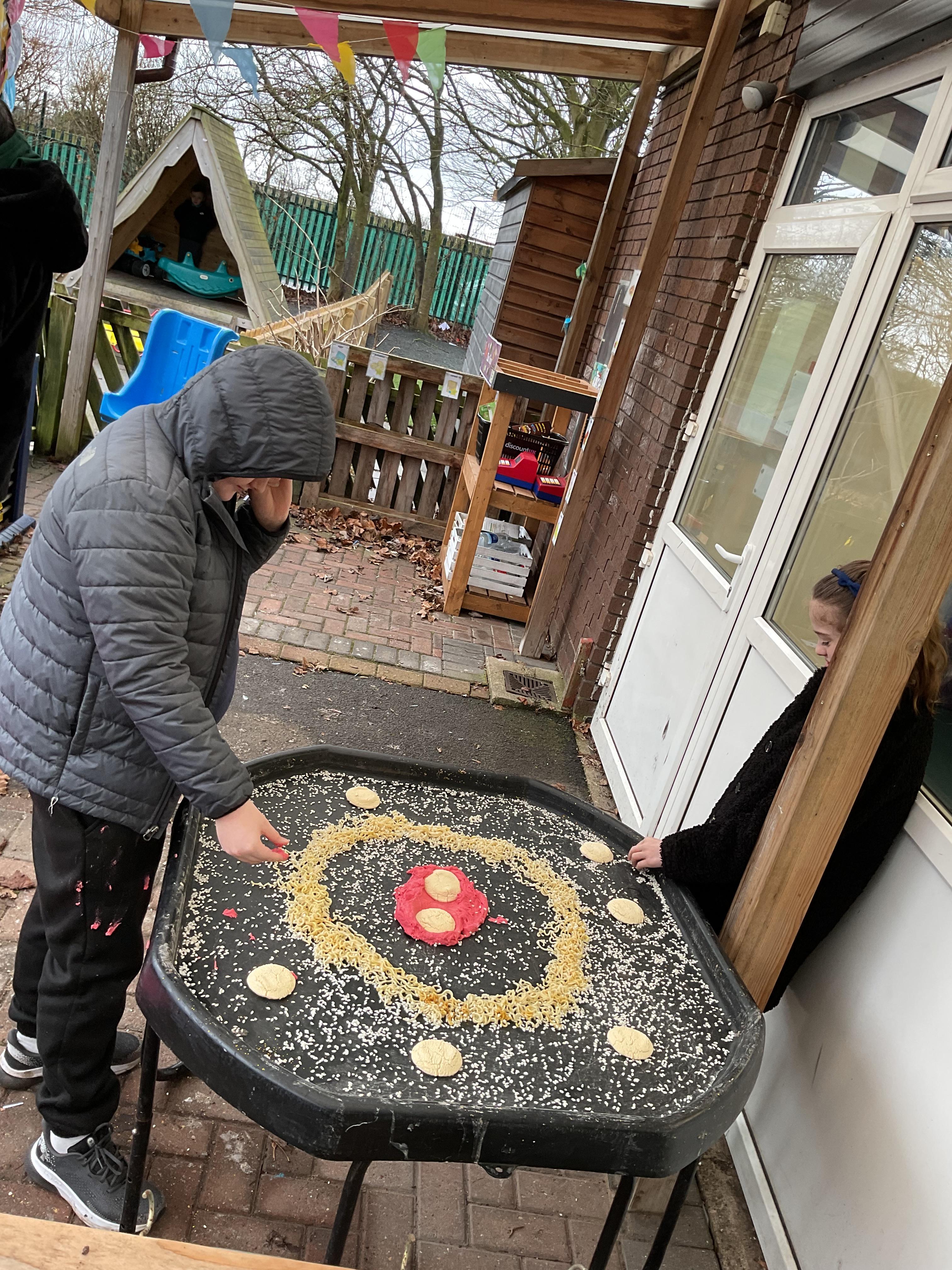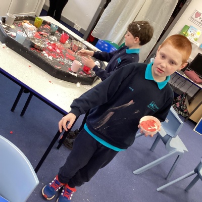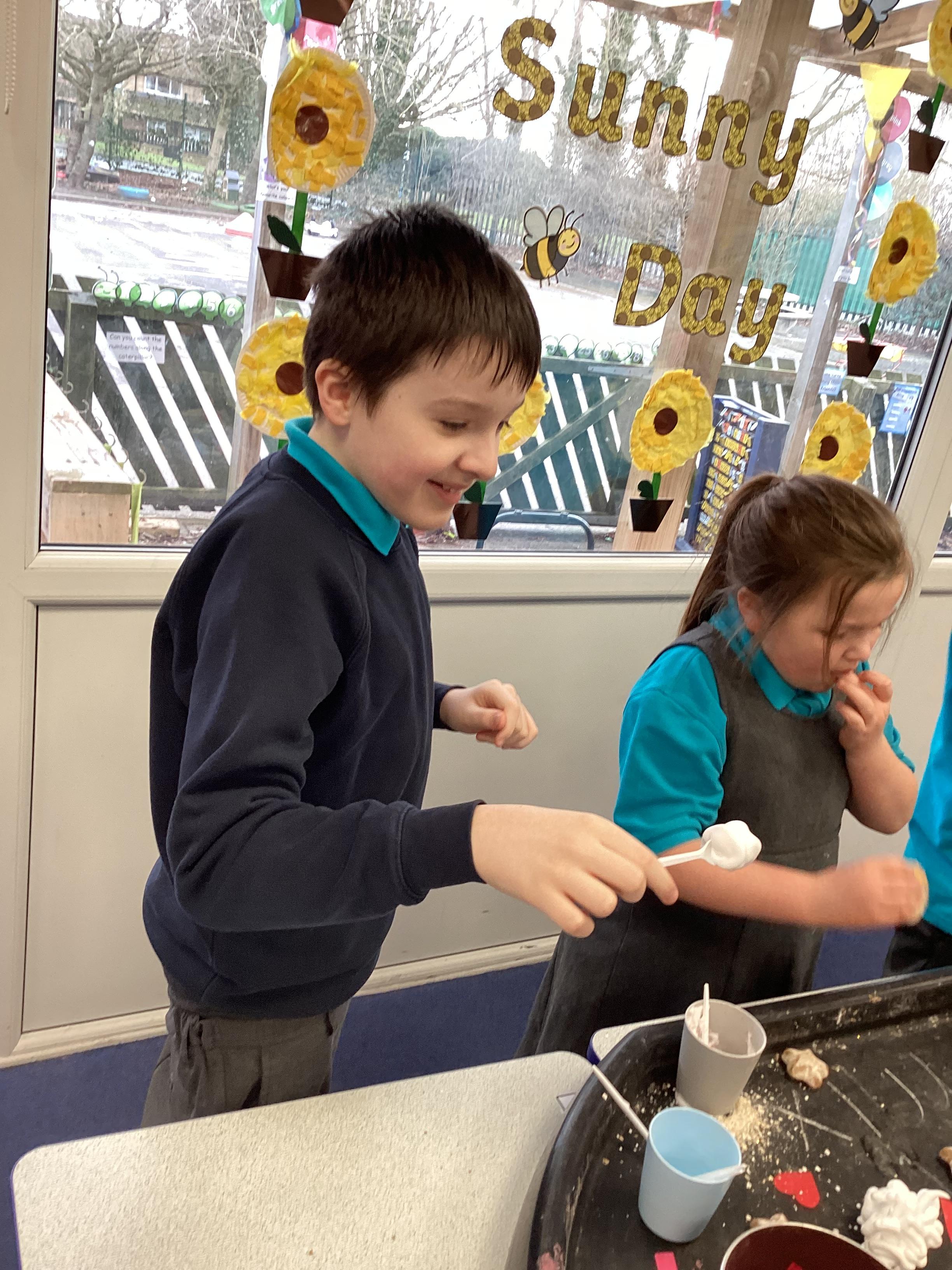 13.02.25 Valentines Messy Play - The children enjoyed making love potions during literacy today. They used some lovely language while exploring, mixing, stirring and even eating our ingredients.