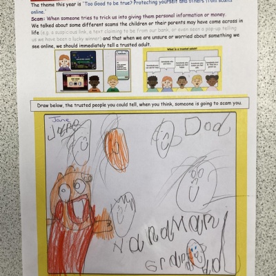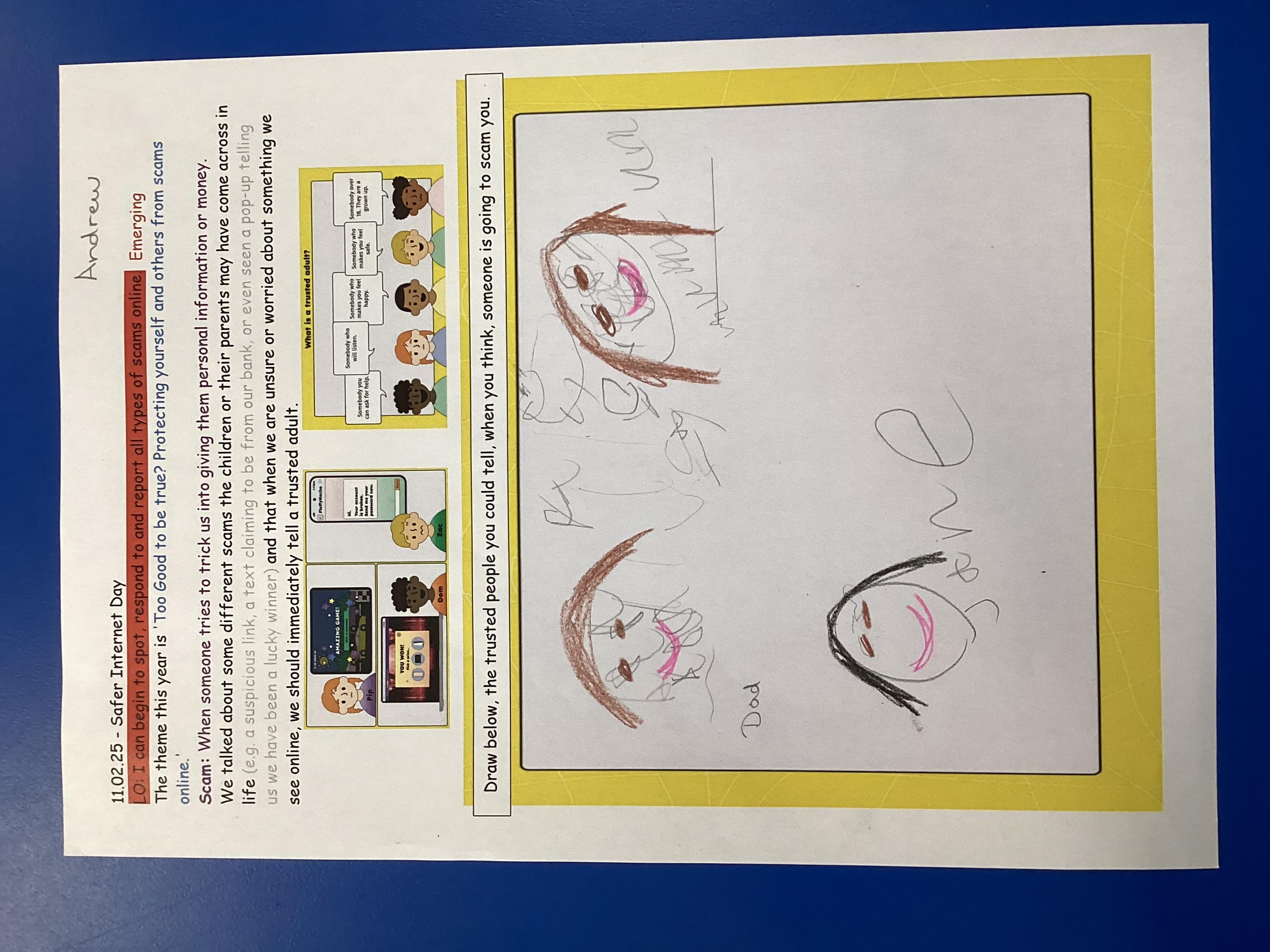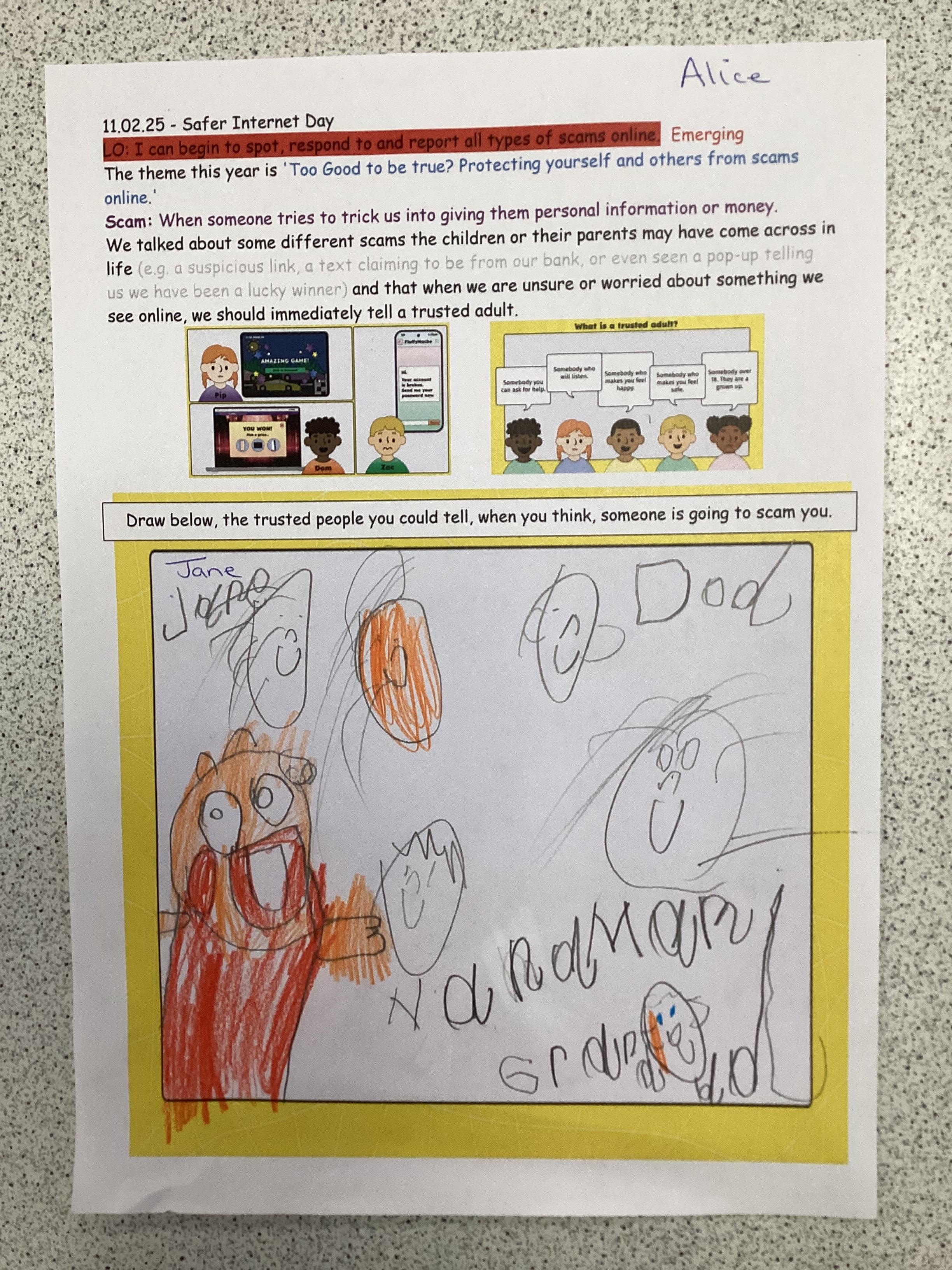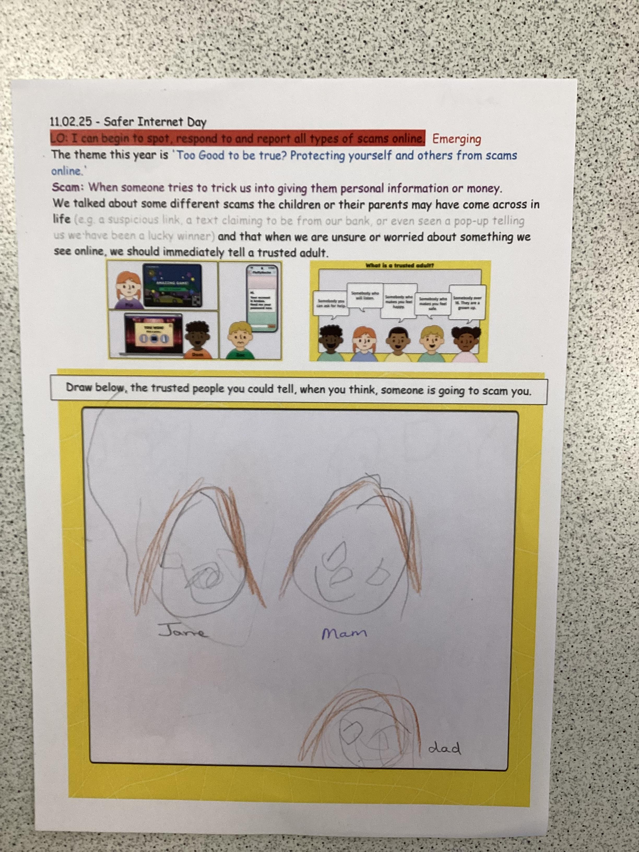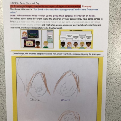 11.02.25 COMPUTING: SAFER INTERNET DAY! The children enjoyed listening to the story called: 'The Cutest Little Alien' on Inclusive Stories. It had a modern take on the classic stranger danger story. The children have been celebrating Safer Internet Day by talking about their trusted adult to speak to when pop ups appear while online.