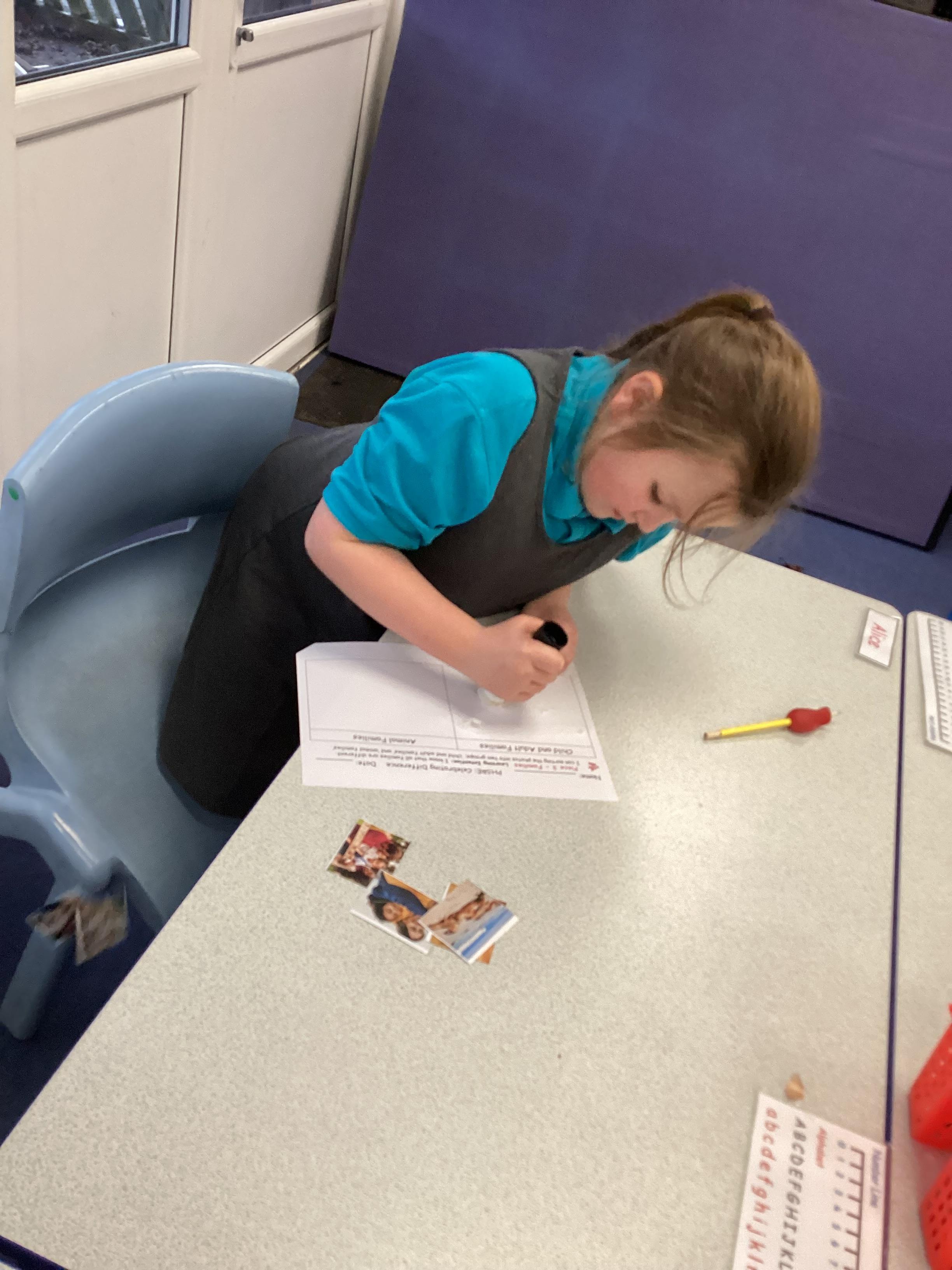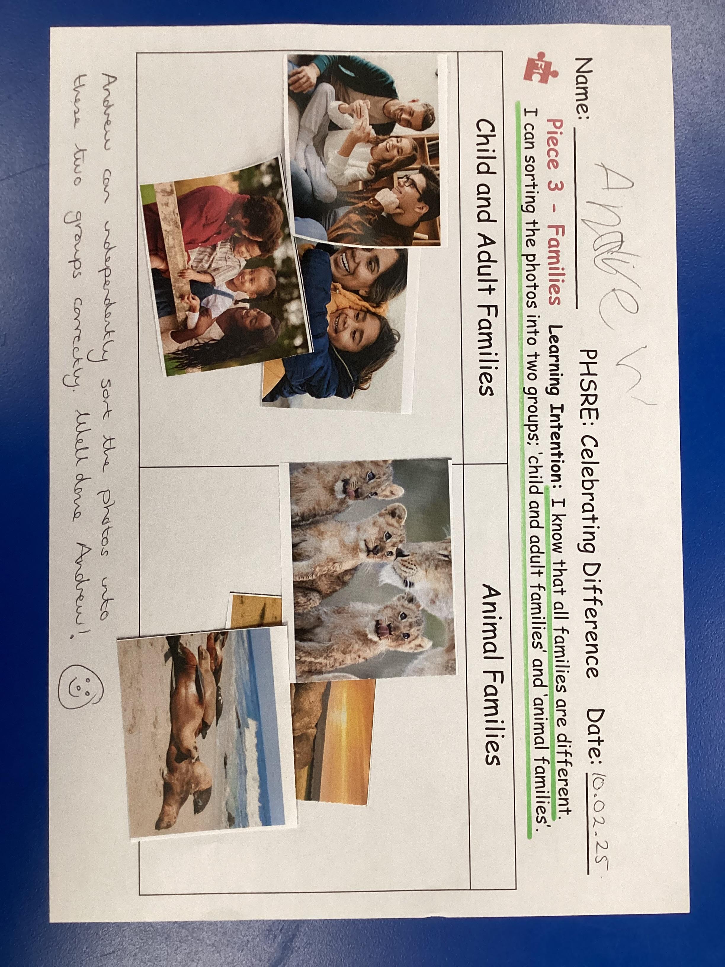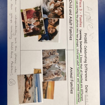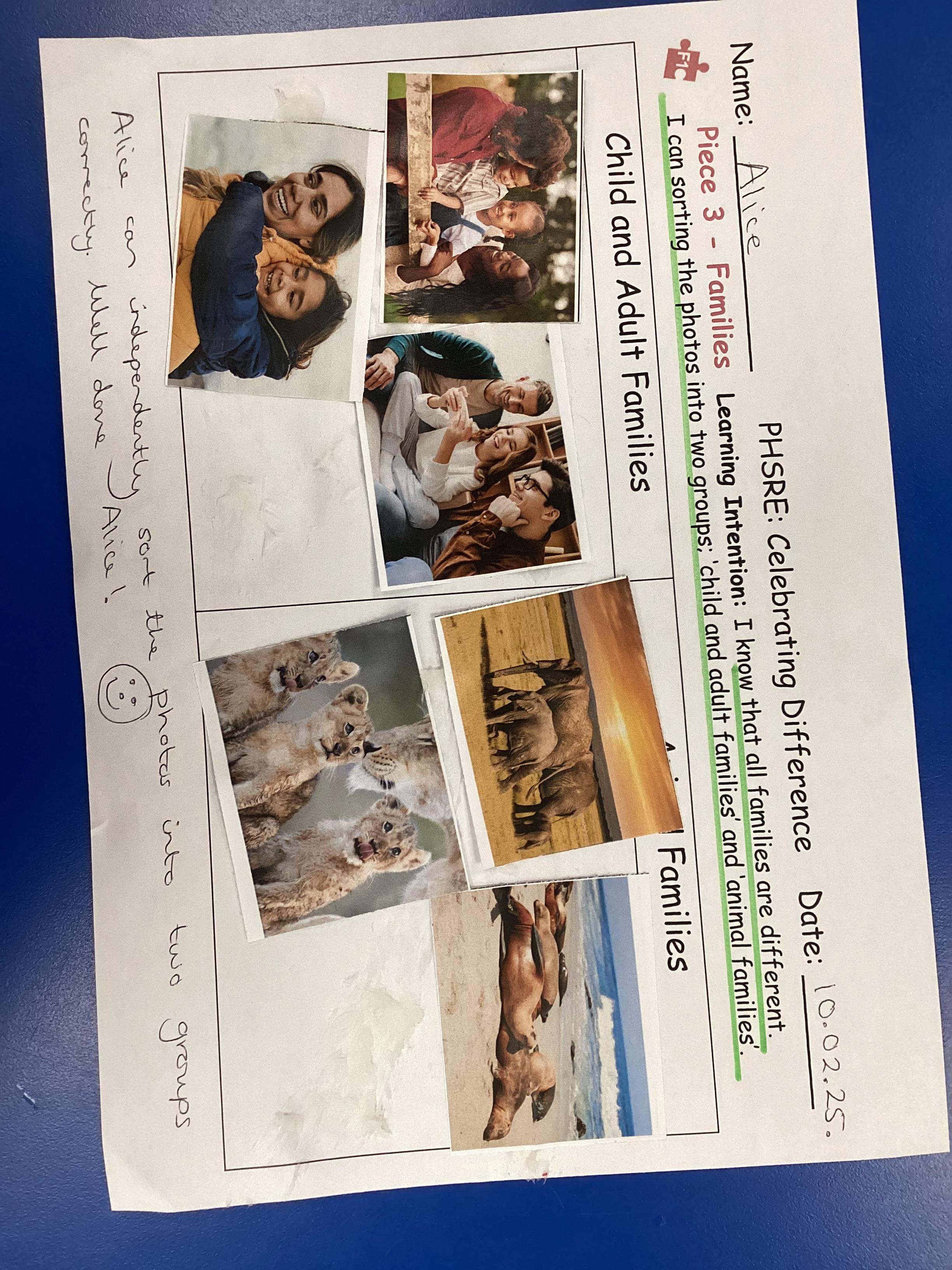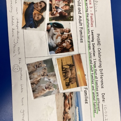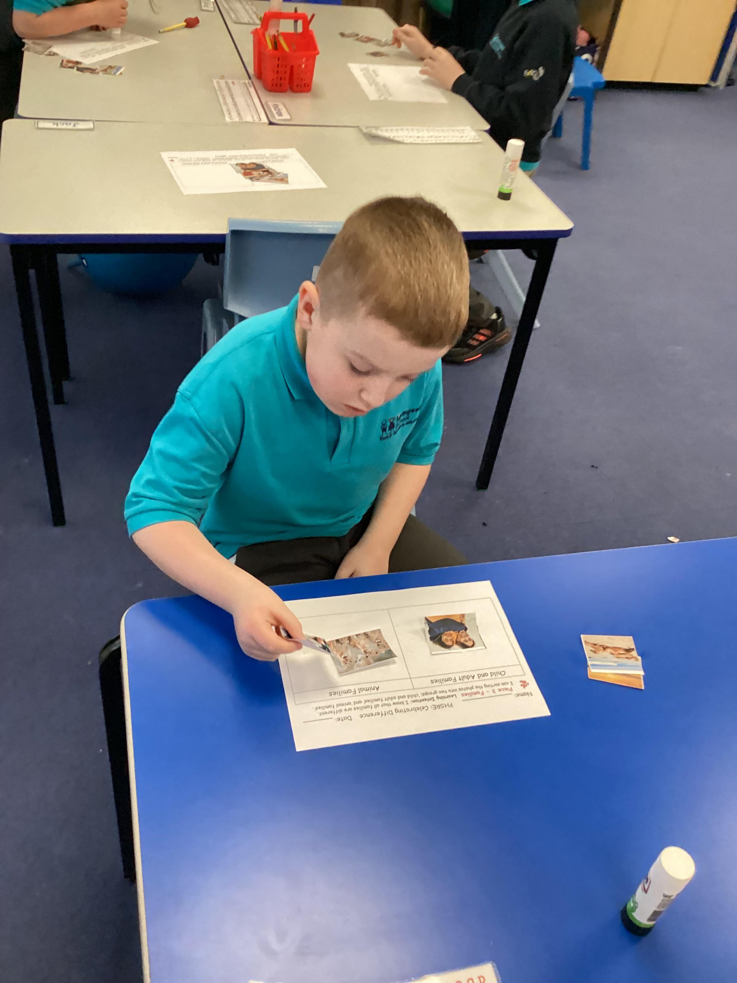 10.02.25 - PSHRE - Jigsaw, Piece 3: We have been learning about how all families are different. We sorted some family photos into two groups; 'child and adult families' and 'animal families'.