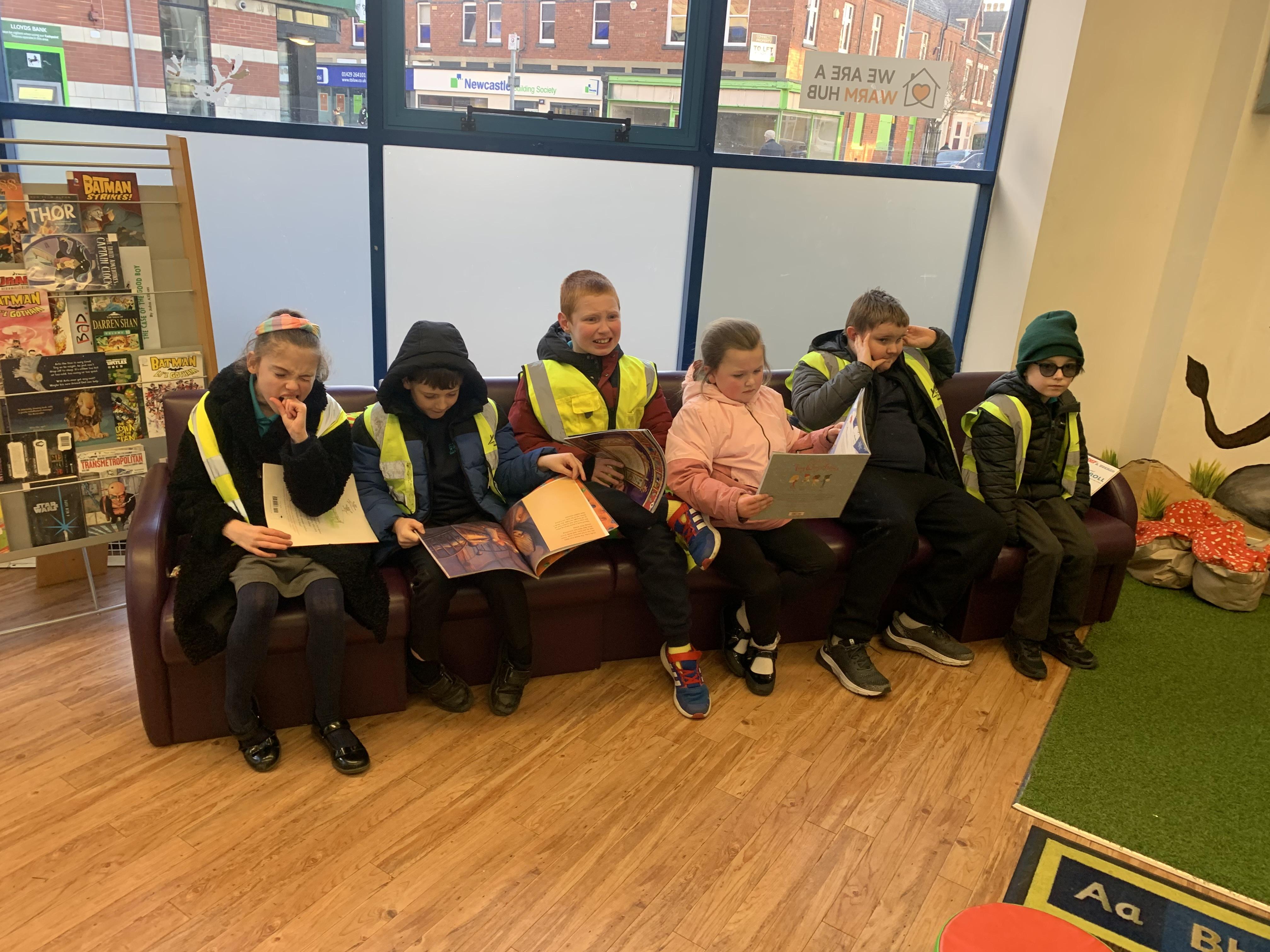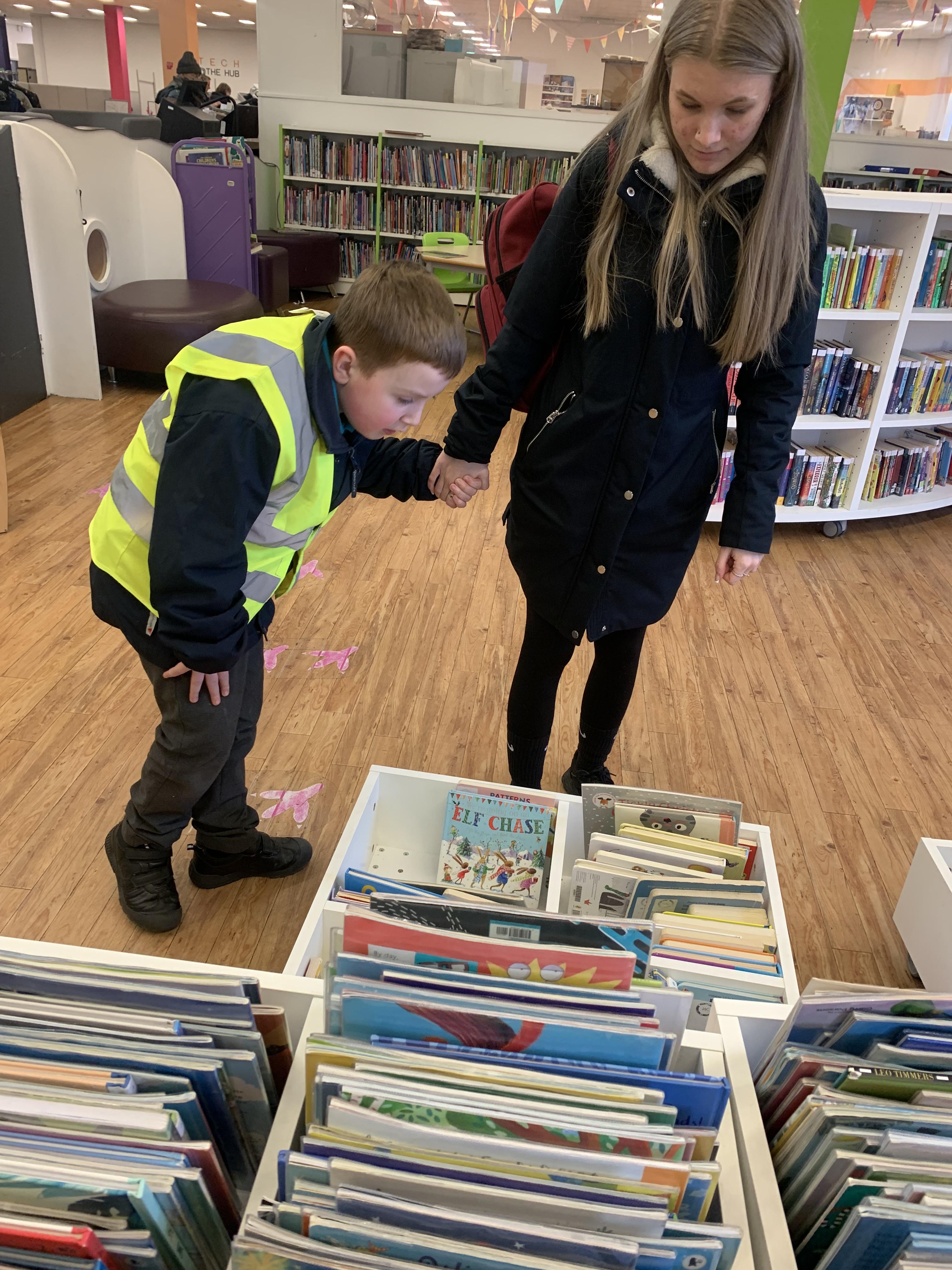 30.01.25 READING: We visited the Community Hub Central Library in our town centre and enjoyed looking at and reading some of the different books.